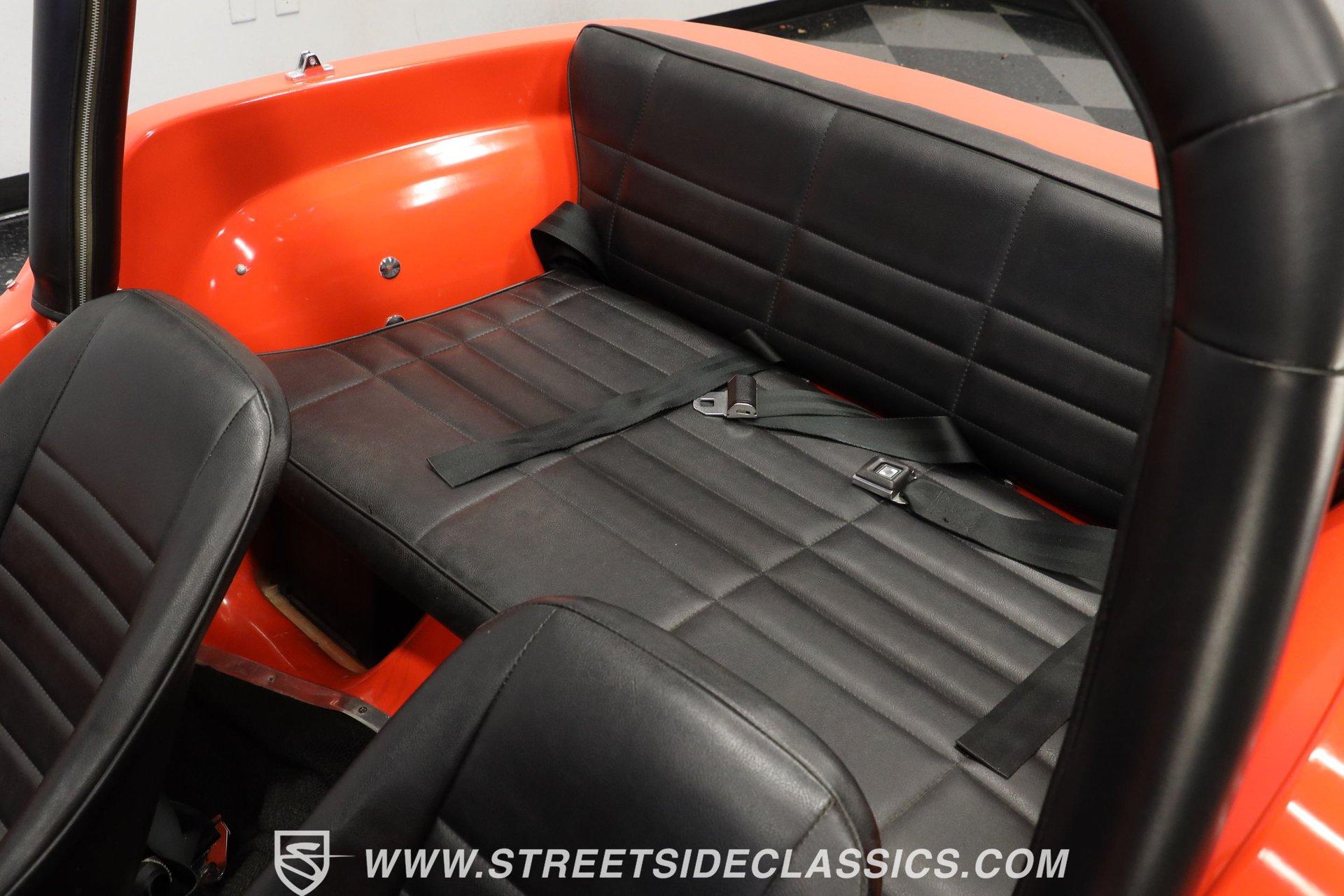 Experience the thrill and nostalgia of open-air adventure with this iconic 1970 Volkswagen Dune Buggy. A symbol of carefree beach days and sun-soaked memories, this classic buggy invites you to embrace a lifestyle of fun and freedom. With its eye-catching fiberglass body and minimalist design, it stands out in any crowd, promising smiles and stories wherever the road or sand takes you. Whether cruising coastal highways or exploring rugged trails, this dune buggy offers a unique blend of vintage charm and spirited driving. Don't miss your chance to own this legendary 1970 Volkswagen Dune Buggy and make your own unforgettable journeys. Step inside to discover a simple yet inviting interior that perfectly matches the buggy's playful spirit. The black vinyl seats retain a deep, rich color and show only light wear, complemented by a straightforward black dashboard featuring a speedometer, fuel gauge, and clock. The bucket seats tilt forward for easy access, while the padded roll bar adds a touch of safety without compromising style. Equipped with front and rear seatbelts and a classic black Volkswagen steering wheel, the interior balances comfort and vintage authenticity. Under the hood, this dune buggy is powered by a 1500cc Volkswagen engine paired with a 4-speed manual transmission, offering an engaging and hands-on driving experience. The single barrel carburetor and dual chrome exhaust tips enhance both performance and style, while the drum brakes provide reliable stopping power. This dune buggy embodies the essence of simple, unpretentious fun with mechanical components that are true to its original design. Highlights: 1970 Volkswagen Dune Buggy 1500cc Engine 4-Speed Manual Transmission Single Barrel Carburetor Dual Chrome Exhaust Tips Drum Brakes Front And Rear Black Vinyl Interior Padded Roll Bar Bucket Seats Tilt Forward Black Vinyl Removable Soft Top Fiberglass Tub Body Factory Style 14" Steel Wheels Older Radial Tires E70-14 No Rust On Underside Financing Available Vehicle Protection Plans Available Worldwide Shipping Titled as a "1970 HMMD" This 1970 Volkswagen Dune Buggy is a fantastic choice for anyone seeking a classic vehicle with character and charm. Its blend of vintage style and straightforward mechanics makes it a rewarding project or a weekend cruiser. Ready to bring the beach vibes and sunny smiles to your driveway? Call, email, or come visit our showroom today! We can assist you with getting an Extended Vehicle Service Plan from Freedom Warranty, which provides comprehensive coverage that can save thousands of dollars on unexpected repairs. Inquire for more details and pricing!