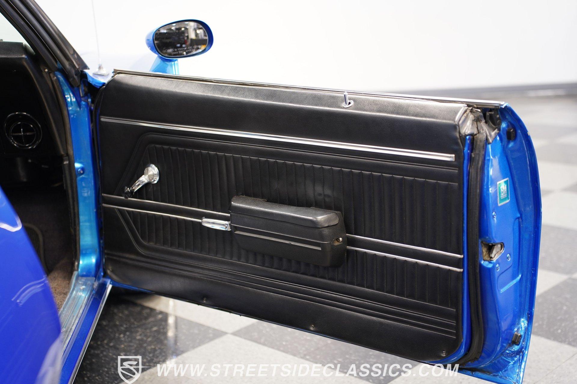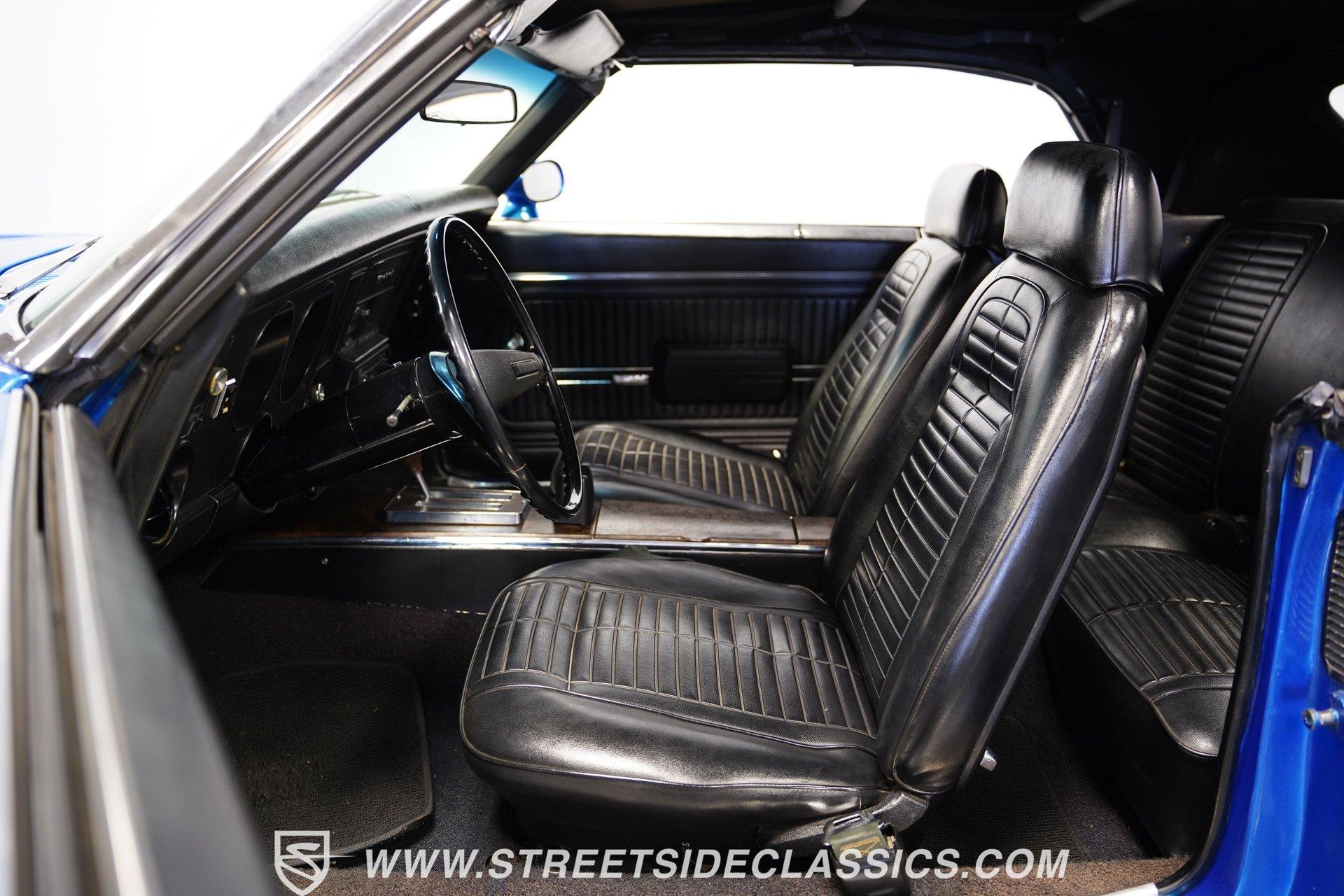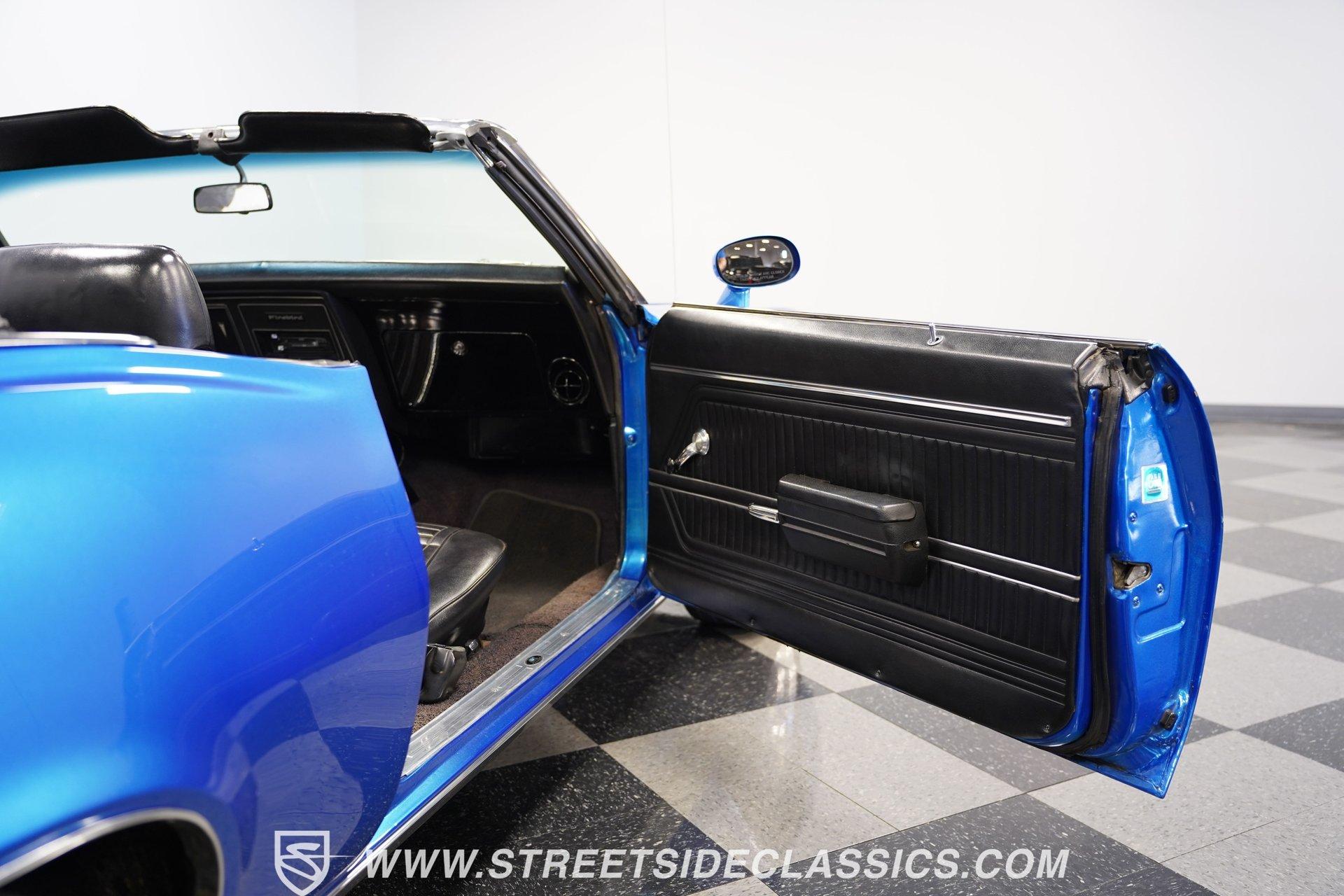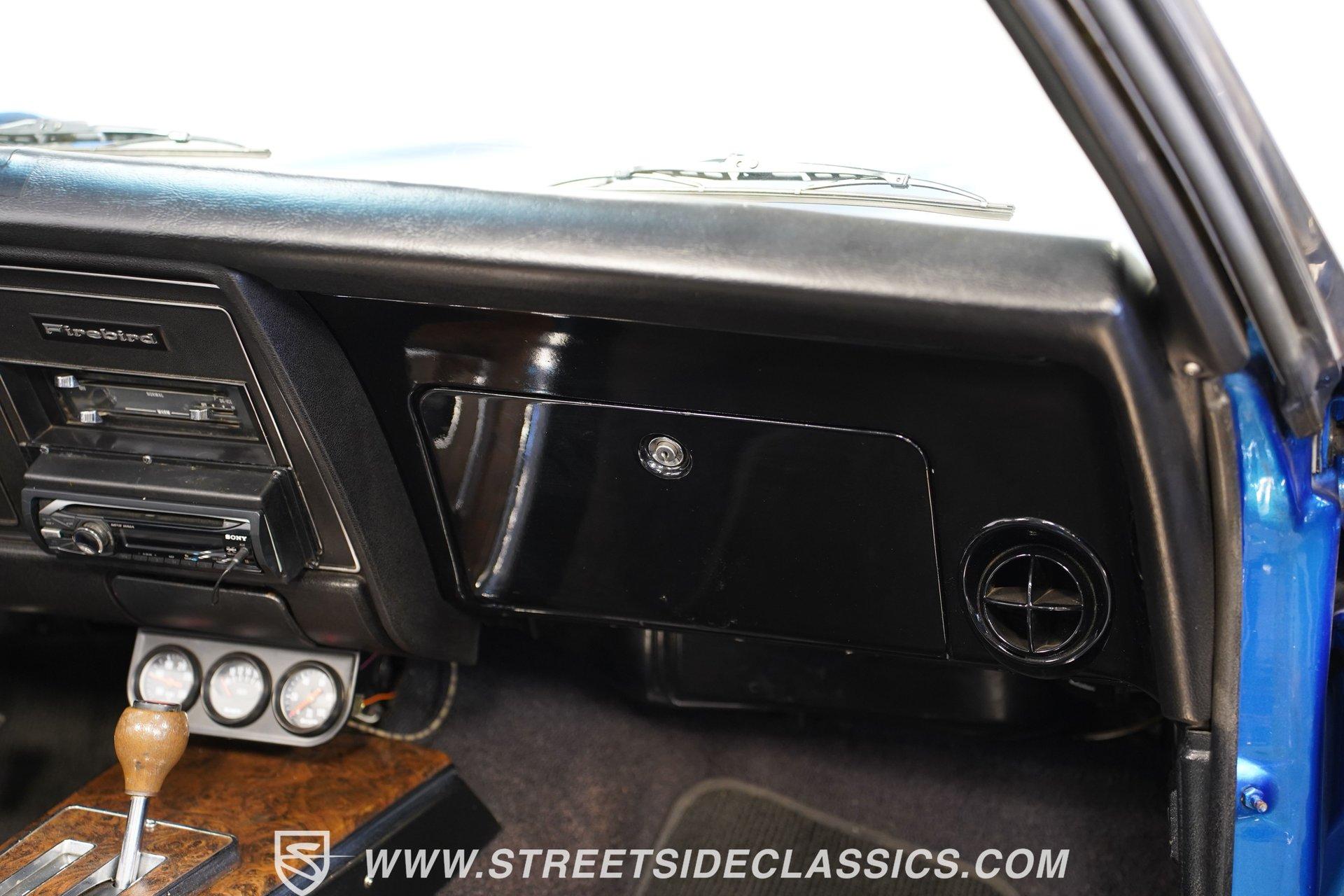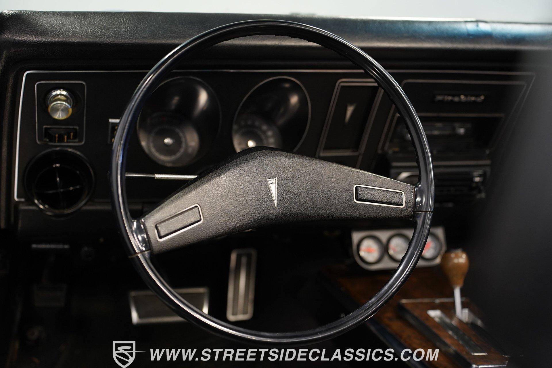 There's no denying the timeless curb appeal of a sharp-looking classic muscle car, especially when it's wearing a great color and is mechanically well-appointed. That's definitely an apt description for this 1969 Pontiac Firebird 400 Convertible. Dressed in a very eye-catching shade of metallic blue, this open-air ride would make an outstanding weekend cruiser and, with just a little work, could even be transformed into a contender on the local car show scene. That appealing paint is paired with brightwork that's in consistently good shape, and this Pontiac's collection of proper 400 badging is securely in place. Featuring consistent body lines, its doors close solidly and, if you look a little closer, you'll see that both its window glass and weatherstripping are in good shape. As a big added plus, that hood-mounted tach you see, which is so often in non-operable shape on classics, is in strong working order. Inside, you'll find a factory-style interior that may show signs of wear but remains perfectly usable in its current state and could easily be brought up to speed without much trouble. The front bucket seats are structurally sound and still properly aligned, and they straddle the signature wood-accented center console that upper-tier Firebirds were known for. The gauges in the instrument cluster appear to be surprisingly clear, especially given that this is a convertible, and are joined by a trio of aftermarket gauges that sit at the bottom of the dash area, just below a Sony AM/FM stereo with an auxiliary port to add more audio options. While power convertible works as it should. Propelled by a factory-correct drivetrain that's anchored by a 400 cubic-inch V8, this Pontiac has very solid driving manners. The smooth-running engine appears nice and clean and is dressed up with some sharp chrome accessories. Fed by a Quadrajet 4-barrel carburetor perched on an Edelbrock aluminum intake manifold, it's paired with a 3-speed automatic TH350 that shifts without issue. This Pontiac's power steering shows none of the excessive play you might expect, and its power brakes offer confidence-inspiring stops. Yes, this is a really nice, driving classic, to be sure. HIGHLIGHTS PERIOD-CORRECT 400 CUBIC-INCH V8 ENGINE 4-BARREL CARBURETOR 3-SPEED AUTOMATIC TH350 TRANSMISSION LONG TUBE HEADERS DUAL EXHAUST, WITH GLASSPACK-STYLE MUFFLERS FACTORY SUSPENSION POWER BRAKES 17" VINTAGE WHEEL WORKS WHEELS ULTRA-SHARP METALLIC BLUE PAINT BLACK VINYL UPHOLSTERY BUCKET SEATS CENTER CONSOLE POWER STEERING SONY AM/FM STEREO WITH AN AUXILIARY PORT Prowling the asphalt on a set of 17" Vintage Wheel Works wheels that are the perfect complement to its timeless good looks, this 1969 Pontiac Firebird 400 Convertible is a great representative of its manufacturer as the '60s were drawing to a close and will be a fun-filled open-air cruiser for its next lucky owner. Call today!