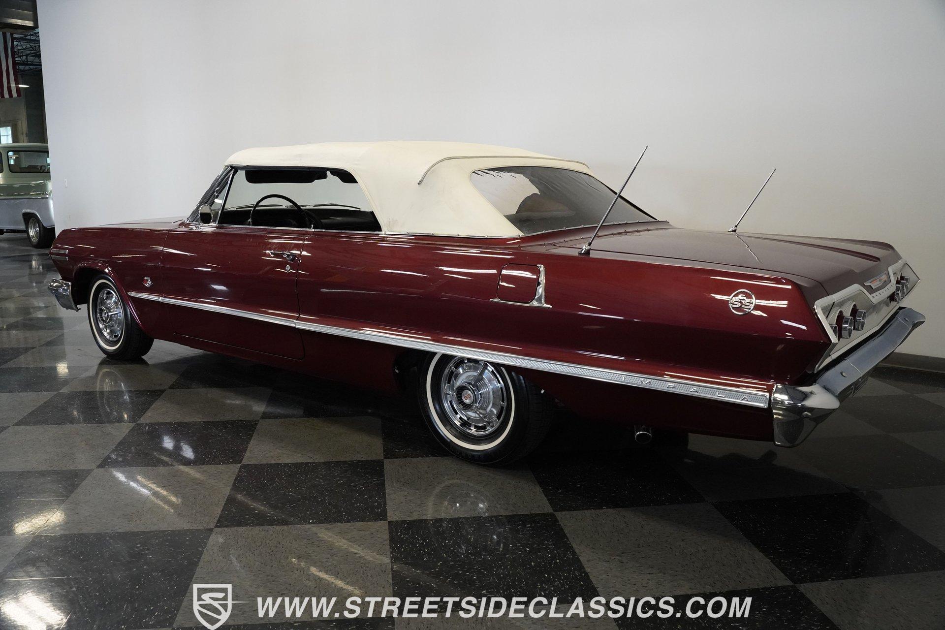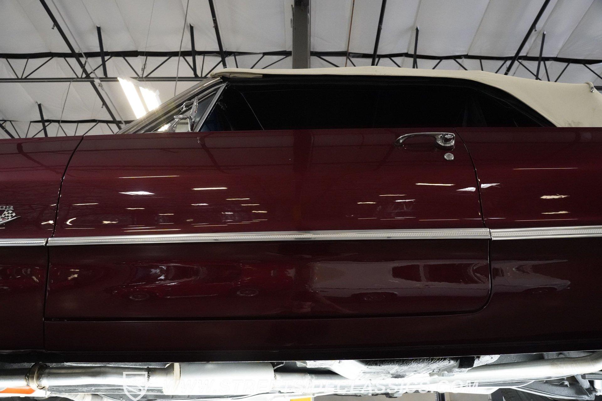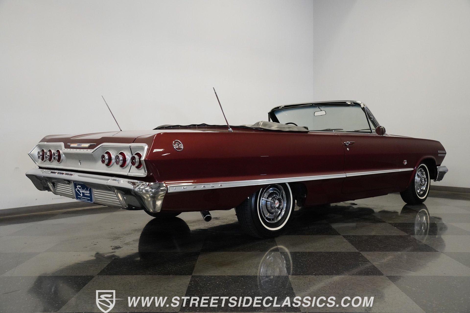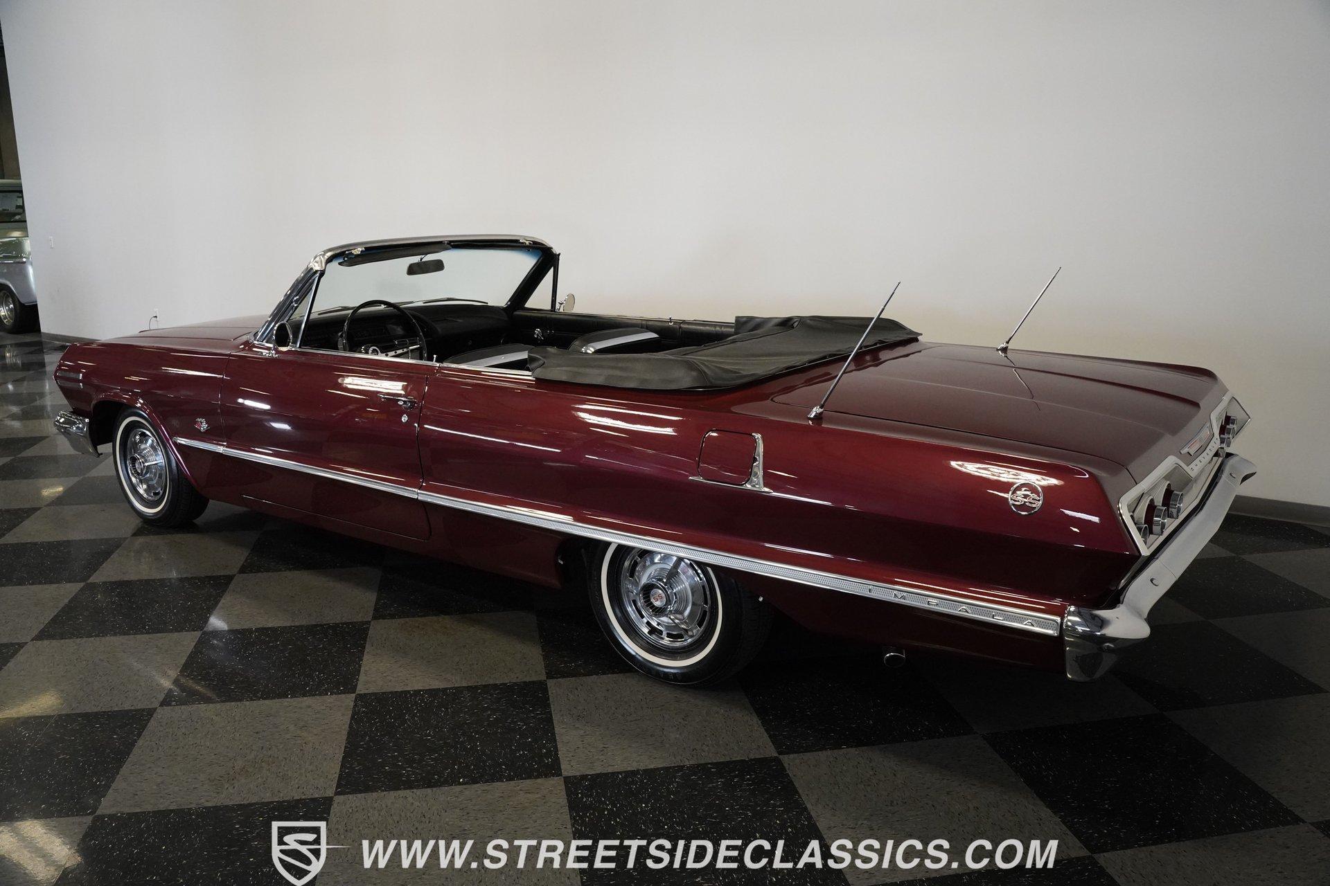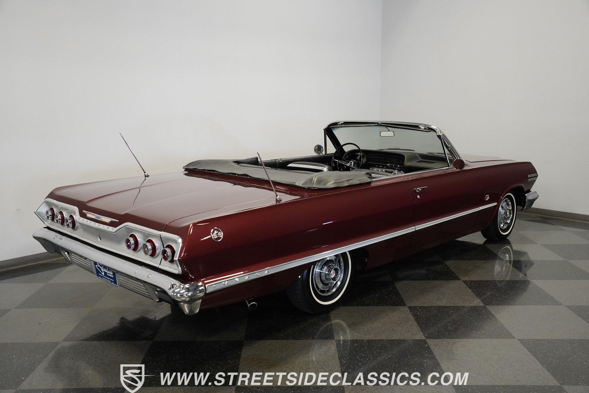 There is something about slipping behind the wheel of a classic convertible that turns an ordinary drive into a lasting memory. This 1963 Chevrolet Impala convertible wears its era with pride, blending boulevard presence and muscle car attitude in equal measure. Finished in Palomar Maroon with a white convertible soft top, SS trim, and 409 badging, it makes a strong case for weekend cruises, parades, or simply enjoying the satisfaction of rolling up in a car that commands attention. Inside, the cabin presents with authentic Super Sport style. Low-back bucket seats, a stainless-trimmed full console, and an SS steering wheel create the period look, while a column-mounted tach and floor shifter add a driver-focused feel. The interior shows clean presentation throughout and pairs well with the convertible top for comfortable open-air motoring. Under the hood sits a 409 big-block V8 paired with a TH400 three-speed automatic transmission. Fuel delivery has been modernized with a Holley Sniper EFI system on the stock intake, while cooling is upgraded with a Champion aluminum radiator, dual electric fans, and an aluminum overflow tank. Power steering and Wilwood power brakes give the Impala confident road manners, making it far more enjoyable in modern traffic than its factory-original counterparts. Restored in its correct Palomar Maroon, this Impala carries SS badging, silverleaf rear trim, and sits on classic 14-inch steel wheels with SS hubcaps. The stance, chrome, and brightwork give it timeless appeal while mechanical updates ensure a more reliable ownership experience. This Impala represents the best of both worlds - a driver-quality classic convertible with authentic looks, modernized fuel delivery, and tasteful upgrades to keep it enjoyable. For enthusiasts who appreciate vintage presence with dependable performance, this 1963 Chevrolet Impala convertible is ready for its next chapter. Call today to arrange a closer look and test drive.