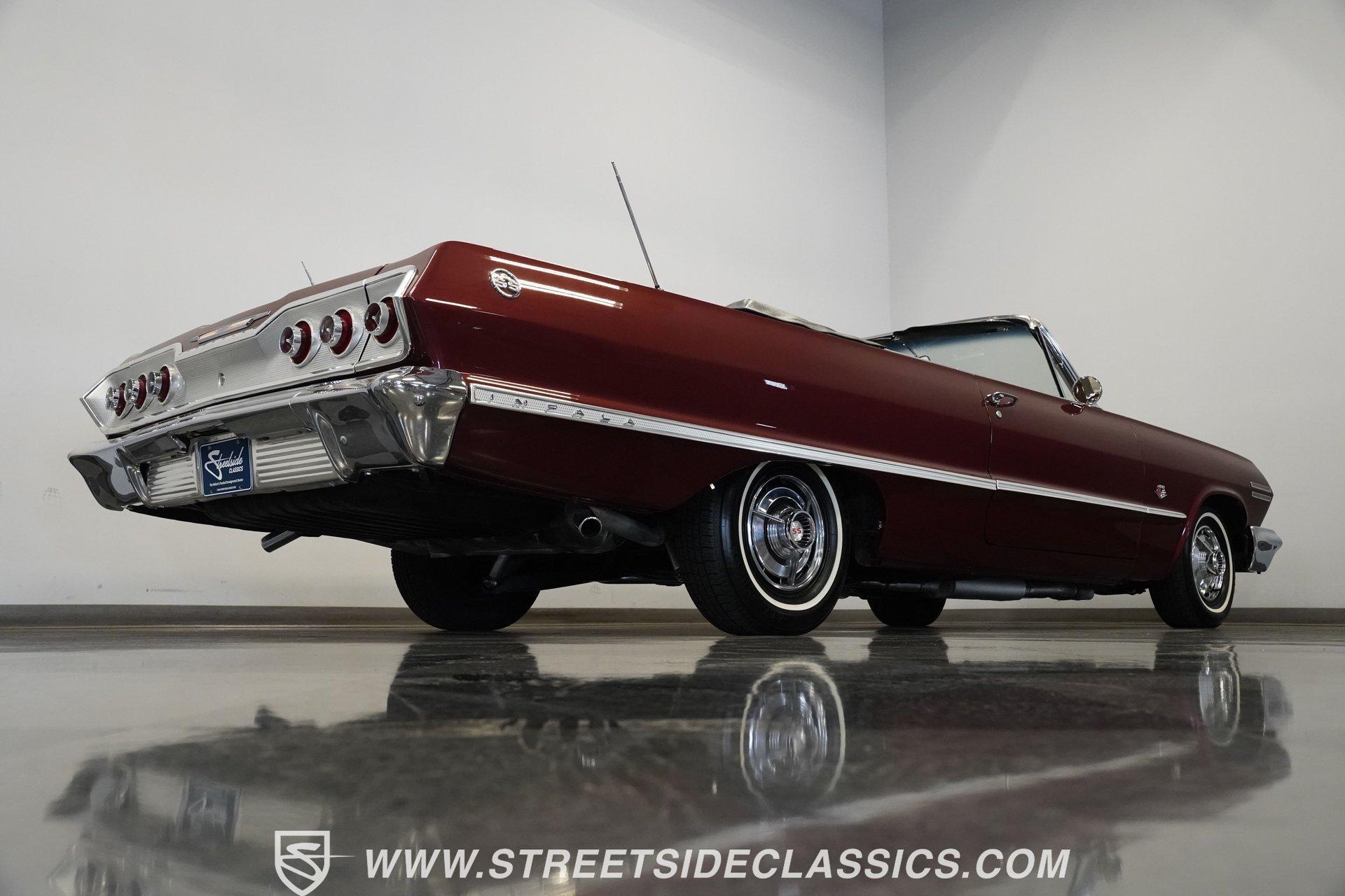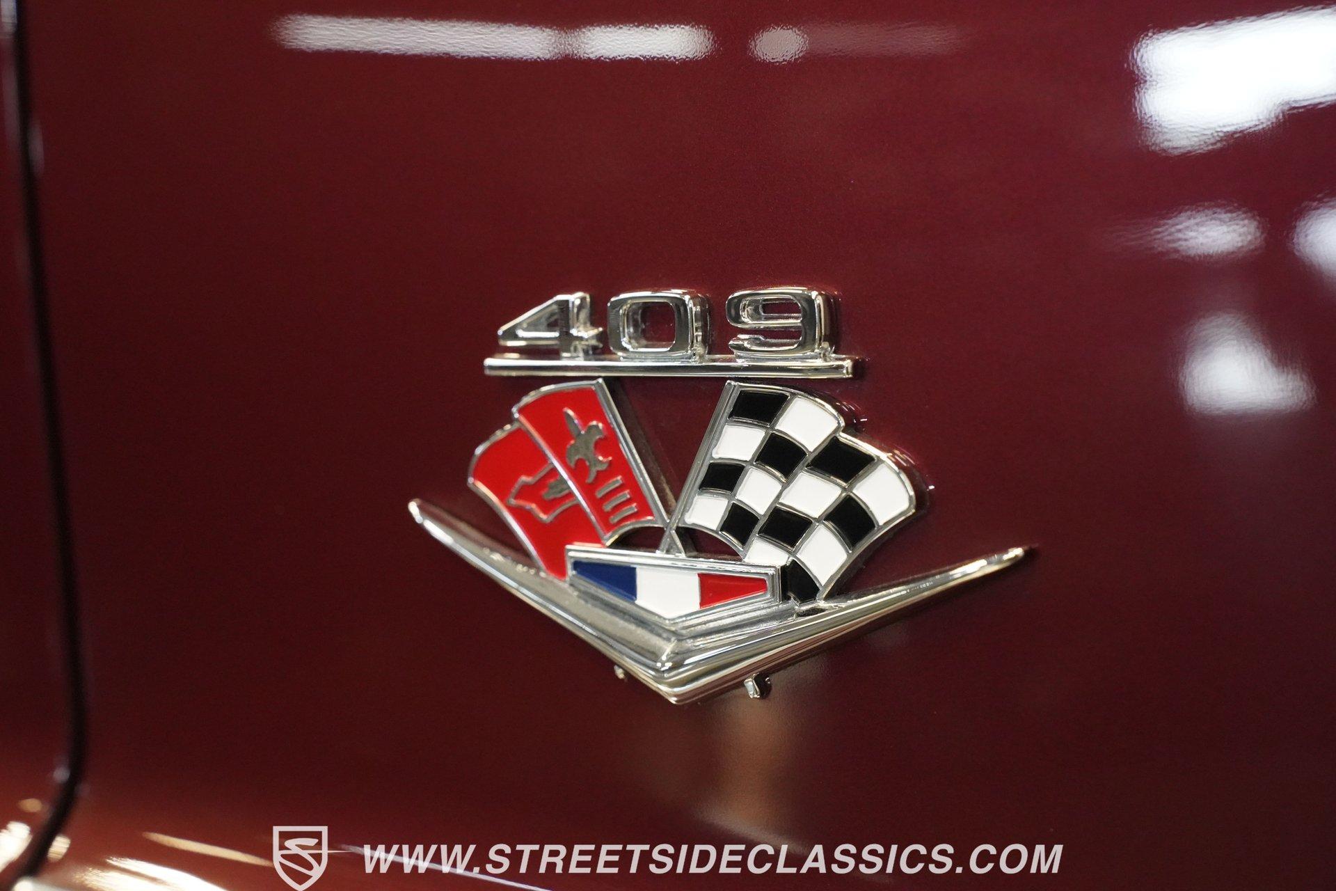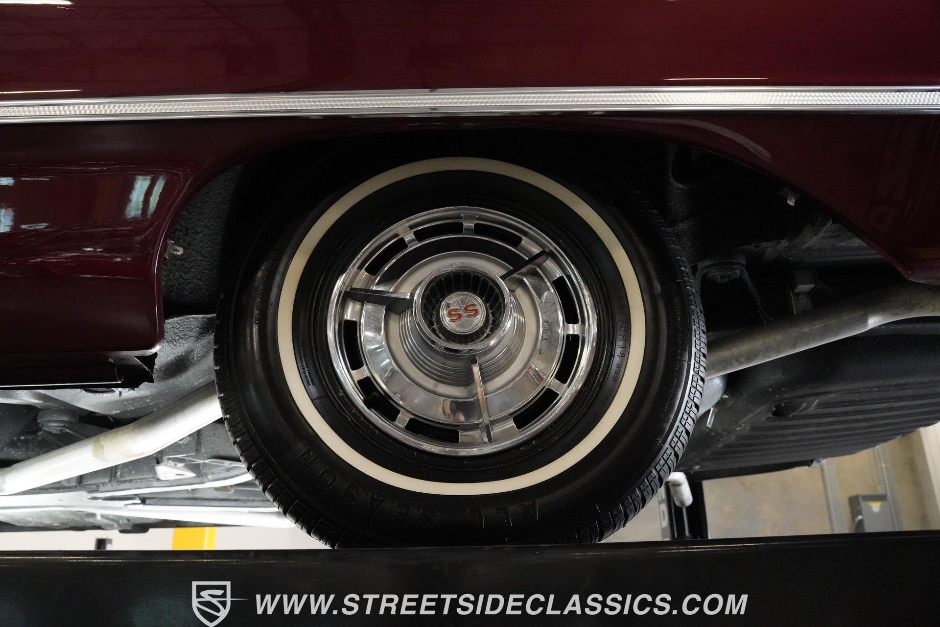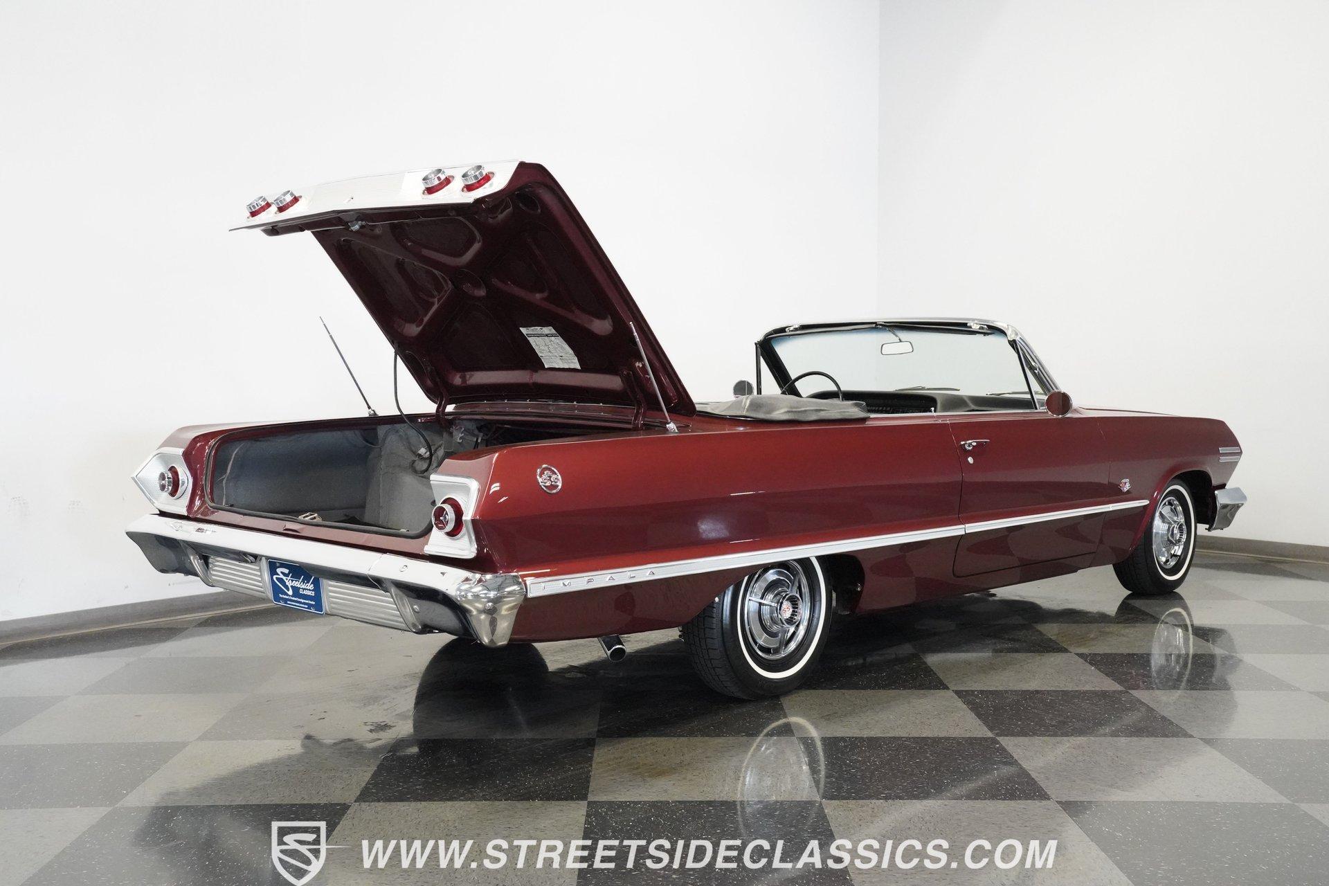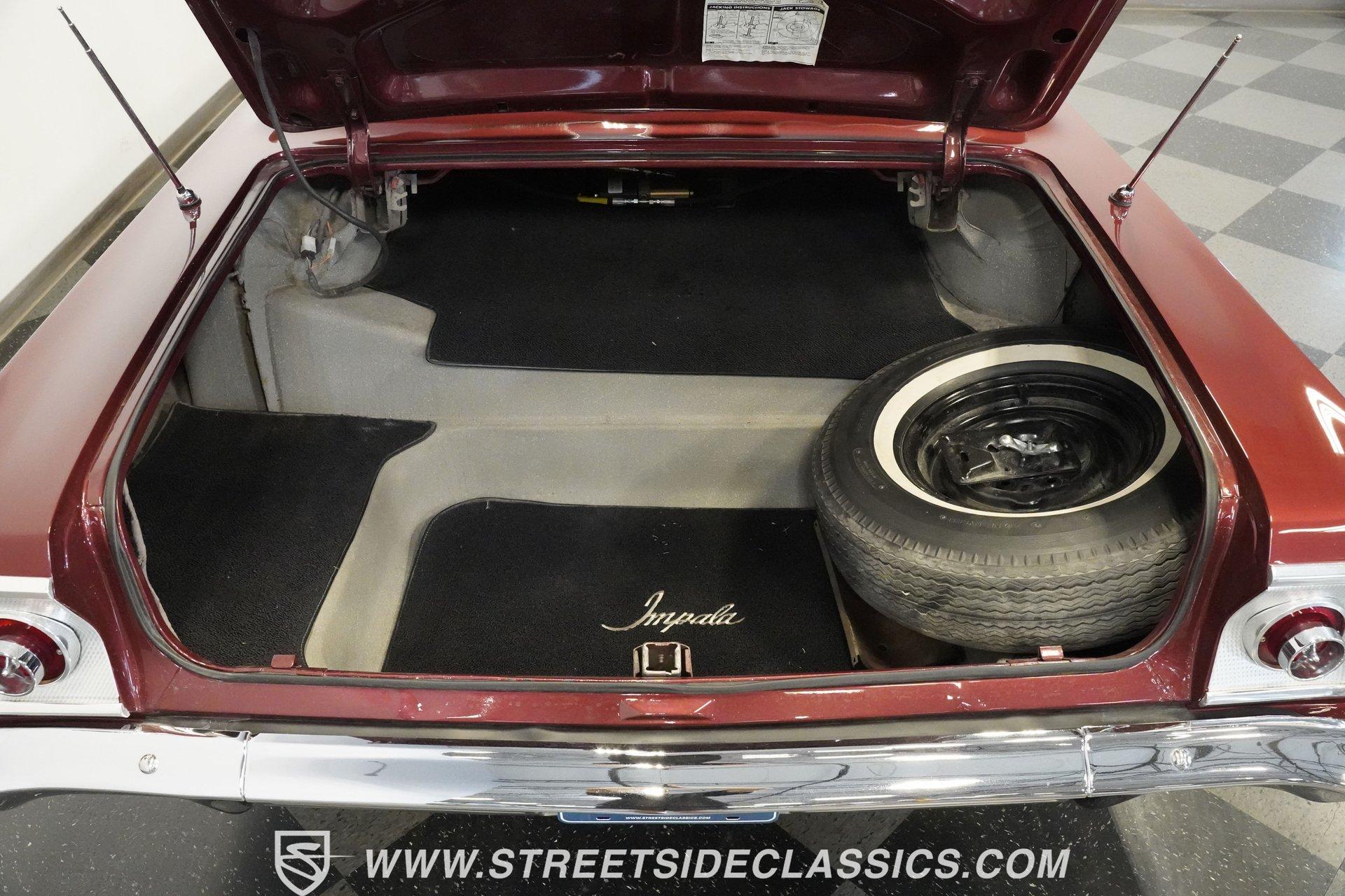There is something about slipping behind the wheel of a classic convertible that turns an ordinary drive into a lasting memory. This 1963 Chevrolet Impala convertible wears its era with pride, blending boulevard presence and muscle car attitude in equal measure. Finished in Palomar Maroon with a white convertible soft top, SS trim, and 409 badging, it makes a strong case for weekend cruises, parades, or simply enjoying the satisfaction of rolling up in a car that commands attention. Inside, the cabin presents with authentic Super Sport style. Low-back bucket seats, a stainless-trimmed full console, and an SS steering wheel create the period look, while a column-mounted tach and floor shifter add a driver-focused feel. The interior shows clean presentation throughout and pairs well with the convertible top for comfortable open-air motoring. Under the hood sits a 409 big-block V8 paired with a TH400 three-speed automatic transmission. Fuel delivery has been modernized with a Holley Sniper EFI system on the stock intake, while cooling is upgraded with a Champion aluminum radiator, dual electric fans, and an aluminum overflow tank. Power steering and Wilwood power brakes give the Impala confident road manners, making it far more enjoyable in modern traffic than its factory-original counterparts. Restored in its correct Palomar Maroon, this Impala carries SS badging, silverleaf rear trim, and sits on classic 14-inch steel wheels with SS hubcaps. The stance, chrome, and brightwork give it timeless appeal while mechanical updates ensure a more reliable ownership experience. This Impala represents the best of both worlds - a driver-quality classic convertible with authentic looks, modernized fuel delivery, and tasteful upgrades to keep it enjoyable. For enthusiasts who appreciate vintage presence with dependable performance, this 1963 Chevrolet Impala convertible is ready for its next chapter. Call today to arrange a closer look and test drive.