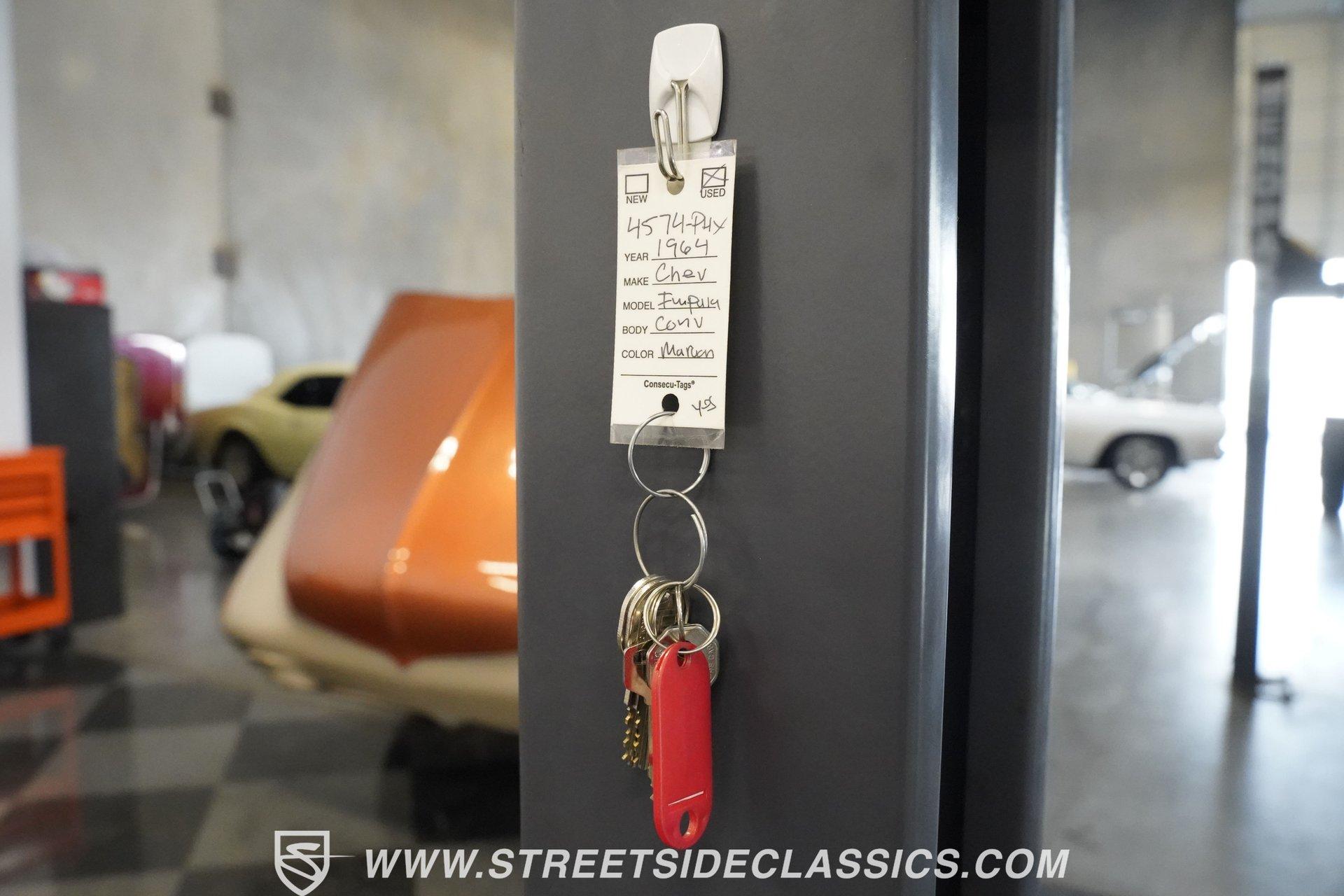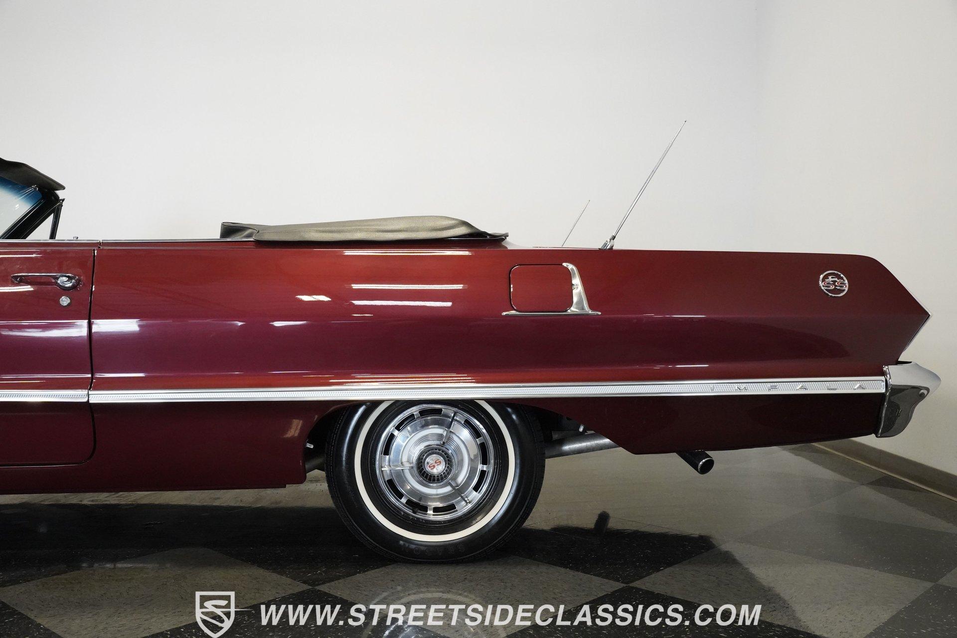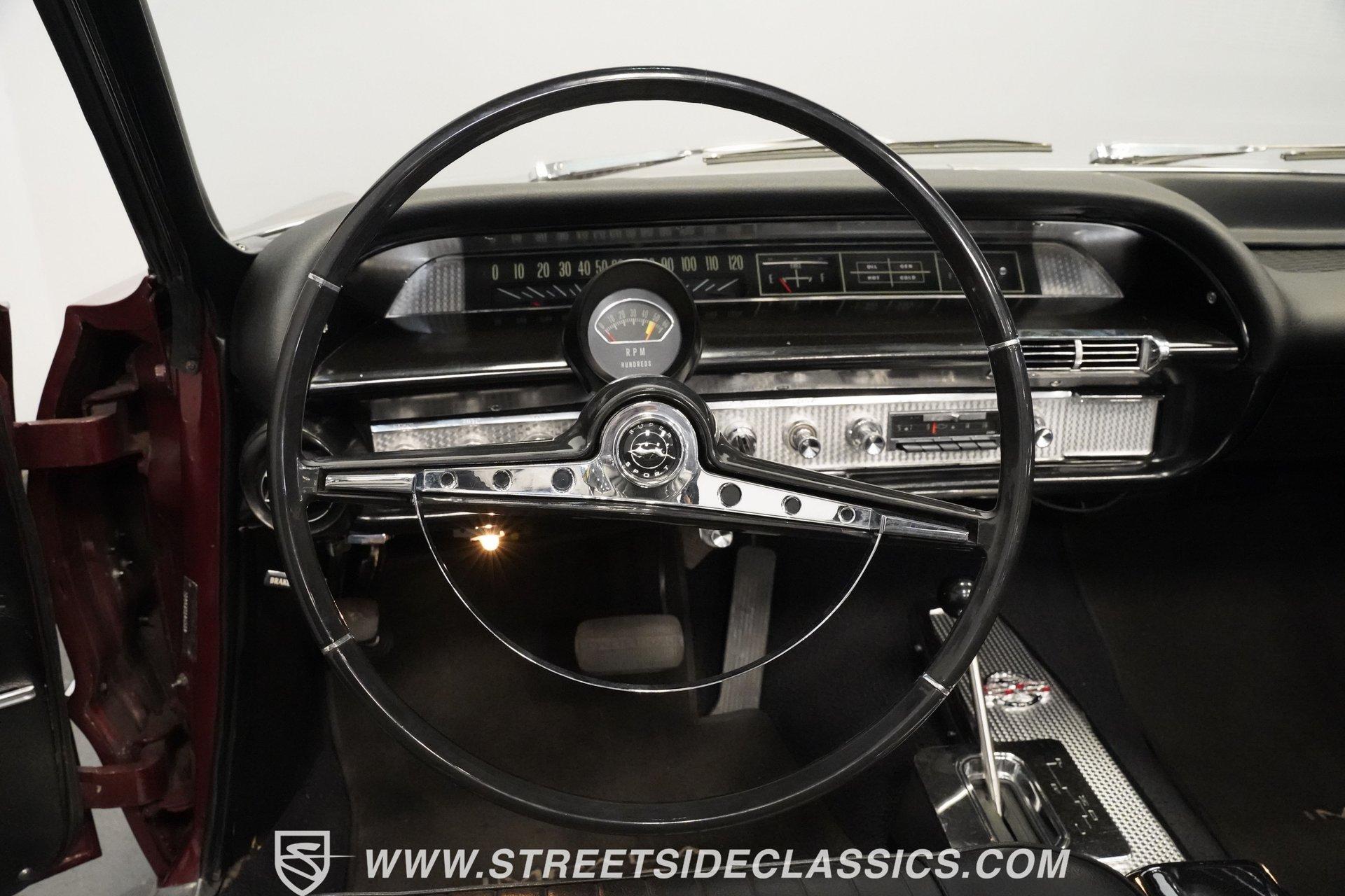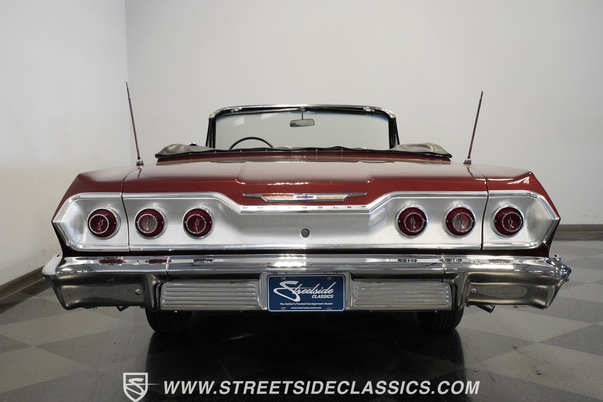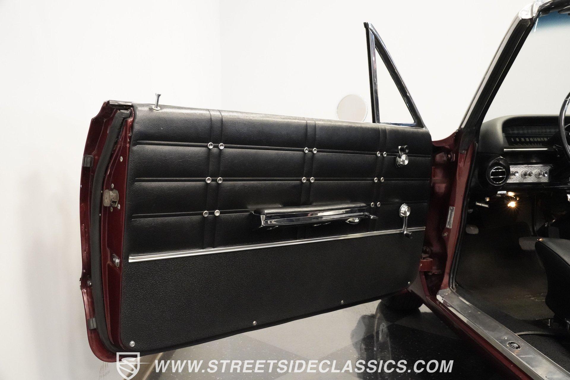 There is something about slipping behind the wheel of a classic convertible that turns an ordinary drive into a lasting memory. This 1963 Chevrolet Impala convertible wears its era with pride, blending boulevard presence and muscle car attitude in equal measure. Finished in Palomar Maroon with a white convertible soft top, SS trim, and 409 badging, it makes a strong case for weekend cruises, parades, or simply enjoying the satisfaction of rolling up in a car that commands attention. Inside, the cabin presents with authentic Super Sport style. Low-back bucket seats, a stainless-trimmed full console, and an SS steering wheel create the period look, while a column-mounted tach and floor shifter add a driver-focused feel. The interior shows clean presentation throughout and pairs well with the convertible top for comfortable open-air motoring. Under the hood sits a 409 big-block V8 paired with a TH400 three-speed automatic transmission. Fuel delivery has been modernized with a Holley Sniper EFI system on the stock intake, while cooling is upgraded with a Champion aluminum radiator, dual electric fans, and an aluminum overflow tank. Power steering and Wilwood power brakes give the Impala confident road manners, making it far more enjoyable in modern traffic than its factory-original counterparts. Restored in its correct Palomar Maroon, this Impala carries SS badging, silverleaf rear trim, and sits on classic 14-inch steel wheels with SS hubcaps. The stance, chrome, and brightwork give it timeless appeal while mechanical updates ensure a more reliable ownership experience. This Impala represents the best of both worlds - a driver-quality classic convertible with authentic looks, modernized fuel delivery, and tasteful upgrades to keep it enjoyable. For enthusiasts who appreciate vintage presence with dependable performance, this 1963 Chevrolet Impala convertible is ready for its next chapter. Call today to arrange a closer look and test drive.