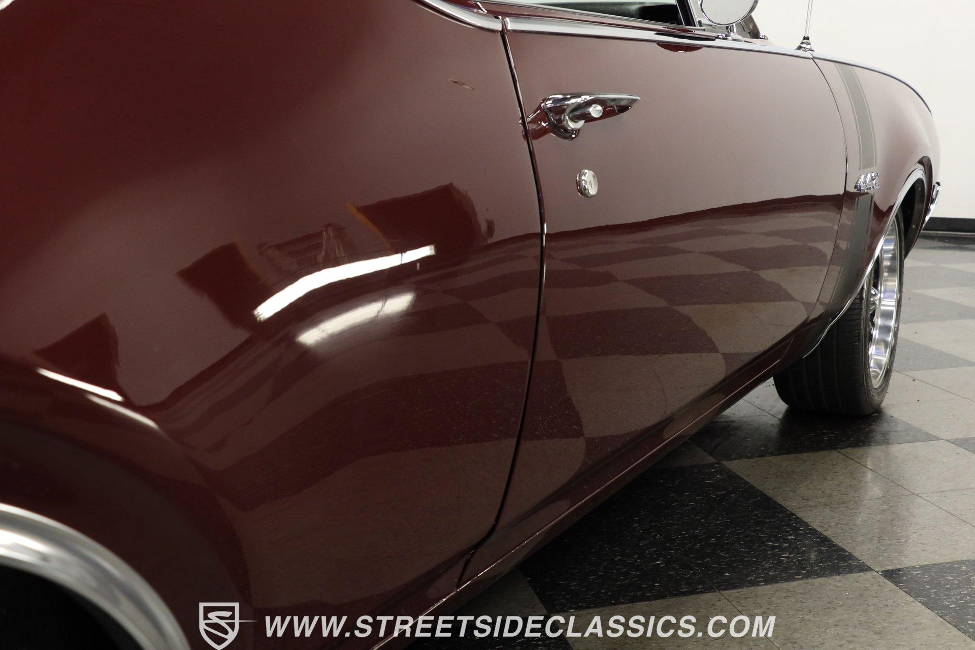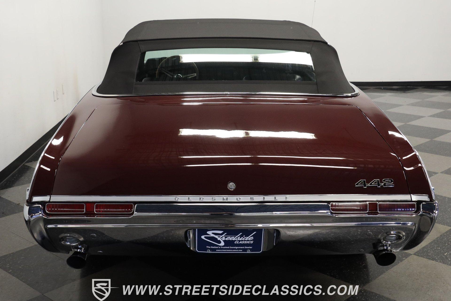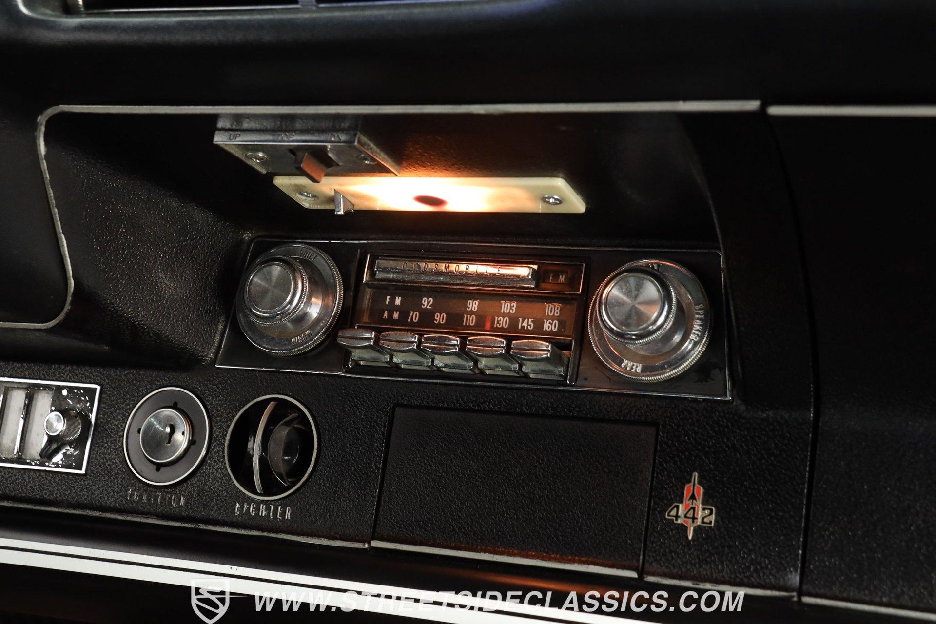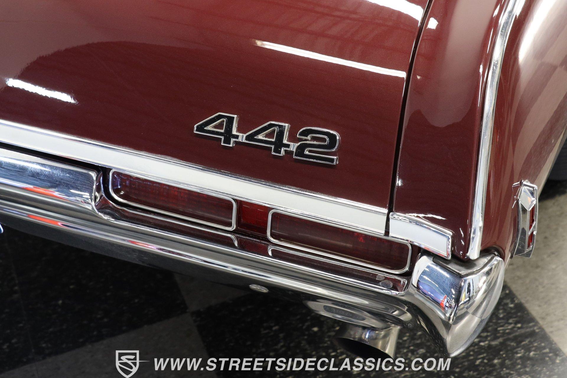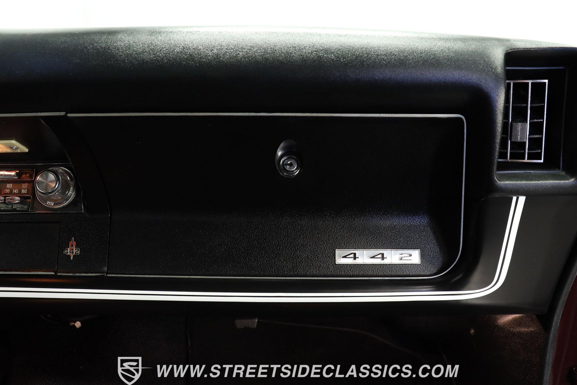 Experience the thrill and timeless appeal of American muscle with this stunning 1968 Oldsmobile 442 convertible, a true restomod masterpiece that blends classic style with modern performance. Imagine cruising with the top down, turning heads with a sharp black cherry paint complemented by subtle matte black stripes, embodying both elegance and attitude. This car is more than just a vehicle; it's a statement of passion and craftsmanship, reflecting three years of meticulous restoration and thoughtful upgrades. If you're ready to own a car that offers iconic design and contemporary drivability, this 1968 Oldsmobile 442 is calling your name. Step inside to find an interior that balances period-correct aesthetics with practical enhancements. The cabin features black vinyl bucket seats with a center console, all in great shape, alongside a wood steering wheel and upgraded Dakota Digital VHX series gauges that add a modern touch while maintaining classic charm. Chrome accents gleam throughout, and the AM/FM radio provides classic tunes as you enjoy the ride. The interior's thoughtful design ensures comfort and style, making every drive a memorable experience. Under the hood, this restomod packs a powerful 5.3L LM7 V8 engine paired with a 4-speed automatic 4L60e transmission, delivering smooth and responsive performance. The upgraded drivetrain features fuel injection, a serpentine belt setup with upgraded pulleys, and a robust aluminum radiator with dual electric fans to keep things cool. Power steering and hydro-boost power brakes with Wilwood master cylinder ensure confident handling and stopping power. The suspension is enhanced with UMI Performance coil-overs and Viking adjustable shocks, while a 9-inch Ford rear end and Hooker headers feeding dual exhaust complete the performance package for an exhilarating drive. Highlights 1968 Oldsmobile 442 Convertible 5.3L LM7 V8 Engine 4-Speed Automatic Transmission Fuel Injection System Power Steering & Hydro-Boost Power Brakes Wilwood Master Cylinder & Brakes Aluminum Radiator with Dual Electric Fans R134a Air Conditioning 4-Wheel Disc Brakes 9-Inch Ford Rear End with 3.70 Gears UMI Performance Suspension Components 17" U.S. Mags Wheels with 2022 ZR-Rated Tires Dakota Digital VHX Series Gauges Black Cherry Paint with Matte Black Stripes Power Convertible Top Financing Available Vehicle Protection Plans Available Worldwide Shipping This 1968 Oldsmobile 442 restomod is a fantastic blend of classic muscle car heritage and modern reliability, making it a compelling choice for enthusiasts and collectors alike. With its well-executed restoration, upgraded mechanicals, and striking appearance, it's ready to provide both thrilling drives and lasting enjoyment. Don't miss your chance to own this exceptional convertible. Call, email, or come visit our showroom today! We can assist you with getting an Extended Vehicle Service Plan from Freedom Warranty, which provides comprehensive coverage that can save thousands of dollars on unexpected repairs. Inquire for more details and pricing!