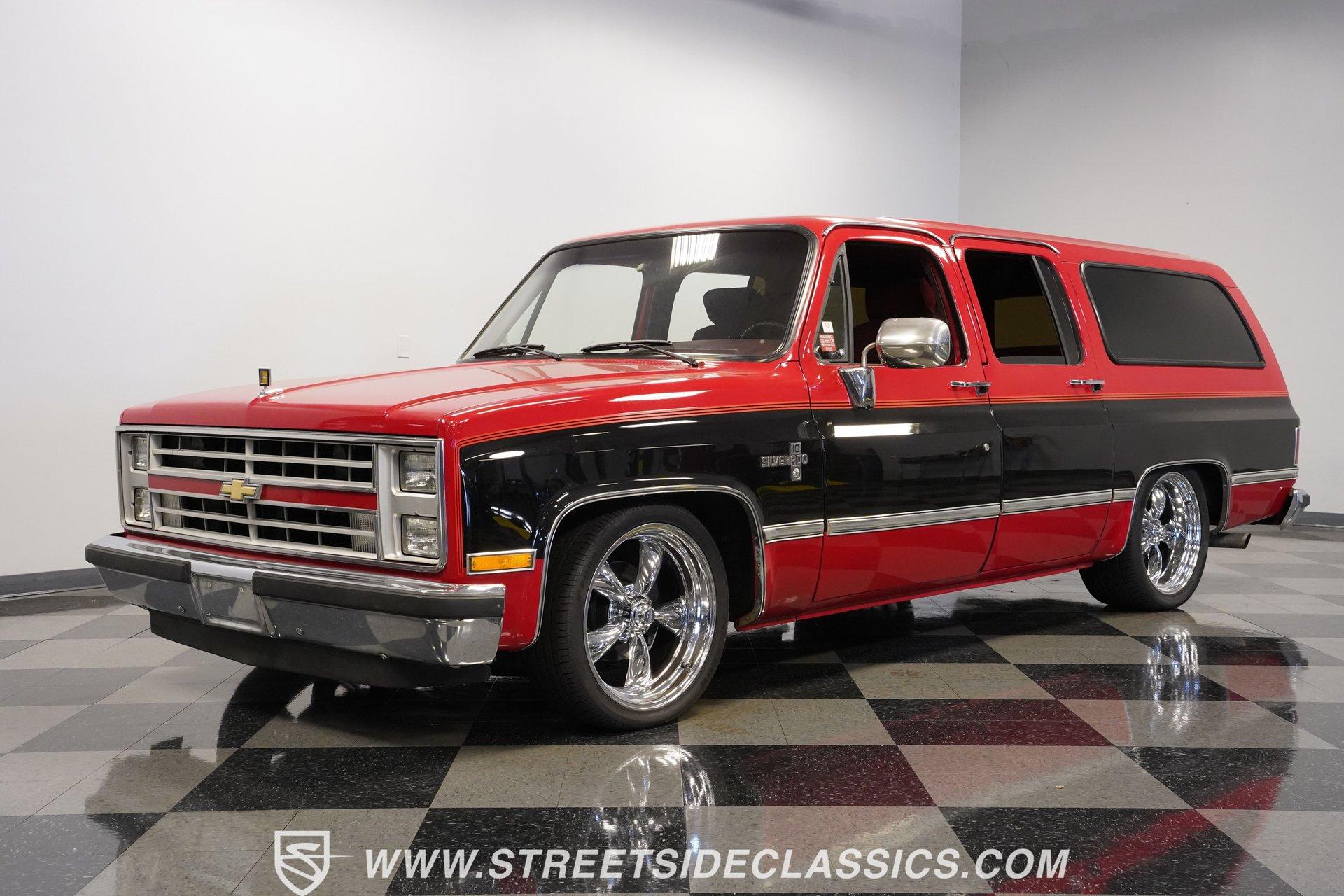 Step back in time and embrace the spirit of rugged versatility with this iconic 1987 Chevrolet Suburban Silverado. A true classic that represents an era when utility met style, this Suburban embodies the freedom of the open road and the promise of adventure with family and friends. Whether it's weekend getaways or daily drives, this vehicle makes a statement of enduring strength and timeless design. Finished in a striking two-tone paint and fitted with bold 20-inch chrome wheels, this Suburban is ready to turn heads and make memories that last a lifetime. Discover why this 1987 Chevrolet Suburban Silverado deserves a spot in your garage today. Step inside to find a clean and comfortable factory interior that has aged gracefully. The cloth upholstery throughout shows minimal wear, complemented by a clean carpet and headliner. The dashboard features a few small cracks but retains its classic charm, while the door panels and rear plastic side panels exhibit typical wear and fading. Equipped with power locks, power windows, tilt steering, front and rear air conditioning, and a factory cassette radio, the cabin offers a blend of vintage convenience and comfort. A separate Bluetooth sound system in the glovebox delivers modern audio through all speakers and subwoofers, enhancing your driving experience. Under the hood, this Suburban boasts a robust 5.7L TBI V8 engine paired with a smooth-shifting 4-speed automatic 700R4 transmission. The engine starts, runs, and cruises reliably, maintaining a clean factory appearance with stock manifolds and power front disc brakes. The lowered suspension is complemented by a notched rear frame and upgraded shocks and springs, creating a distinctive stance and enhanced road presence. Additional features include power steering, factory air conditioning with R134a refrigerant, a GM 10-bolt rear axle, and a dual-to-single factory exhaust system. The underside is solid and clean, reflecting its well-maintained condition. Highlights: 1987 Chevrolet Suburban Silverado 5.7L TBI V8 Engine 4-Speed Automatic Transmission Power Front Disc Brakes Power Steering Factory Air Conditioning (R134a) Lowered Suspension with Notched Rear Frame GM 10-Bolt Rear Axle Dual to Single Factory Exhaust 20-Inch Chrome American Racing Wheels Cloth Upholstery Interior Bluetooth Sound System in Glovebox Factory Cassette Radio Financing Available Vehicle Protection Plans Available Worldwide Shipping This 1987 Chevrolet Suburban Silverado offers a rare combination of classic style, reliable performance, and modern upgrades. Its lowered stance and bold wheels make it stand out, while the comfortable interior and strong drivetrain ensure it's ready for any journey. Don't miss the chance to own a piece of automotive history with practical appeal. Call, email, or come visit our showroom today!