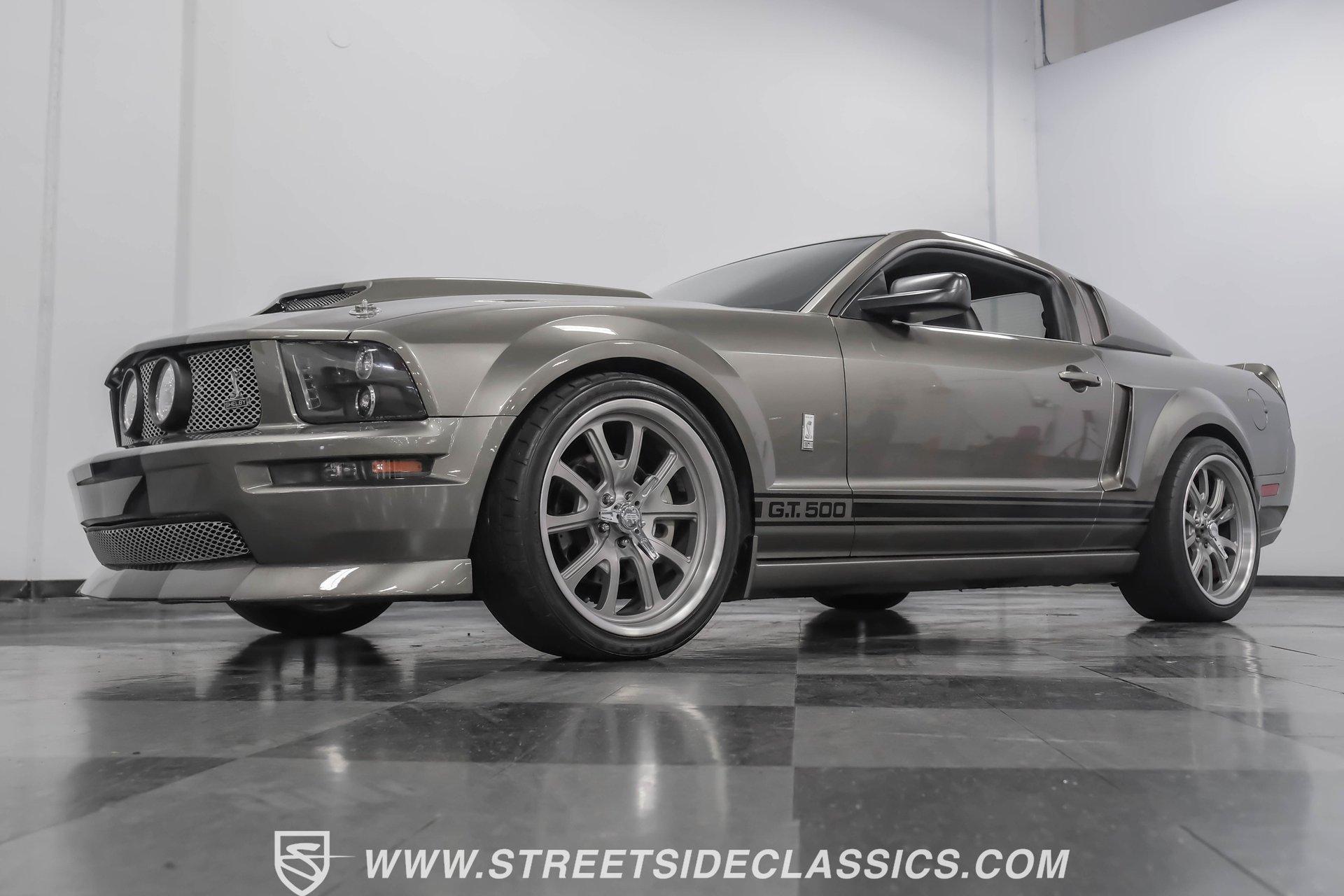 Owning a standout Mustang is about more than transportation, it is about making a statement every time you drive. This 2005 Ford Mustang GT500 Eleanor Tribute channels the spirit of modern performance with subtle nods to iconic styling, delivering a blend of presence and purpose that turns heads and sparks conversation. Built by Ultimate Autosports, this professional build has all the Eleanor styling ques covered including the Pepper Gray Metallic paint with black painted racing stripes, rear spoiler, side scoops, fiberglass hood with hood pins and full ground effects. Step inside to find a driver-focused cabin dressed in leather seating and factory conveniences. The interior includes a power driver seat, power windows, locks, mirrors, and cruise control for comfortable touring. The factory Shaker 500 sound system is complemented by a trunk-mounted subwoofer, while aftermarket Steeda gauges and auxilliary GlowShift gauge pods combine with the short-throw shifter for a purposeful, performance-oriented feel to the cockpit. Under the hood sits a 4.6 liter Saleen supercharged V8 that has been tuned to approximately 9 pounds of boost. A K&N cold air intake supports improved breathing, while the drivetrain is anchored by a 5-speed manual transmission and a performance clutch setup. The driveline features an 8.8 rear axle with 3.90 gears, a balanced driveshaft with a safety loop, and a rear differential with a race girdle cover to support spirited use and confident acceleration. Highlights: Actual Mileage 53,912 Built By Ultimate Autosports out of Florida Full Repaint in Pepper Gray Metallic and Black Racing Stripes 4.6L Saleen Supercharged V8 K&N Cold Air Intake 5 Speed Manual Transmission Short Throw Shifter 8.8 Rear Axle With 3.90 Gears Rear Diff Race Girdle Cover Balanced Driveshaft With Safety Loop Power Disc Brakes Front And Rear Factory Style Suspension Lowered 255/35ZR20 Nitto Tires This 2005 Ford Mustang GT500 Eleanor Tribute pairs tasteful performance upgrades with practical features, making it a rewarding choice for enthusiasts and collectors alike. Contact us to schedule an appointment and see why this Mustang is ready to be enjoyed. Call today!