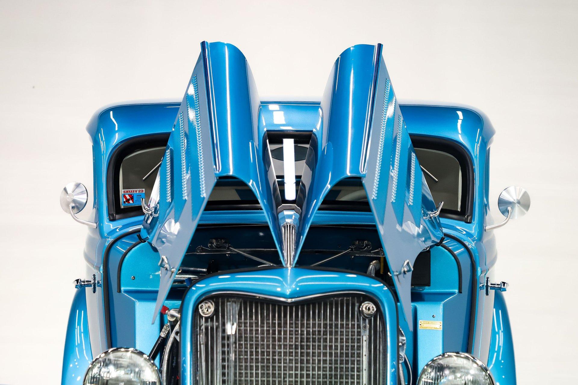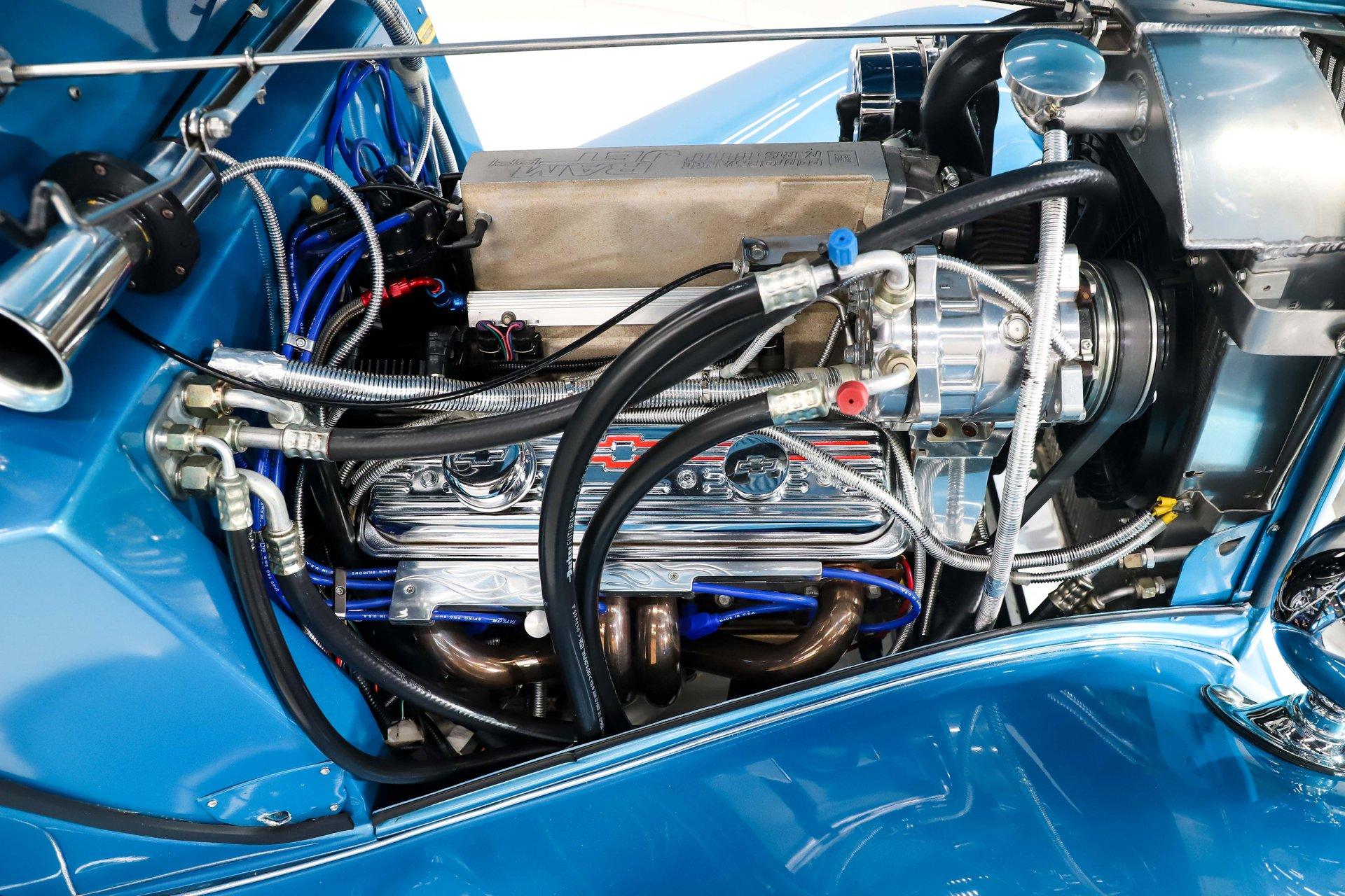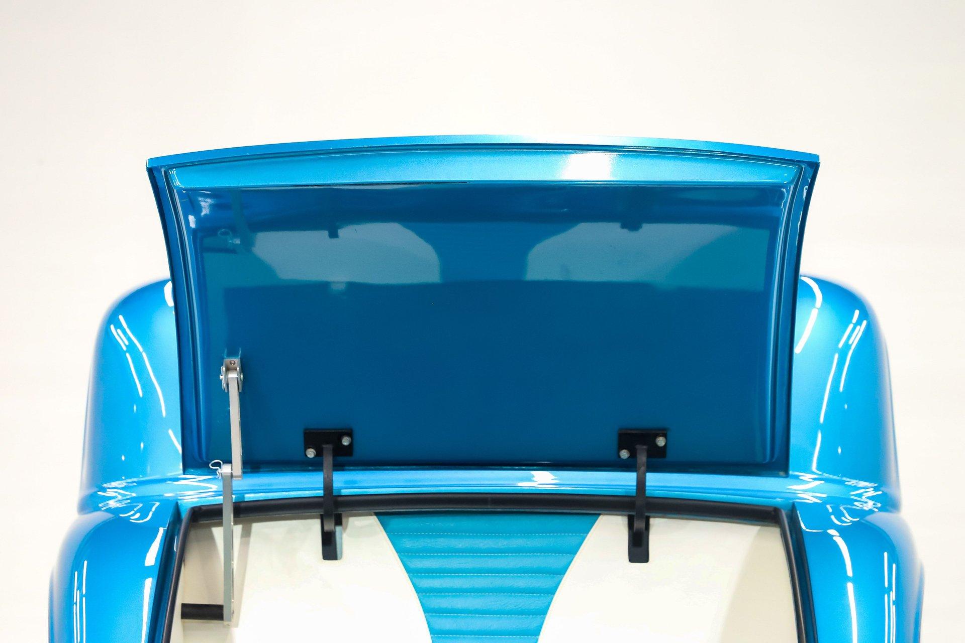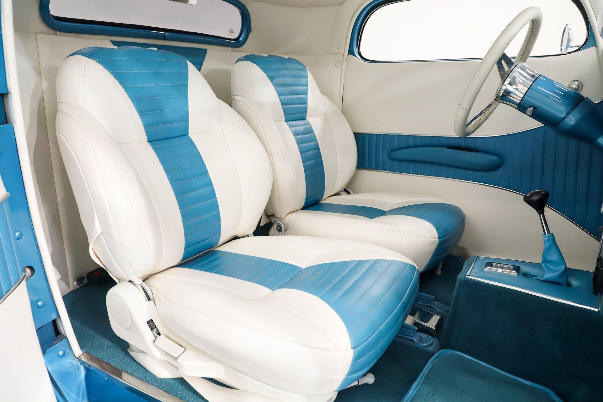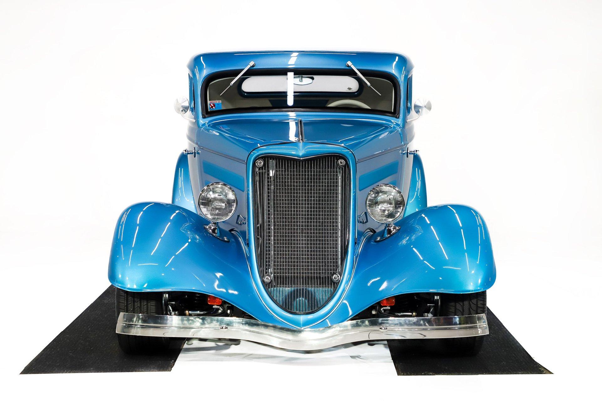 Celebrating our 65 year anniversary! This family owned and operated business was established in 1960, making us the oldest classic car dealership in America. Special thank you to all our customers for entrusting us to park the car of your dreams in your driveway while preserving automotive history for future generations to embrace and enjoy. -Grams family & Volo Museum staff INTRODUCTION: This is a beautiful 34 Ford hot rod that's going to turn heads, it's worthy of any car show and yet you can get in and drive as far as your heart desires! EXTERIOR: A full fendered, chopped top, three window coupe with suicide doors; your classic Hot Rod! This one has a very sturdy Outlaw fiberglass body that is absolutely straight with no damage and fits very nicely. The original style metal hood has louvered sides and the same type chrome handles as the original. It also has original style door handles and bumpers. Painted Bimini blue, it really stands out on this car. We have the paint code and extra paint. The metallic is laid out evenly and it's polished to a very smooth, glossy finish. It has chrome headlights with small turn signals down by the bumper brackets and in back it has LED taillights and a third brake light in the window. Staggered size Unique chrome wheels and much fatter tires in back really adds to the hot rod stance, up front is 14 inch and 15s in back. There is a small hitch receiver if you want to pull a small trailer for lawn chairs and a cooler. INTERIOR: The white interior is really refreshing against the beautiful blue paint. It has an American Auto Wire wiring system and fuse block. There are 12 volt receptacles, Specialty power windows and LED light indicators. A matched set of white face gauges are set in a nice billet bezel. The controls are clearly marked for the heat, air and lights. The Locar shifter is in the mini console along with a CD stereo, speakers are in the kick panels and behind the seats. The seats, door panels and inside of the cab are upholstered to match: white with blue trim. You do have some room behind the seats for extra storage. I like the white cushion grip wheel mounted on the tilt column. I'm 6 ft and fit in the car comfortably. ENGINE COMPARTMENT: That's a crate motor from GM Performance, a 350 Ramjet making 351 horsepower. It features a nostalgic looking fuel injection system with modern technology, stainless headers and electronic ignition. Dressed up with some chrome, it's a nice looking motor. It has a Powermaster alternator and polished compressor. A big aluminum radiator and electric fan keeps it cool. It even features an ooga horn! TRUNK COMPARTMENT: It has a power lift trunk lid with a billet hinges. Inside is boxed and upholstered like the interior with a carpeted floor. A car cover and headrests are included. UNDERSIDE: It was built using a TCI chassis which includes a boxed frame. Up front it has polished tubular control arms and swaybar, coil over adjustable gas shocks, rack and pinion steering. In back it has a 4 link set up with polished tubular control arms and panhard bar, and coilover adjustable gas shocks. Custom aluminum fuel tank, dual exhaust with cherry bomb style mufflers sounds great and it has power disc brakes at all four wheels with polished calipers. Looking up at the motor it is clean with a Powermaster high torque starter. The 700R4 overdrive automatic has a B&M remote oil cooler. A custom drive shaft leads back to the Currie Fab 9 rear end. There are also remote battery terminals so you never get locked out of the trunk because of a dead battery. It's actually very, very clean under here, I'm still having a hard time believing this car has more than 1,000 miles on it. SERVICE: We take pride in our cars and reputation. Therefore, we built a 2 million dollar, 10,000 square ft service center, and hired a team of technicians to service the essentials on every car we sell. CONCLUSION: The colors on this one really sets it apart from the others, the compliments will be nice but the true pleasure will be getting out on the road and driving it, it's dialed in and TurnKey ready! For nearly 30 years, I, Jay Grams, have personally written the highlights for almost every car in our collection. What I provide is my professional opinion based on my experience with these vehicles. However, opinions can vary, and I strongly recommend a personal inspection to form your own view. Our sales team is always available to answer any questions you may have. One great option is to request a personalized walk-around video, where we can showcase the car and share our team’s insights. **Our cars are displayed within a museum setting. If you are interested in a specific vehicle, please schedule an appointment with a salesperson to view it. Without an appointment, there is an admission fee to enter the showroom. If you decide to purchase a car, your admission will be refunded, and you'll receive a one-year museum membership. ☎️ 815 385 3644 9-5 central ? Sales@volocars.com Answered ASAP Air conditioning Power brakes 4 wheel disc Rack & pinion Fuel injection Cruise control Power windows Power lift trunk Stereo system Tilt wheel