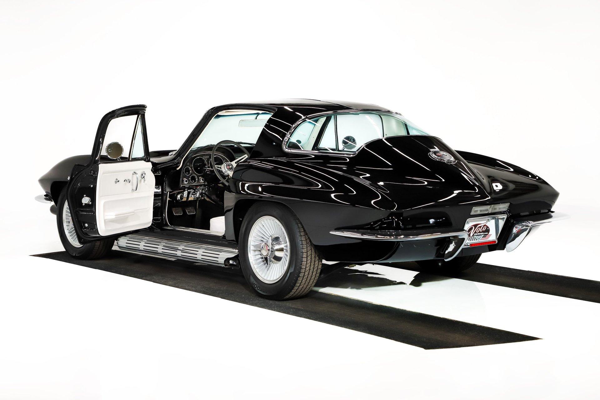 INTRODUCTION: Stunning! A factory black 67 Corvette coupe with a white stinger and white interior, wow! Loaded with upgrades and original features making it a head turning, street cruising, smile maker! EXTERIOR: Factory Tuxedo Black, code 900 on the trim tag. It may have been born black, but it didn't look this slick in 1967! The body is absolutely laser straight and fits right. The headlights open properly, the doors click shut. I did not see any cracks, damage or body work. It is polished like glass, even the white stinger stripe is smooth to the touch. The antenna was removed and the taillights were flush mounted for a clean look. The LED taillights are behind smoked lenses and there are also brake lights/turn signals on the license plate frame. The bumpers are good, emblems, mirrors and handles are excellent. The side exhaust not only looks great but sounds great too! It's rolling on the best looking C2 wheels, all silver with spinners. Each one is wearing a Hankook tire. INTERIOR: The bright white interior is stunning against the black paint! It has real fresh looking carpet front to back and underneath that is sound deadener/insulation. The dash pads are covered in ostrich leather, the instrument panel is very clean and all the gauges including the clock are upgraded with digital. The retro stereo fits in the factory hole and the air conditioning controls and vents were neatly installed. It was upgraded with a tilt column with a deluxe wheel. The center console looks really nice and it has a factory type 4-speed shifter and power window switches. The interior moldings, headliner, visors and door panels are all a crisp bright white. The seats are reupholstered in genuine white leather and the seat belts are even white! ENGINE COMPARTMENT: It is a nice looking engine compartment with some upgrades. At the heart of it is a 327 engine with 4 bolt mains, large journals, aluminum intake and electronic ignition. An upgraded aluminum radiator, proper shroud and expansion tank keeps it running cool. It also features power steering and a modern air conditioning system. Dressed up with some extra chrome, finned valve covers and the bottom side of the hood is gloss black. UNDERSIDE: This was body off the frame restored. Independent suspension front and back was rebuilt and upgraded with a fiberglass rear leaf spring. The steering was rebuilt. It has disc brakes at all four wheels, lines and hoses were replaced, e-brake is hooked up. Looking up at the motor it has a chrome oil pan. The Muncie 4-speed trans is correct 1967. In back is a 3.08 posi rear end. SERVICE: We take pride in our cars and reputation. Therefore, we built a 2 million dollar, 10,000 square ft service center, and hired a team of technicians to service the essentials on every car we sell. CONCLUSION: This Corvette is for the person that wants one of the best looking C2s you'll ever see anywhere. It's a Corvette to get in drive and enjoy, shifting those gears, hearing those side pipes and watching people's heads turn! Vehicles are displayed in a museum setting. Admission applies without an appointment and is refunded with purchase, including a one-year museum membership. 815 385 3644 9-5 central Sales@volocars.com Answered ASAP Air conditioning Power steering 4 wheel disc 3.08 posi Power windows Leather seats Tilt wheel Retro stereo Digital gauges Stinger hood Side exhaust Knock off wheels