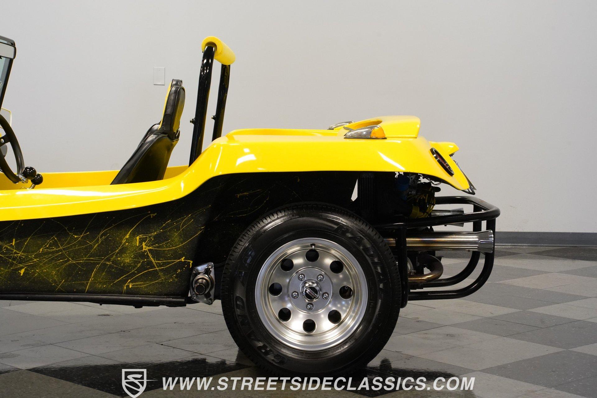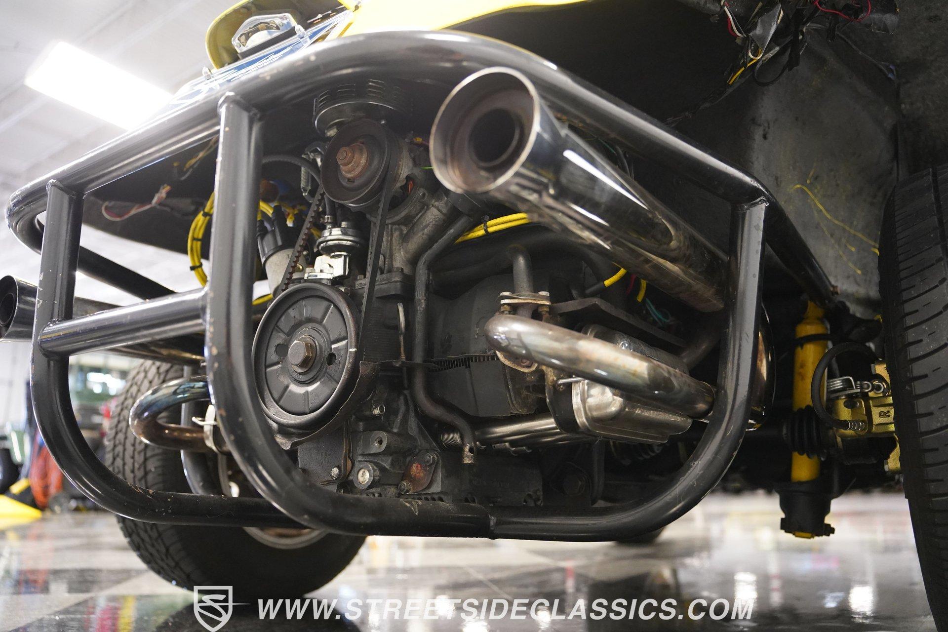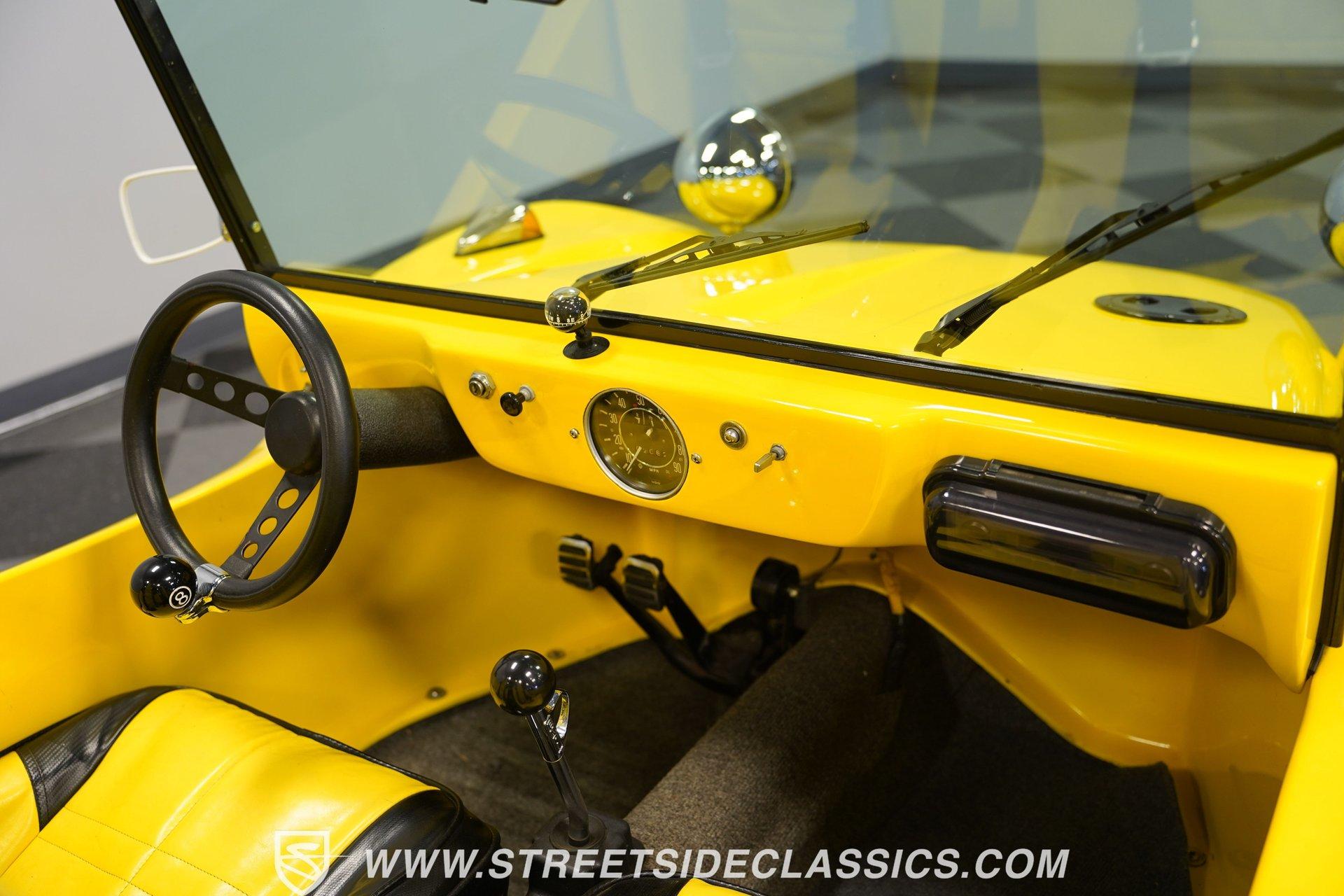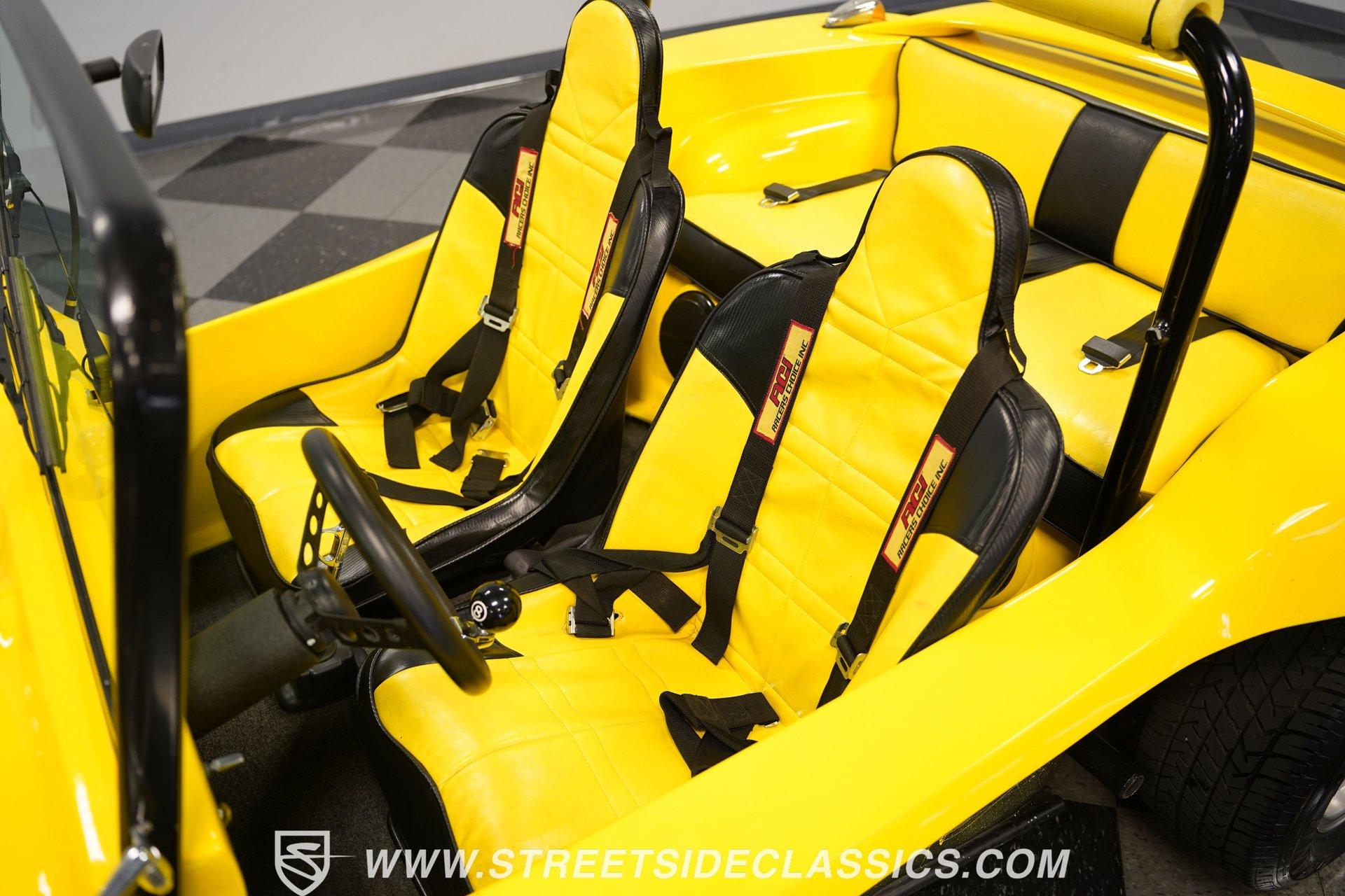 Experience the spirit of adventure and nostalgia with the 1970 Volkswagen Dune Buggy, a vehicle that embodies freedom, fun, and the carefree joy of open-air driving. This classic dune buggy, painted in a vibrant yellow inspired by Appalachian State, tells a story of rugged exploration and spirited drives along sandy trails and coastal roads. Owning this buggy is not just about transportation; it's about making a statement and creating unforgettable memories. If you've ever dreamed of owning a piece of automotive history that stands out and delivers smiles, this 1970 Volkswagen Dune Buggy might just be the perfect match for you. Step inside to find a well-maintained, simple interior that balances comfort and style. The black and yellow vinyl bucket seats, equipped with four-point ACI harnesses, offer secure and supportive seating. The matching rear seats come with lap belts, while the small steering wheel adds to the sporty feel. The dashboard features a VDO gauge and a compass, complemented by a dual stereo head unit with 6x9 speakers mounted under the rear seats. Outdoor carpet covers the floorboards, complete with drain plugs to prevent water accumulation, making it practical for beach or off-road use. Under the hood, this dune buggy is powered by a rebuilt 1600cc dual port engine paired with a 4-speed manual transmission, offering a great running and driving experience. The engine starts easily, idles smoothly, and delivers reliable performance with well-sorted mechanicals. The driver-quality engine bay shows good condition with belts in great shape, and the steering and brakes feel responsive and solid, ensuring confidence behind the wheel. This buggy is ready to hit the trails or the streets with spirited enthusiasm. Highlights 1970 Volkswagen Dune Buggy 1600cc Dual Port Engine 4-Speed Manual Transmission Well Restored With Slight Use Black And Yellow Vinyl Bucket Seats Four-Point ACI Harnesses Dual Stereo Head Unit With CD Player Marine-Grade Weather-Resistant Radio 15" American Racing Wheels Front And Rear Disc Brakes Fiberglass Body With Rollbar And Spoiler Rear Trailer Hitch Included Previously Repaired Frame Financing Available Vehicle Protection Plans Available Worldwide Shipping This 1970 Volkswagen Dune Buggy offers a unique blend of classic charm, practical features, and dependable performance. Whether you're a collector, an enthusiast, or someone seeking a fun weekend cruiser, this buggy is a great buy. Don't miss your chance to own a piece of motoring history that delivers excitement every time you drive. Call, email, or come visit our showroom today!
