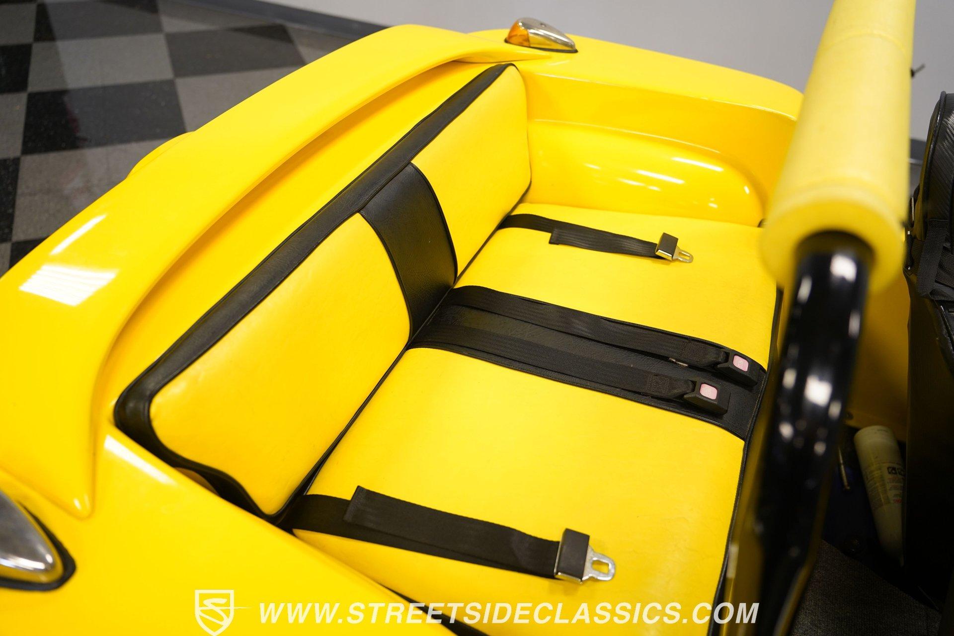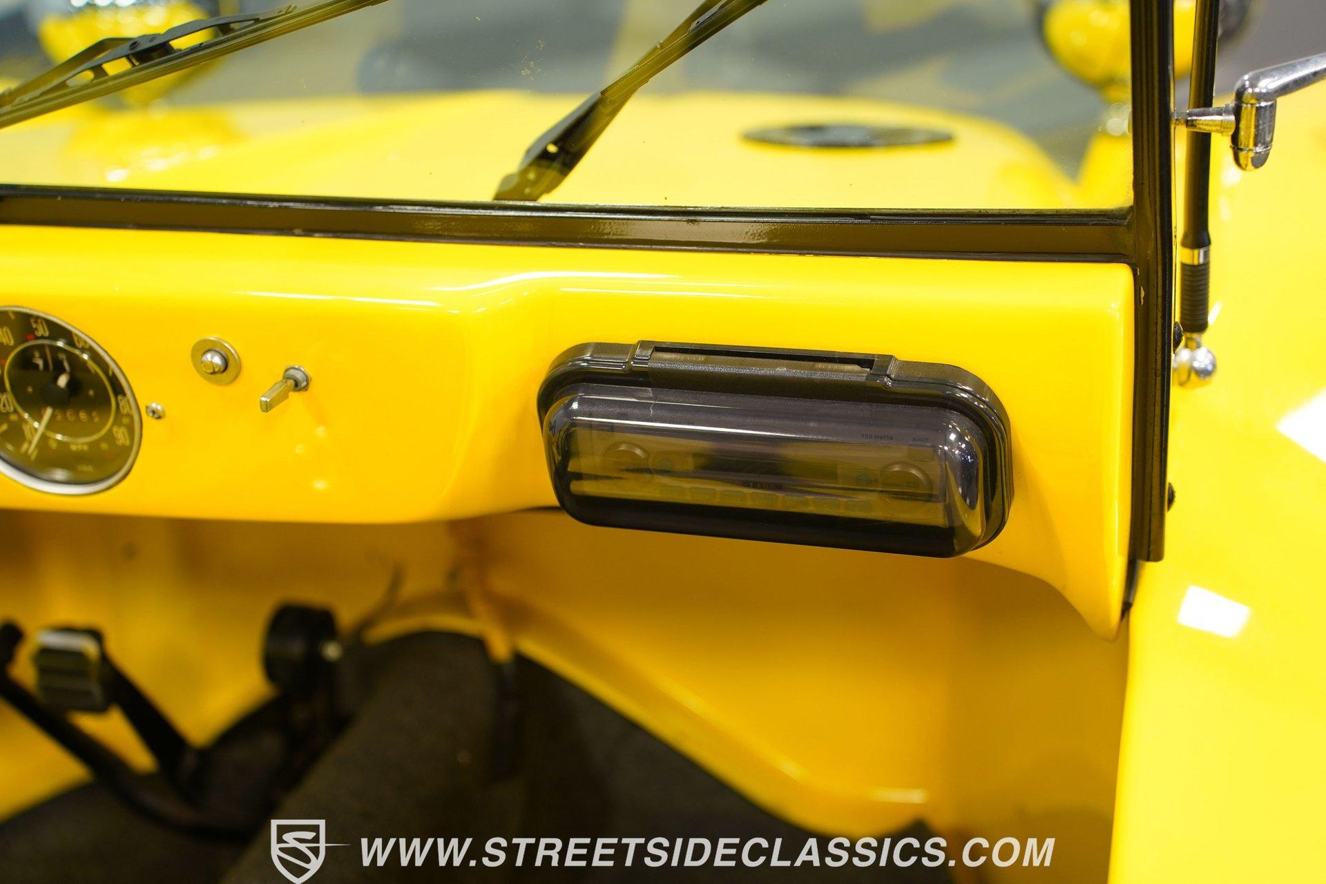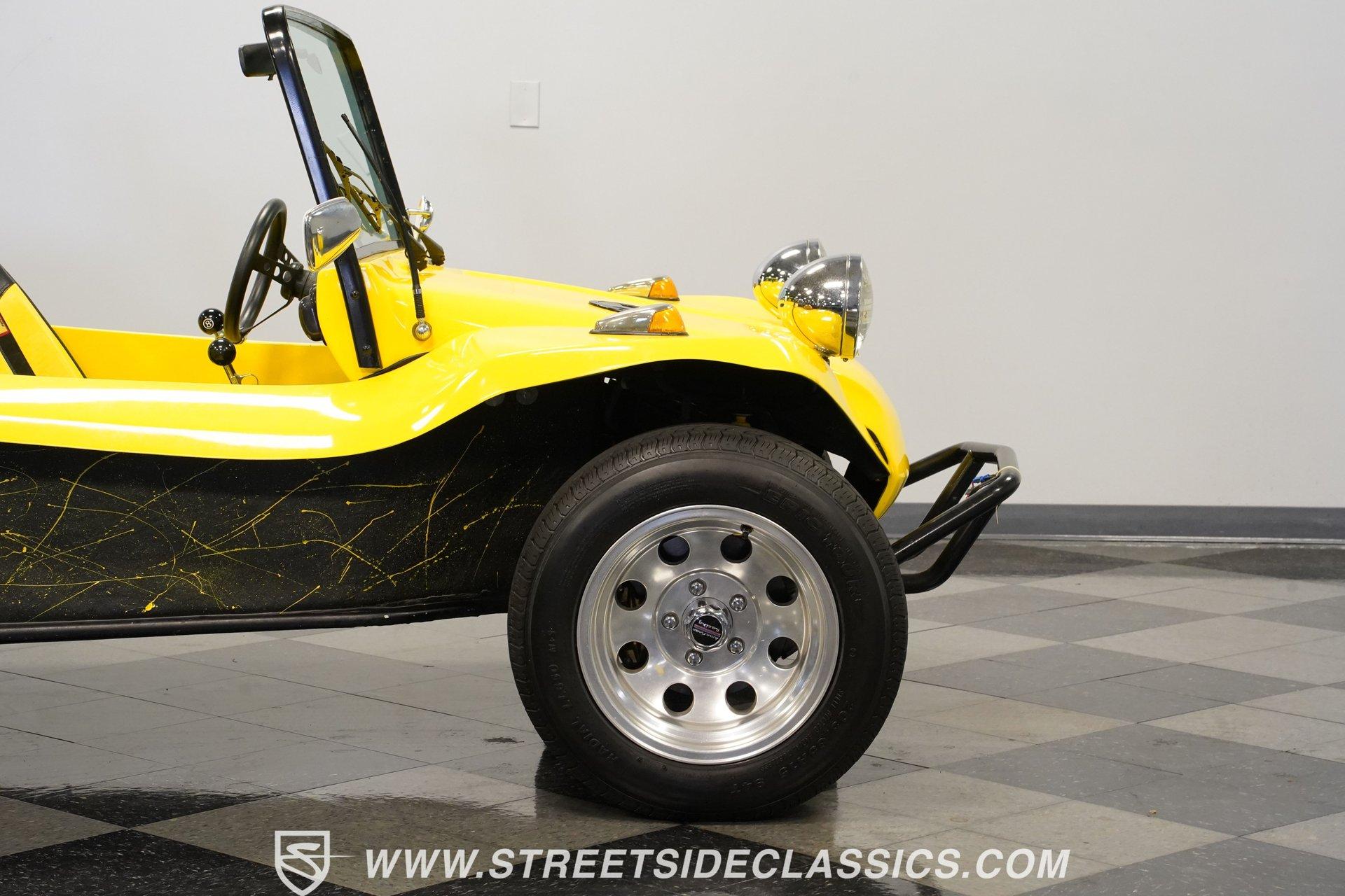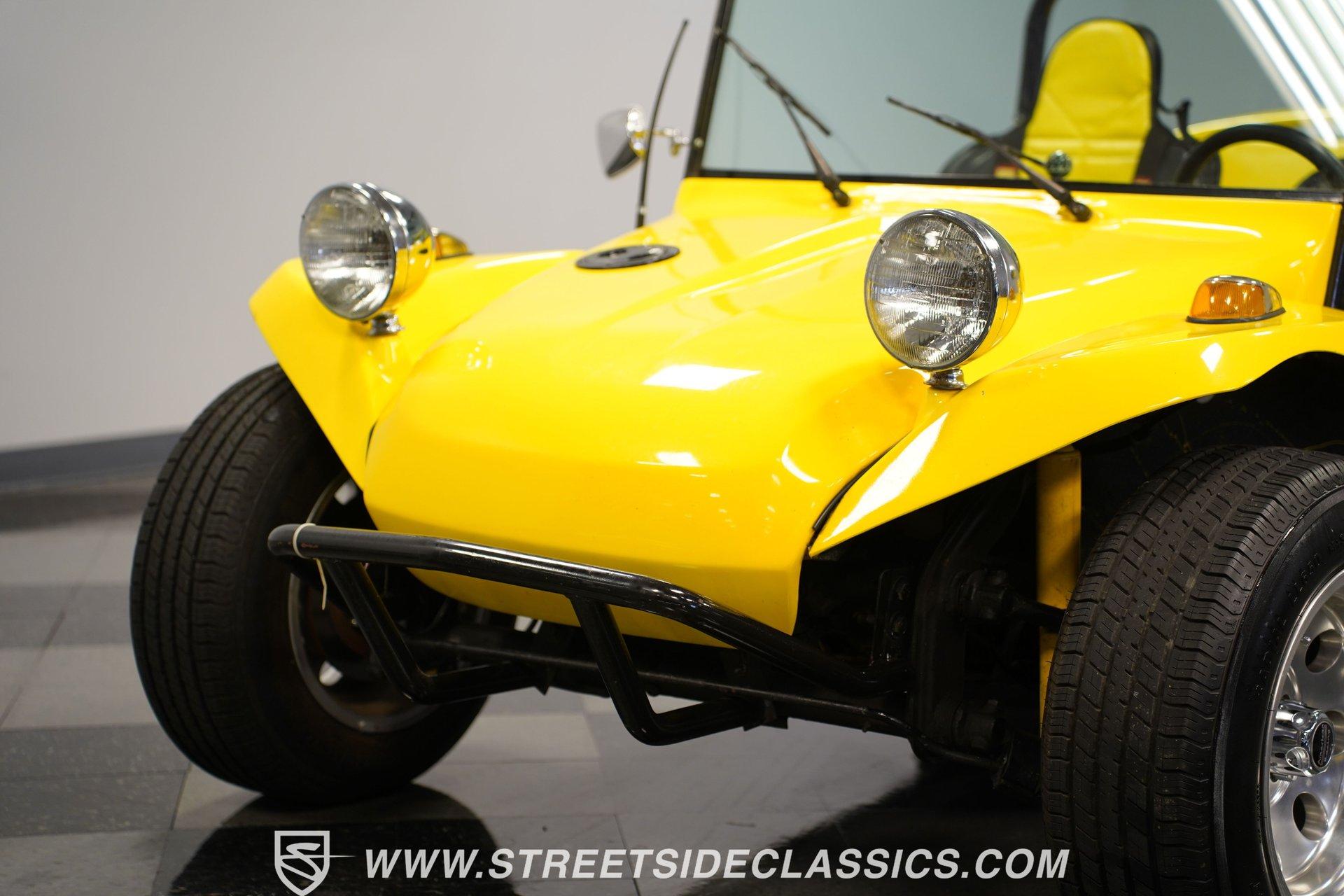 Experience the spirit of adventure and nostalgia with the 1970 Volkswagen Dune Buggy, a vehicle that embodies freedom, fun, and the carefree joy of open-air driving. This classic dune buggy, painted in a vibrant yellow inspired by Appalachian State, tells a story of rugged exploration and spirited drives along sandy trails and coastal roads. Owning this buggy is not just about transportation; it's about making a statement and creating unforgettable memories. If you've ever dreamed of owning a piece of automotive history that stands out and delivers smiles, this 1970 Volkswagen Dune Buggy might just be the perfect match for you. Step inside to find a well-maintained, simple interior that balances comfort and style. The black and yellow vinyl bucket seats, equipped with four-point ACI harnesses, offer secure and supportive seating. The matching rear seats come with lap belts, while the small steering wheel adds to the sporty feel. The dashboard features a VDO gauge and a compass, complemented by a dual stereo head unit with 6x9 speakers mounted under the rear seats. Outdoor carpet covers the floorboards, complete with drain plugs to prevent water accumulation, making it practical for beach or off-road use. Under the hood, this dune buggy is powered by a rebuilt 1600cc dual port engine paired with a 4-speed manual transmission, offering a great running and driving experience. The engine starts easily, idles smoothly, and delivers reliable performance with well-sorted mechanicals. The driver-quality engine bay shows good condition with belts in great shape, and the steering and brakes feel responsive and solid, ensuring confidence behind the wheel. This buggy is ready to hit the trails or the streets with spirited enthusiasm. Highlights 1970 Volkswagen Dune Buggy 1600cc Dual Port Engine 4-Speed Manual Transmission Well Restored With Slight Use Black And Yellow Vinyl Bucket Seats Four-Point ACI Harnesses Dual Stereo Head Unit With CD Player Marine-Grade Weather-Resistant Radio 15" American Racing Wheels Front And Rear Disc Brakes Fiberglass Body With Rollbar And Spoiler Rear Trailer Hitch Included Previously Repaired Frame Financing Available Vehicle Protection Plans Available Worldwide Shipping This 1970 Volkswagen Dune Buggy offers a unique blend of classic charm, practical features, and dependable performance. Whether you're a collector, an enthusiast, or someone seeking a fun weekend cruiser, this buggy is a great buy. Don't miss your chance to own a piece of motoring history that delivers excitement every time you drive. Call, email, or come visit our showroom today!