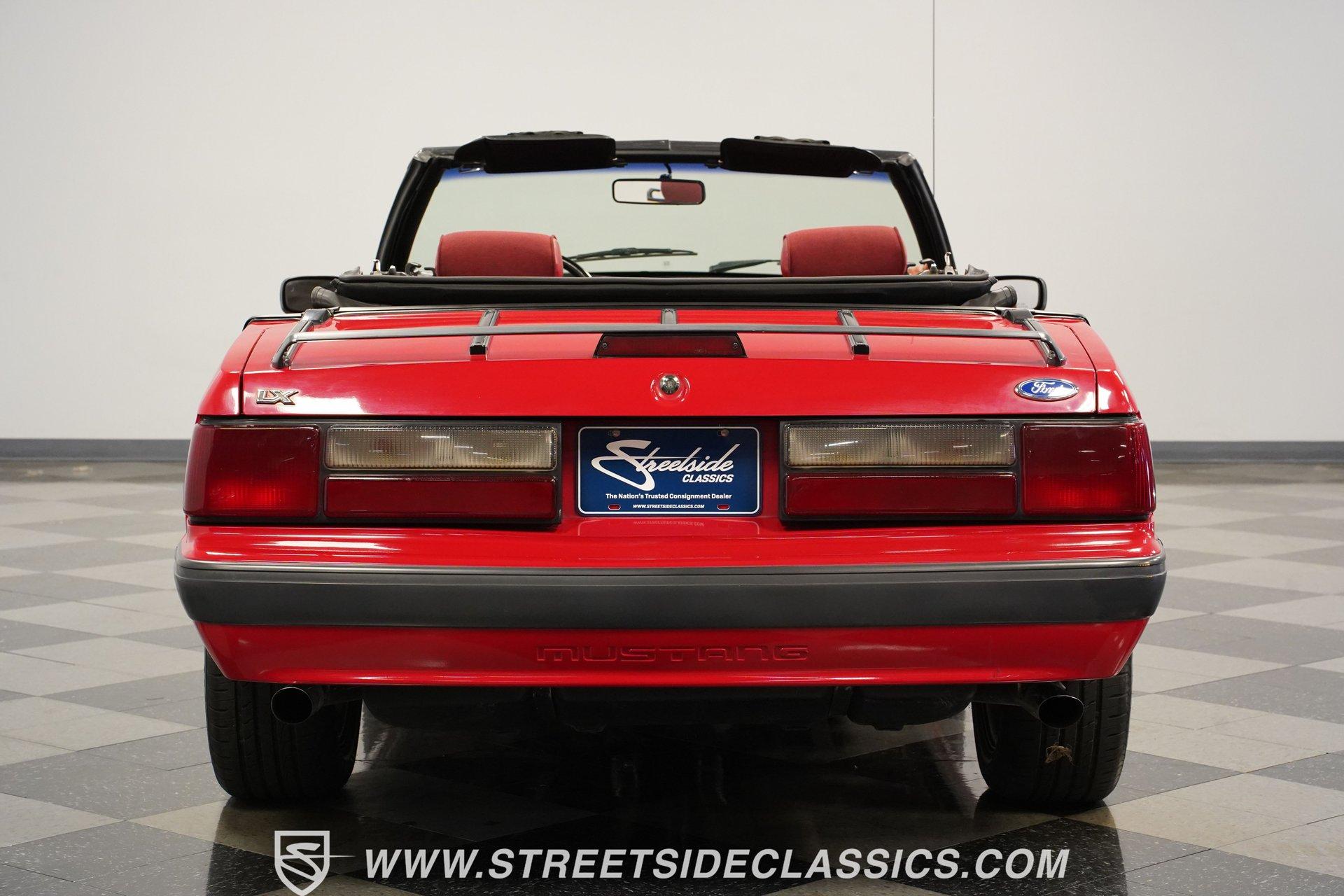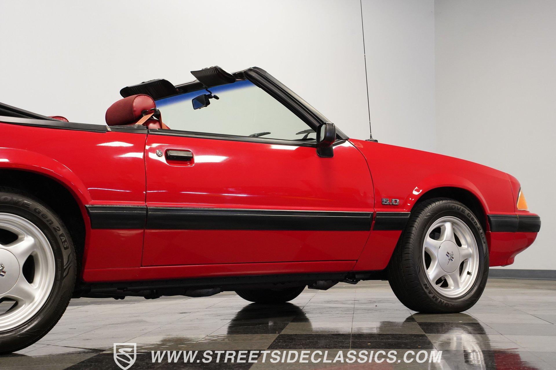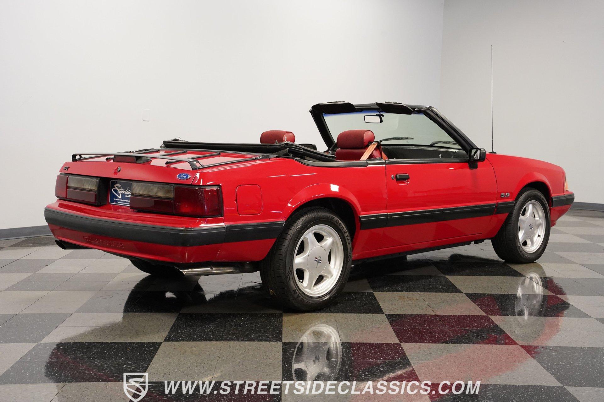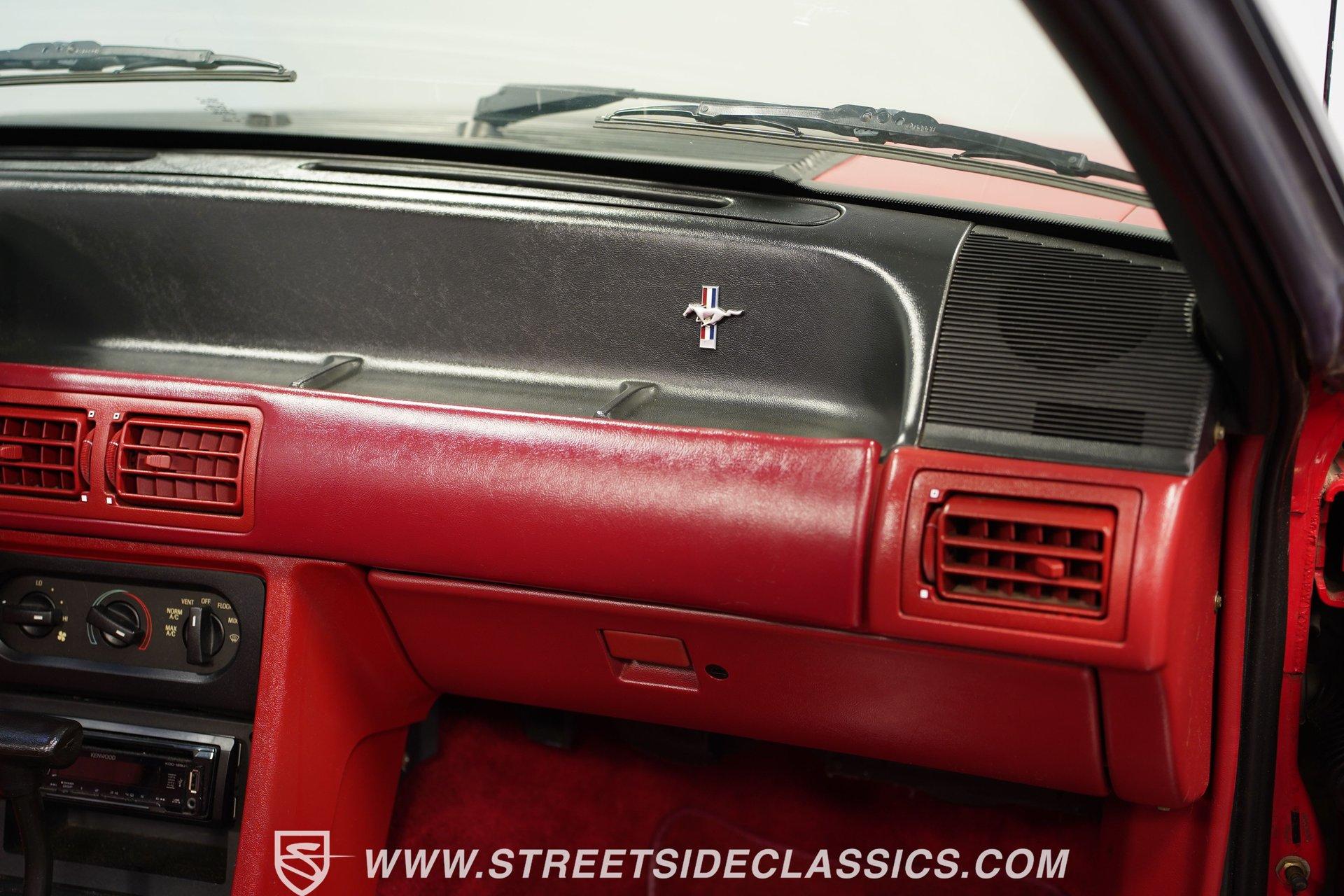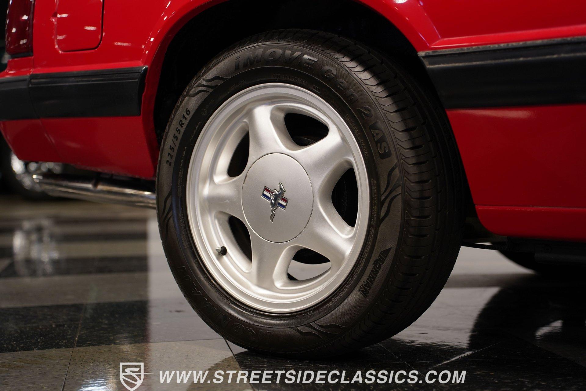 Experience the thrill of the open road with a true American icon that embodies freedom, style, and a rich heritage. This 1991 Ford Mustang LX Convertible captures the essence of the early '90s muscle car era, blending classic design with a spirited driving experience. Whether you're cruising on a sunny weekend or turning heads at a car show, this Mustang tells a story of passion and performance. Its vibrant red exterior and convertible top invite you to enjoy every mile with the wind in your hair. This is more than just a car; it's a statement. Discover why this Mustang deserves a place in your garage today. Step inside and appreciate the comfortable and well-preserved interior that reflects the Mustang's classic roots. The cloth and vinyl seats provide a cozy yet supportive ride, complemented by a factory dash and gauges in good shape. Enjoy modern convenience with power locks, power windows, and an upgraded aftermarket radio, all housed within a cabin that maintains its original charm. The driver seat shows some wear, yet the doors close crisply, and the glass and seals remain in excellent condition, making every drive a pleasant experience. Under the hood, this Mustang is powered by a 5.0L HO V8 engine equipped with electronic fuel injection, delivering a smooth and responsive ride. Paired with a 4-speed automatic transmission, the car offers effortless shifting and reliable performance. The drivetrain includes front disc brakes, power steering, and dual exhaust with FlowMaster mufflers, enhancing both handling and sound. The suspension and brakes have been well maintained, ensuring a confident and enjoyable drive whether cruising city streets or hitting the highway. Highlights: 1991 Ford Mustang LX Convertible 5.0L HO V8 Engine With EFI 4-Speed Automatic Transmission Power Convertible Top Dual Exhaust With FlowMaster Mufflers Front Disc Brakes, Rear Drum Brakes Power Steering And Power Brakes Comfortable Cloth And Vinyl Interior Aftermarket Radio Installed Power Locks And Power Windows Cruise Control Included No Rust, Driver Quality Underside New Convertible Top Installed Financing Available Vehicle Protection Plans Available Worldwide Shipping This 1991 Ford Mustang LX Convertible offers an exciting blend of classic style and functional performance, making it a fantastic choice for collectors and enthusiasts alike. It's ready to provide memorable road trips and weekend cruises with confidence. Don't miss your chance to own a piece of Mustang history. Call, email, or come visit our showroom today!