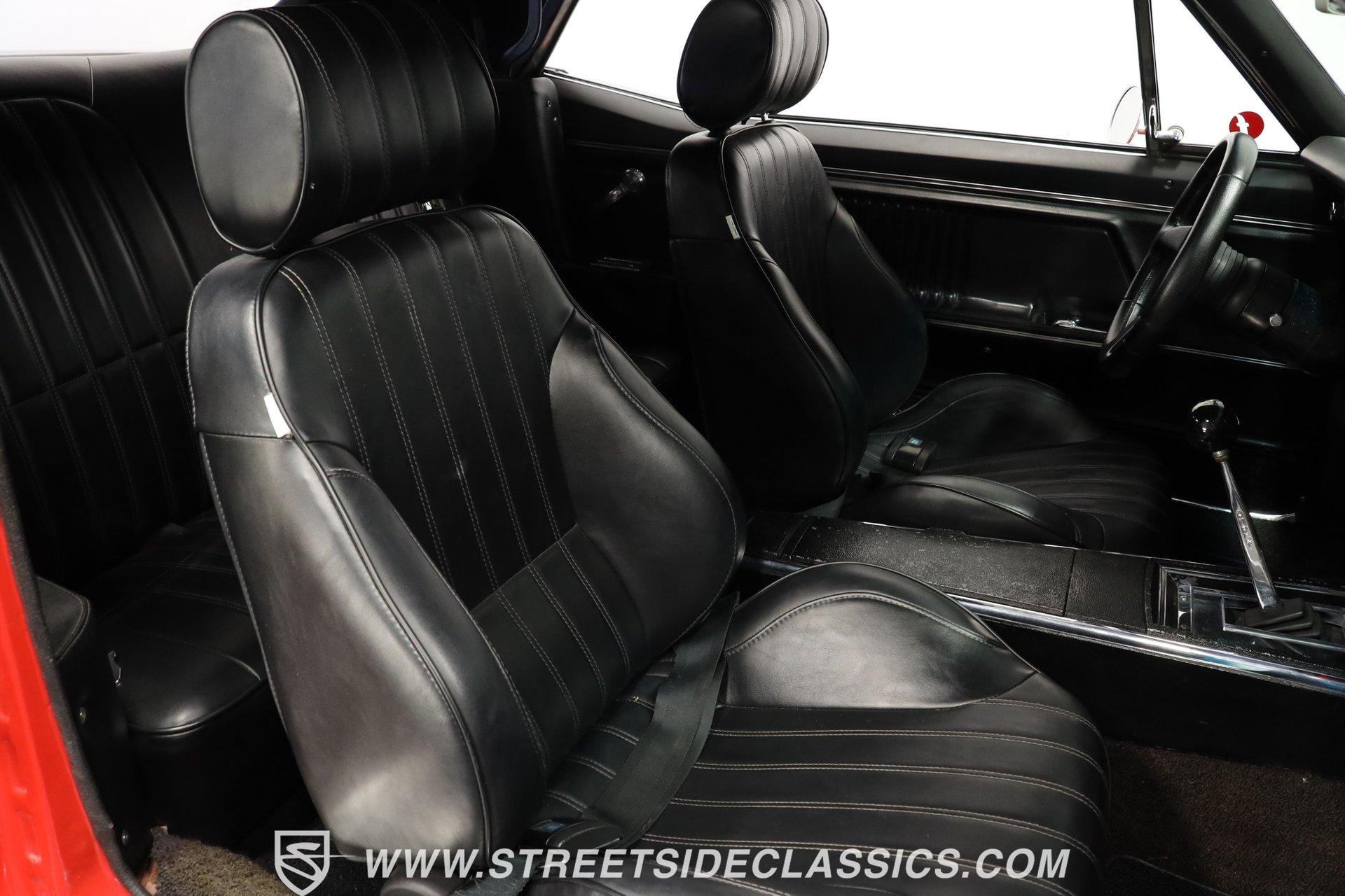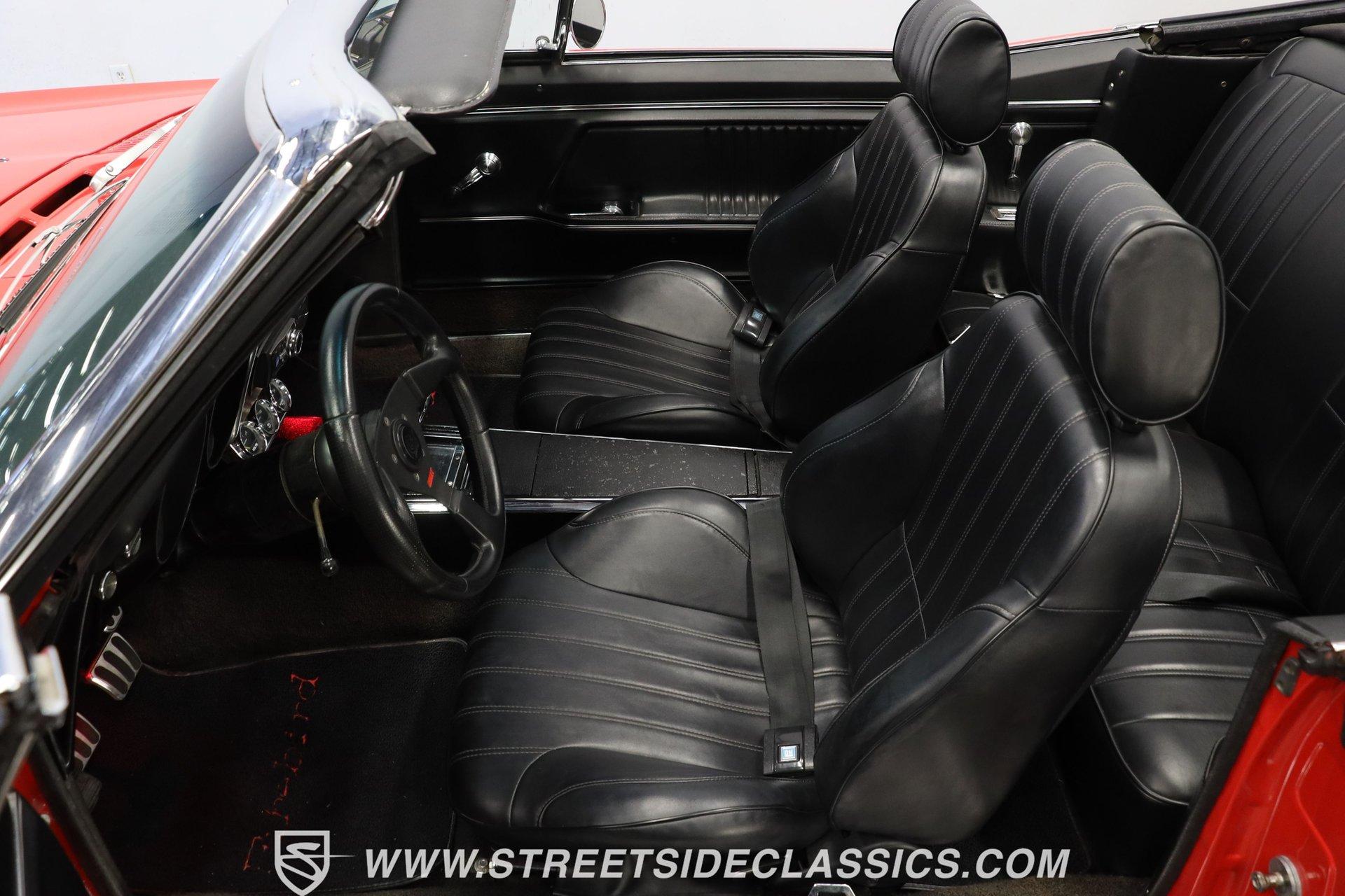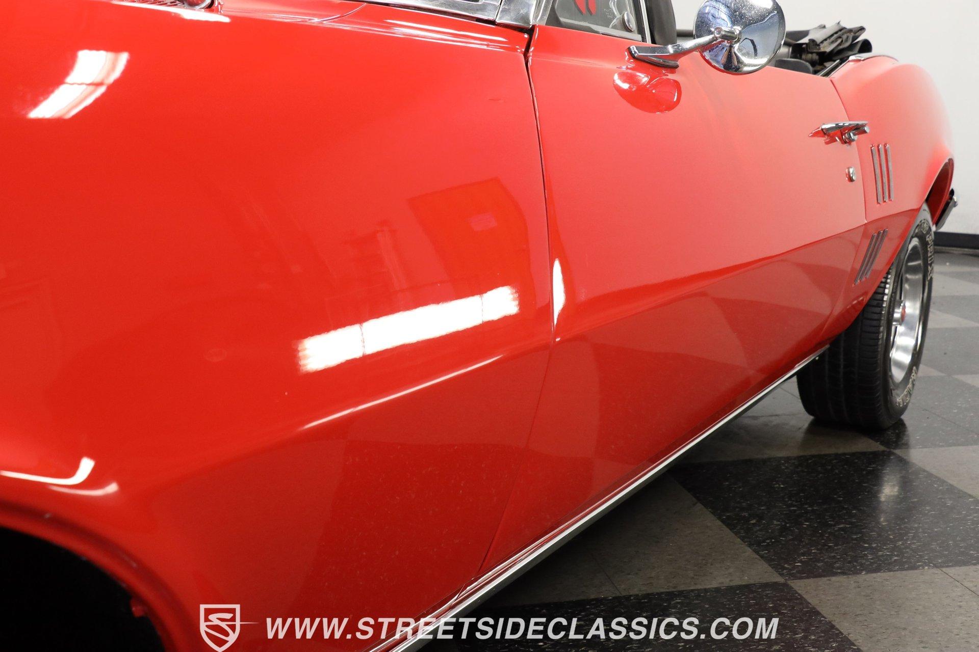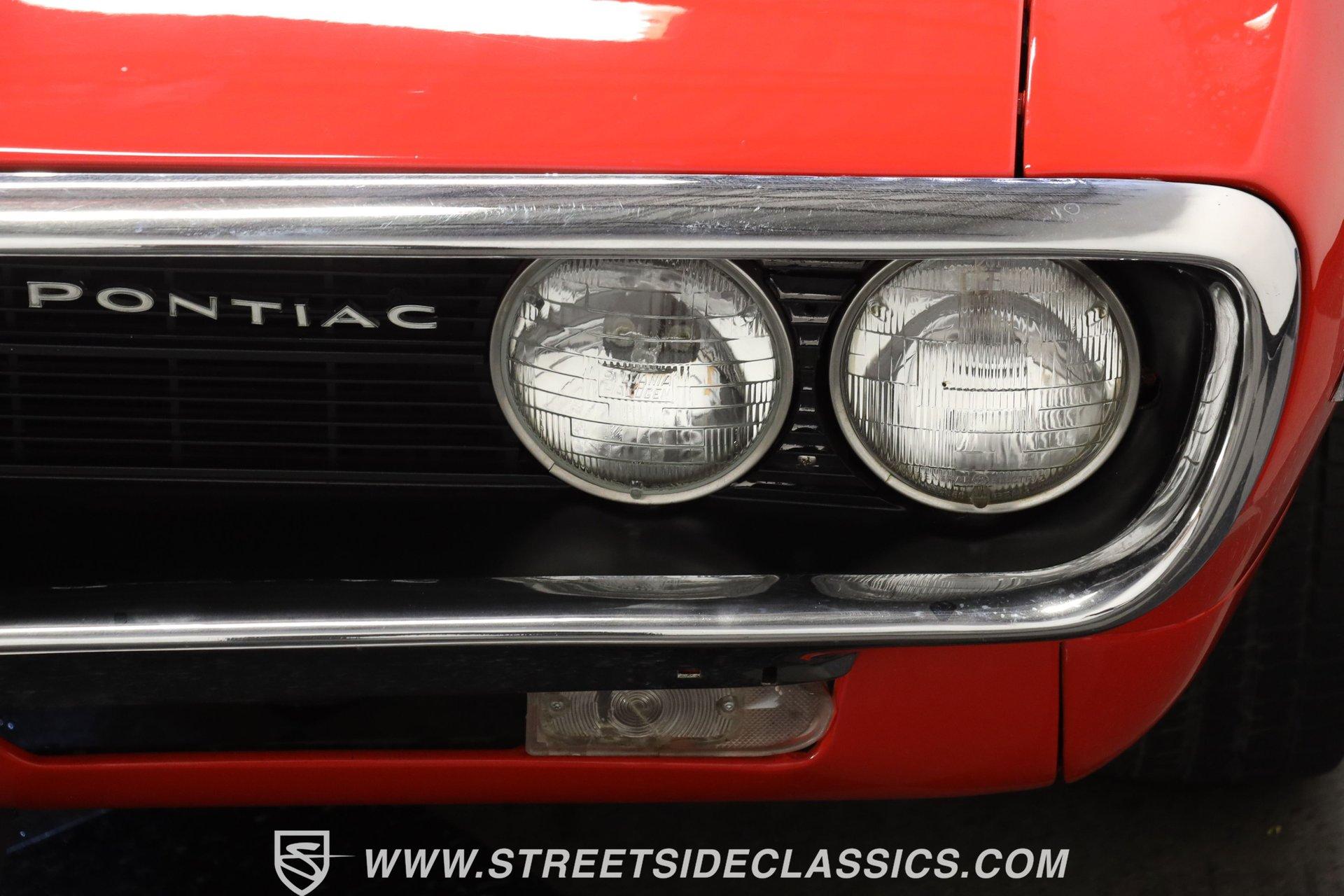 Gone but not forgotten, this fully repainted, bright red 1967 Pontiac Firebird Convertible reminds us why this car was so beloved. With its sculpted Coke bottle styling, twin square grilles, and quad headlights, this first-year droptop dynamo is a stellar example of the final year for the Firebird's first generation. Inside, we find a well-done black vinyl interior. Upgraded with a pair of supportive and supple Procar bucket seats, this Firebird features a power-assisted steering and an aftermarket Grant GT steering wheel. At the same time, a woodgrain center stack is home to sliding heat controls and a trio of auxiliary gauges. An upgraded Alpine AM/FM/AUX head unit also utilizes a SiriusXM Satellite Radio receiver hidden in the glovebox, if you ever get tired of listening to the rumble of the exhaust. Under the hood, we find a clean engine bay featuring a Target Master/Goodwrench 350 cubic-inch crate V-8 engine. A single four-barrel Edelbrock carburetor feeds the small block, while a set of long-tube headers expel spent gases via a true dual exhaust. That power is routed through a Saginaw four-speed manual transmission before being sent out to the ten-bolt rear end. HIGHLIGHTS: First Year Firebird Manual Convertible Top Full Red Repaint SBC 350 CID Crate V8 Edelbrock Carburetor Long Tube Headers Dual Exhaust Turbo Mufflers Saginaw Four Speed Manual Ten Bolt Rear 14 Inch PMD Wheels Grand Prix Tires Black Vinyl Interior Procar Bucket Seats Grant GT Wheel Alpine AM/FM/AUX Head Unit SiriusXM Power Steering Power Brakes Front Disc Brakes Owner's Manual This 1967 Pontiac Firebird Convertible features a factory-style suspension. Classic fourteen-inch Pontiac Motor Division wheels are shod in 205/70R-1 Grand Prix Radial G/T tires. Power brakes, highlighted by a pair of front discs, stand ready to scrub off speed at a moment's notice. If you are one of the millions who have adored the iconic Firebird from start to finish, this first-year first-gen droptop is the car you've been searching for. Don't wait, call today! We can assist you with getting an Extended Vehicle Service Plan from Freedom Warranty, which provides comprehensive coverage that can save thousands of dollars on unexpected repairs. Inquire for more details and pricing!