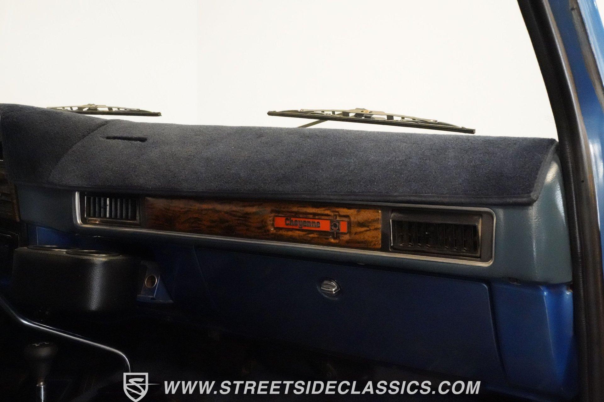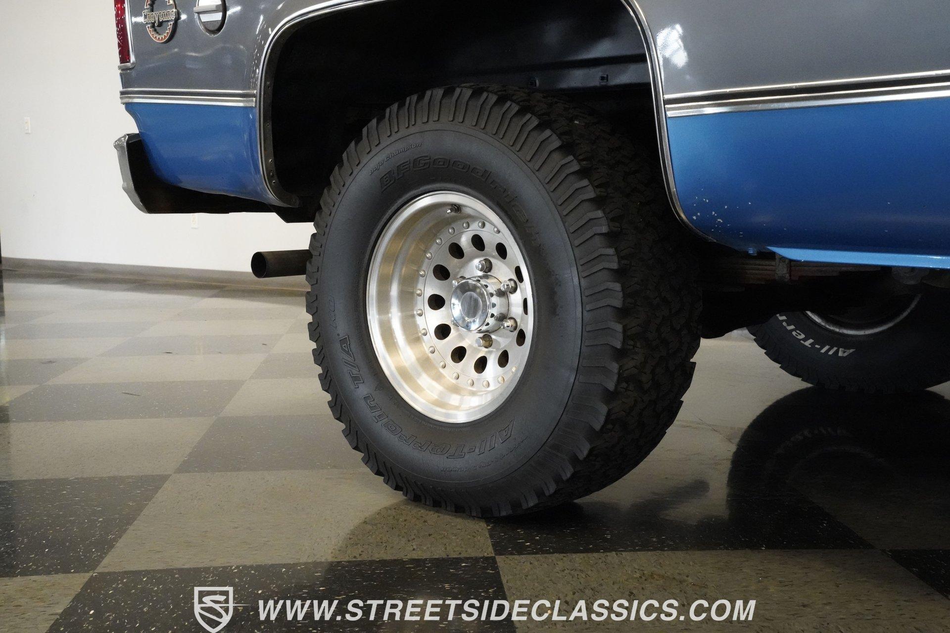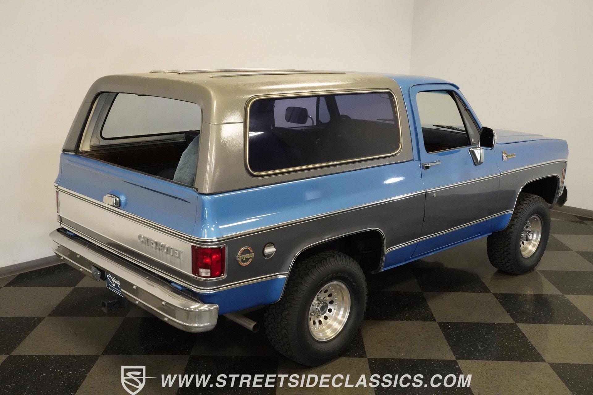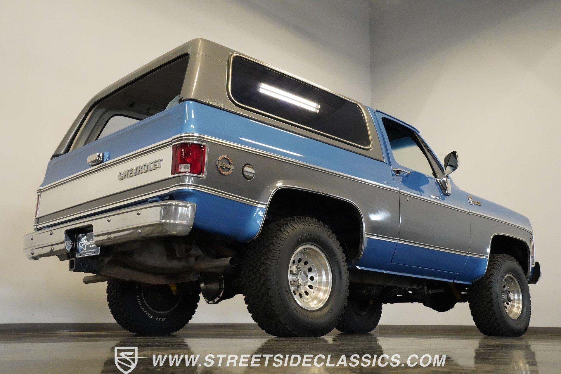 Step back in time and embrace the rugged charm of a true American classic with this 1976 Chevrolet Blazer. This iconic 4x4 represents the spirit of adventure and freedom that defined an era, inviting you to create new memories on and off the road. With its distinctive two-tone blue and gray paint scheme and premium Cheyenne-level trim, this Blazer stands out with character and style. Whether you're a seasoned enthusiast or a newcomer to classic trucks, this vintage Chevy offers a unique blend of nostalgia and capability that's hard to resist. Inside, the Blazer features vinyl bucket seats both front and rear, accented with bright highlights true to the Cheyenne trim package. The interior showcases wood-like trim and practical door map pockets, adding a touch of authenticity and functionality. While the cabin shows its age with original carpeting and some wear, it retains a stock style that invites restoration or customization to suit your personal taste. Under the hood, you'll find a robust 350 cubic inch engine equipped with a Holley single 4-barrel carburetor mounted on an Edelbrock EPS intake manifold. This powertrain is paired with a 4-speed Muncie manual transmission, delivering smooth shifting and engaging driving dynamics. The drivetrain includes a solid Dana 44 front axle and a 12-bolt rear axle, complemented by power disc brakes up front and power drum brakes at the rear. Rugged BFG All-Terrain tires on 15-inch Outlaw II style wheels complete the capable off-road package. Highlights 1976 Chevrolet Blazer Model 350 Cubic Inch Engine Holley Single 4-Barrel Carburetor Edelbrock EPS Intake Manifold 4-Speed Muncie Manual Transmission Dana 44 Front Axle 12-Bolt Rear Axle Power Disc Front Brakes Power Drum Rear Brakes Power Steering Air Conditioning (Blowing Cold) Two-Tone Blue and Gray Paint Vinyl Bucket Seating Front and Rear BFG All-Terrain Tires Financing Available Vehicle Protection Plans Available Worldwide Shipping This 1976 Chevrolet Blazer is a solid opportunity to own a classic off-road vehicle with great potential. It combines nostalgic appeal with practical upgrades and solid mechanicals. Call, email, or come visit our showroom today!
