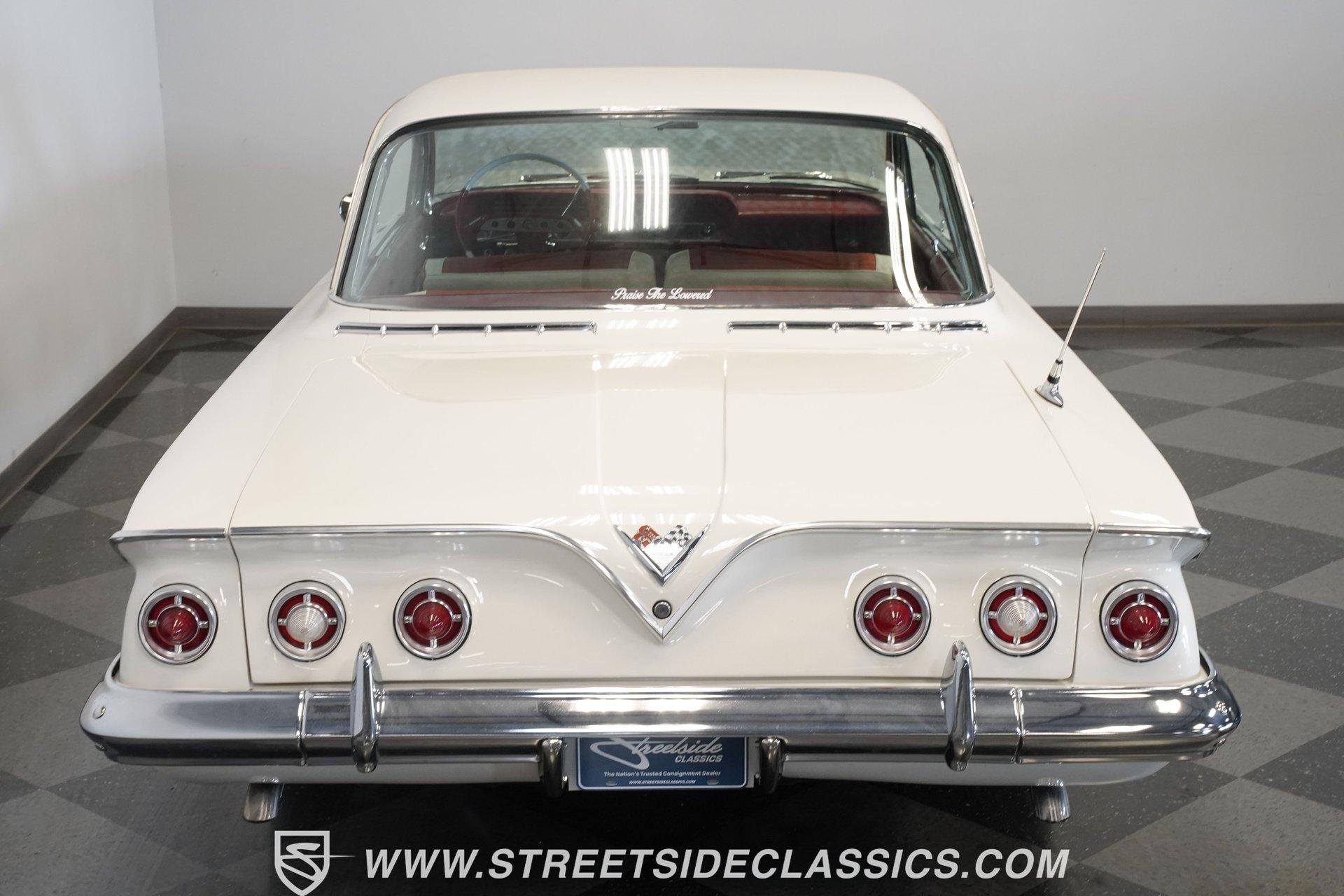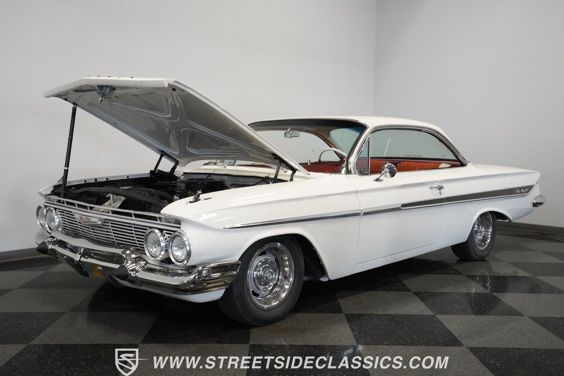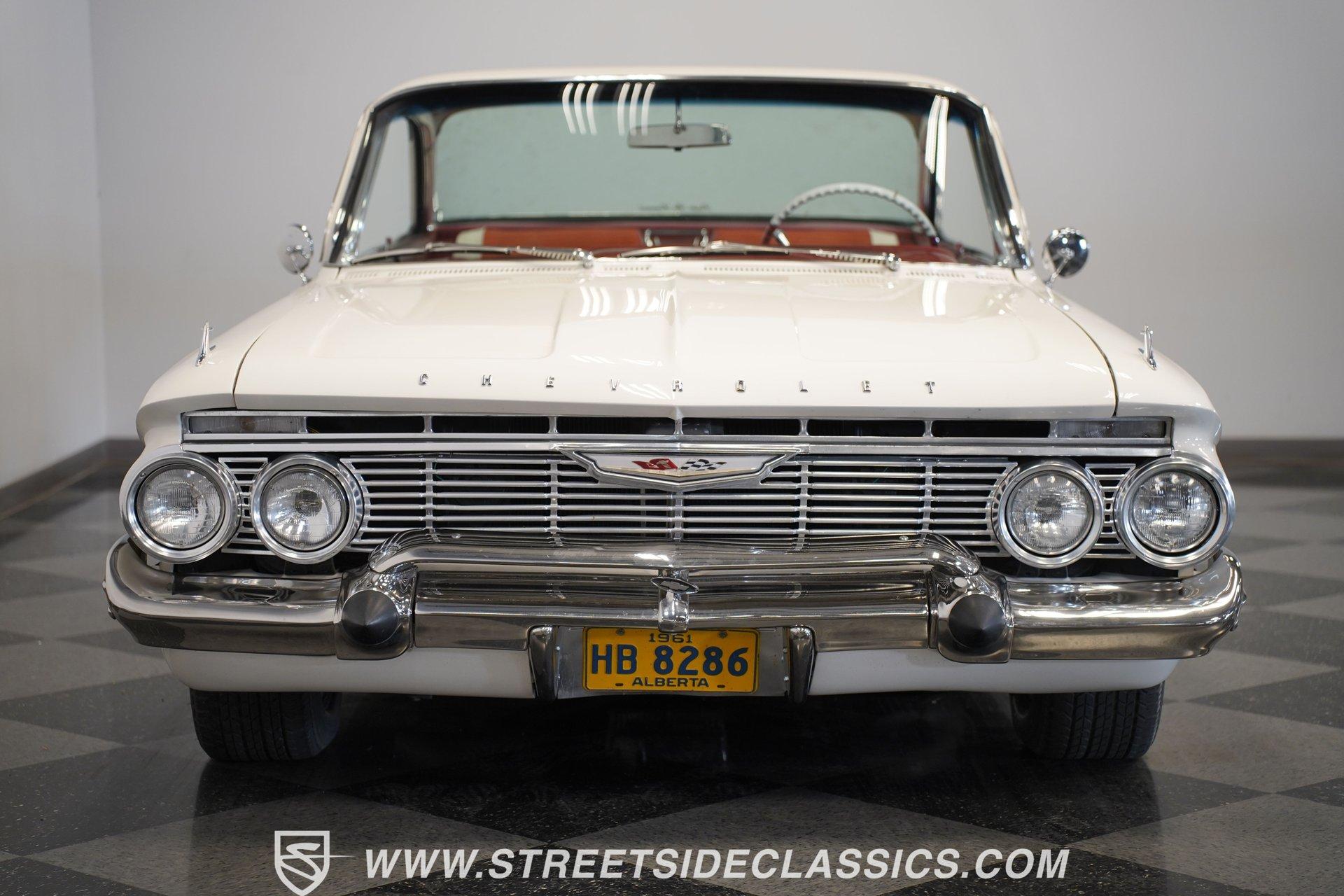 Step back into an era where style met innovation in the form of a timeless classic. This 1961 Chevrolet Impala with the sought-after "Bubble Top" roof is more than a car; it's a statement of elegance and a symbol of cruising freedom. The sleek lines, the distinctive roof design, and the polished presence on the road evoke memories of a golden age of motoring. Whether a collector or an enthusiast, this Impala invites you to own a piece of automotive history that continues to turn heads and spark conversations. Inside, the interior offers a clean, stock-style ambiance that respects the original design while providing comfort. The upholstery is in very good condition, featuring cloth inserts complemented by vinyl, and the headliner, door panels, and carpet all present beautifully. The front dash has been repainted with minimal imperfections, and a chrome steering column with tilt steering adds a touch of classic charm. Modern convenience meets vintage style with a retro-style stereo deck equipped with AM/FM and auxiliary input. Under the hood, this Impala houses a robust 348 V8 engine paired with a single 4-barrel carburetor and a smooth-shifting 700R4 4-speed automatic transmission. The drivetrain upgrades enhance reliability and driving enjoyment, while power disc front brakes and power drum rear brakes provide confident stopping power. The suspension and frame have been restored to factory condition, ensuring a solid and enjoyable ride. Rally-style 15-inch wheels wrapped in Stinger Radial GTF DOT tires complete the performance package. Highlights 1961 Chevrolet Impala Bubble Top Roof 5,111 Miles (Unknown Type) 348 V8 Engine With Single 4 Barrel Carburetor 700R4 4-Speed Automatic Transmission Power Disc Front Brakes, Power Drum Rear Brakes Power Steering With Tilt Steering Column Cloth And Vinyl Interior Upholstery Retro-Style AM/FM Radio With Auxiliary Input Rally-Style 15" Wheels With Beauty Rings Full Repaint With High-Gloss Finish Chrome Steering Column And Shifter Restored Factory Frame And Suspension Clean Stock Style Interior No Excessive Fluid Leaks Noted Financing Available Vehicle Protection Plans Available Worldwide Shipping This 1961 Chevrolet Impala is a fantastic opportunity to own a classic that blends original style with thoughtful upgrades. It's ready to cruise, show, or simply enjoy as a prized possession. Don't miss your chance to experience the charm and performance of this iconic vehicle. Call, email, or come visit our showroom today!
