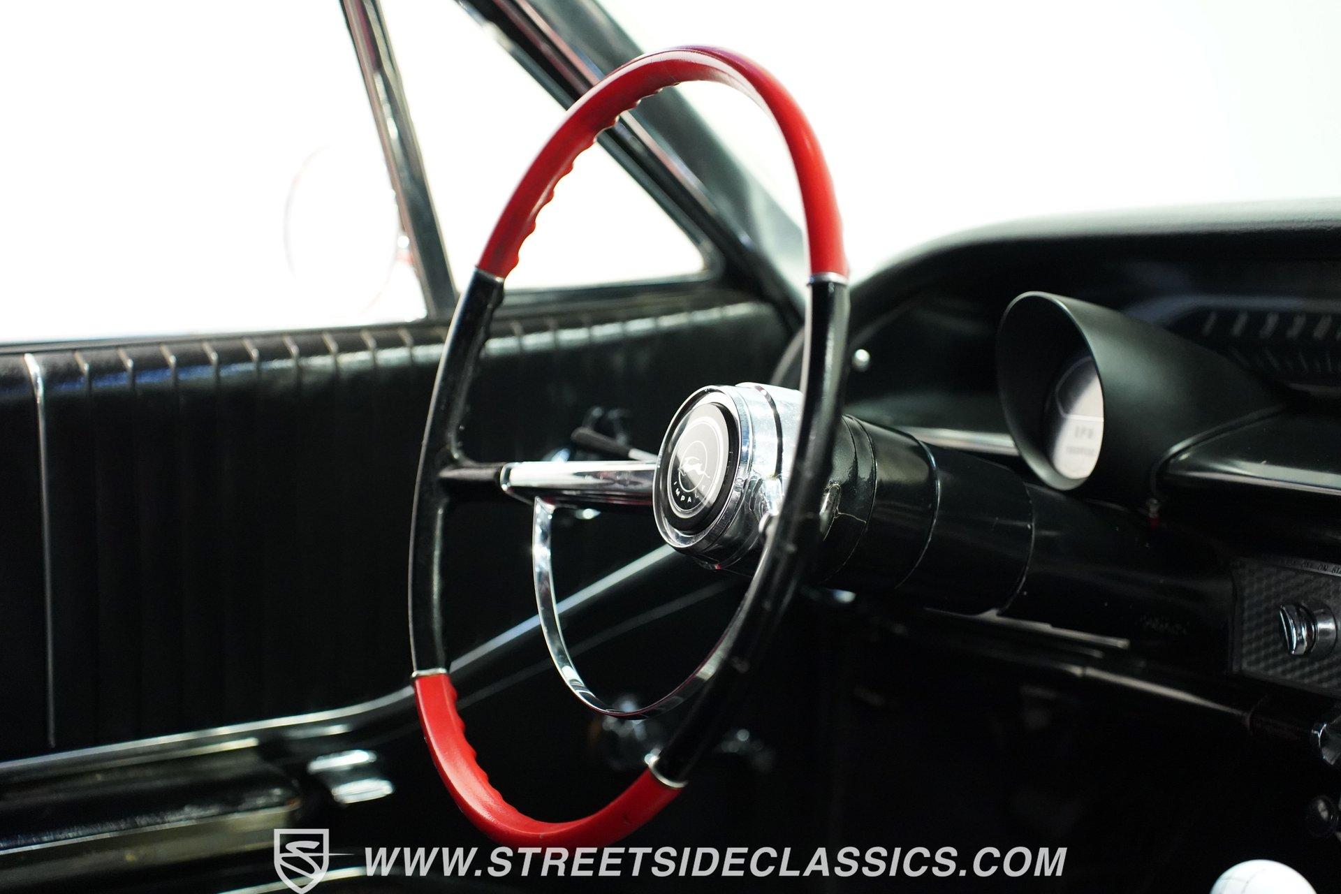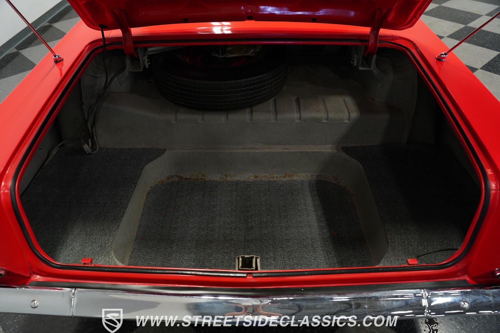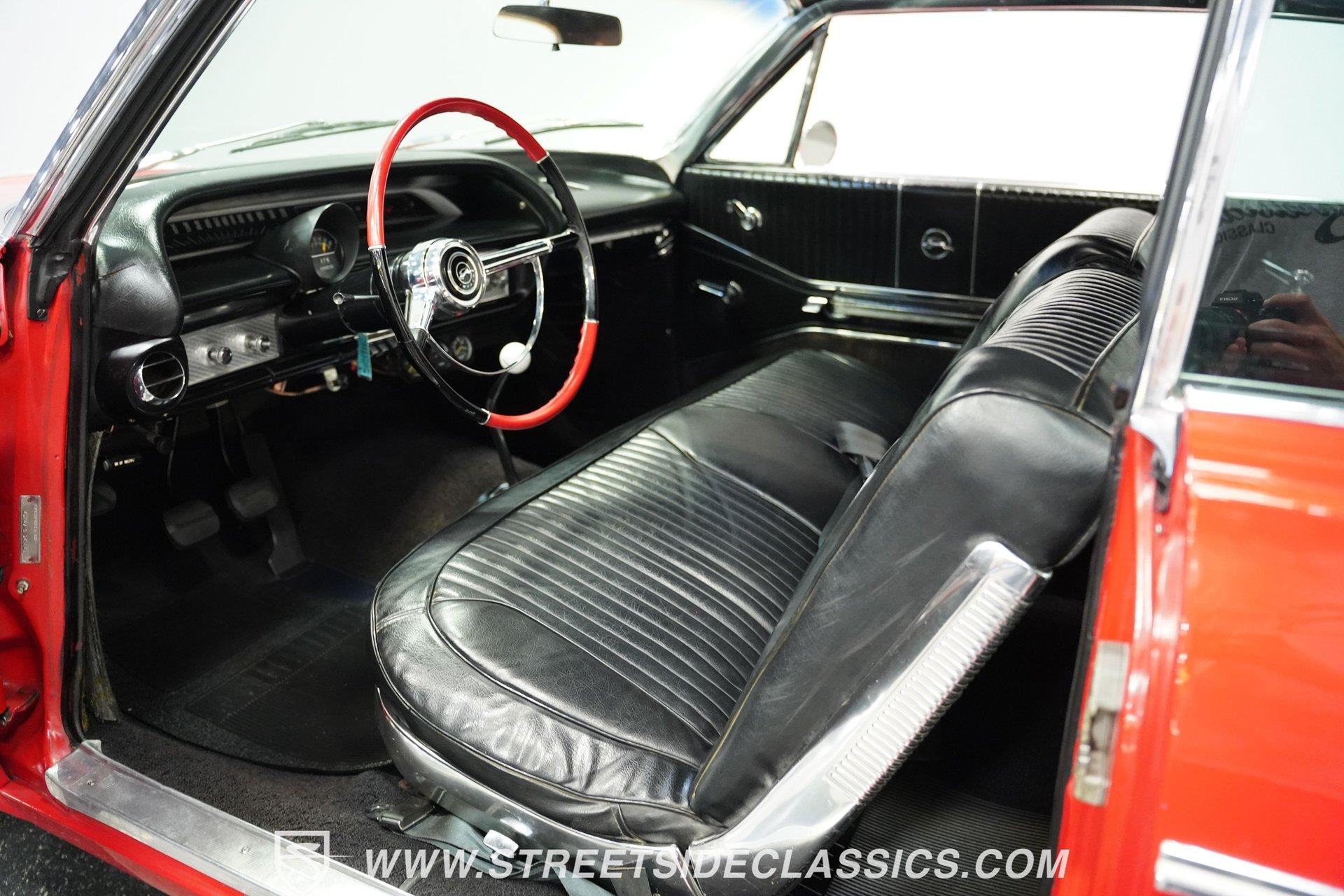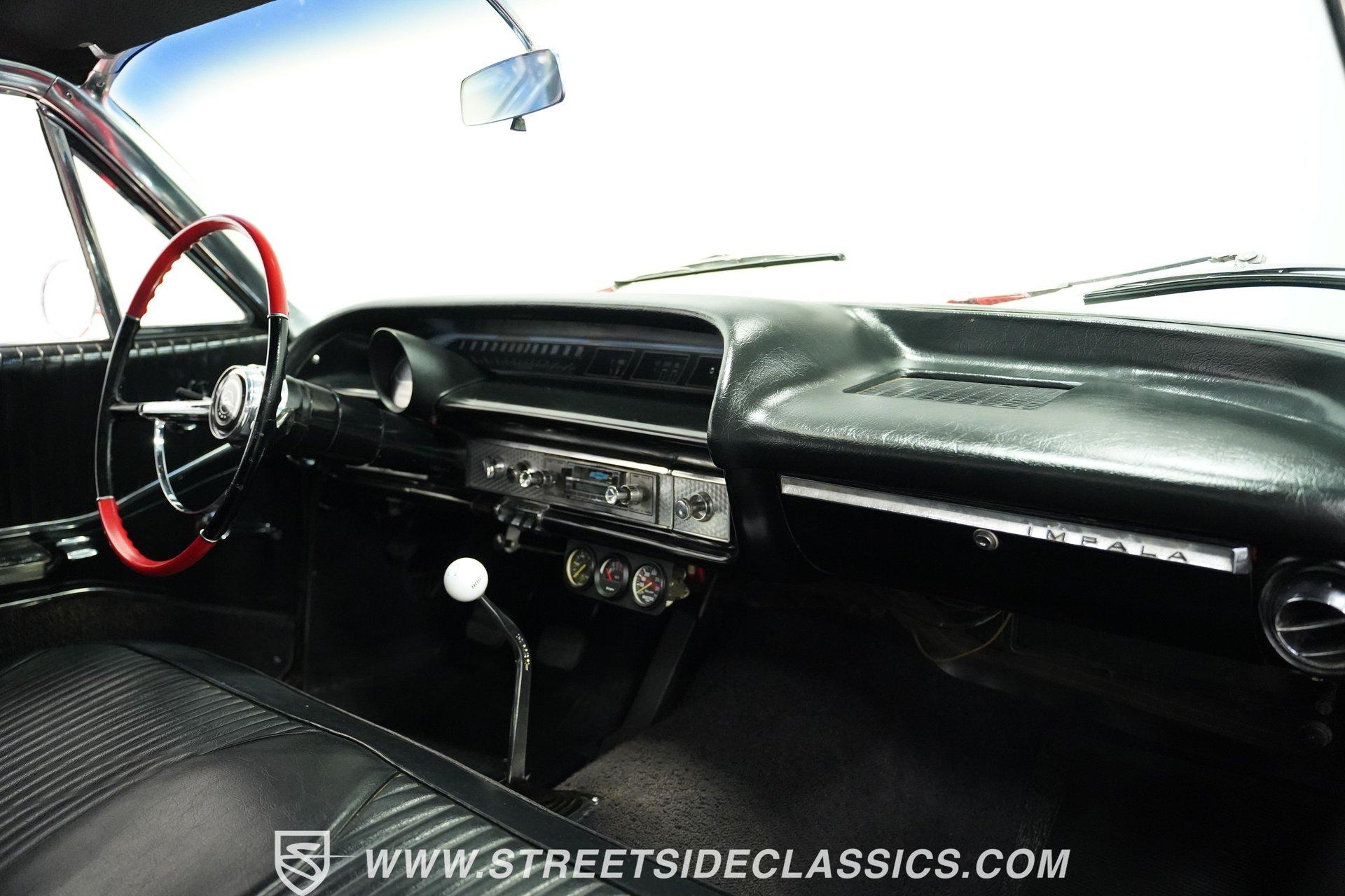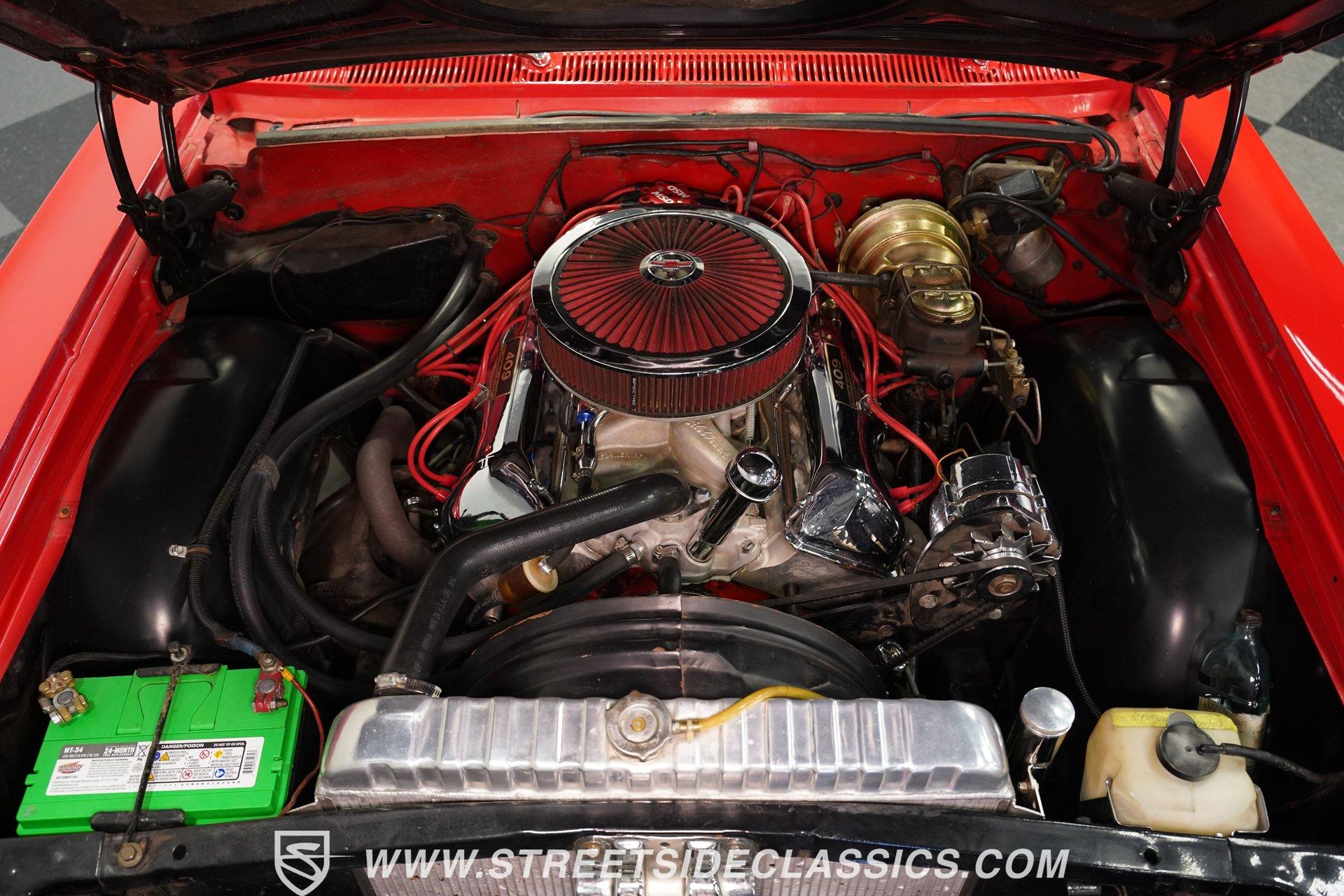 For the iconic Beach Boys to write a hit song about an engine, it had to be a special motor attached to a special kind of car. One look at this 1964 Chevrolet Impala SS 409, decked out in a beautiful Bright Red repaint and stretched over its two-door coupe configuration, showcasing its straight lines, shimmering chrome trim, and trick dual-triplet taillight arrangement, and it's easy to see why this car was so inspiring. Inside, we find a mostly stock restored black vinyl interior. A split-bench front seat leaves plenty of room up front. At the same time, the old-school two-spoke, power-assisted steering wheel adds a splash of body-color red, sitting just ahead of a column-mounted 6,000 rpm tachometer and a horizontal 120 mph speedometer. A trio of auxiliary gauges sits under the dashboard, while the sliding HVAC controls and an AM/FM/Cassette radio sit against an SS-style machine-turned dashboard insert. Under that expansive hood, we find out what all the fuss is about. Centered in a clean engine bay sits a 409 cubic-inch V-8. Part of Chevy's famous W-series big-block motor family, this 409 sports a set of chrome valve covers and an aluminum radiator. Topped with a four-barrel Holley Performance carburetor, Edelbrock intake manifold, and lightweight Edelbrock aluminum heads, spent gases are expelled via FlowMaster dual exhaust. That power is routed through a tried-and-true Muncie M20 four-speed manual transmission before heading out to the stock-style rear end, which transfers those ponies to the pavement through a set of beautiful, 15-inch Rallye wheels sporting knock-off-style center caps, shod in BFGoodrich tires. HIGHLIGHTS: Bright Red Repaint Dual Aerials 409 CID V8 MSD Distributor Holley Four Barrel Edelbrock Intake Edelbrock Aluminum Heads Long Tubes FlowMaster Dual Exhaust Muncie M20 Four Speed Stock Restored Interior Black Vinyl Power Steering SS Style Dash Insert AM/FM/Cassette Owner's Manual This 1964 Chevrolet Impala SS 409 features a traditional coil-and-shock suspension, complemented by an old-school live rear axle. Power brakes, featuring a set of front discs, are ready to scrub off speed at a moment's notice. So, if owning a classic 409-powered Impala has been on your bucket list and you've saved your pennies and saved your dimes, then maybe it's time you buy a (not quite) brand-new 409! Don't wait, call today!