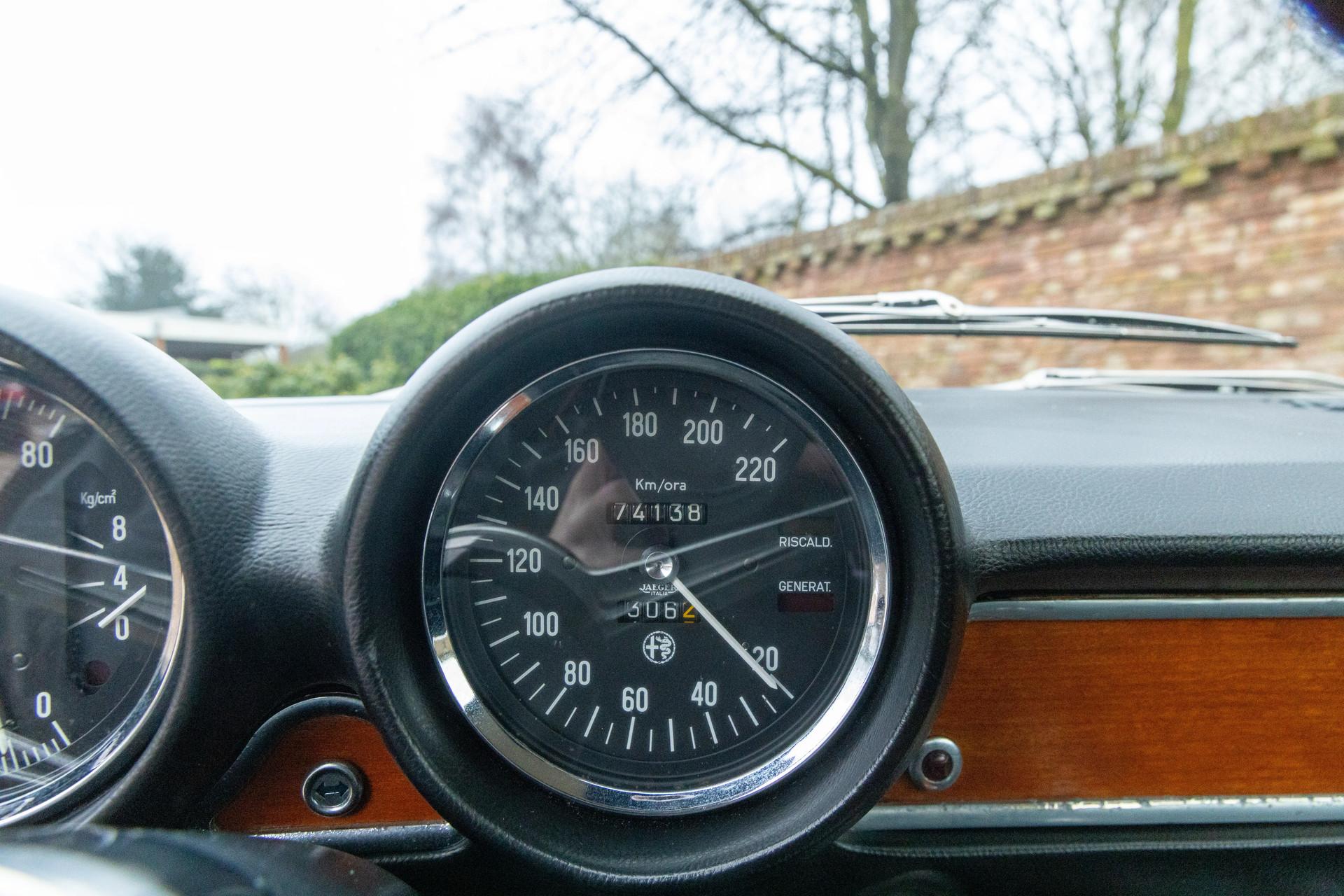 This Alfa was restored with care and respect for originality. Details such as the factory weld points in the bodywork have been preserved, the panel fit is excellent, and the paint has a deep, even gloss. The chrome bumpers are in very nice condition. This is an honest, properly built Alfa Romeo—one that practically begs to be taken out on an early Sunday morning drive.