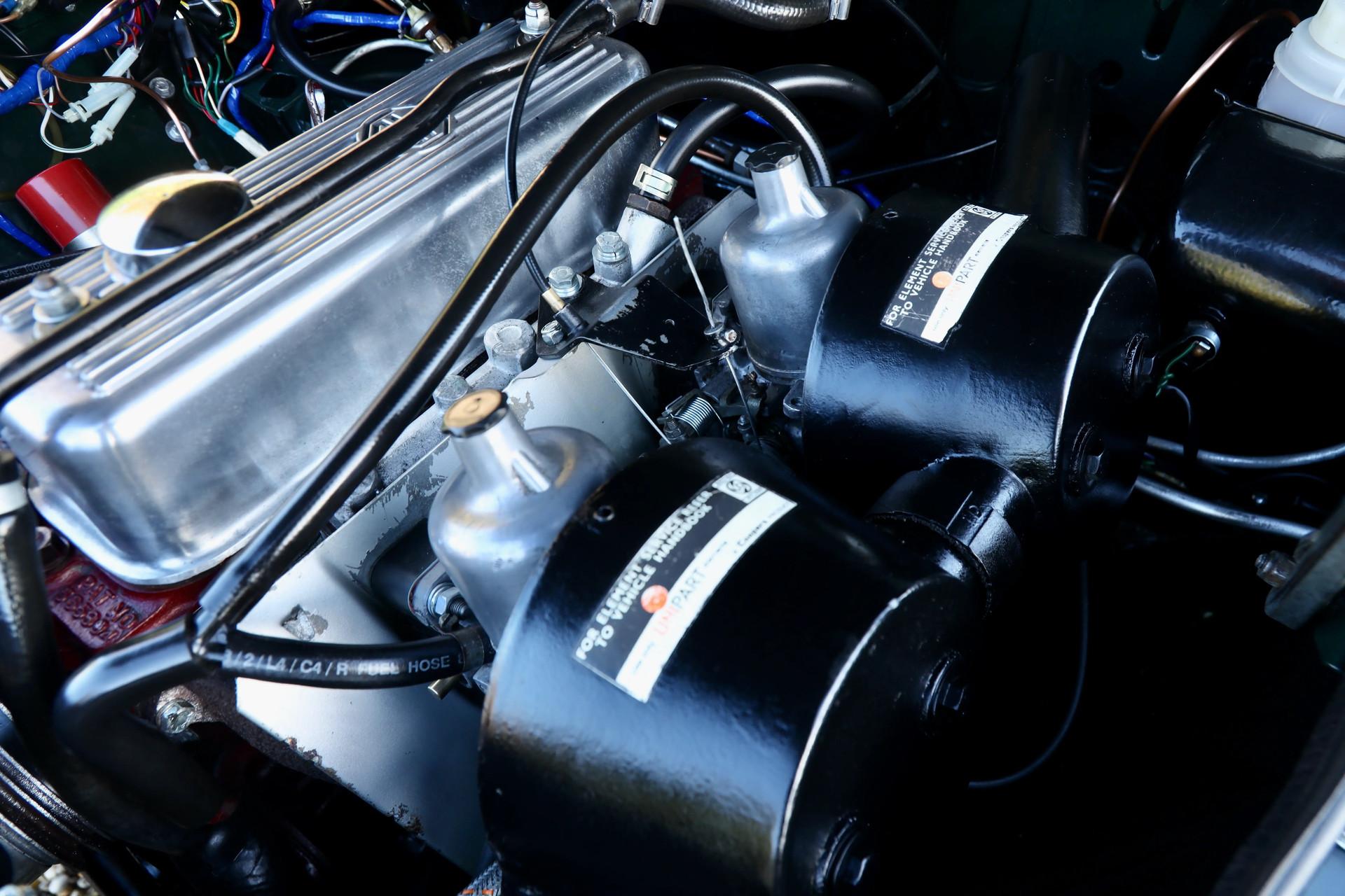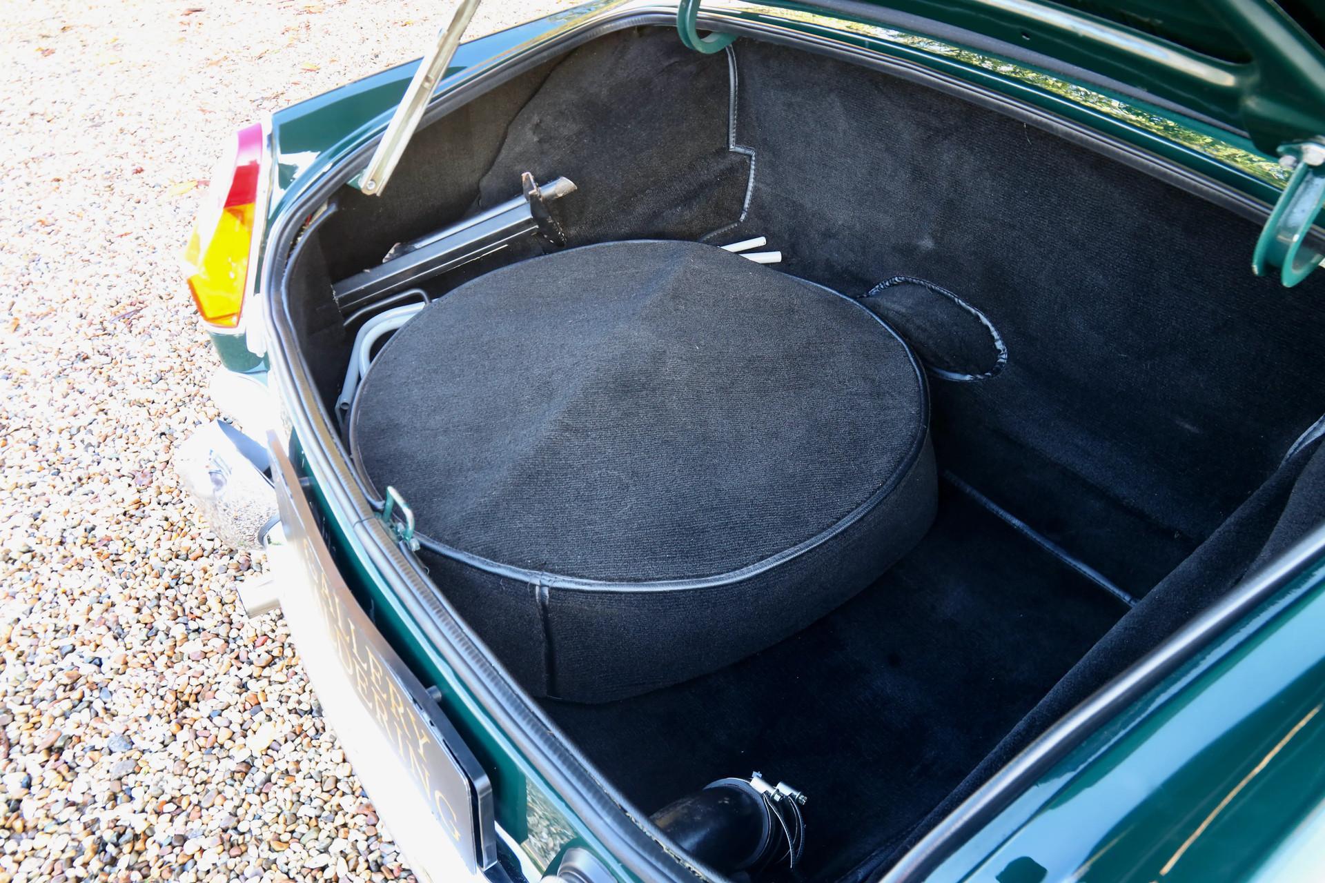 This particular example has been fully “nut and bolt” restored, meaning every component has been carefully inspected, renewed, or rebuilt with expert craftsmanship. The result is a car in stunning condition, finished in deep, classic British Racing Green with a black leather interior, exuding both luxury and authentic roadster character. Additional features include chrome wire wheels, comfortable headrests, and a stainless-steel luggage rack, combining elegance and practicality.