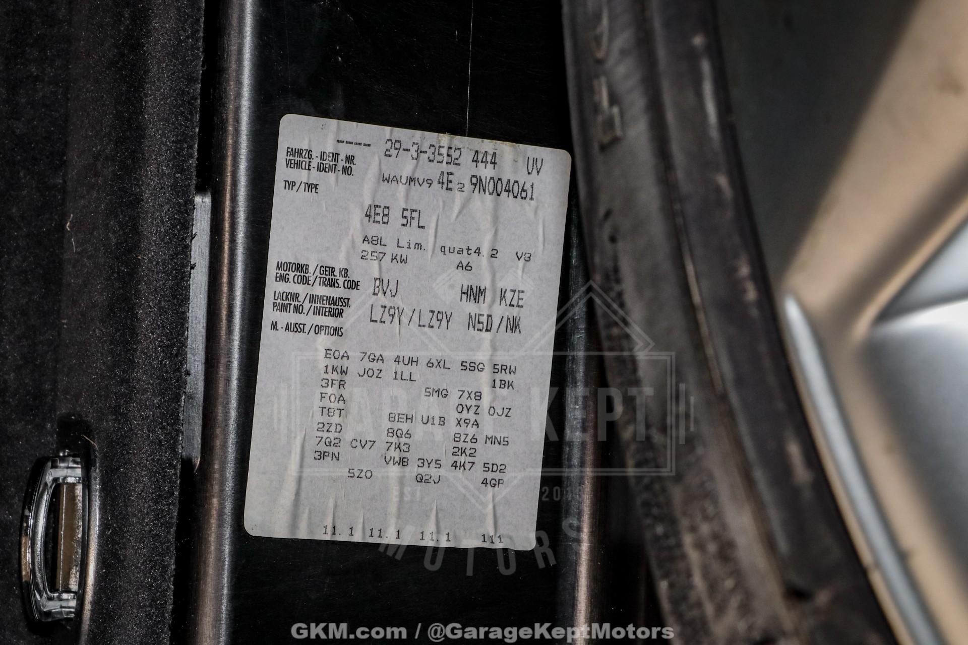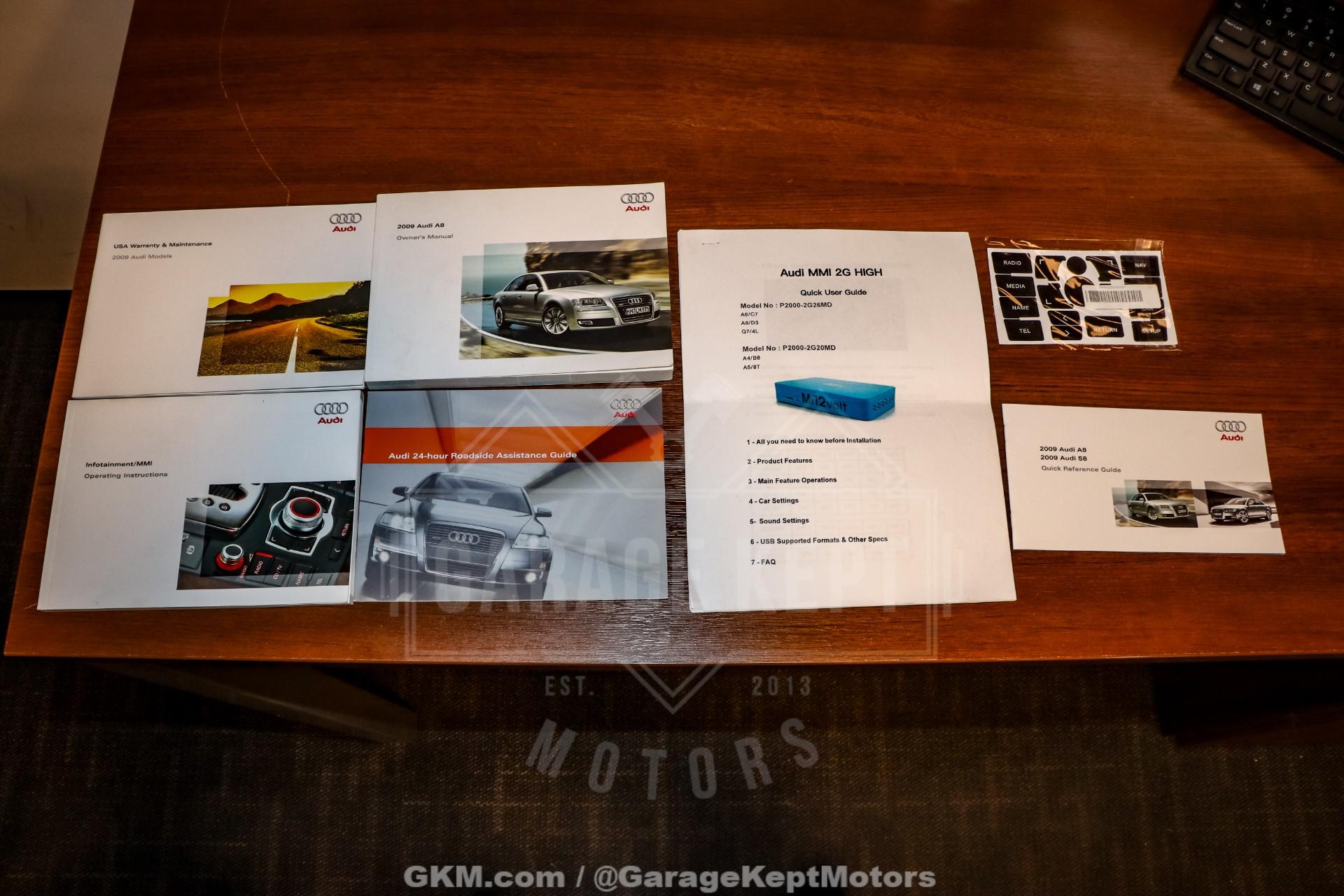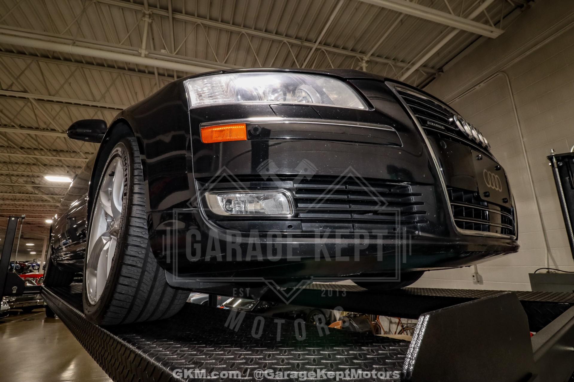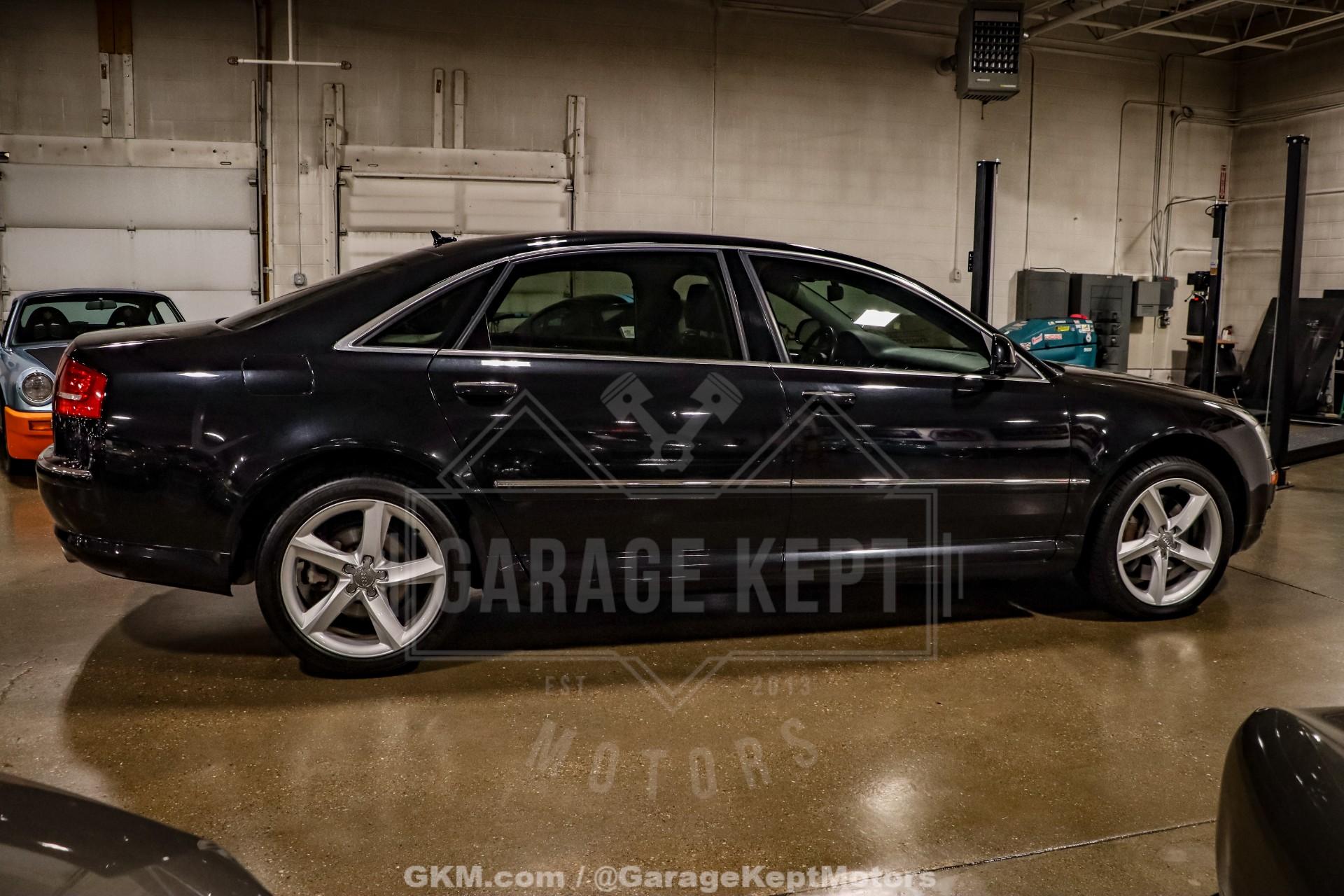 2009 Audi A8 L quattro- Only 87,626 Miles- 4.2L V8- Automatic Transmission- Quattro All Wheel Drive - Black Exterior- Black InteriorDiscover the epitome of luxury and performance with this stunning 2009 Audi A8 L quattro, now available at Garage Kept Motors. This vehicle combines sophisticated design, advanced technology, and powerful performance, making it a standout choice for discerning drivers.The 2009 Audi A8 L quattro is a masterpiece of automotive engineering, featuring a sleek and elegant design that commands attention. Its Phantom Black Pearl Effect paint exudes a sense of mystery and sophistication, perfectly complementing the vehicle's refined lines and aerodynamic profile. The long wheelbase of the A8 L provides an extended silhouette, enhancing both its aesthetic appeal and interior spaciousness.Under the hood, this Audi A8 L is powered by a 4.2L V8 engine, delivering an impressive 350 horsepower and 325 lb-ft of torque. This powerhouse is paired with Audi's renowned quattro all-wheel-drive system, ensuring exceptional handling and stability in all driving conditions. Whether navigating city streets or cruising on the highway, the A8 L offers a smooth and exhilarating driving experience.Step inside the cabin, and you'll be enveloped in luxury. The interior features premium black leather upholstery, providing a sophisticated and comfortable environment for both driver and passengers. The spaciousness of the A8 L's interior is enhanced by its long wheelbase, offering ample legroom and comfort for all occupants. High-quality materials and meticulous craftsmanship are evident throughout, creating an ambiance of opulence and refinement.This 2009 Audi A8 L quattro is equipped with an upgraded stereo system that includes Apple CarPlay and Android Auto, seamlessly integrating your smartphone for enhanced connectivity and entertainment options. This modern feature allows you to access your favorite apps, music, and navigation with ease, ensuring a connected and enjoyable driving experience. With a mileage of 87,626, this Audi A8 L has been meticulously maintained and is in excellent condition. Its low mileage for the year reflects careful ownership and ensures many more miles of luxurious driving ahead.The 2009 Audi A8 L quattro is a special vehicle in the exotic class, offering a unique blend of luxury, performance, and advanced technology. Its powerful V8 engine, coupled with the legendary quattro all-wheel-drive system, provides a driving experience that is both exhilarating and secure. The combination of its elegant design, spacious interior, and modern features makes it a standout choice for those seeking a premium luxury sedan.Visit Garage Kept Motors today to experience the unparalleled luxury and performance of this 2009 Audi A8 L quattro. This exceptional vehicle is ready to elevate your driving experience to new heights. Don't miss the opportunity to own a true masterpiece of automotive engineering.