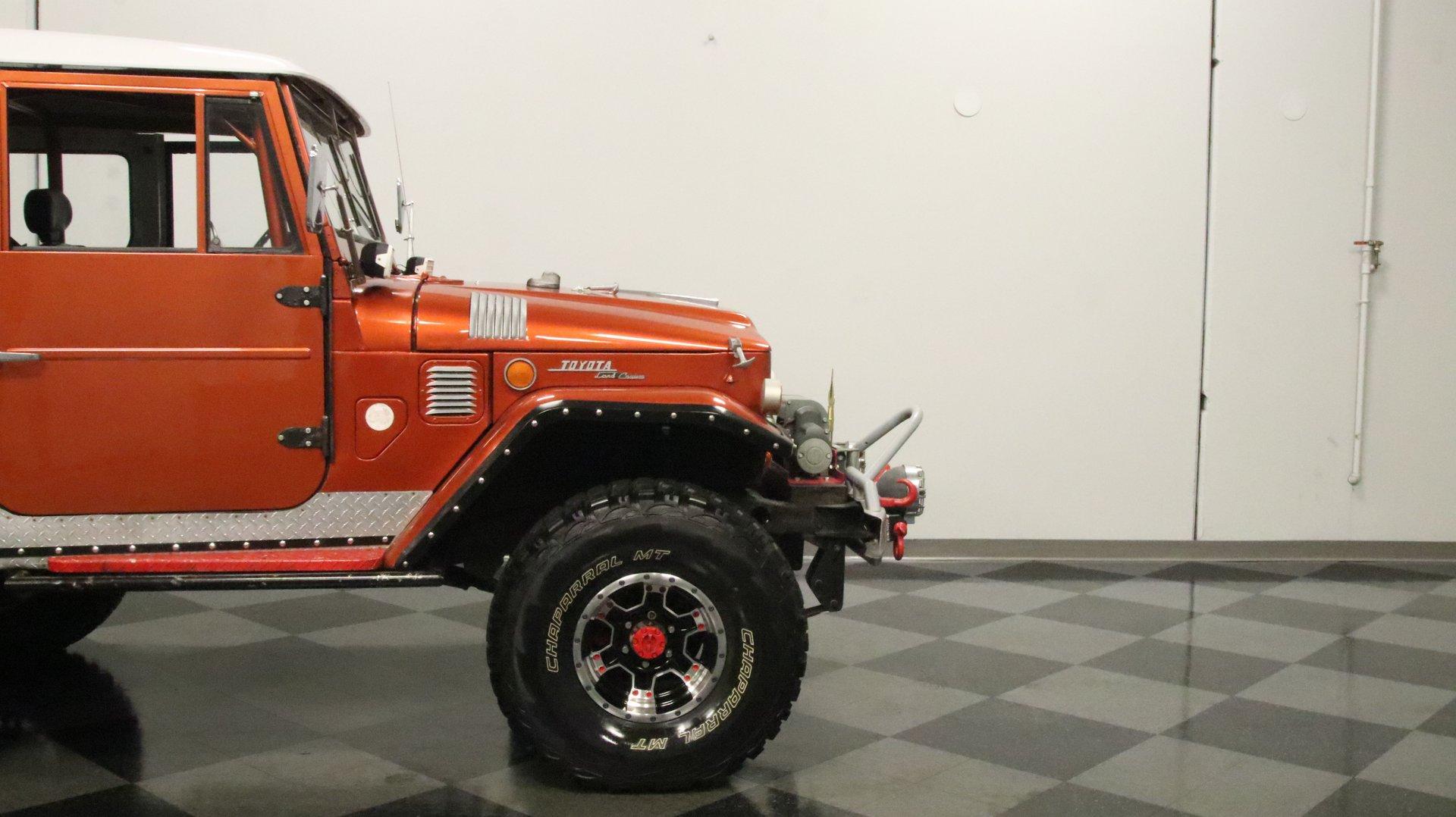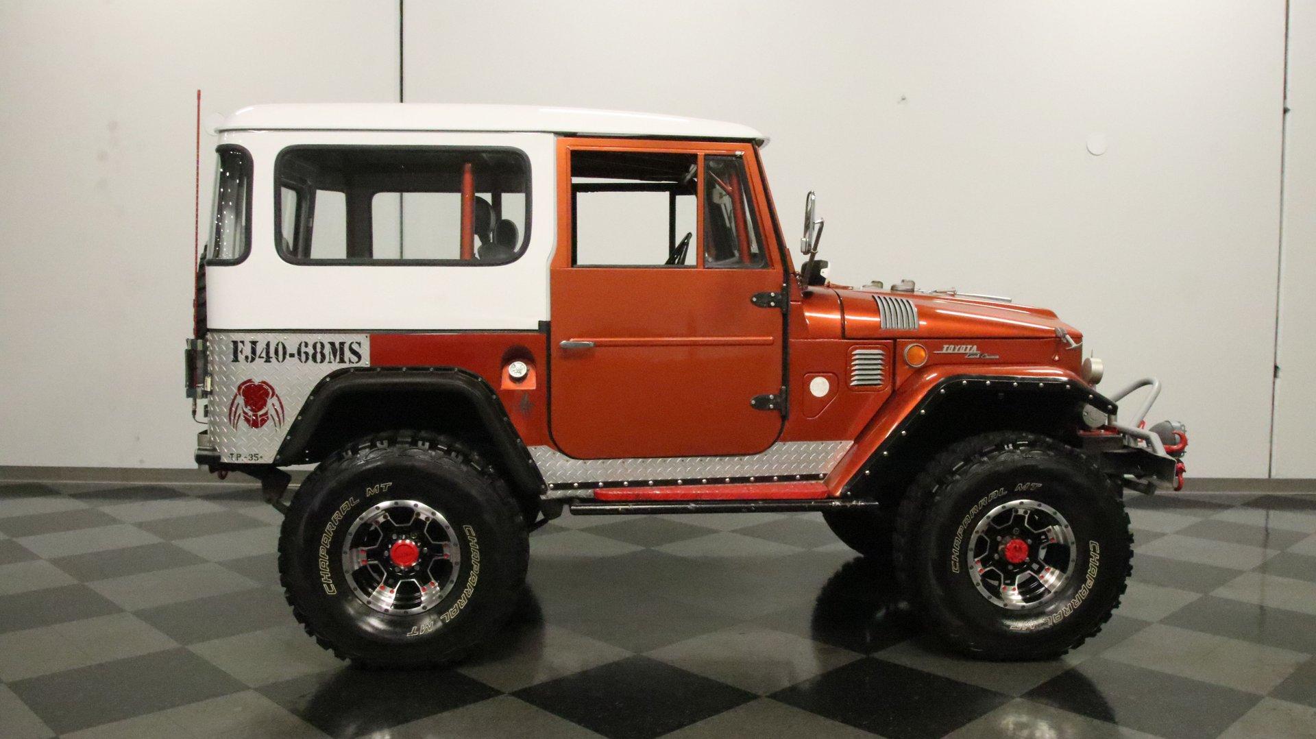 The FJ Land Cruiser showed the world that Toyota was serious about making an off-road machine. Heck, it was likely even the first vehicle that some remote jungle tribes ever saw. And you can't help but think about that unstoppable nature when you look at this 1968 Toyota Land Cruiser FJ40. There have been solid investments everywhere from the tall 4x4 stance to the big winch up front to let you know that this isn't for the commuter crossover crowd. It's a real and rugged 4x4 with just the right amount of flair to make sure you'll still proudly park it Sunday morning at cars & coffee (likely with Saturday's mud still on it.) HIGHLIGHTS *Choose how you roll: full hardtop and removable doors *Apocalypse-ready front bumper with 10,000 lbs winch, tubular steel guards, tow hooks, LED lights, and Super 4x4 spotlights *Lifted stance *Flared fenders *Diamond plate rockers and rear corners *color-matched upgraded roll cage *Upgraded modern front bucket seats *Locking center console *Auxiliary gauges, including a handy column-mounted tach *3.9-liter inline-six motor *Four-speed manual transmission *Power steering *Two-speed 4x4 transfer case *Bilstein shocks *Four-wheel power disc brakes The Land Cruiser already has a well-earned robust reputation, but all the additions here really take it up a few notches. There's a ruggedness that tells you this one loves to have fun. So while you certainly don't ever have to leave the road to have others admire your brawny FJ, we bet you're already thinking about how good this will look rolling through your favorite trails. Call today!!!