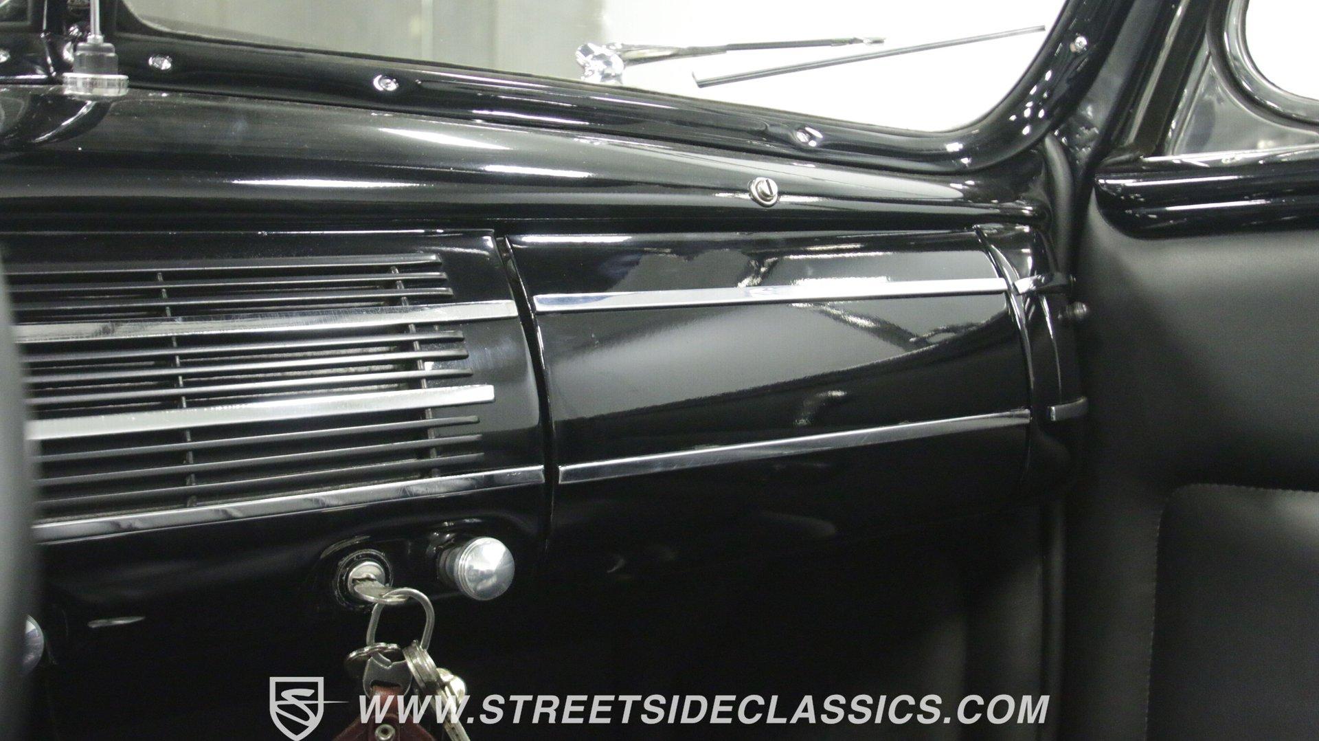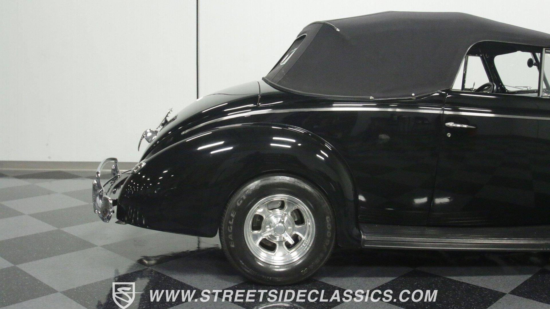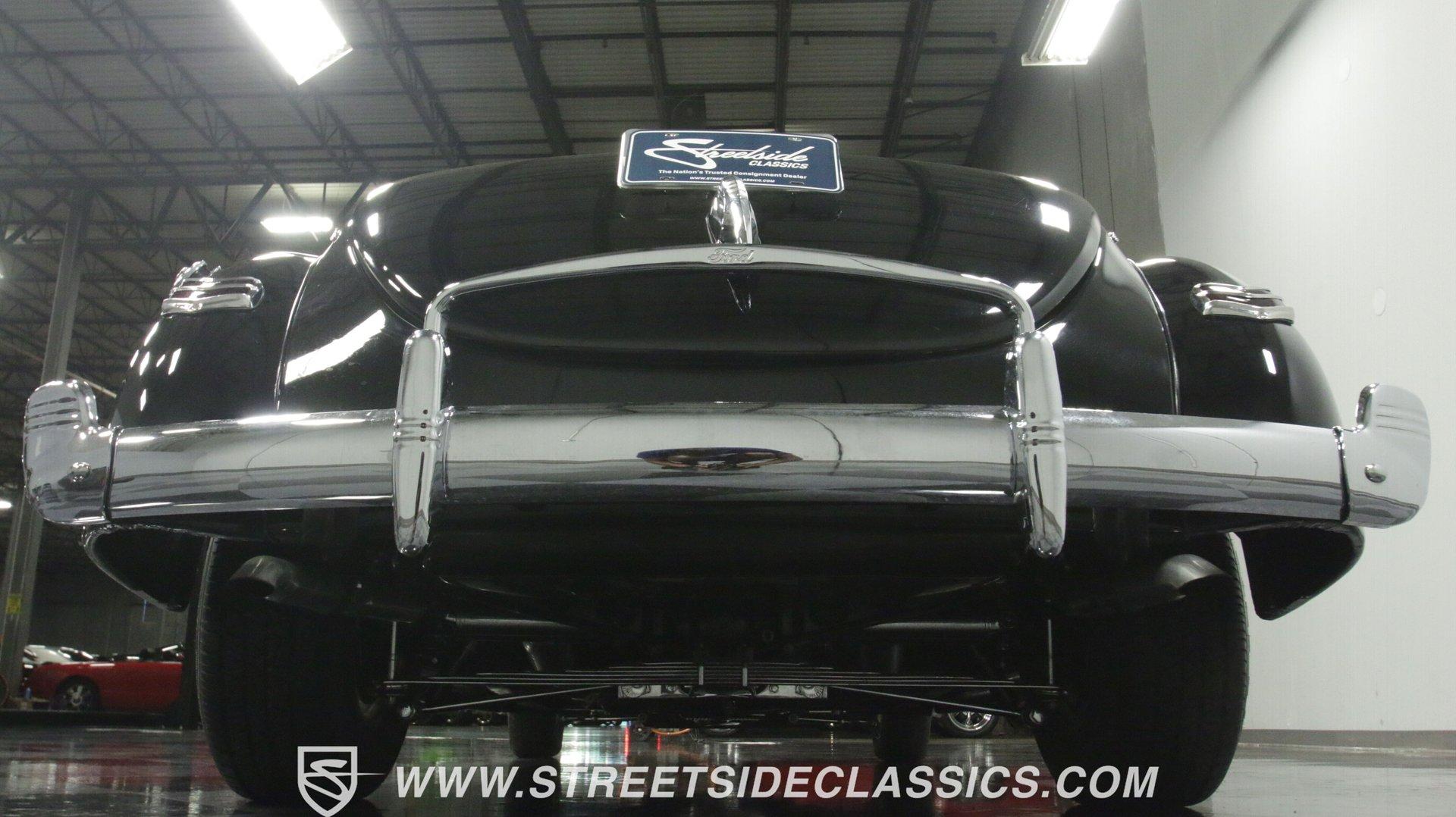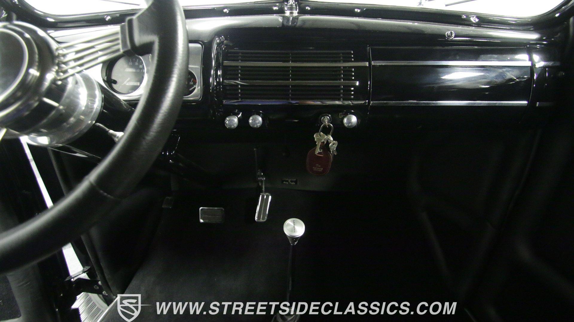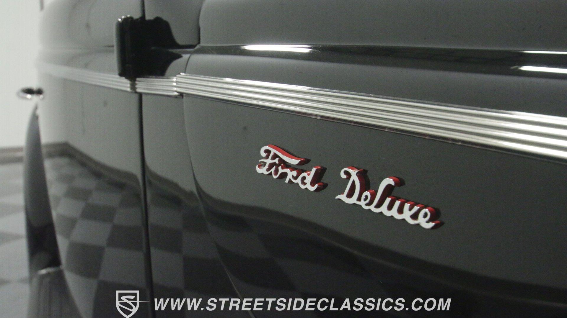 This show-stopping, sinister 1940 Ford Deluxe Convertible is the epitome of a grown-up hotrod. No gaudy flames, no goofy body mods, no obnoxious exhaust, just a show-quality custom build that likely cost thousands more than the asking price that delivers a professional level of performance and curb appeal. With a powerful 350 V8 under the hood, an upgraded sports suspension featuring power 4-wheel disc brakes, a luxurious black leather interior, and a super-slick, steel body covered in gallons of elegant black paint, this all-time favorite hotrod was built to show-or-go, and it does it all in a very BIG way. Everybody loves the iconic 1940 Ford, so much so that they're still cranking out fiberglass replicas today. Fortunately, this one has a steel body and fenders, so it feels incredibly substantial and was put together by professionals so it looks loads better than it did when it was new. The pointed hood and grille are icons in the hobby and despite the amazing build and practically flawless performance of this car, they decided to keep things low-key and let the paint do all the talking. When it comes to a black finish, you better ensure the body is laser-straight and free of flaws because dark colors are very unforgiving when it comes to poor prep-work, and it's obvious the builders spent countless hours getting this one lined up just right. It's been driven and enjoyed since the restoration was completed, so it's no longer perfect, but any imperfections are very minor and can barely be seen by the naked eye. The miles-deep, shiny black finish accentuates the Ford's generous curves without hiding anything, and the traditional color will never look dated and always bring out the crowds. That's good news, because fit and finish are fantastic as well, with excellent gaps and a spectacular luster that should most of the trophies at your local car show. They didn't shave or chop anything, and the original brightwork and trim was restored and reinstalled, so it looks like a 1940 Ford in every way. Stock chrome bumpers fore and aft, teardrop headlights, and chevron-style taillights all give this Ford a very high-quality look and feel, and it looks slick-as-can-be with the top up or down. Open those long, heavy doors and take a look inside where the stunning black leather interior is essentially a work of art. Subtle and sophisticated, it was custom crafted to maximize space inside, so just about anyone can get comfortable behind the wheel or in the passenger's seat. The black leather hides are almost completely unmarked (other than a few minor comfort marks), and the supportive bucket seats up front and matching rear seat in the back make this '40 Ford all-day comfortable for the whole crew. Sculpted door panels integrate billet door handles and modern power window switches, plush black carpets line the floors and insulate things inside, and the dash was beautifully painted to match and really pops thanks to those chrome accents. A custom chrome bezel houses a host of VDO gauges ahead of the driver, and they do a great job keeping an eye on the motor up ahead while still giving the cabin a very 1940s look. The leather-wrapped, banjo-style steering wheel feels great in the hands of the driver, and thanks to the tilt column it can be adjusted to accommodate just about anyone, and even the billet pedals were carefully selected to match the theme of the interior. A Lokar shifter manages the automatic transmission below, and there's a beautifully stitched black cloth convertible top that's power-actuated and seals up the cabin from the outside world. Out back, the spacious trunk was lined with plush black carpets to match the cabin, and there's plenty of room inside to account for most travel plans. Under all that chrome, there's a 350 cubic inch V8, chosen specifically because of its low demands for the new owner. Plenty powerful, it's a crate motor from GM Performance Parts that's reported to have been stroked to 383 cubes (although, unfortunately we don't have any paperwork to prove this claim), and with all that added horsepower and torque it moves the Ford with effortless ease. Performance parts include GM Performance heads, an Edelbrock 4-barrel carburetor, a polished aluminum intake, and long-tube headers at the flanks that make the small block extremely responsive. Just about everything you can see was polished or plated, including the finned valve covers and matching air cleaner, and the builders went to great lengths to hide all the wiring and plumbing. Backed by a TH350 3-speed automatic transmission and a swapped-in Corvette C3 rear end, it's an effortless high-speed tourer that rides and handles like a modern car, and a big aluminum radiator up front keeps the whole show nice and cool. The front suspension is all independent and features tubular A-arms with coilovers and rack-and-pinion steering, and there's a power disc brake at each corner. The frame is heavily reinforced while the custom stainless exhaust system tucks up underneath for excellent ground clearance, and it sounds amazing, too. Staggered chrome alloys with spinners carry 165/15 front and 235/70/15 rear Dunlop radials that really fill the fenders perfectly in the classic big-and-little stance. This isn't your average hotrod, but if you're an adult who is tired of the same-old, same-old at all the car shows, this stunning 1940 Ford convertible is the antidote. Call today!