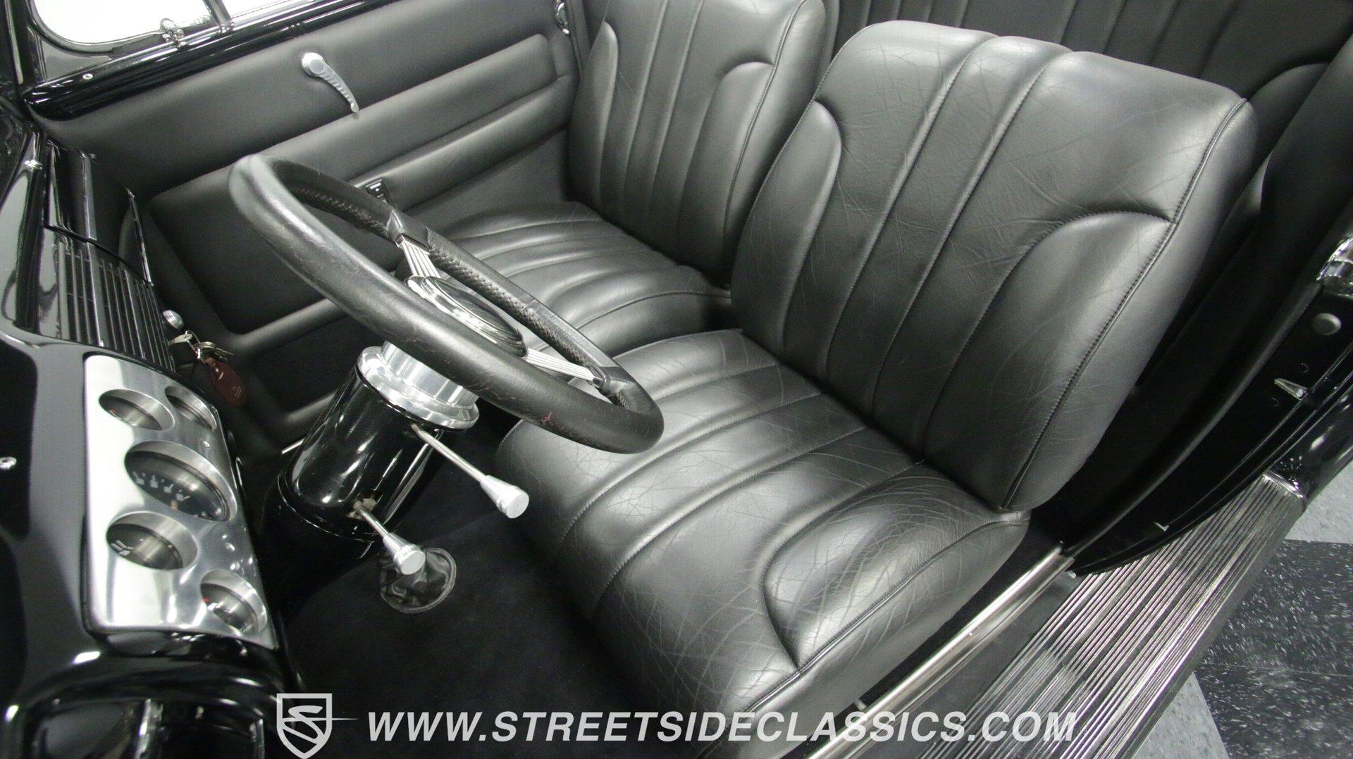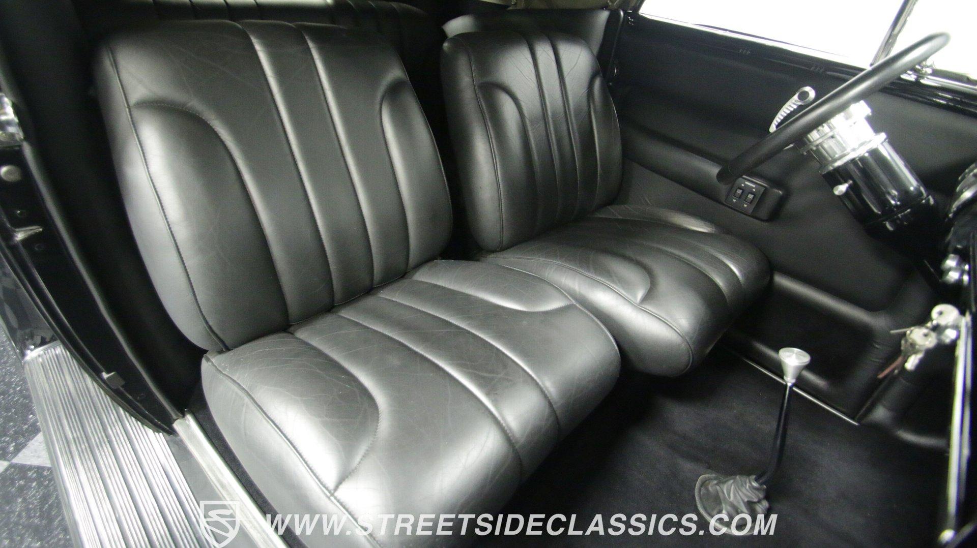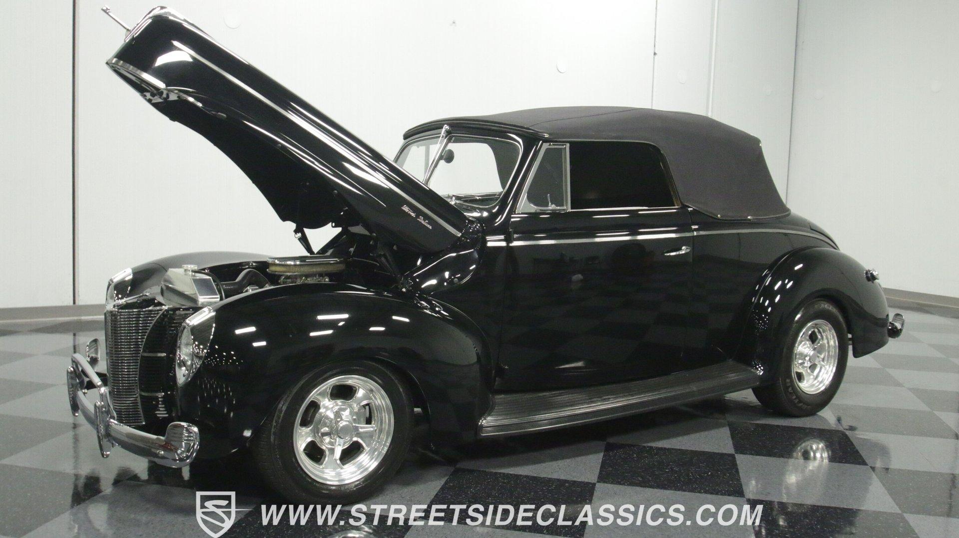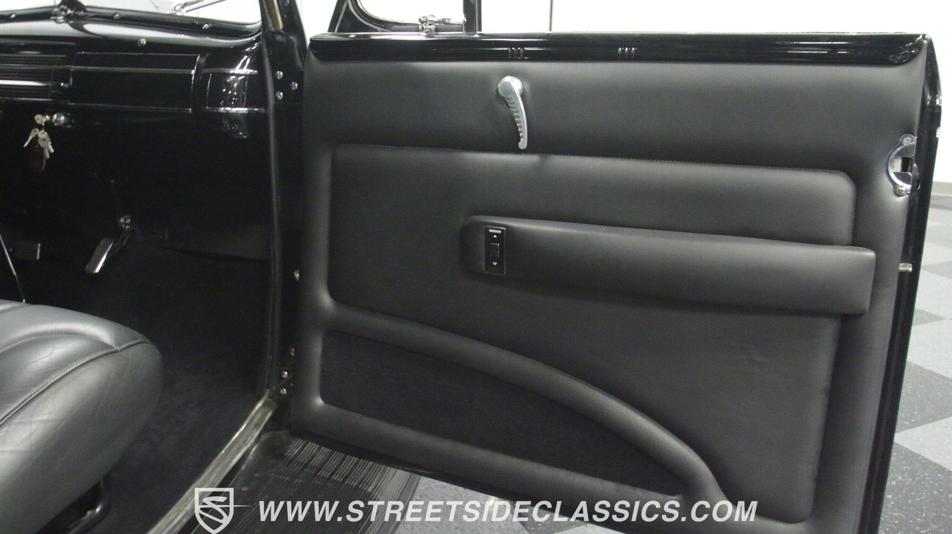 This show-stopping, sinister 1940 Ford Deluxe Convertible is the epitome of a grown-up hotrod. No gaudy flames, no goofy body mods, no obnoxious exhaust, just a show-quality custom build that likely cost thousands more than the asking price that delivers a professional level of performance and curb appeal. With a powerful 350 V8 under the hood, an upgraded sports suspension featuring power 4-wheel disc brakes, a luxurious black leather interior, and a super-slick, steel body covered in gallons of elegant black paint, this all-time favorite hotrod was built to show-or-go, and it does it all in a very BIG way. Everybody loves the iconic 1940 Ford, so much so that they're still cranking out fiberglass replicas today. Fortunately, this one has a steel body and fenders, so it feels incredibly substantial and was put together by professionals so it looks loads better than it did when it was new. The pointed hood and grille are icons in the hobby and despite the amazing build and practically flawless performance of this car, they decided to keep things low-key and let the paint do all the talking. When it comes to a black finish, you better ensure the body is laser-straight and free of flaws because dark colors are very unforgiving when it comes to poor prep-work, and it's obvious the builders spent countless hours getting this one lined up just right. It's been driven and enjoyed since the restoration was completed, so it's no longer perfect, but any imperfections are very minor and can barely be seen by the naked eye. The miles-deep, shiny black finish accentuates the Ford's generous curves without hiding anything, and the traditional color will never look dated and always bring out the crowds. That's good news, because fit and finish are fantastic as well, with excellent gaps and a spectacular luster that should most of the trophies at your local car show. They didn't shave or chop anything, and the original brightwork and trim was restored and reinstalled, so it looks like a 1940 Ford in every way. Stock chrome bumpers fore and aft, teardrop headlights, and chevron-style taillights all give this Ford a very high-quality look and feel, and it looks slick-as-can-be with the top up or down. Open those long, heavy doors and take a look inside where the stunning black leather interior is essentially a work of art. Subtle and sophisticated, it was custom crafted to maximize space inside, so just about anyone can get comfortable behind the wheel or in the passenger's seat. The black leather hides are almost completely unmarked (other than a few minor comfort marks), and the supportive bucket seats up front and matching rear seat in the back make this '40 Ford all-day comfortable for the whole crew. Sculpted door panels integrate billet door handles and modern power window switches, plush black carpets line the floors and insulate things inside, and the dash was beautifully painted to match and really pops thanks to those chrome accents. A custom chrome bezel houses a host of VDO gauges ahead of the driver, and they do a great job keeping an eye on the motor up ahead while still giving the cabin a very 1940s look. The leather-wrapped, banjo-style steering wheel feels great in the hands of the driver, and thanks to the tilt column it can be adjusted to accommodate just about anyone, and even the billet pedals were carefully selected to match the theme of the interior. A Lokar shifter manages the automatic transmission below, and there's a beautifully stitched black cloth convertible top that's power-actuated and seals up the cabin from the outside world. Out back, the spacious trunk was lined with plush black carpets to match the cabin, and there's plenty of room inside to account for most travel plans. Under all that chrome, there's a 350 cubic inch V8, chosen specifically because of its low demands for the new owner. Plenty powerful, it's a crate motor from GM Performance Parts that's reported to have been stroked to 383 cubes (although, unfortunately we don't have any paperwork to prove this claim), and with all that added horsepower and torque it moves the Ford with effortless ease. Performance parts include GM Performance heads, an Edelbrock 4-barrel carburetor, a polished aluminum intake, and long-tube headers at the flanks that make the small block extremely responsive. Just about everything you can see was polished or plated, including the finned valve covers and matching air cleaner, and the builders went to great lengths to hide all the wiring and plumbing. Backed by a TH350 3-speed automatic transmission and a swapped-in Corvette C3 rear end, it's an effortless high-speed tourer that rides and handles like a modern car, and a big aluminum radiator up front keeps the whole show nice and cool. The front suspension is all independent and features tubular A-arms with coilovers and rack-and-pinion steering, and there's a power disc brake at each corner. The frame is heavily reinforced while the custom stainless exhaust system tucks up underneath for excellent ground clearance, and it sounds amazing, too. Staggered chrome alloys with spinners carry 165/15 front and 235/70/15 rear Dunlop radials that really fill the fenders perfectly in the classic big-and-little stance. This isn't your average hotrod, but if you're an adult who is tired of the same-old, same-old at all the car shows, this stunning 1940 Ford convertible is the antidote. Call today!