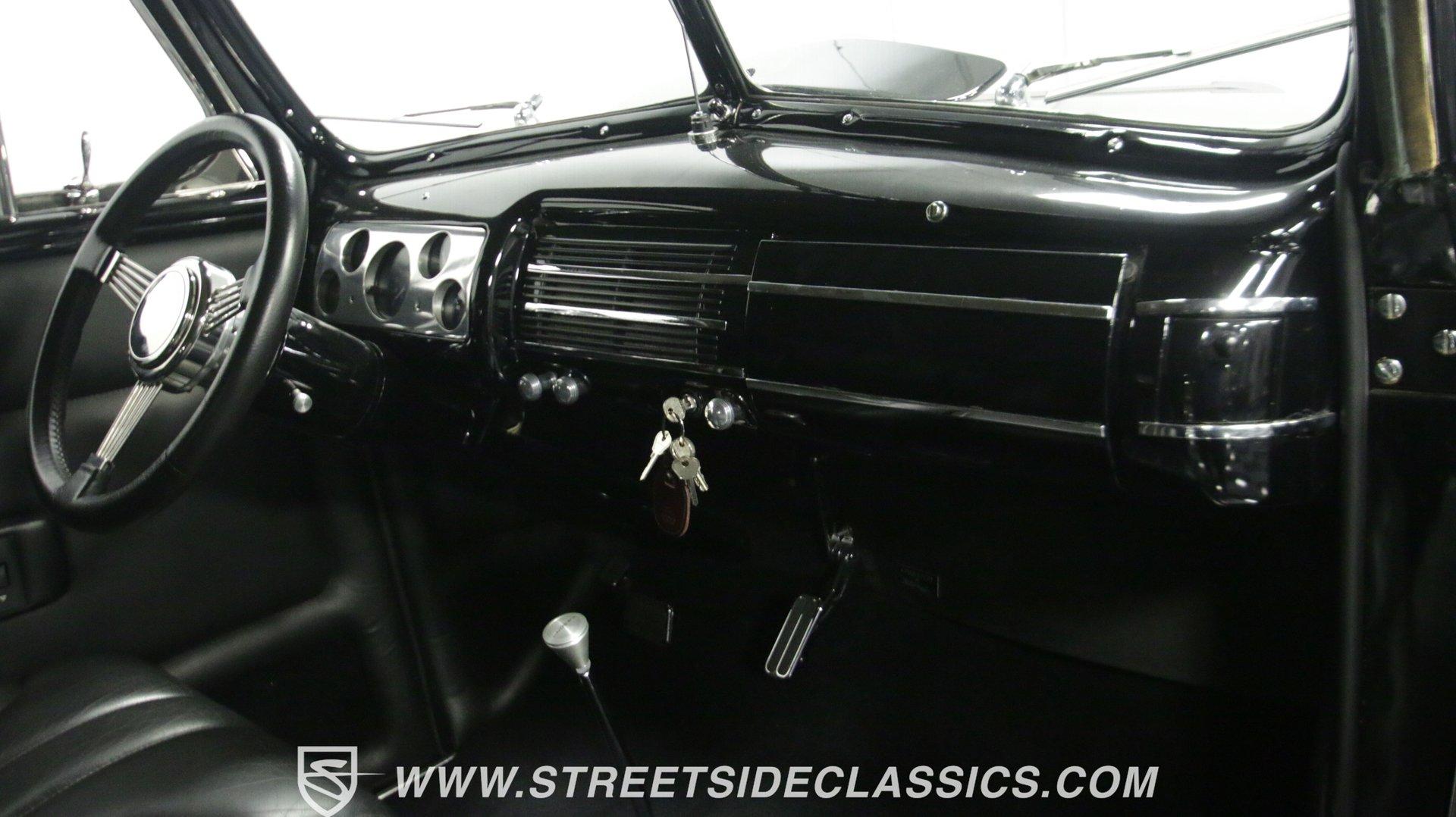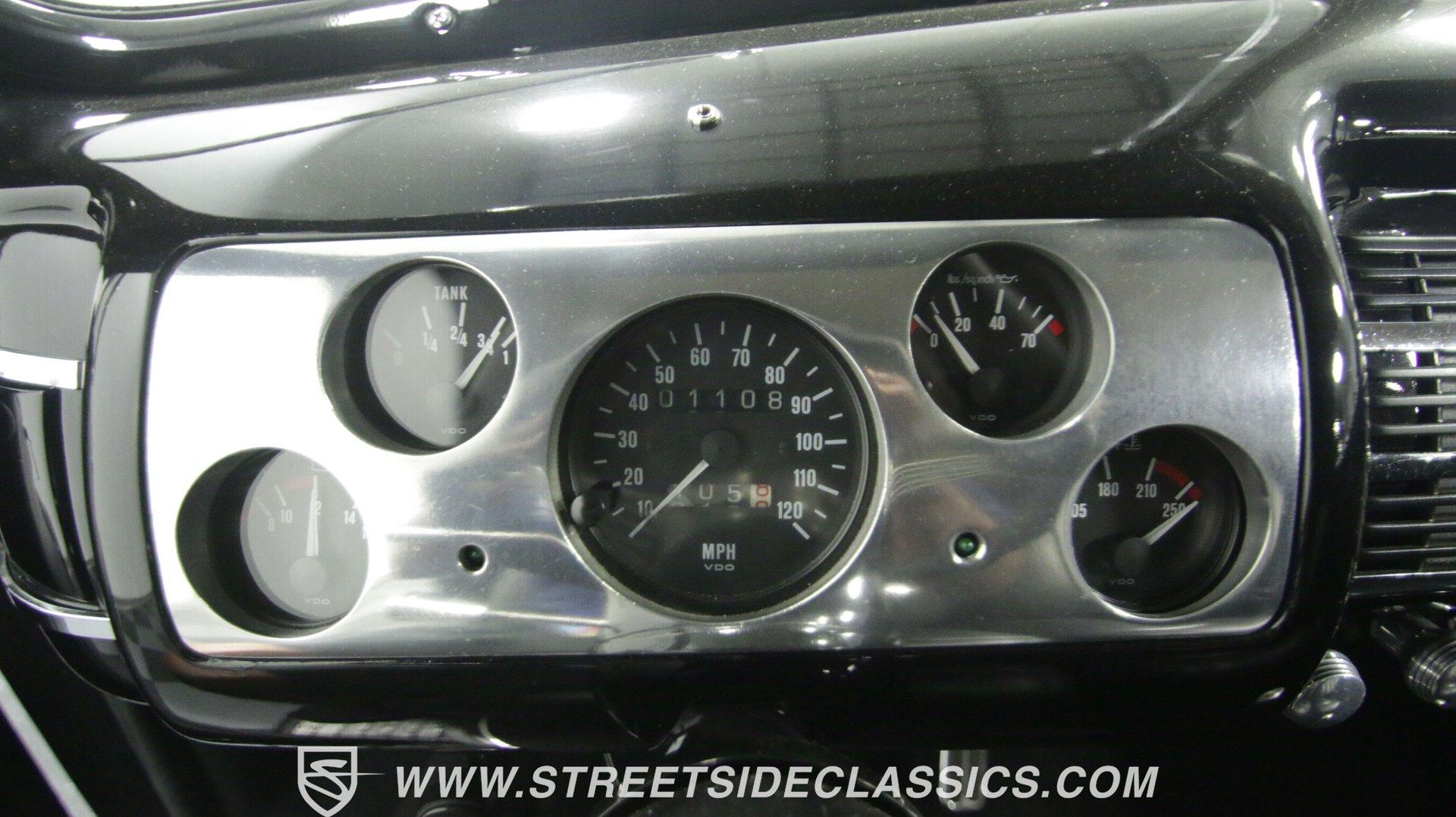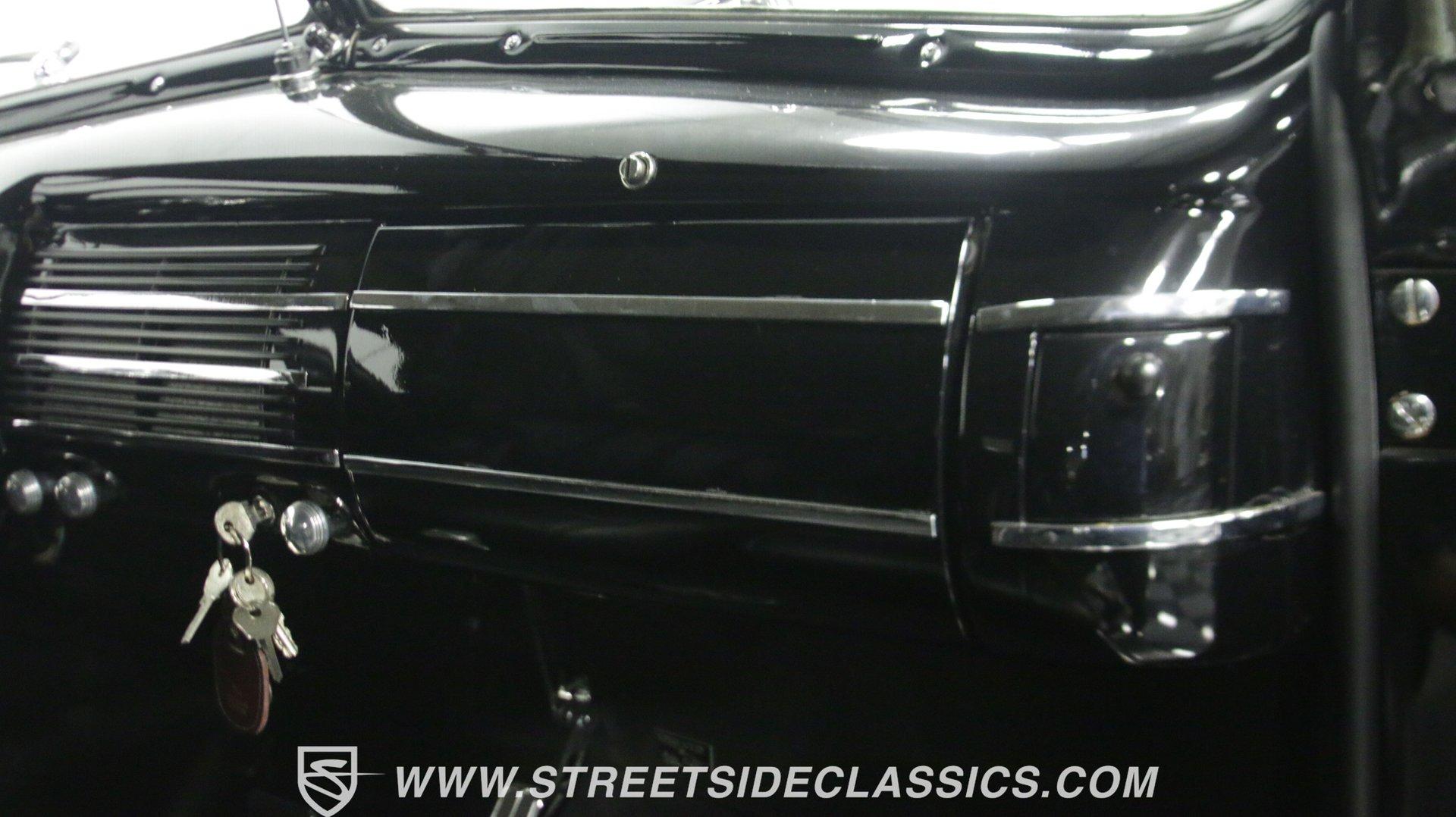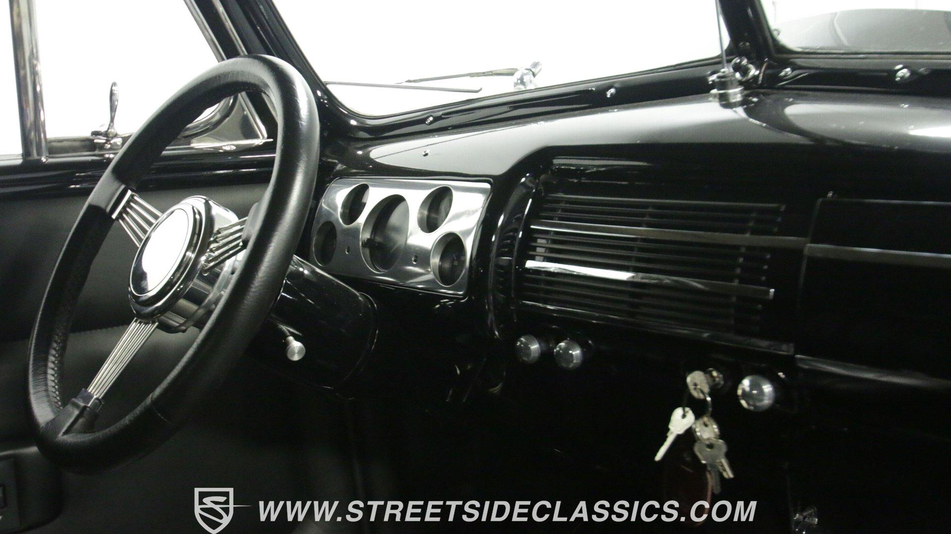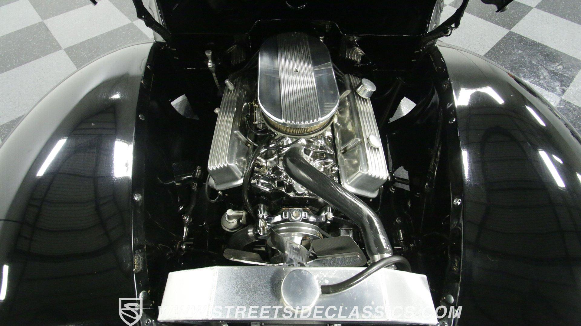 This show-stopping, sinister 1940 Ford Deluxe Convertible is the epitome of a grown-up hotrod. No gaudy flames, no goofy body mods, no obnoxious exhaust, just a show-quality custom build that likely cost thousands more than the asking price that delivers a professional level of performance and curb appeal. With a powerful 350 V8 under the hood, an upgraded sports suspension featuring power 4-wheel disc brakes, a luxurious black leather interior, and a super-slick, steel body covered in gallons of elegant black paint, this all-time favorite hotrod was built to show-or-go, and it does it all in a very BIG way. Everybody loves the iconic 1940 Ford, so much so that they're still cranking out fiberglass replicas today. Fortunately, this one has a steel body and fenders, so it feels incredibly substantial and was put together by professionals so it looks loads better than it did when it was new. The pointed hood and grille are icons in the hobby and despite the amazing build and practically flawless performance of this car, they decided to keep things low-key and let the paint do all the talking. When it comes to a black finish, you better ensure the body is laser-straight and free of flaws because dark colors are very unforgiving when it comes to poor prep-work, and it's obvious the builders spent countless hours getting this one lined up just right. It's been driven and enjoyed since the restoration was completed, so it's no longer perfect, but any imperfections are very minor and can barely be seen by the naked eye. The miles-deep, shiny black finish accentuates the Ford's generous curves without hiding anything, and the traditional color will never look dated and always bring out the crowds. That's good news, because fit and finish are fantastic as well, with excellent gaps and a spectacular luster that should most of the trophies at your local car show. They didn't shave or chop anything, and the original brightwork and trim was restored and reinstalled, so it looks like a 1940 Ford in every way. Stock chrome bumpers fore and aft, teardrop headlights, and chevron-style taillights all give this Ford a very high-quality look and feel, and it looks slick-as-can-be with the top up or down. Open those long, heavy doors and take a look inside where the stunning black leather interior is essentially a work of art. Subtle and sophisticated, it was custom crafted to maximize space inside, so just about anyone can get comfortable behind the wheel or in the passenger's seat. The black leather hides are almost completely unmarked (other than a few minor comfort marks), and the supportive bucket seats up front and matching rear seat in the back make this '40 Ford all-day comfortable for the whole crew. Sculpted door panels integrate billet door handles and modern power window switches, plush black carpets line the floors and insulate things inside, and the dash was beautifully painted to match and really pops thanks to those chrome accents. A custom chrome bezel houses a host of VDO gauges ahead of the driver, and they do a great job keeping an eye on the motor up ahead while still giving the cabin a very 1940s look. The leather-wrapped, banjo-style steering wheel feels great in the hands of the driver, and thanks to the tilt column it can be adjusted to accommodate just about anyone, and even the billet pedals were carefully selected to match the theme of the interior. A Lokar shifter manages the automatic transmission below, and there's a beautifully stitched black cloth convertible top that's power-actuated and seals up the cabin from the outside world. Out back, the spacious trunk was lined with plush black carpets to match the cabin, and there's plenty of room inside to account for most travel plans. Under all that chrome, there's a 350 cubic inch V8, chosen specifically because of its low demands for the new owner. Plenty powerful, it's a crate motor from GM Performance Parts that's reported to have been stroked to 383 cubes (although, unfortunately we don't have any paperwork to prove this claim), and with all that added horsepower and torque it moves the Ford with effortless ease. Performance parts include GM Performance heads, an Edelbrock 4-barrel carburetor, a polished aluminum intake, and long-tube headers at the flanks that make the small block extremely responsive. Just about everything you can see was polished or plated, including the finned valve covers and matching air cleaner, and the builders went to great lengths to hide all the wiring and plumbing. Backed by a TH350 3-speed automatic transmission and a swapped-in Corvette C3 rear end, it's an effortless high-speed tourer that rides and handles like a modern car, and a big aluminum radiator up front keeps the whole show nice and cool. The front suspension is all independent and features tubular A-arms with coilovers and rack-and-pinion steering, and there's a power disc brake at each corner. The frame is heavily reinforced while the custom stainless exhaust system tucks up underneath for excellent ground clearance, and it sounds amazing, too. Staggered chrome alloys with spinners carry 165/15 front and 235/70/15 rear Dunlop radials that really fill the fenders perfectly in the classic big-and-little stance. This isn't your average hotrod, but if you're an adult who is tired of the same-old, same-old at all the car shows, this stunning 1940 Ford convertible is the antidote. Call today!