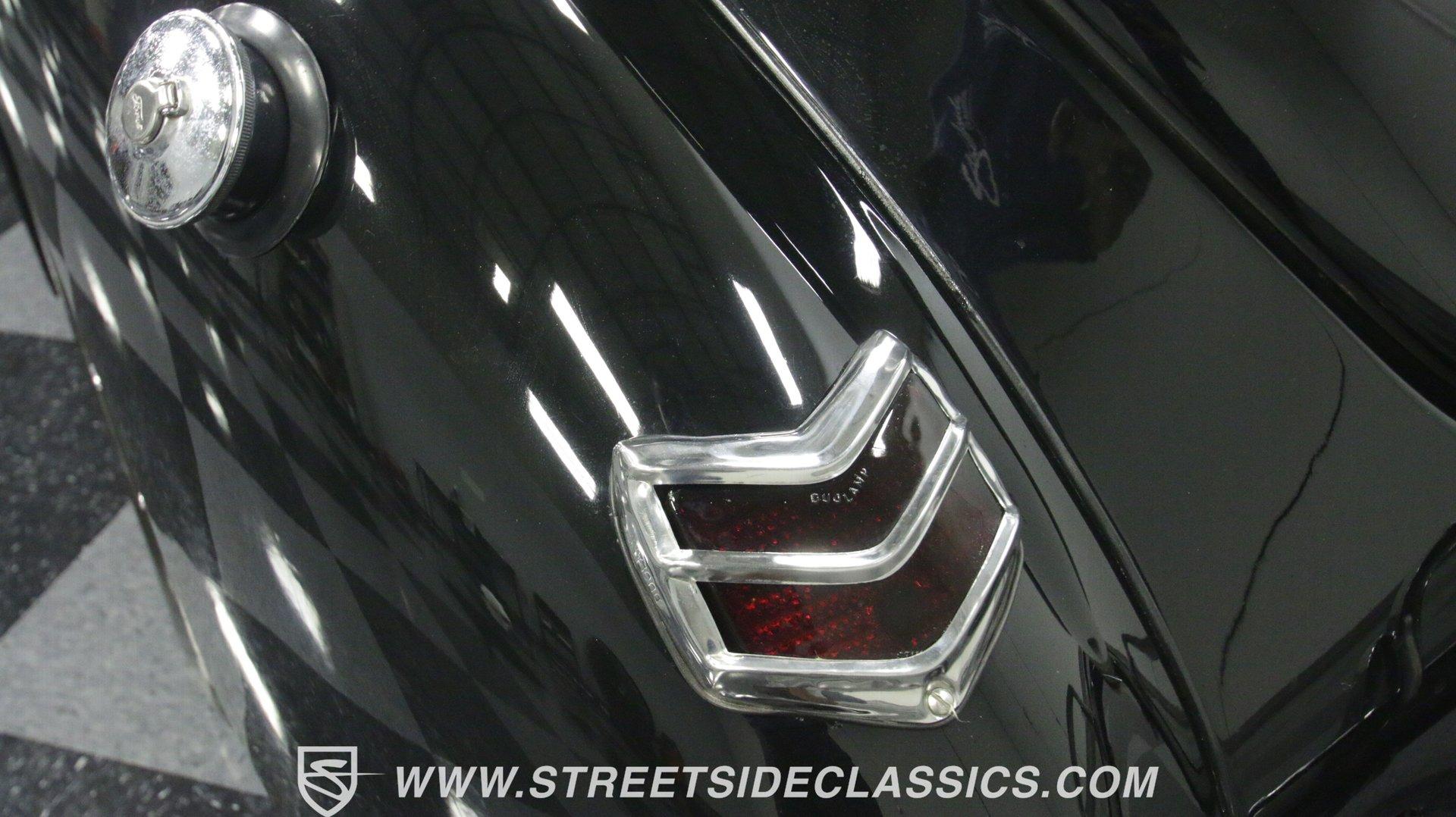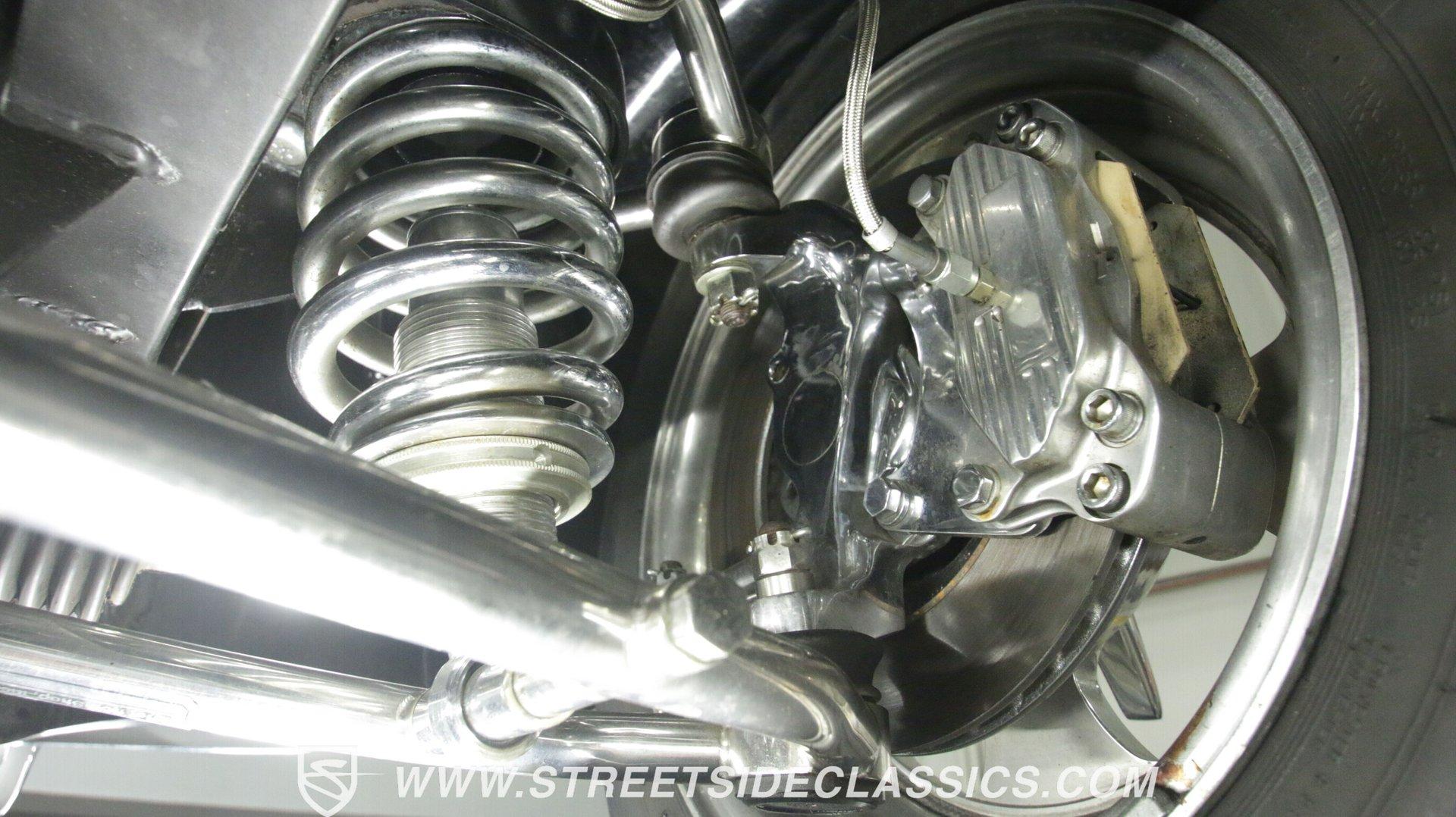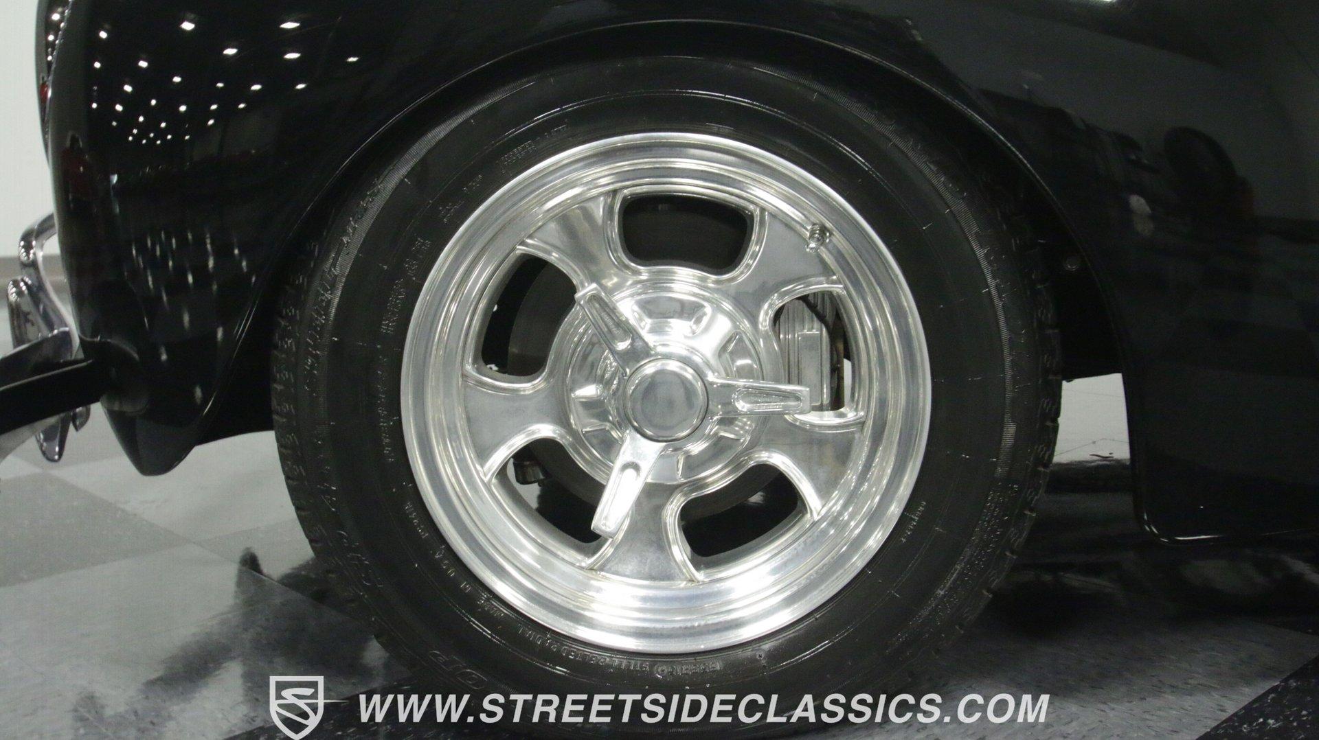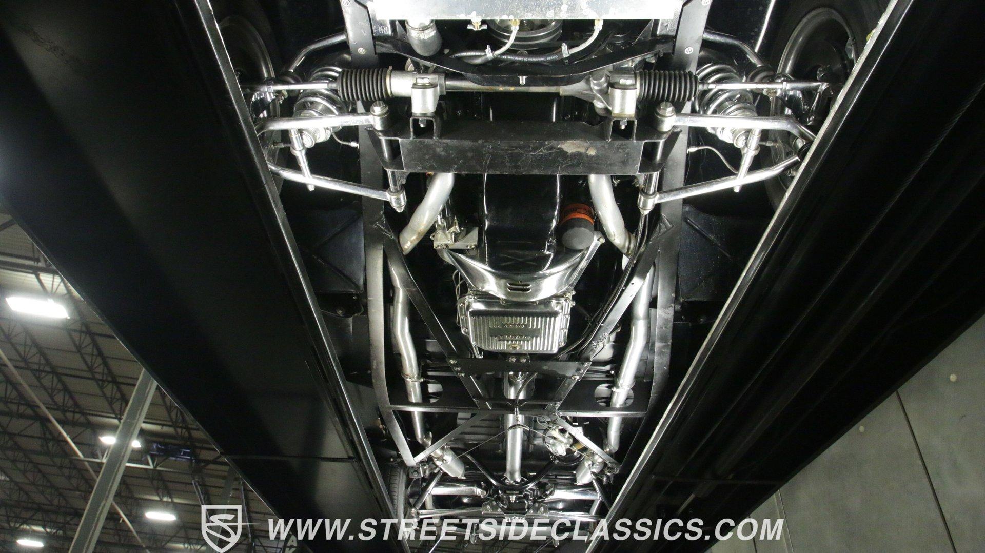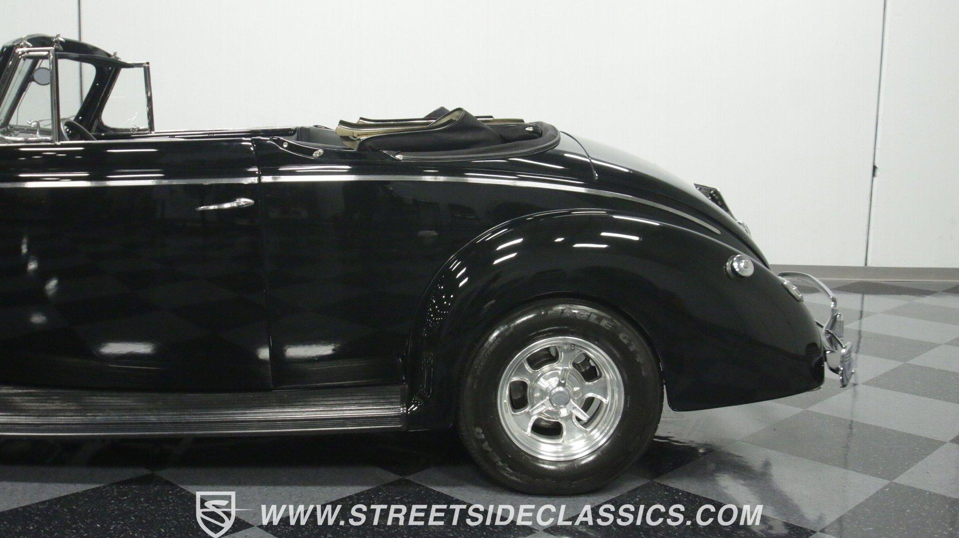 This show-stopping, sinister 1940 Ford Deluxe Convertible is the epitome of a grown-up hotrod. No gaudy flames, no goofy body mods, no obnoxious exhaust, just a show-quality custom build that likely cost thousands more than the asking price that delivers a professional level of performance and curb appeal. With a powerful 350 V8 under the hood, an upgraded sports suspension featuring power 4-wheel disc brakes, a luxurious black leather interior, and a super-slick, steel body covered in gallons of elegant black paint, this all-time favorite hotrod was built to show-or-go, and it does it all in a very BIG way. Everybody loves the iconic 1940 Ford, so much so that they're still cranking out fiberglass replicas today. Fortunately, this one has a steel body and fenders, so it feels incredibly substantial and was put together by professionals so it looks loads better than it did when it was new. The pointed hood and grille are icons in the hobby and despite the amazing build and practically flawless performance of this car, they decided to keep things low-key and let the paint do all the talking. When it comes to a black finish, you better ensure the body is laser-straight and free of flaws because dark colors are very unforgiving when it comes to poor prep-work, and it's obvious the builders spent countless hours getting this one lined up just right. It's been driven and enjoyed since the restoration was completed, so it's no longer perfect, but any imperfections are very minor and can barely be seen by the naked eye. The miles-deep, shiny black finish accentuates the Ford's generous curves without hiding anything, and the traditional color will never look dated and always bring out the crowds. That's good news, because fit and finish are fantastic as well, with excellent gaps and a spectacular luster that should most of the trophies at your local car show. They didn't shave or chop anything, and the original brightwork and trim was restored and reinstalled, so it looks like a 1940 Ford in every way. Stock chrome bumpers fore and aft, teardrop headlights, and chevron-style taillights all give this Ford a very high-quality look and feel, and it looks slick-as-can-be with the top up or down. Open those long, heavy doors and take a look inside where the stunning black leather interior is essentially a work of art. Subtle and sophisticated, it was custom crafted to maximize space inside, so just about anyone can get comfortable behind the wheel or in the passenger's seat. The black leather hides are almost completely unmarked (other than a few minor comfort marks), and the supportive bucket seats up front and matching rear seat in the back make this '40 Ford all-day comfortable for the whole crew. Sculpted door panels integrate billet door handles and modern power window switches, plush black carpets line the floors and insulate things inside, and the dash was beautifully painted to match and really pops thanks to those chrome accents. A custom chrome bezel houses a host of VDO gauges ahead of the driver, and they do a great job keeping an eye on the motor up ahead while still giving the cabin a very 1940s look. The leather-wrapped, banjo-style steering wheel feels great in the hands of the driver, and thanks to the tilt column it can be adjusted to accommodate just about anyone, and even the billet pedals were carefully selected to match the theme of the interior. A Lokar shifter manages the automatic transmission below, and there's a beautifully stitched black cloth convertible top that's power-actuated and seals up the cabin from the outside world. Out back, the spacious trunk was lined with plush black carpets to match the cabin, and there's plenty of room inside to account for most travel plans. Under all that chrome, there's a 350 cubic inch V8, chosen specifically because of its low demands for the new owner. Plenty powerful, it's a crate motor from GM Performance Parts that's reported to have been stroked to 383 cubes (although, unfortunately we don't have any paperwork to prove this claim), and with all that added horsepower and torque it moves the Ford with effortless ease. Performance parts include GM Performance heads, an Edelbrock 4-barrel carburetor, a polished aluminum intake, and long-tube headers at the flanks that make the small block extremely responsive. Just about everything you can see was polished or plated, including the finned valve covers and matching air cleaner, and the builders went to great lengths to hide all the wiring and plumbing. Backed by a TH350 3-speed automatic transmission and a swapped-in Corvette C3 rear end, it's an effortless high-speed tourer that rides and handles like a modern car, and a big aluminum radiator up front keeps the whole show nice and cool. The front suspension is all independent and features tubular A-arms with coilovers and rack-and-pinion steering, and there's a power disc brake at each corner. The frame is heavily reinforced while the custom stainless exhaust system tucks up underneath for excellent ground clearance, and it sounds amazing, too. Staggered chrome alloys with spinners carry 165/15 front and 235/70/15 rear Dunlop radials that really fill the fenders perfectly in the classic big-and-little stance. This isn't your average hotrod, but if you're an adult who is tired of the same-old, same-old at all the car shows, this stunning 1940 Ford convertible is the antidote. Call today!