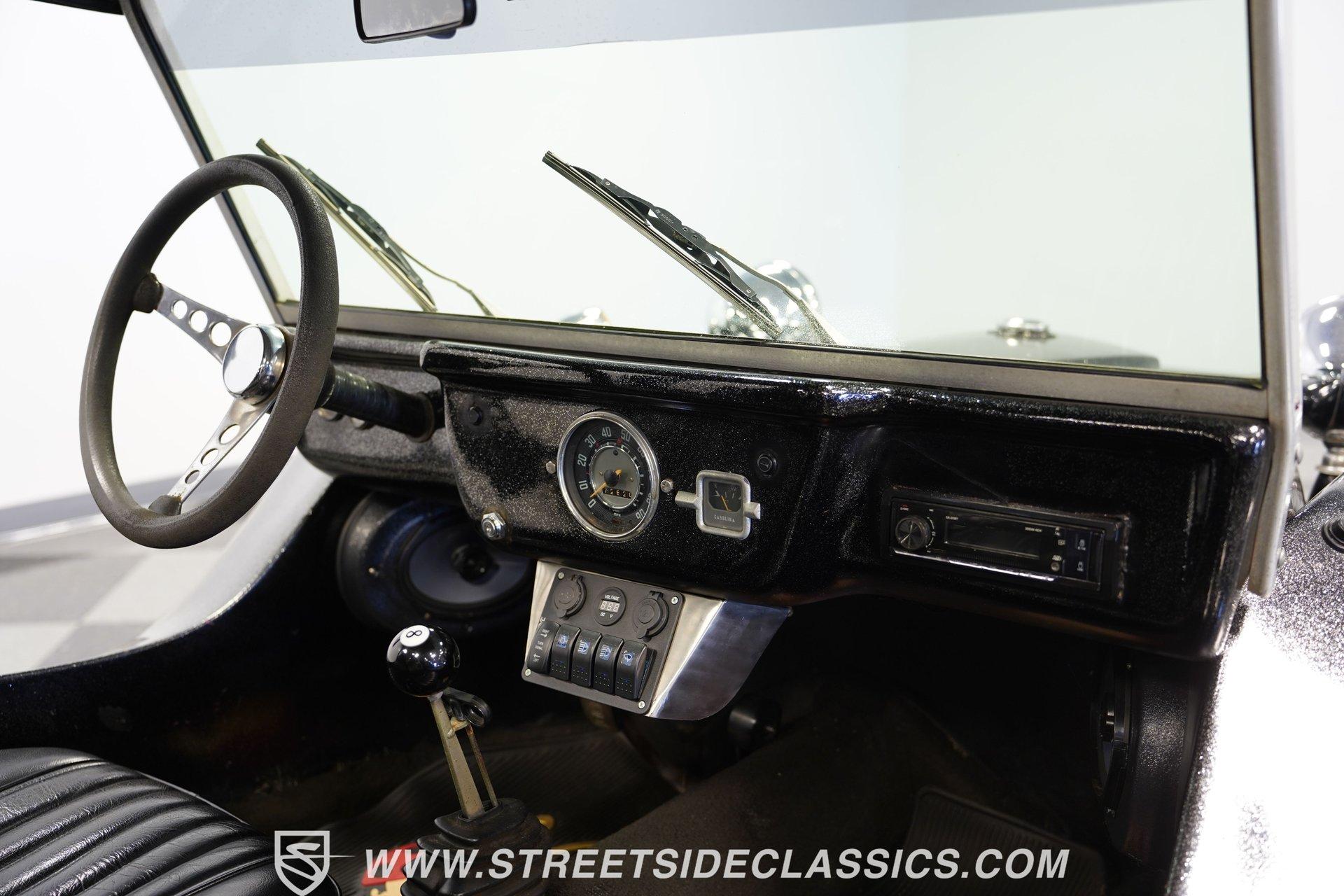 Step back in time and embrace the carefree spirit of the 1960s with this iconic 1966 Volkswagen Dune Buggy. More than just a vehicle, this buggy represents endless summer adventures and the joy of open-air driving, perfect for beach cruising or casual runs around town. Its classic fiberglass body and removable black vinyl top create a timeless look that turns heads wherever you go. If you're seeking a fun, nostalgic ride that combines vintage charm with reliable mechanics, this 1966 Volkswagen Dune Buggy could be the perfect match for your collection or weekend getaway. Inside, the buggy offers a simple yet comfortable interior. The dash is painted to match the exterior, while an aftermarket radio adds a modern touch. The steering wheel shows some dryness and cracking, consistent with the vehicle's age, and conveniently mounted light switches provide ease of use. Under the hood, this dune buggy is powered by a lively 1600 CC engine paired with a smooth-shifting 4-speed manual transmission, delivering a fun and engaging driving experience. The single barrel carburetor and dual exhaust system contribute to its distinctive sound and performance. The suspension features coilovers at both the front and rear, enhancing ride quality, while four-wheel drum brakes provide reliable stopping power. Recent upgrades include a new alternator, clutch components, shocks, throttle cable, shift repairs, new wiring, a marine fuse box, new horns, and a new carburetor, ensuring the buggy feels healthy and ready to hit the road. Highlights: 1966 Volkswagen Dune Buggy 1600 CC Engine 4-Speed Manual Transmission Single Barrel Carburetor Dual Chrome Exhaust Four Wheel Drum Brakes Coilover Suspension Front And Rear 14 Inch Wheels Front And Rear Black Vinyl Removable Top Mustang Tail Lights Aftermarket Radio With Aux And Bluetooth Vinyl Interior Financing Available Vehicle Protection Plans Available Worldwide Shipping This 1966 Volkswagen Dune Buggy is a fantastic opportunity to own a piece of automotive history that promises fun, style, and a unique driving experience. Whether you're looking for a weekend cruiser or a standout classic, this buggy is ready to deliver. Call, email, or come visit our showroom today!