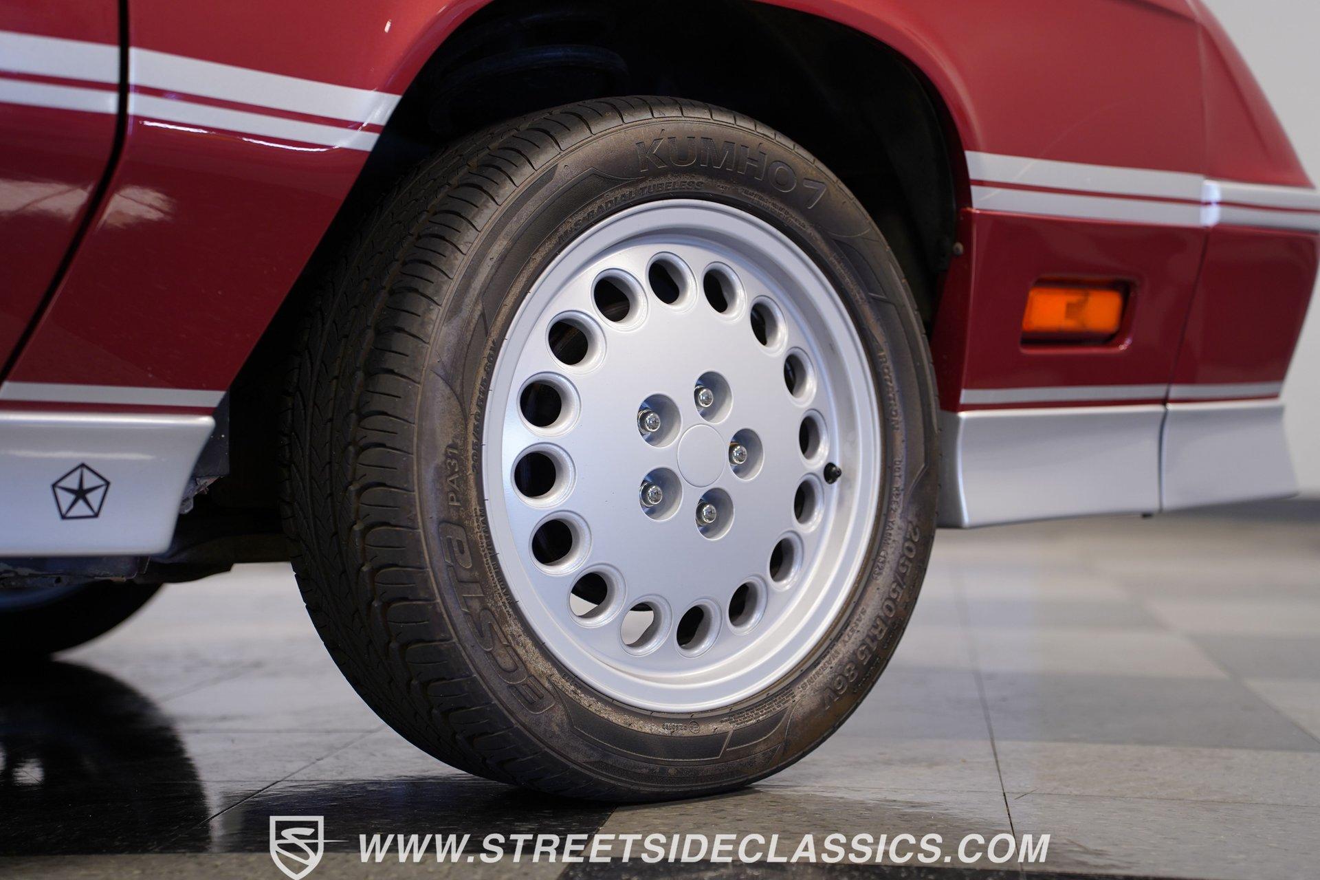 Step back into the thrilling era of 1980s performance with this iconic 1985 Dodge Charger Shelby Turbo. A symbol of lightweight agility and turbocharged excitement, this car captures the spirit of a decade when innovation and style met on the road. Imagine the roar of the Garrett AiResearch T3 turbocharger under the hood and the confident grip of its 5-speed manual transmission as you cruise through town. This Ruby Red beauty, accented with silver stripes, is a captivating blend of nostalgia and spirited driving, ready to make a statement in your garage and on the streets. Inside, the cabin offers a genuine vintage experience with its unique vinyl and cloth bucket seats that showcase classic design and comfort. Though showing some age, the factory interior remains largely intact with clean, clear gauges and a dash pad free of cracks. Practical features like air conditioning, heat, and a Bluetooth-enabled JVC CD player add modern convenience to the nostalgic atmosphere. The headliner and door panels reflect the car's history, inviting you to appreciate the character and authenticity of this Shelby Turbo. Under the hood, the heart of this Charger is a rebuilt 2.2-liter inline-4 turbocharged engine, delivering an exhilarating boost of up to 8 PSI. Paired with a smooth-shifting 5-speed manual transmission, this front-wheel-drive machine offers a spirited driving experience with power front disc brakes, power steering, and factory-style suspension featuring stiffer springs and MacPherson struts. The Bosch multi-point fuel injection and factory single exhaust complete the setup, ensuring reliable performance and a hint of turbocharged growl that enthusiasts will appreciate. Highlights: 1985 Dodge Charger Shelby Turbo Ruby Red Paint With Silver Stripes 2.2L Inline-4 Turbocharged Engine Garrett AiResearch T3 Turbocharger 5-Speed Manual Transmission Bosch Multi-Point Fuel Injection Power Front Disc Brakes Power Steering Factory Style Suspension Stiffer Springs And MacPherson Struts Factory Single Exhaust Air Conditioning And Heat Bluetooth JVC CD Player Sunroof Financing Available Vehicle Protection Plans Available Worldwide Shipping This 1985 Dodge Charger Shelby Turbo is a fantastic opportunity for collectors and enthusiasts alike to own a piece of automotive history that still delivers a dynamic driving experience. Its blend of classic styling, turbocharged performance, and driver-focused features make it a compelling choice. Don't miss out on adding this spirited hatchback to your collection. Call, email, or come visit our showroom today!