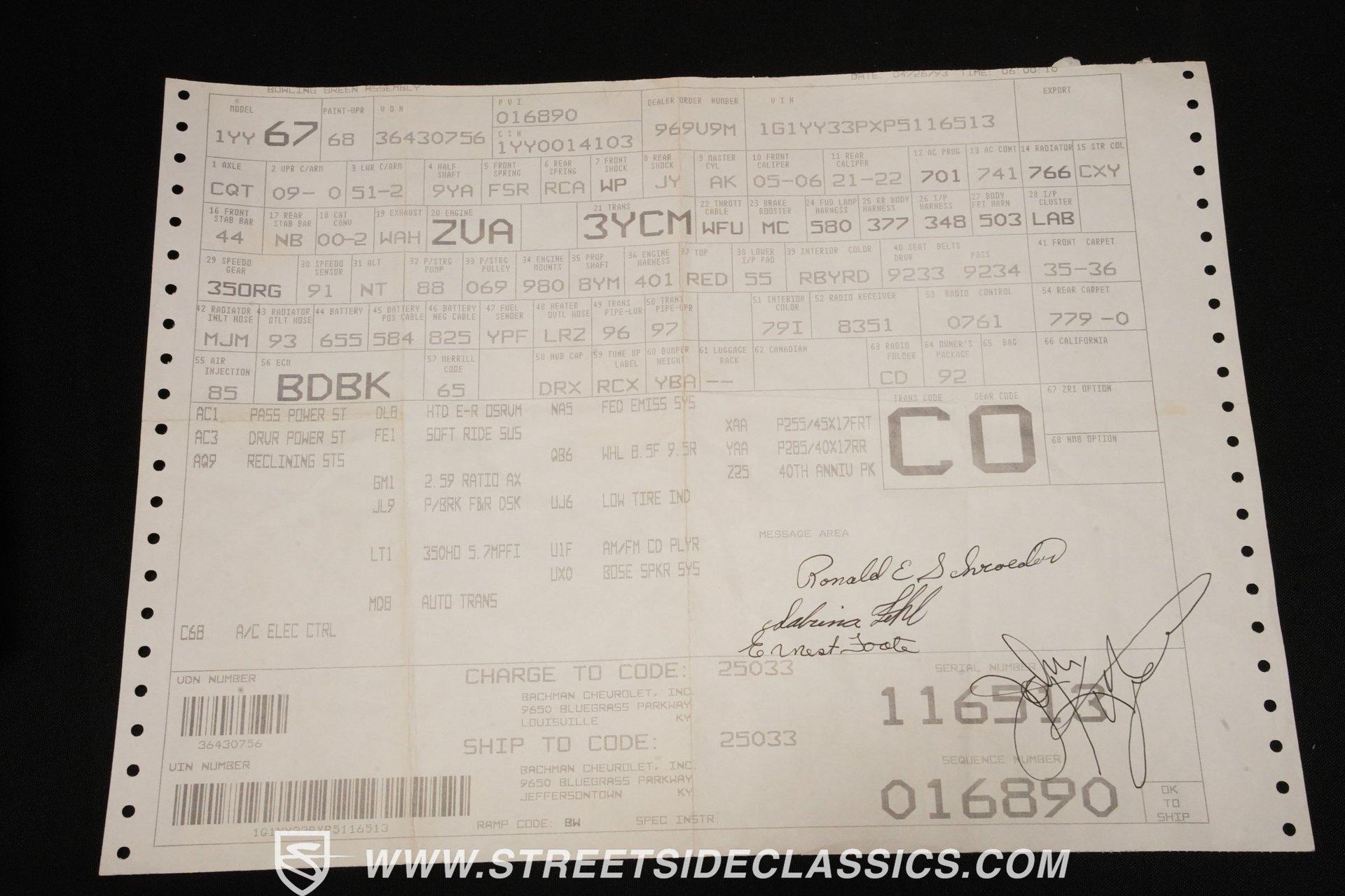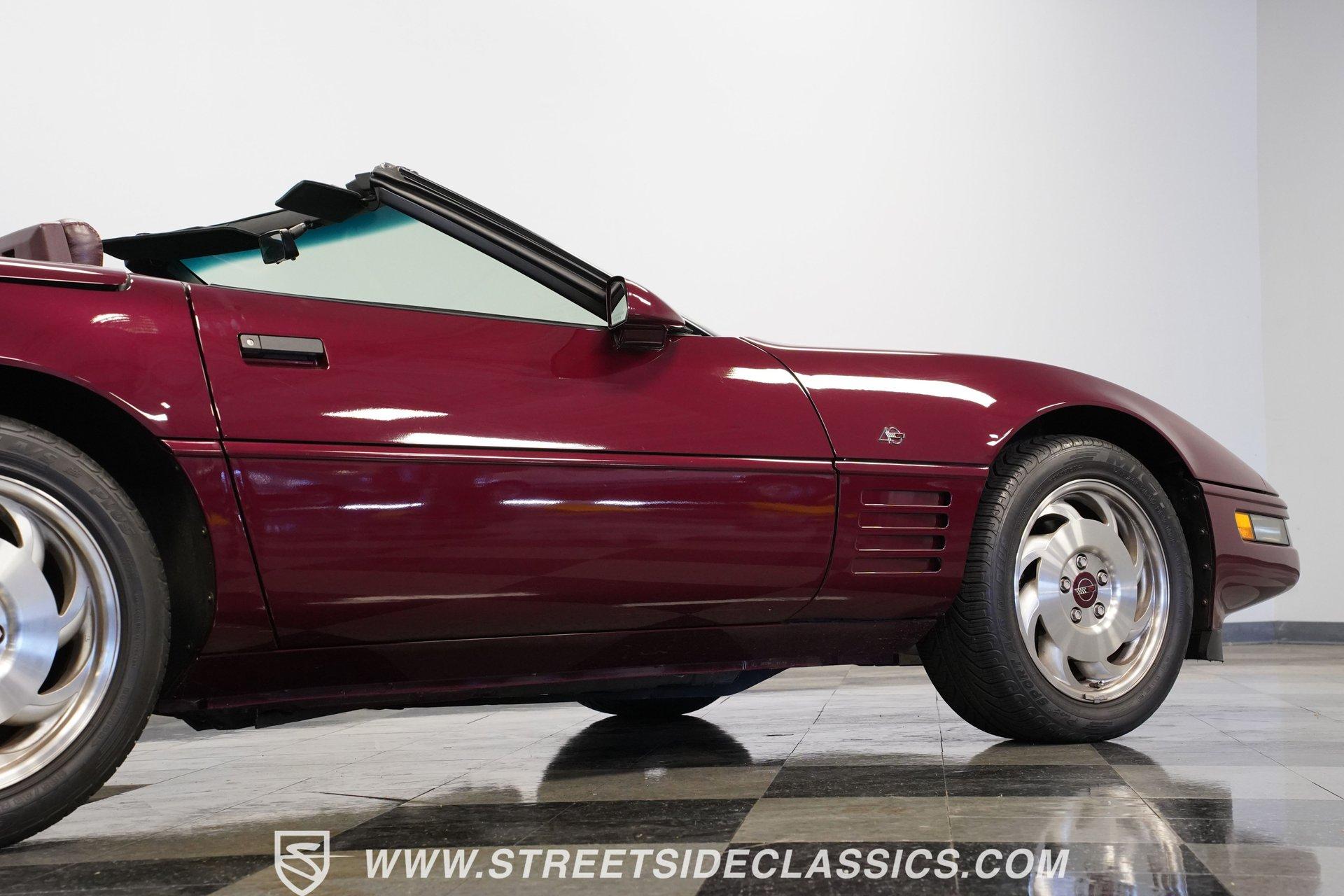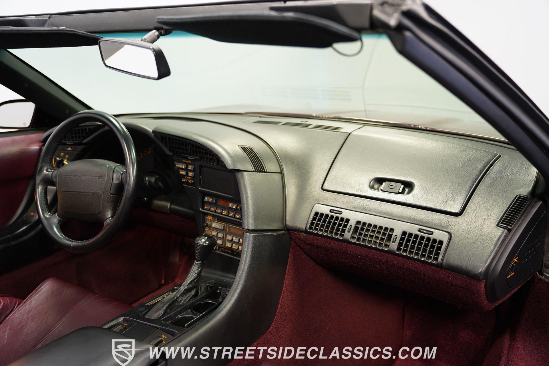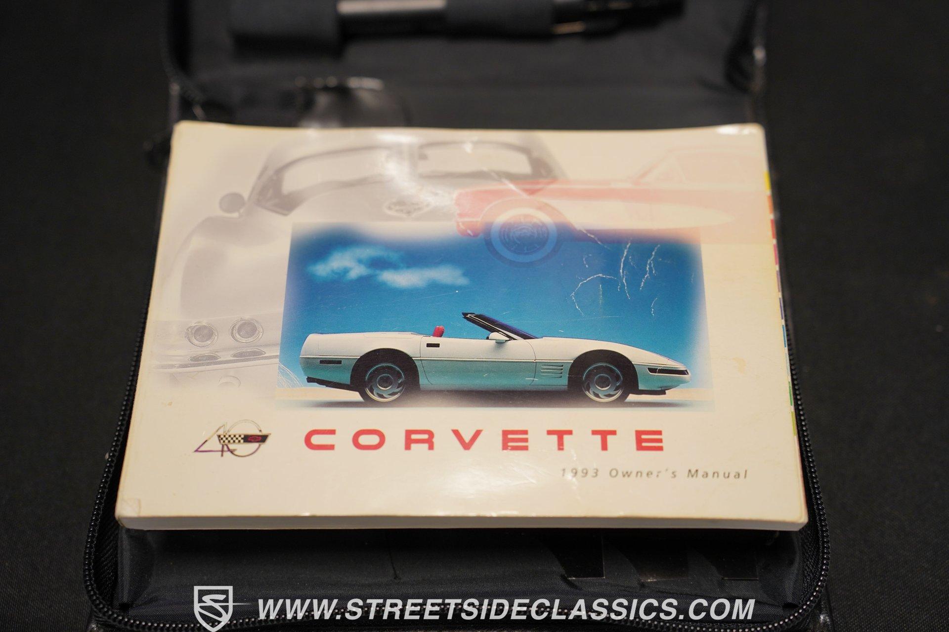 Experience the thrill and timeless appeal of American sports car excellence with this 1993 Chevrolet Corvette 40th Anniversary Convertible. This iconic vehicle embodies more than just transportation; it represents a legacy of power, style, and the open-road freedom that has defined the Corvette brand for decades. With its distinctive anniversary styling and convertible top, this car is a statement of classic design and spirited driving. Whether you're a collector or an enthusiast looking for a weekend cruiser, this Corvette offers a blend of nostalgia and performance that few cars can match. Don't miss your chance to own this exceptional 40th Anniversary model. Step inside to find a very clean factory interior that balances comfort with classic Corvette flair. The leather seats maintain their supportive and stylish appeal. The dashboard remains crack-free, with gauges and clusters in excellent condition, reflecting careful upkeep. Controls and buttons are fully functional, and the door cards and carpets present well, enhancing the overall driving experience. The convertible top is in excellent shape, complementing the interior's well-preserved condition and inviting you to enjoy open-air drives. Under the hood, this Corvette is powered by a fuel-injected 350 LT1 V8 engine that fires up effortlessly, paired with a smooth-shifting 4-speed automatic transmission. The factory presentation under the hood remains clean, with all hoses, belts, and wiring appearing original and well-maintained. The car delivers solid acceleration and handling, with well-sorted steering and brakes ensuring confident control. Equipped with power disc brakes and power steering, this Corvette offers a driving experience that is both engaging and manageable for enthusiasts of all levels. Highlights: 1993 Chevrolet Corvette 40th Anniversary Convertible Actual Mileage: 27,283 Fuel Injected 350 LT1 V8 Engine 4-Speed Automatic Transmission Factory Paint in Very Good Condition Convertible Top in Excellent Shape Leather Interior with Minor Wear Power Steering and Power Disc Brakes Air Conditioning with R-12 Refrigerant AM/FM Radio and Cassette Player Cruise Control and Power Windows Anti-Lock Brakes and Driver Airbag Original Window Sticker and Maintenance Records Documentation Includes Reproduction Build Sheet Financing Available Vehicle Protection Plans Available Worldwide Shipping This 1993 Chevrolet Corvette 40th Anniversary Convertible is a fantastic opportunity for anyone seeking a well-preserved, low-mileage classic with genuine performance and style. It's ready to be enjoyed as a standout piece in your collection or as a thrilling weekend drive. Call, email, or come visit our showroom today!