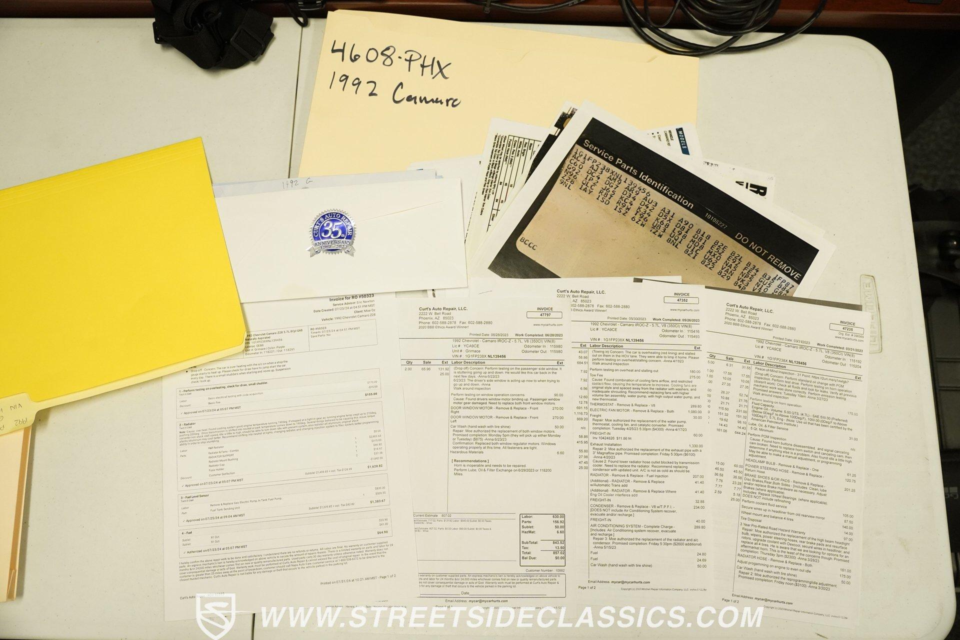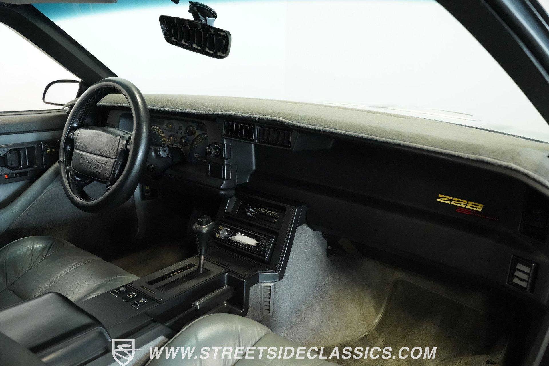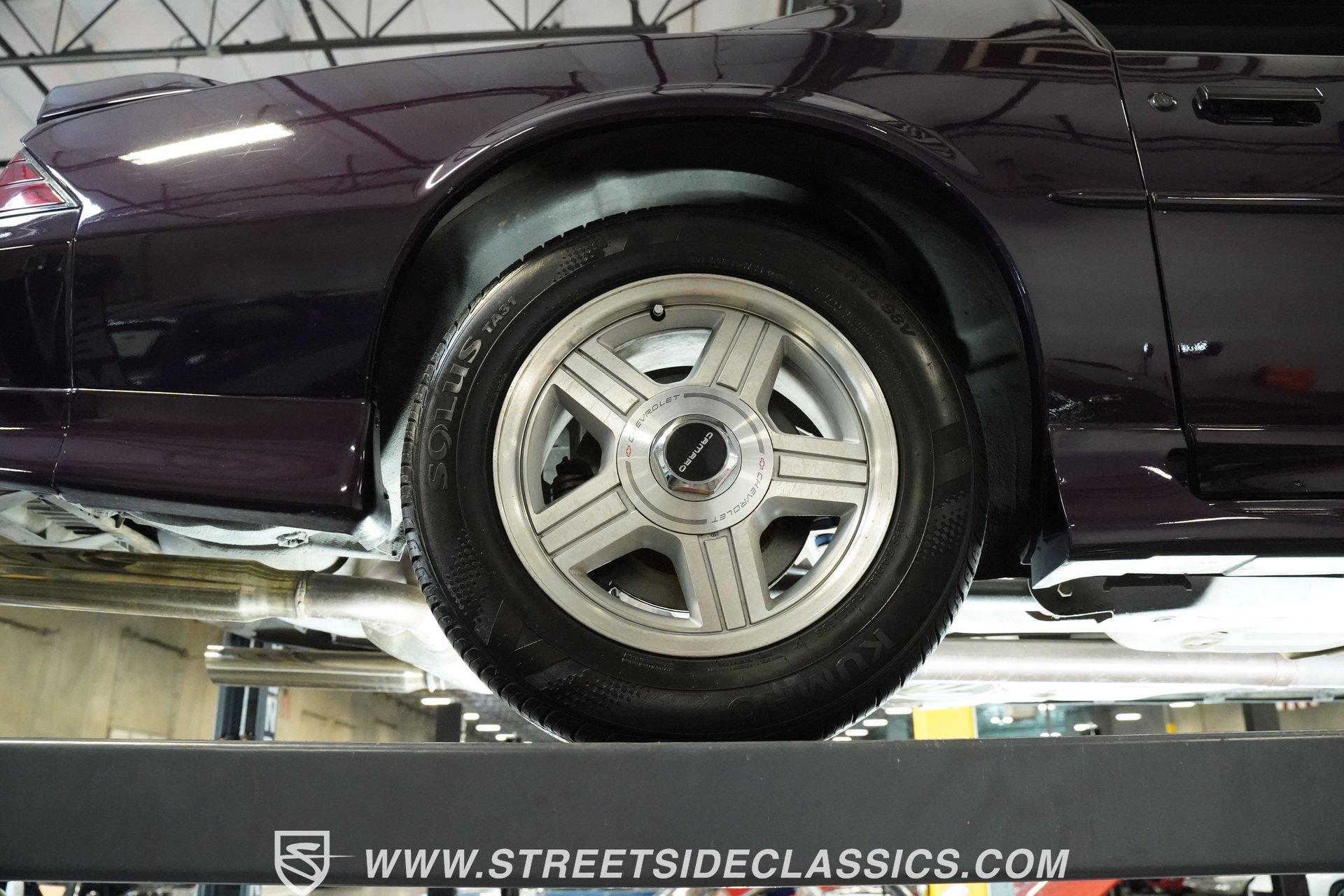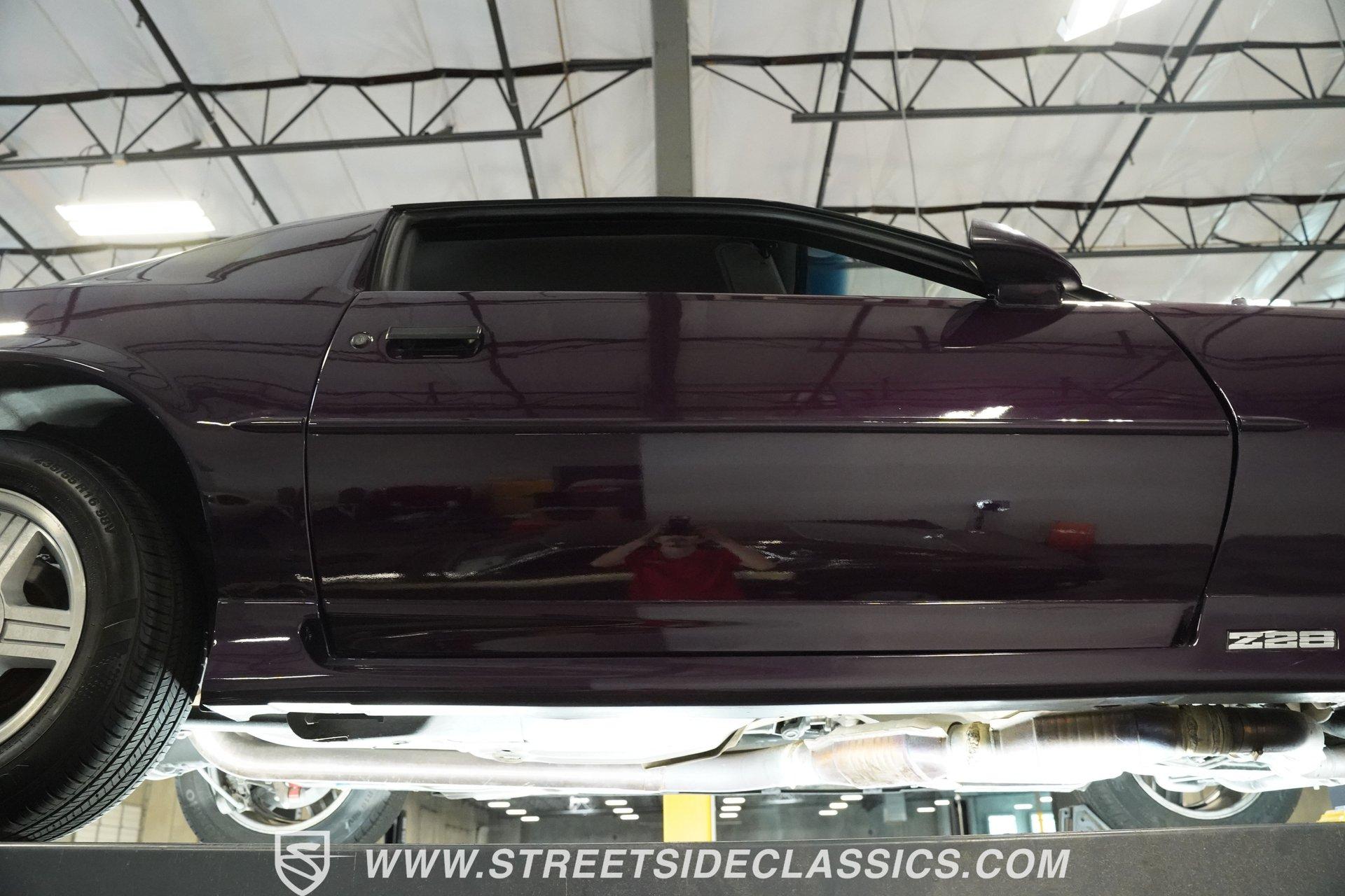 Anniversaries are meant to be celebrated. Few cars make it to the quarter-century mark, and even fewer with the style and legacy that this 1992 Chevrolet Camaro Z28 25th Anniversary brings to the table. First-gen hood and deck lid stripes, trick faux hood scoops, black headlamp pockets, and a big decklid spoiler -this third-generation Pony Car has a mere 118,912 actual miles on its odometer. Fully repainted in its factory Purple Haze Metallic, this super rare Camaro is one of just 55 offered in this color and one of only 15 to come in Purple as a hardtop, as if this anniversary model needs any more reasons to be celebrated. Inside, we find a cool grey leather interior that looks great for its age. A center console separates a pair of plush and supportive bucket seats, with the driver's seat getting power adjustment. The padded and power-assisted four-spoke steering wheel sits just forward of the original six-pod analog gauge cluster, which features a 140 mph speedometer and a 7,000 RPM tach. Reminding you of how easy driving used to be, the slider and knob HVAC controls allow simple temperature control and include functioning air conditioning. Thankfully, though, the stereo has embraced modern tech and been upgraded to a Pioneer AM/FM/CD/AUX head unit. Power locks, windows, and mirrors along with cruise control offer plenty of modern amenities for an early 1990s vehicle. A well-placed 25th Anniversary Commemorative Edition sits on the glove box door panel to remind you that this is no ordinary Z/28. Under that expansive hood, we find a 350-cubic-inch overhead-valve crate V-8 engine. With electronic fuel injection, shorty headers, and a MagnaFlow exhaust, this small block sends power to the rear wheels via a 700R4 four-speed automatic transmission and ten bolt rear end. Sixteen-inch five-spoke factory wheels wrapped in Kumho rubber complete the aggressive style this modern muscle car embodies. HIGHLIGHTS: One of 55 Painted Purple Haze Metallic One of 15 Purple Metallic Hardtops 118,912 Actual Miles Deck Spoiler Racing Stripes 350 CID V8 Crate Motor EFI Shorty Headers MagnaFlow Exhaust 700R4 Four Speed Auto Ten Bolt Rear Tubular A-Arms Tubular Factory Style Links Sway Bars Adjustable Rear Shocks Four Wheel Power Discs ABS Factory 16 Inch Wheels Power Steering Grey Leather Bucket Seats Power Driver's Seat Power Windows Power Locks Power Mirrors Air Conditioning Cruise Pioneer AM/FM/CD/AUX Head Unit Receipts This 1992 Chevrolet Camaro Z28 25th Anniversary rides on an upgraded suspension that consists of tubular upper and lower A-arms, sway bar, coils, and shocks in front and tubular factory-style links, sway bar, coils, and adjustable shocks in the rear. Power disc brakes at all four corners stand ready to scrub off speed at a moment's notice. If you've been looking for an incredibly rare Pony Car that looks as good as it goes, and is all but guaranteed not to see anywhere else, don't wait another second. Call today!
