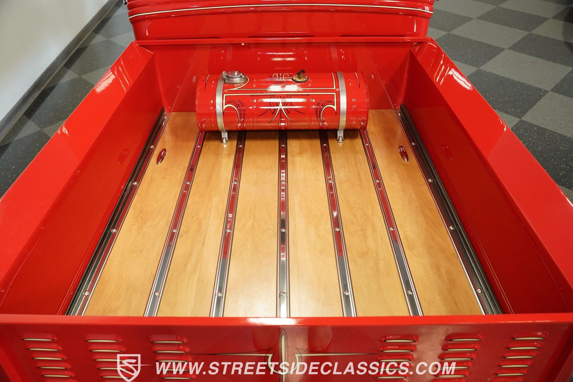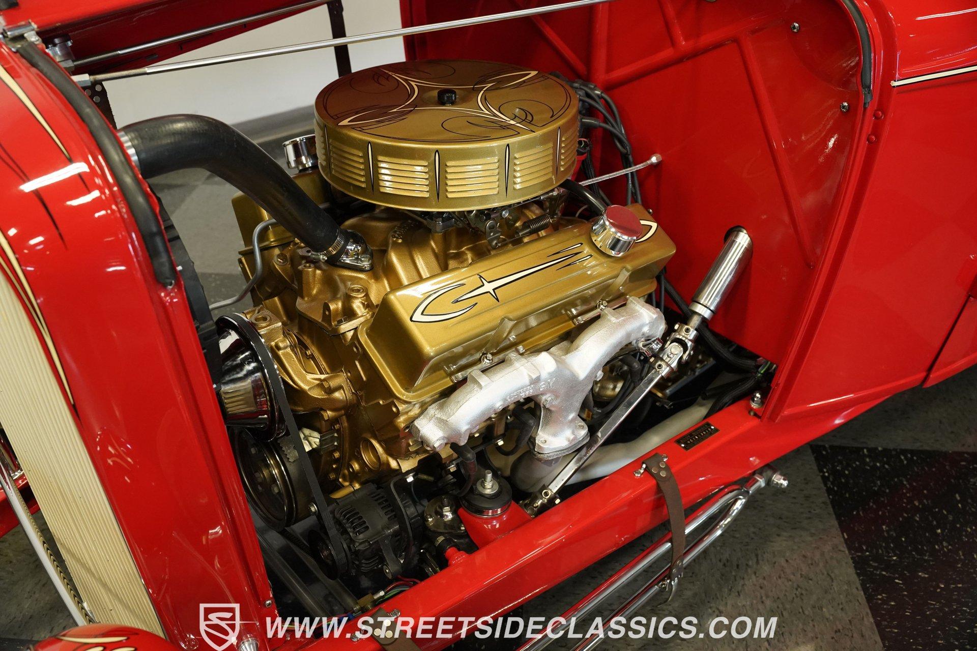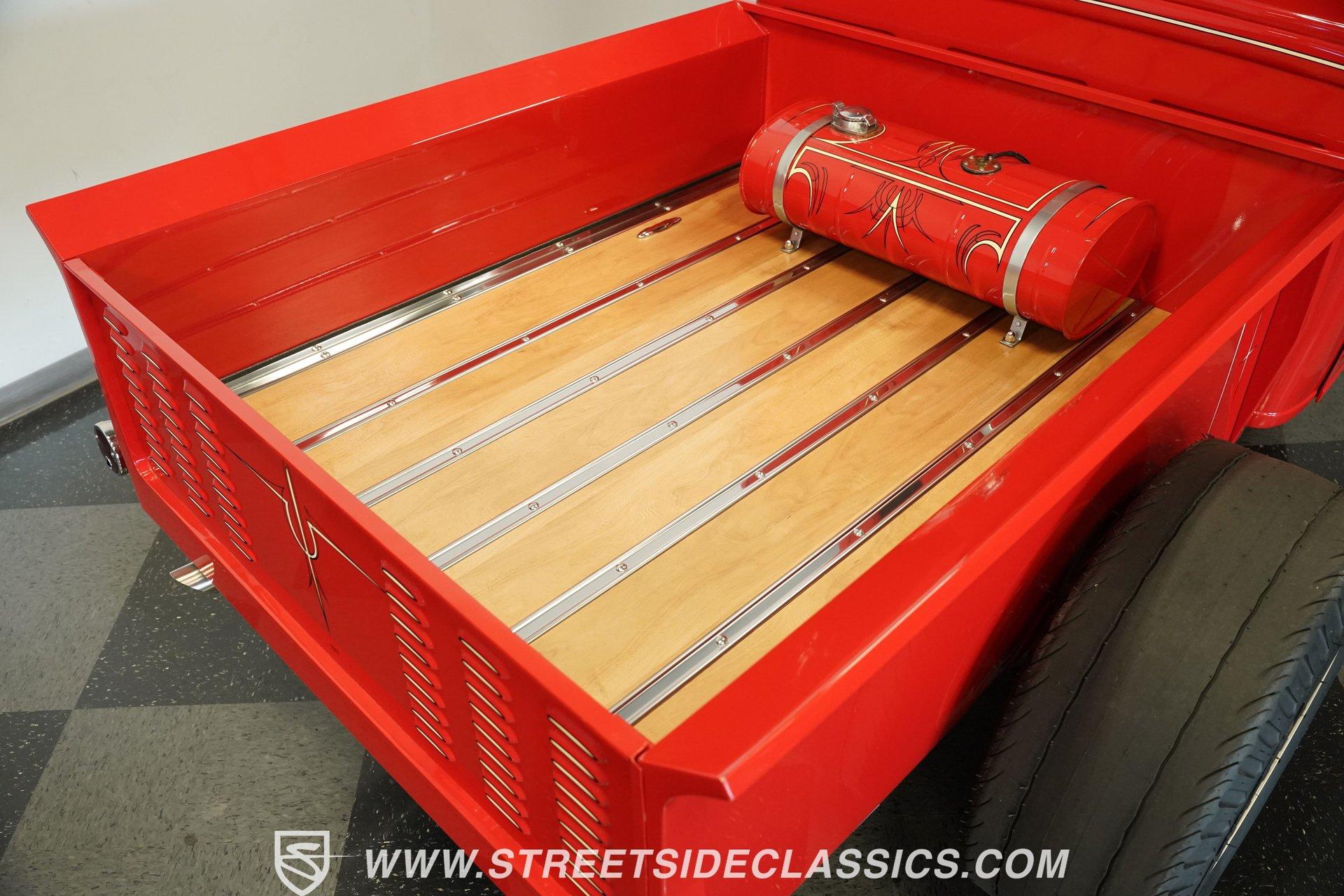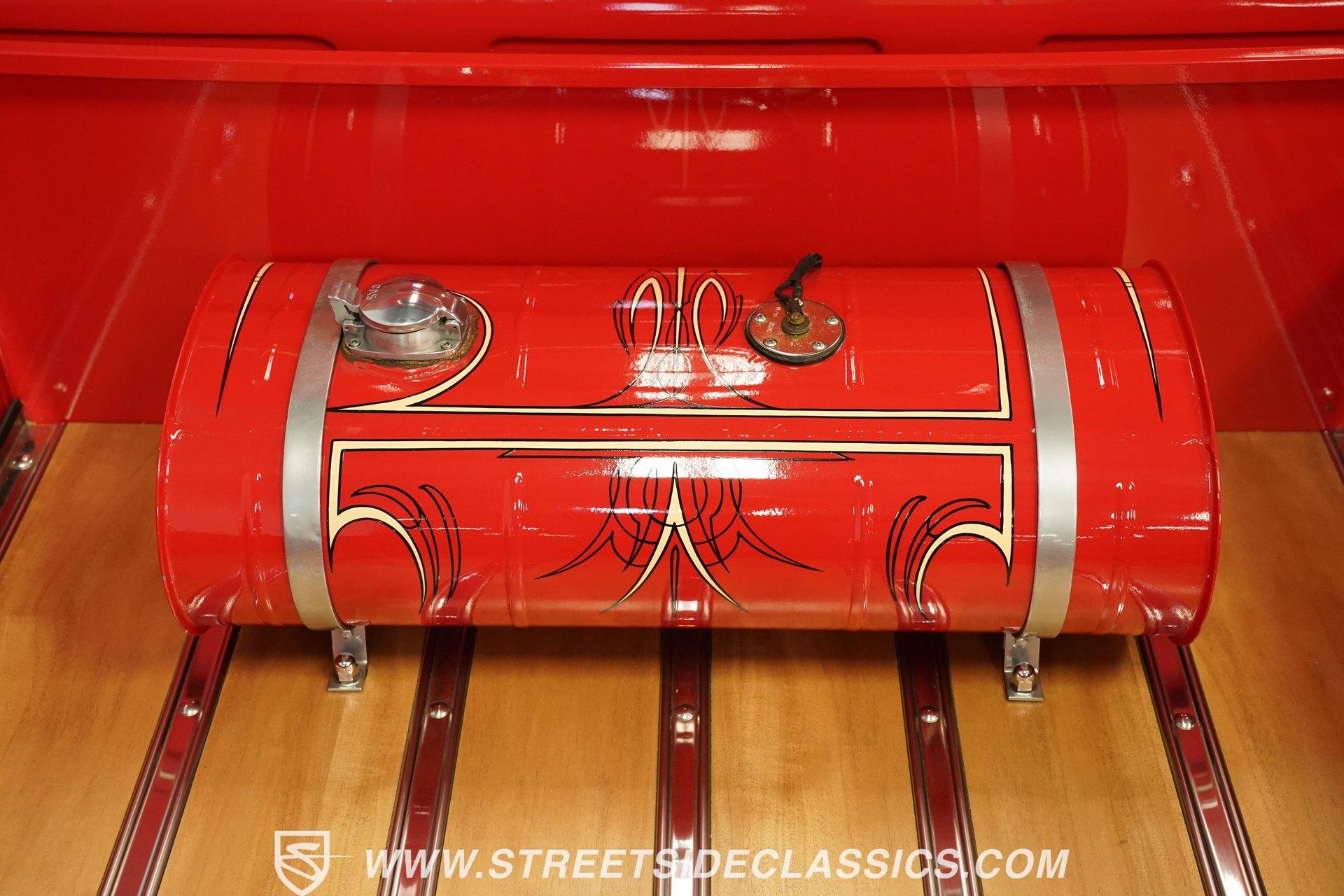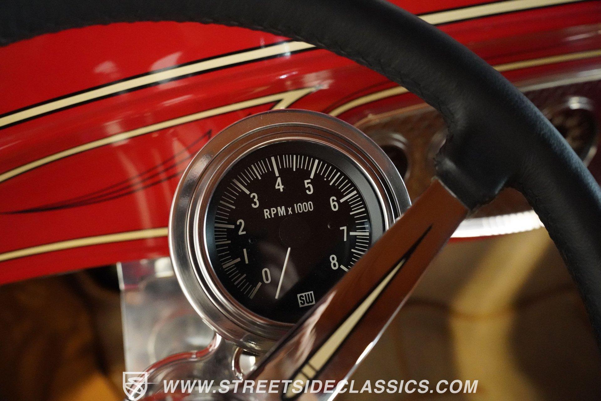 Even in basic form, its singularly striking appearance would be plenty to make this 1932 Ford Pickup Streetrod a constant conversation piece, but the skilled professionals charged with its build obviously weren't the complacent types. Inside and out, this stellar streetrod is a rolling example of aftermarket automotive awesomeness. Featuring sturdy, all-steel construction, its cab has been chopped by four inches and is dressed in bright red paint, and ornamented with hand-applied pinstripes, a combination that's sure to impress, even under the closest scrutiny. With narrow front wheels that give way to beefy racing slicks in back, and a tastefully lowered carriage, this vintage Ford is a lock to turn heads wherever it goes, while also featuring a level of drivability and craftsmanship you don't always see in this segment. Its stellar interior is another high point, featuring a tan bench seat with precise stitching and plenty of padding for even longer journeys that this classic Ford, with its strong running condition, will have no problem embarking upon. A closer look will reveal that the intricate exterior pinstriping carries into the painted steel surfaces of the cabin, and the brightly chromed door handles and window cranks really pop against this immaculate background. A Lokar shifter is positioned just in front of the seat, standing by to put this ride through its paces, and the assembly of Stewart Warner gauges recessed into the instrument panel is accompanied by a column-mounted tachometer to keep tabs on motoring functions. In back, the mahogany-lined bed reflects the same high standards applied to the rest of this truck's build. This streetrod has been configured not only to provide plenty of power, but also for a confidence-inspiring driving experience. The 350-cubic-inch V8 that anchors its drivetrain is fed by an Edelbrock 4-barrel carburetor, sitting atop an intake manifold by the same manufacturer, and runs smoothly, teaming with a rock-solid 3-speed automatic TH350 that shifts with no issues at all. Up front, a sizable aluminum radiator has been paired with dual electric fans to keep operating temperatures in check and sits under a custom shroud that adds a striking visual element beneath the hood. With a custom suspension at both ends, this classic Ford offers a refined ride that will make you look forward to getting behind the wheel at every opportunity. HIGHLIGHTS ONLY 2786 MILES ON THIS EXACTING BUILD 350-CUBIC-INCH V8 ENGINE EDELBROCK 4-BARREL CARBURETOR AND INTAKE MANIFOLD ALUMINUM RADIATOR, WITH DUAL ELECTRIC FANS 3-SPEED AUTOMATIC TH350 TRANSMISSION DUAL EXHAUST, WITH GLASSPACK STYLE MUFFLERS FULLY CUSTOM SUSPENSION SYSTEM AT BOTH ENDS 16" WHEELSMITH WHEELS HIGH-IMPACT RED EXTERIOR STURDY, ALL-STEEL CONSTRUCTION TINTED GLASS WINDOWS OUTSTANDING, FULLY-CUSTOM INTERIOR BENCH SEATING FLOOR SHIFTER Cruising on a set of powder-coated Wheelsmith steel wheels that position 4.5" wide Firestone Deluxe Champion tires in front and stout 10" wide Firestone Dragster slicks in back, this 1932 Ford Pickup Streetrod features a level of craftsmanship that must be seen in person to be fully appreciated. Call today!