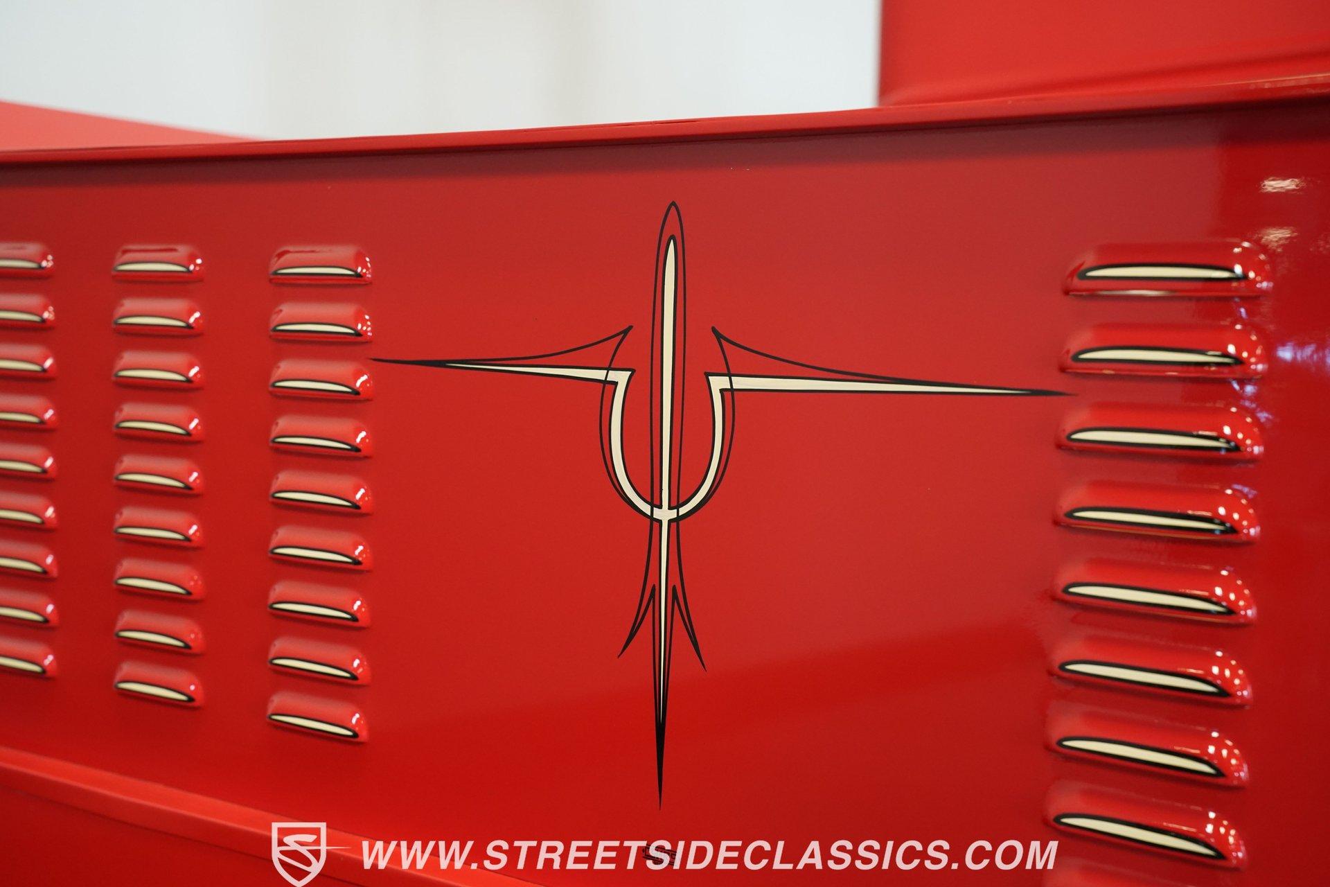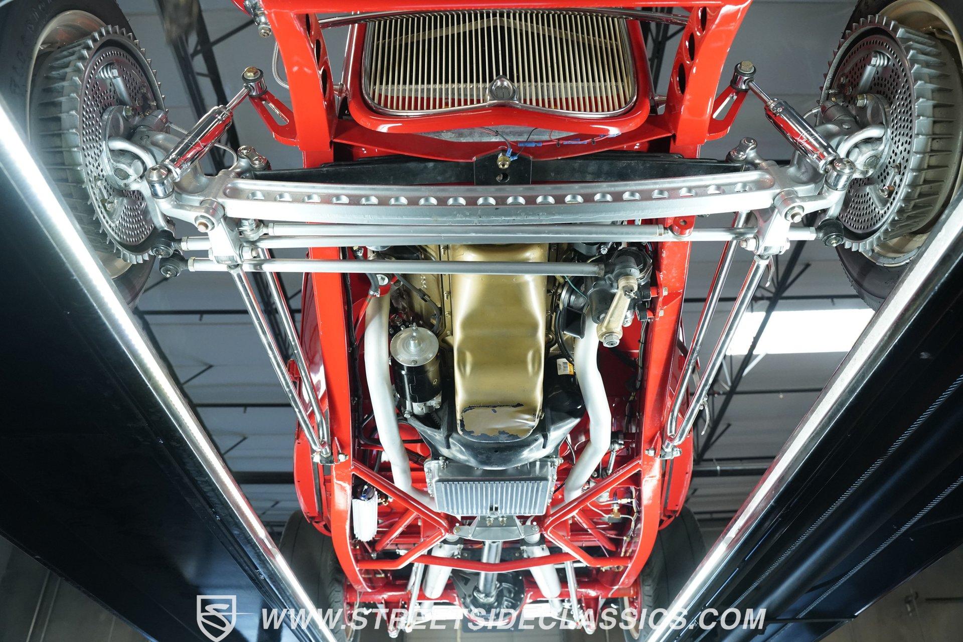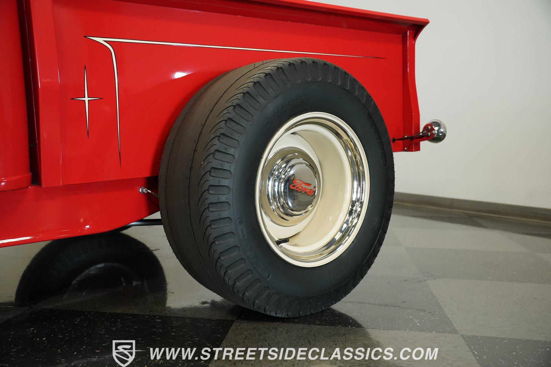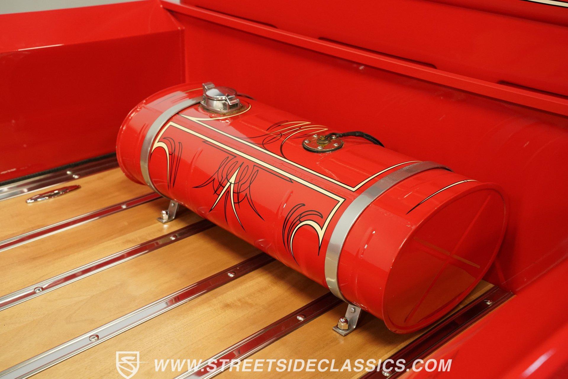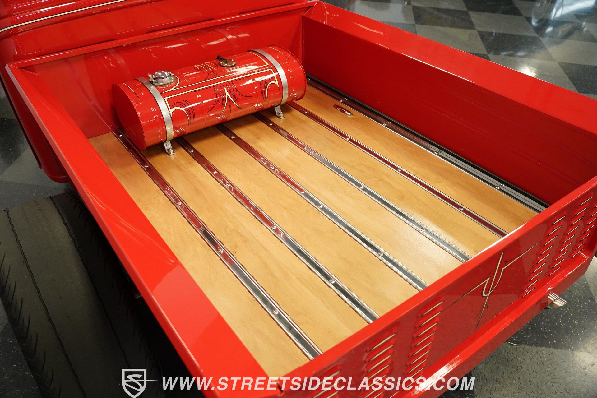 Even in basic form, its singularly striking appearance would be plenty to make this 1932 Ford Pickup Streetrod a constant conversation piece, but the skilled professionals charged with its build obviously weren't the complacent types. Inside and out, this stellar streetrod is a rolling example of aftermarket automotive awesomeness. Featuring sturdy, all-steel construction, its cab has been chopped by four inches and is dressed in bright red paint, and ornamented with hand-applied pinstripes, a combination that's sure to impress, even under the closest scrutiny. With narrow front wheels that give way to beefy racing slicks in back, and a tastefully lowered carriage, this vintage Ford is a lock to turn heads wherever it goes, while also featuring a level of drivability and craftsmanship you don't always see in this segment. Its stellar interior is another high point, featuring a tan bench seat with precise stitching and plenty of padding for even longer journeys that this classic Ford, with its strong running condition, will have no problem embarking upon. A closer look will reveal that the intricate exterior pinstriping carries into the painted steel surfaces of the cabin, and the brightly chromed door handles and window cranks really pop against this immaculate background. A Lokar shifter is positioned just in front of the seat, standing by to put this ride through its paces, and the assembly of Stewart Warner gauges recessed into the instrument panel is accompanied by a column-mounted tachometer to keep tabs on motoring functions. In back, the mahogany-lined bed reflects the same high standards applied to the rest of this truck's build. This streetrod has been configured not only to provide plenty of power, but also for a confidence-inspiring driving experience. The 350-cubic-inch V8 that anchors its drivetrain is fed by an Edelbrock 4-barrel carburetor, sitting atop an intake manifold by the same manufacturer, and runs smoothly, teaming with a rock-solid 3-speed automatic TH350 that shifts with no issues at all. Up front, a sizable aluminum radiator has been paired with dual electric fans to keep operating temperatures in check and sits under a custom shroud that adds a striking visual element beneath the hood. With a custom suspension at both ends, this classic Ford offers a refined ride that will make you look forward to getting behind the wheel at every opportunity. HIGHLIGHTS ONLY 2786 MILES ON THIS EXACTING BUILD 350-CUBIC-INCH V8 ENGINE EDELBROCK 4-BARREL CARBURETOR AND INTAKE MANIFOLD ALUMINUM RADIATOR, WITH DUAL ELECTRIC FANS 3-SPEED AUTOMATIC TH350 TRANSMISSION DUAL EXHAUST, WITH GLASSPACK STYLE MUFFLERS FULLY CUSTOM SUSPENSION SYSTEM AT BOTH ENDS 16" WHEELSMITH WHEELS HIGH-IMPACT RED EXTERIOR STURDY, ALL-STEEL CONSTRUCTION TINTED GLASS WINDOWS OUTSTANDING, FULLY-CUSTOM INTERIOR BENCH SEATING FLOOR SHIFTER Cruising on a set of powder-coated Wheelsmith steel wheels that position 4.5" wide Firestone Deluxe Champion tires in front and stout 10" wide Firestone Dragster slicks in back, this 1932 Ford Pickup Streetrod features a level of craftsmanship that must be seen in person to be fully appreciated. Call today!