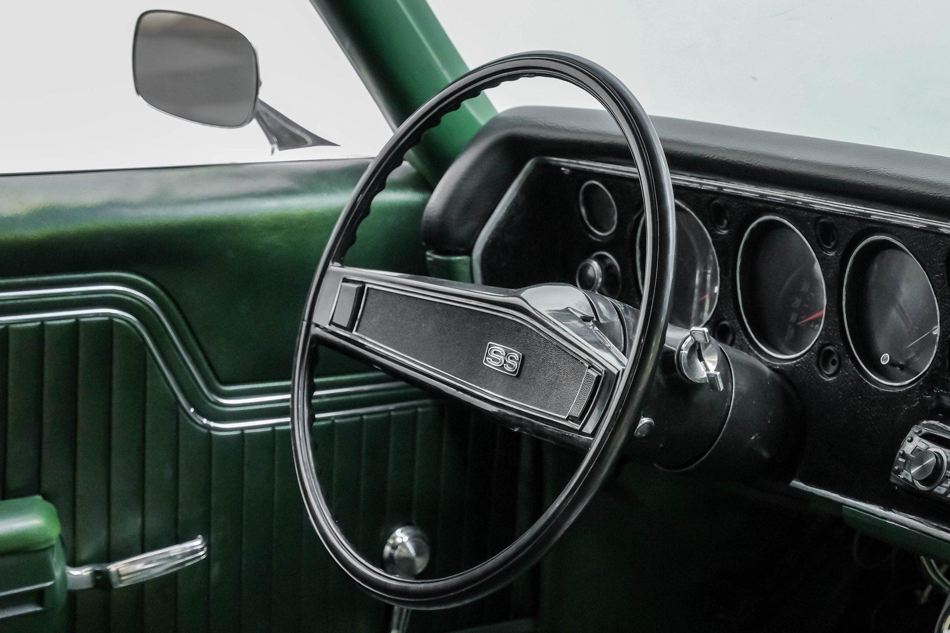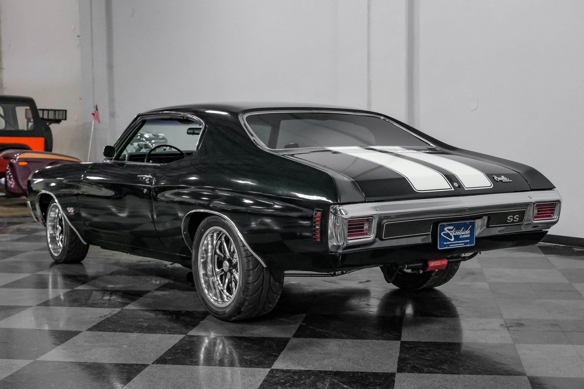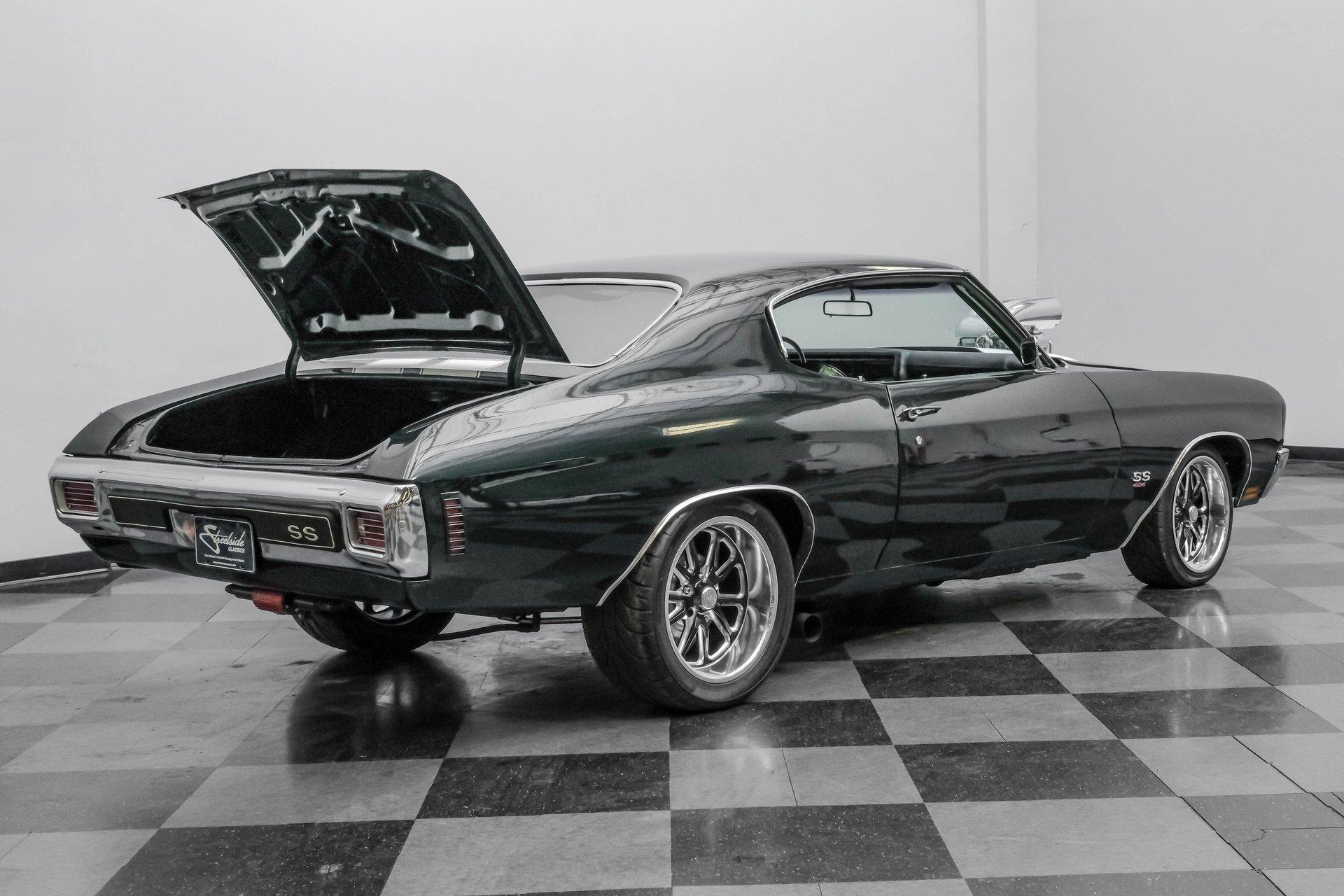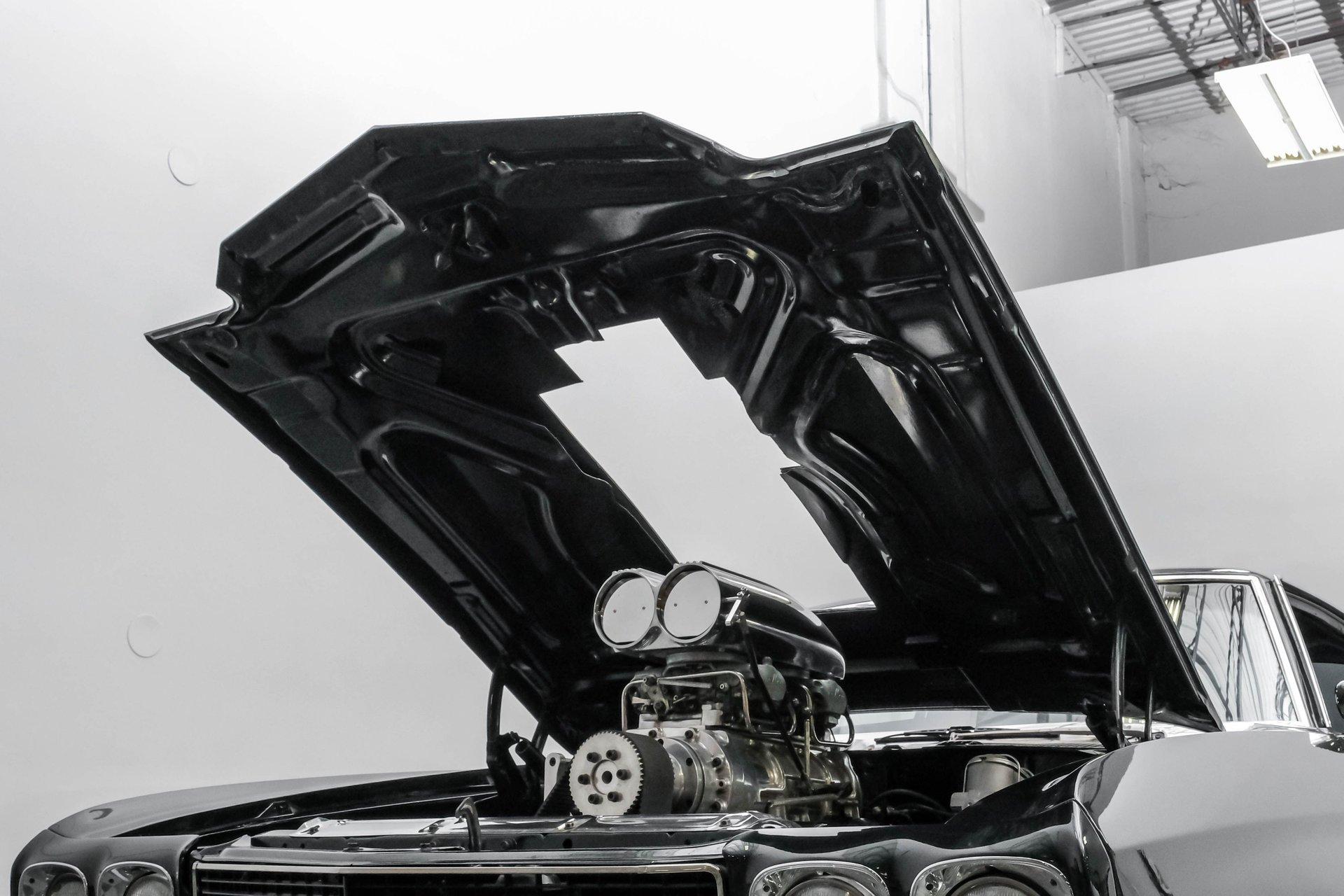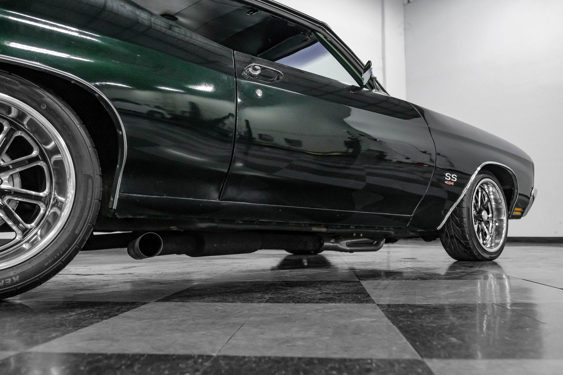 Experience the thrill of owning a true American muscle legend with this supercharged 1970 Chevrolet Chevelle SS Tribute. This iconic car represents the spirit of power and performance from the golden era of muscle cars, evoking memories of roaring engines and adrenaline-fueled drives. It's more than just a vehicle; it's a statement of passion and craftsmanship. With its aggressive stance and supercharged heart, this Chevelle commands attention wherever it goes. Imagine the exhilaration of driving a car that boasts an estimated 1200 horsepower on 110 fuel, yet can still daily on regular pump gas! Step inside to find a classic green vinyl interior that blends vintage charm with practical upgrades. The bucket seats offer good support, complemented by a middle console with a staple-style shifter and SS gauges featuring a tachometer. A Pioneer AM/FM/CD player with auxiliary input keeps your favorite tunes flowing while the tilt steering column enhances driving comfort, and the overall cabin retains much of its original character with some tasteful modern touches. Under the hood lies a powerhouse 540 V8 supercharged engine, recently rebuilt with approximately 600 miles on the build. This beast features a Weiand 871 supercharger, Dart Big M block, Dart aluminum ported heads, Comp Rockers, a hydraulic roller blower cam, flat top pistons, Eagle crank and rods, and MSD ignition. The 3-speed automatic transmission shifts smoothly, channeling immense power through a 12-bolt rear axle with factory-style lowered suspension and Hotchkis sway bars. The front sports power disc brakes with power steering, ensuring confident handling and stopping power. Highlights Estimated 1200HP on 110 Fuel 540 V8 Supercharged Engine Approximately 600 Miles Since Rebuild Weiand 871 Supercharger Dart Big M Block Engine Dart Aluminum Ported Heads Comp Rockers Hydraulic Roller Cam Flat Top Pistons, Eagle Crank and Rods MSD Ignition System 3-Speed Automatic Transmission Power Disc Front Brakes, Power Drum Rear Factory Style Lowered Suspension Tilt Steering Column Green Vinyl Bucket Seats Pioneer AM/FM/CD Player with Aux Input Financing Available Vehicle Protection Plans Available Worldwide Shipping This 1970 Chevrolet Chevelle SS Tribute is a fantastic opportunity for muscle car enthusiasts seeking a blend of classic style and power. It's ready to impress on the street or at the show, offering a driving experience that few can match. Don't miss your chance to own this remarkable machine. Call, email, or come visit our showroom today!