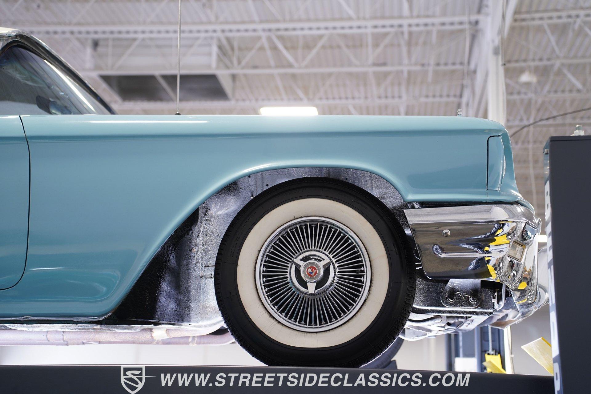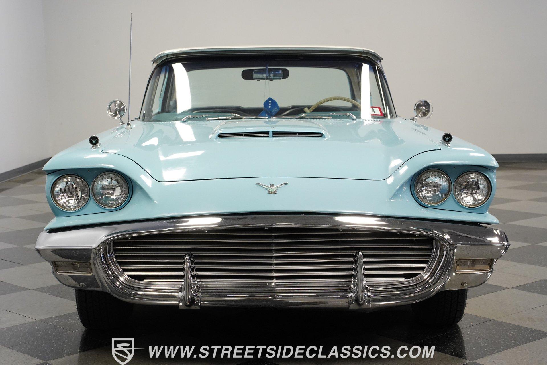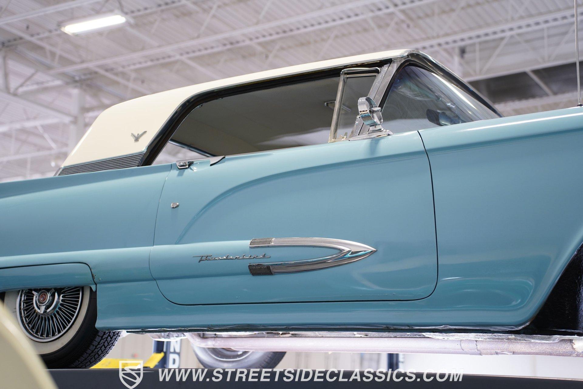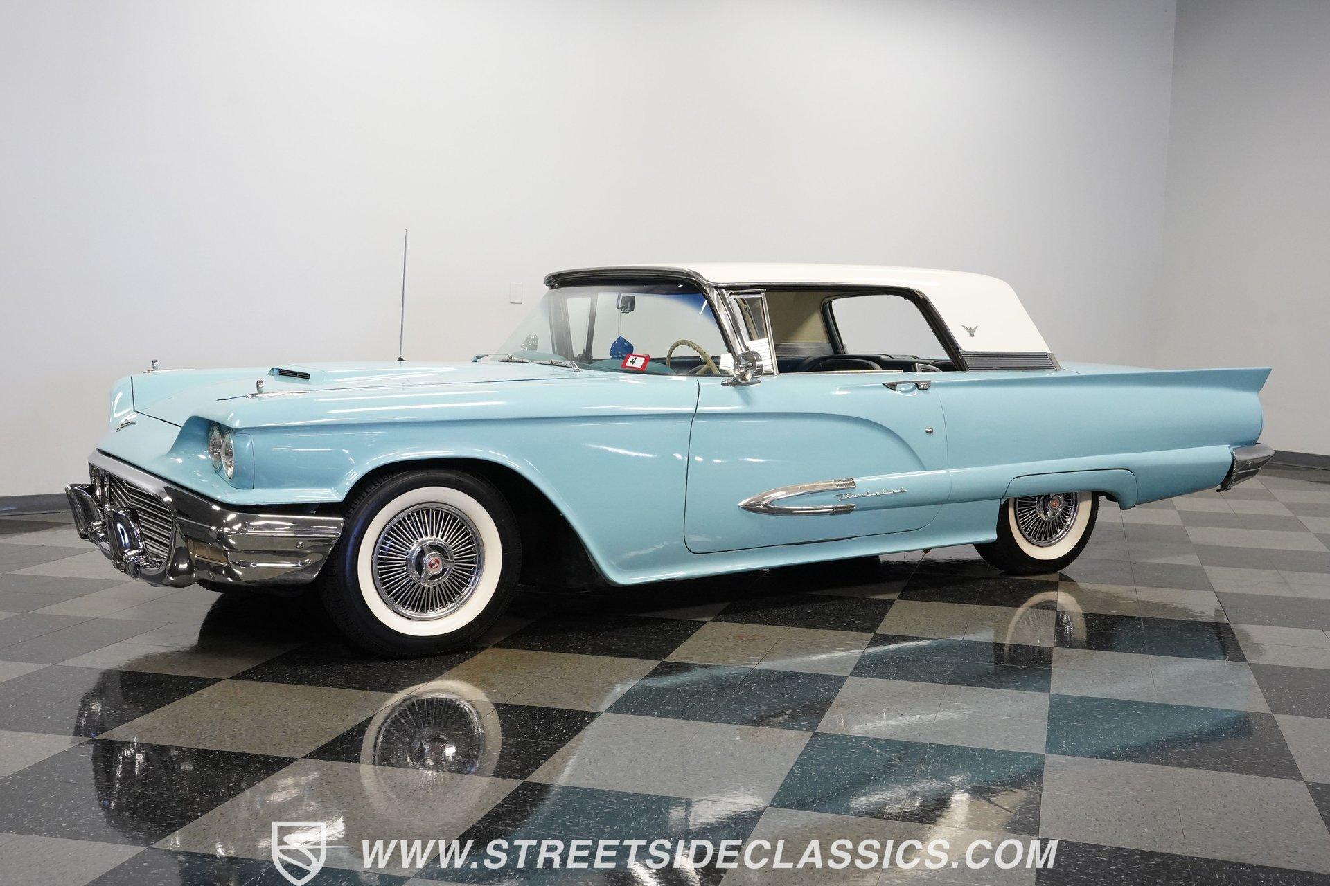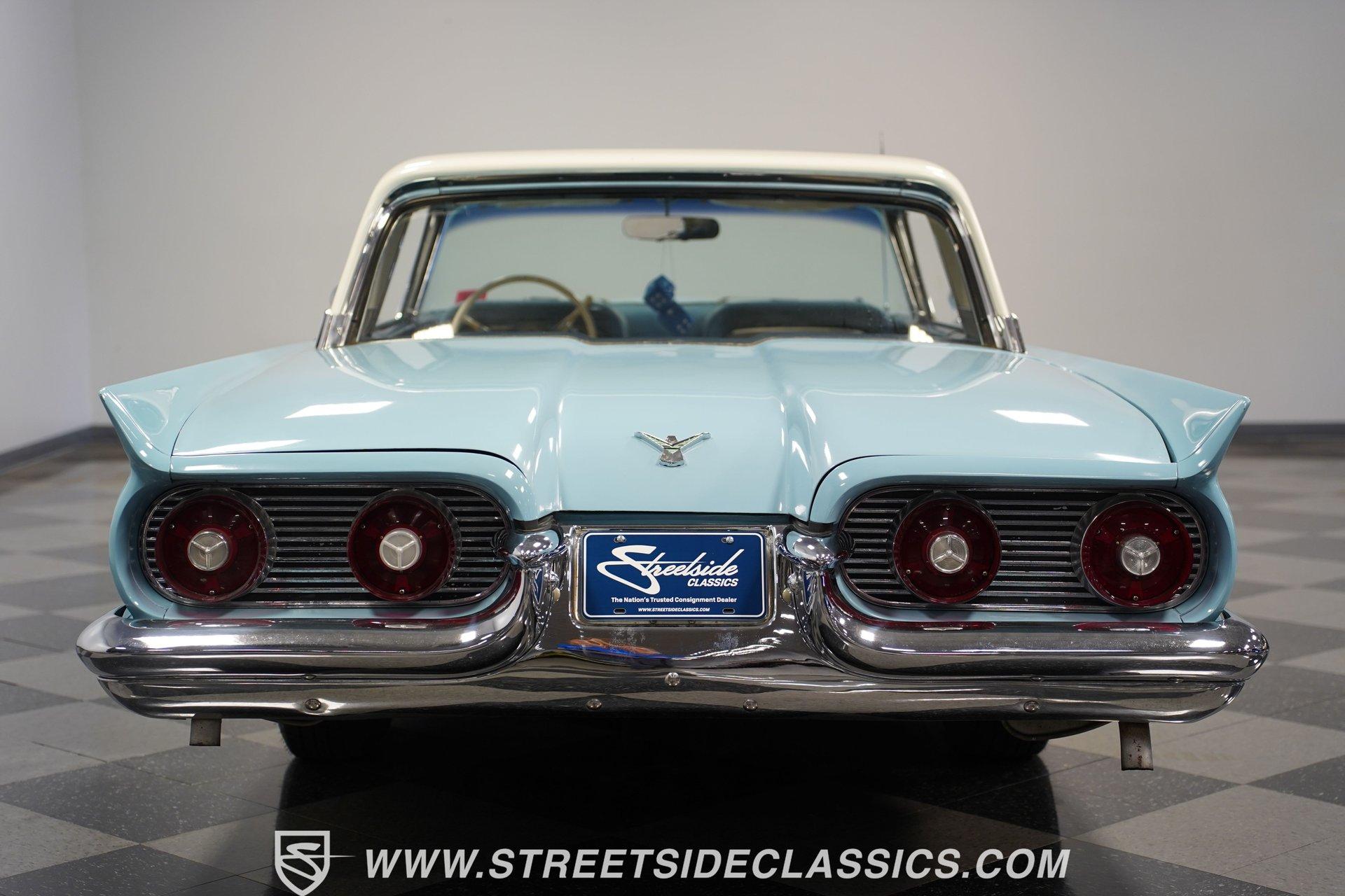 Step back in time and embrace the spirit of the 1950s with this iconic 1959 Ford Thunderbird. Representing an era of bold design and classic American muscle, this Thunderbird is more than a car, it's a statement of style and nostalgia. Imagine cruising down the open road, turning heads with its two-tone Light Baltic Blue paint and that unmistakable vintage charm. Whether you're a collector or an enthusiast, this classic T-Bird offers a unique opportunity to own a piece of automotive history that still delivers a satisfying drive. Don't miss your chance to make this 1959 Ford Thunderbird yours today. Inside, the Thunderbird offers a simple yet authentic 1950s interior experience with white vinyl upholstery that carries the charm of its era. The headliner is tight and intact, with the full-length center console. Power seats and windows enhance comfort and convenience, and an aftermarket tachometer is mounted on the steering column, blending vintage style with a touch of modern functionality. Under the hood, this classic T-Bird is powered by a robust 352 cubic inch V8 engine paired with a Cruise-O-Matic 3-speed automatic transmission. The engine delivers smooth acceleration and solid power, complemented by power brakes and power steering for ease of handling. The car retains a stock appearance under the hood with Edelbrock AVS2 4-barrel carburetor and stock manifolds. The drivetrain features a Ford 9-inch rear axle and dual exhaust with aftermarket mufflers, ensuring a satisfying growl and performance. Factory-style front and rear suspension provide a classic driving feel, while the undercarriage remains solid, and driver-quality condition. Highlights: 1959 Ford Thunderbird Model 352 Cubic Inch V8 Engine Cruise-O-Matic 3-Speed Automatic Transmission Edelbrock AVS2 4BBL Carburetor Power Drum Brakes Front and Rear Power Steering Ford 9-Inch Rear Axle Dual Exhaust With Aftermarket Mufflers Two-Tone Light Baltic Blue Paint White Vinyl Interior With Power Seats Power Windows Aftermarket Tachometer On Steering Column Solid Floors With Undercoating Wire-Style Hubcaps With Coker Whitewall Tires Financing Available Vehicle Protection Plans Available Worldwide Shipping This 1959 Ford Thunderbird is a solid driver with great curb appeal, blending vintage aesthetics with reliable performance. It's a perfect choice for anyone looking to enjoy a classic car that stands out on the road. Don't wait to experience the thrill of owning this legendary T-Bird. Call, email, or come visit our showroom today!