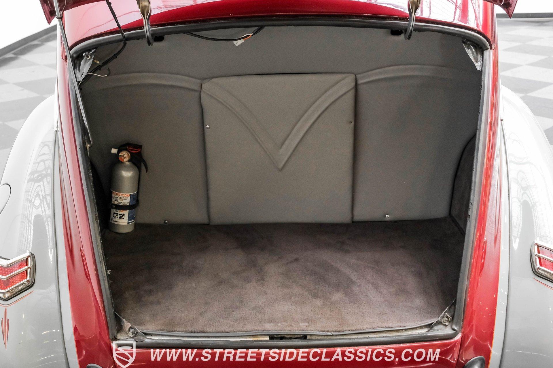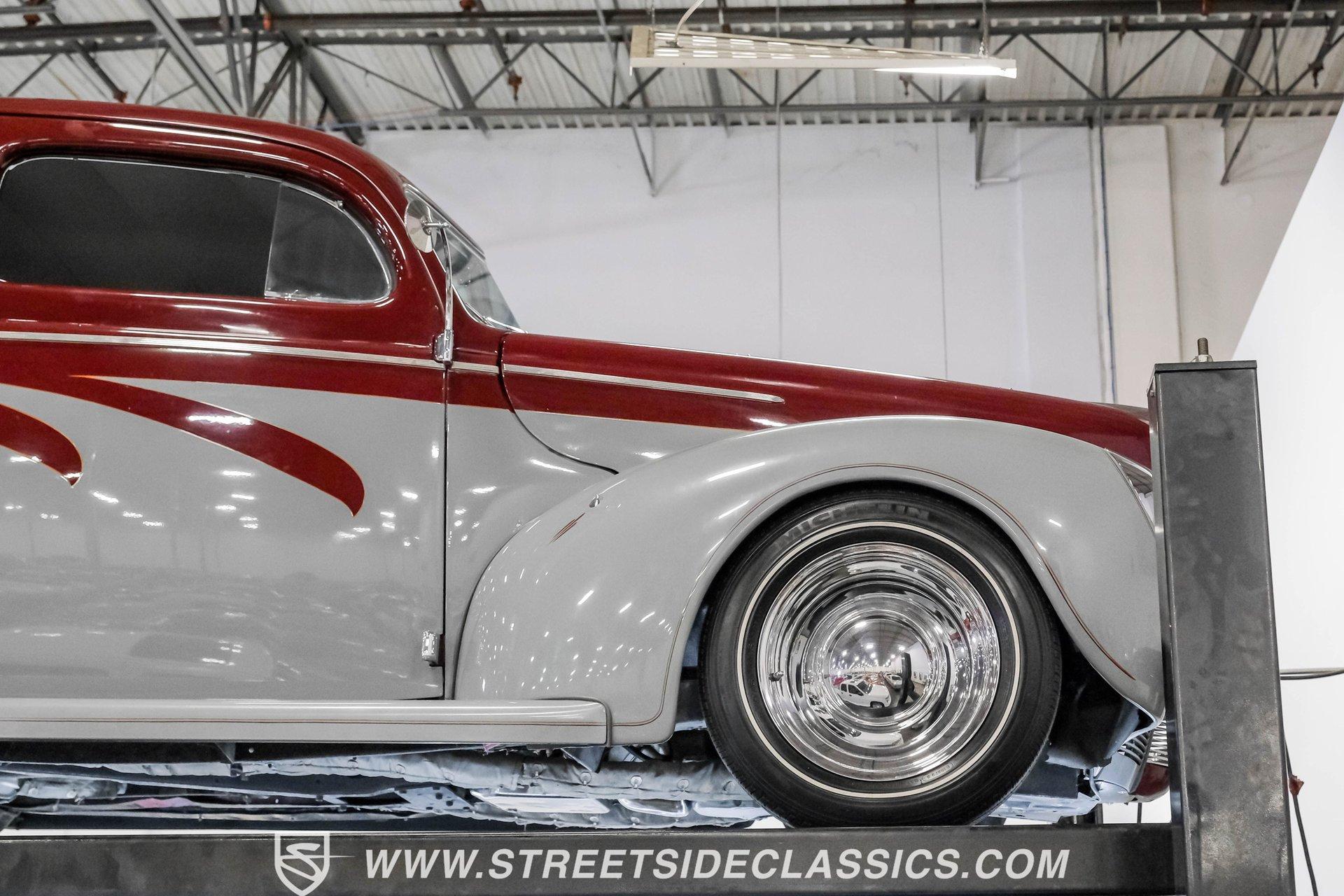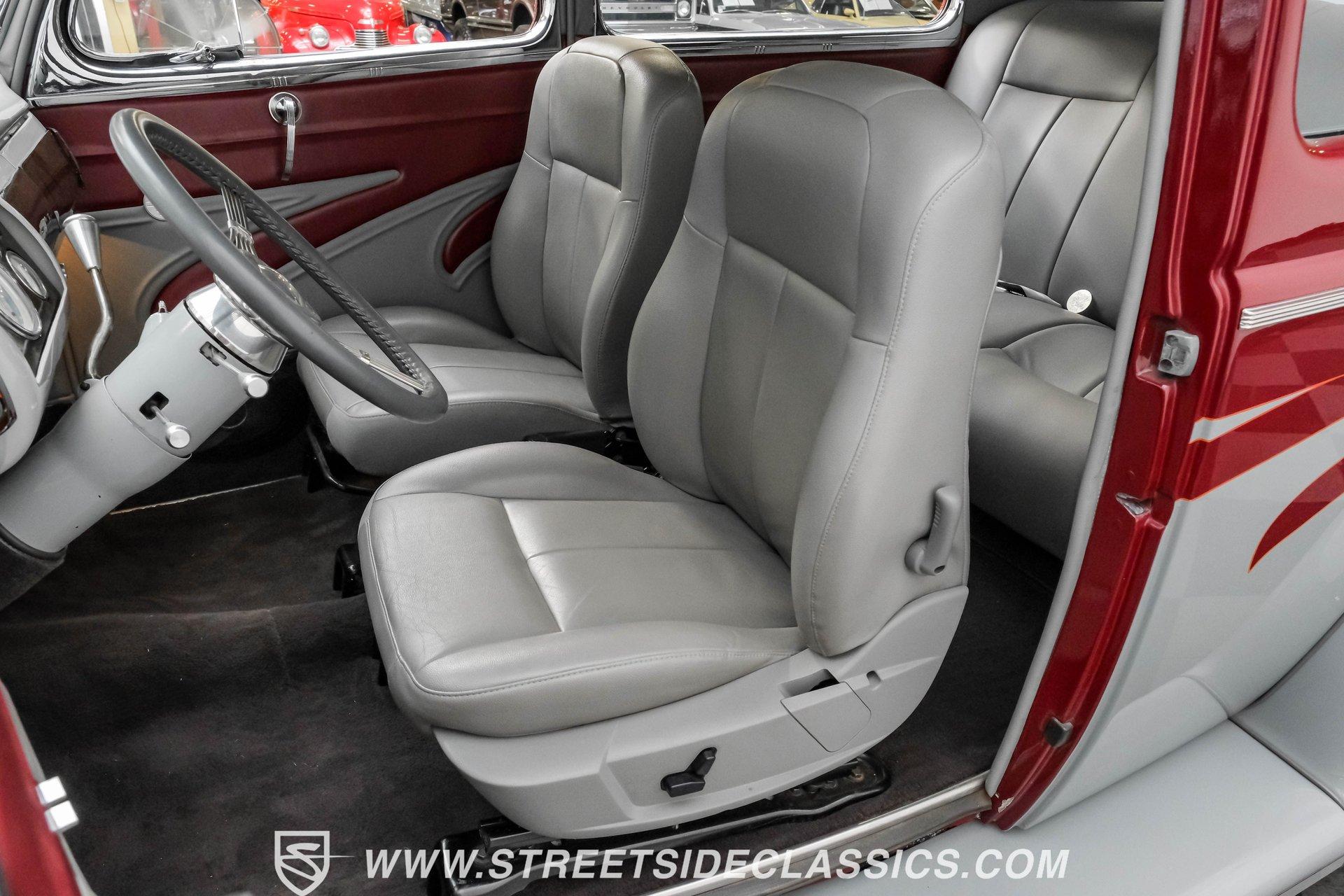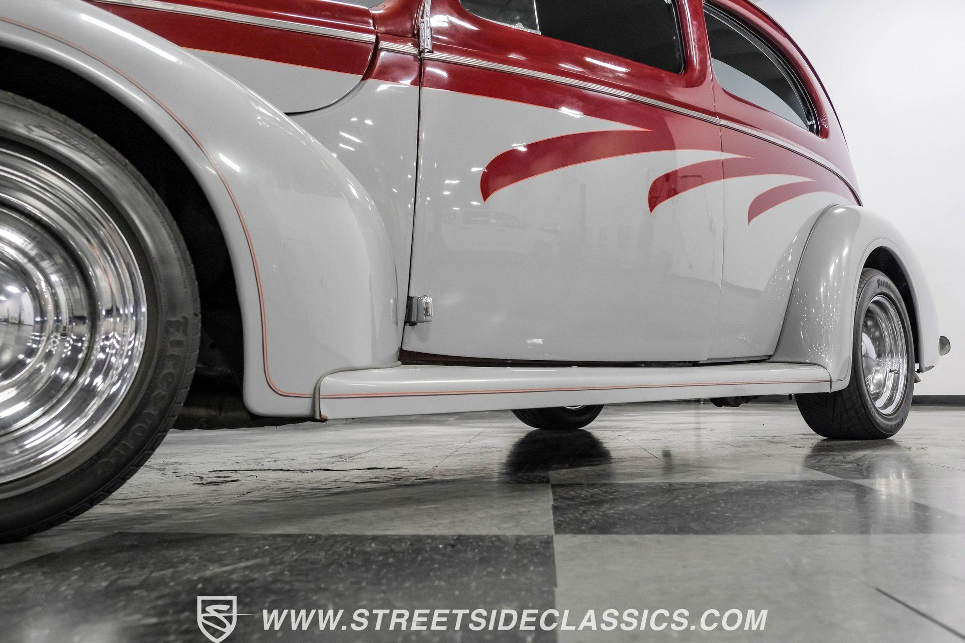 Searching for a high-impact ride that packs a visual punch but also offers a level of drivability that will make you look forward to getting behind the wheel? Then, this 1940 Ford Tudor Sedan Streetrod is definitely worth checking out. With its sharp maroon and gray paint scheme draped over the aesthetics this pre-war model already featured in its natural state, it appears as if it just leaped off the movie screen and into reality. And, when you climb into the driver's seat and fire it up, it continues to impress, anchored by tried-and-true mechanical components that are running in top form, along with some well-planned comfort and convenience upgrades that make this vintage Ford a blast to drive. The interior offers plenty of aftermarket style, with functionality also seamlessly integrated into the mix. As you open the driver's side door, you'll notice right away how the precisely applied paint of the exterior seamlessly transitions inside. There are some outstanding custom touches on display, including a pair of ultra-comfortable front bucket seats that blend perfectly with the door panels and dash area, and an aftermarket tilt column that displays a super-sharp banjo steering wheel. Further forward, a collection of Classic Instruments gauges is recessed into the instrument panel, while just below the Vintage Air climate control system stands by to keep you and your passengers comfortable throughout the seasons. The featured power windows roll up and down without issue, the power driver's seat moves smoothly into just the right position with the push of a button, and there's a Pioneer AM/FM/CD stereo with an auxiliary port on hand to provide plenty of audio options. Lurking under the hood is a 350-cubic-inch V8 outfitted with a 4-barrel carburetor. It's running in fine form, firing right up, idling smoothly, and pulling with vigor as it combines with a 3-speed automatic TH350 transmission that's renowned for both its dependability and durability. Front disc brakes provide the fade-resistant stops that really come in handy if you plan on frequent driving, while added rack and pinion steering makes this great-looking ride easy to handle. HIGHLIGHTS 350 CUBIC-INCH V8 4-BARREL CARBURETOR 3-SPEED AUTOMATIC TH350 TRANSMISSION RACK AND PINION STEERING FRONT DISC BRAKES DUAL EXHAUST MAROON AND GRAY PAINT SCHEME CUSTOM TWO-TONE INTERIOR POWER DRIVER'S SEAT POWER WINDOWS TILT COLUMN CUSTOM BANJO STEERING WHEEL CLASSIC INSTRUMENTS GAUGES AIR CONDITIONING PIONEER AM/FM/CD STEREO WITH AN AUXILIARY PORT Combining the attention-commanding aesthetics its category is known for both inside and out, with a strong running condition and the addition of some welcome comfort and convenience features, this 1940 Ford Tudor Sedan Streetrod checks all the right boxes and would be a fitting centerpiece of any garage. Call today!