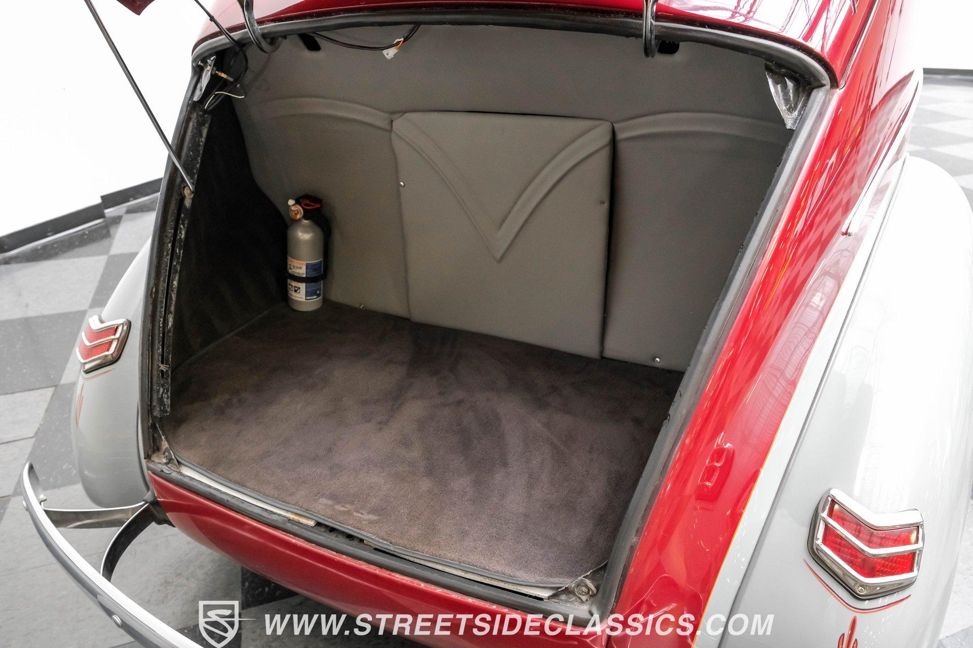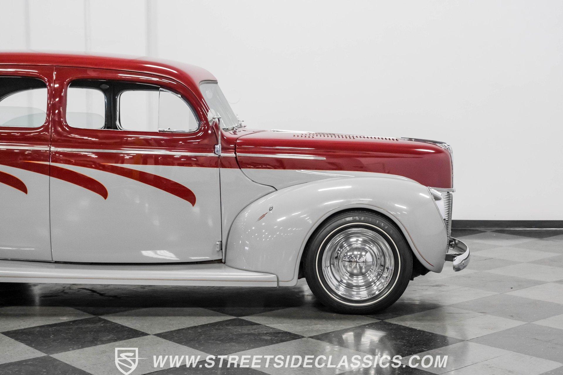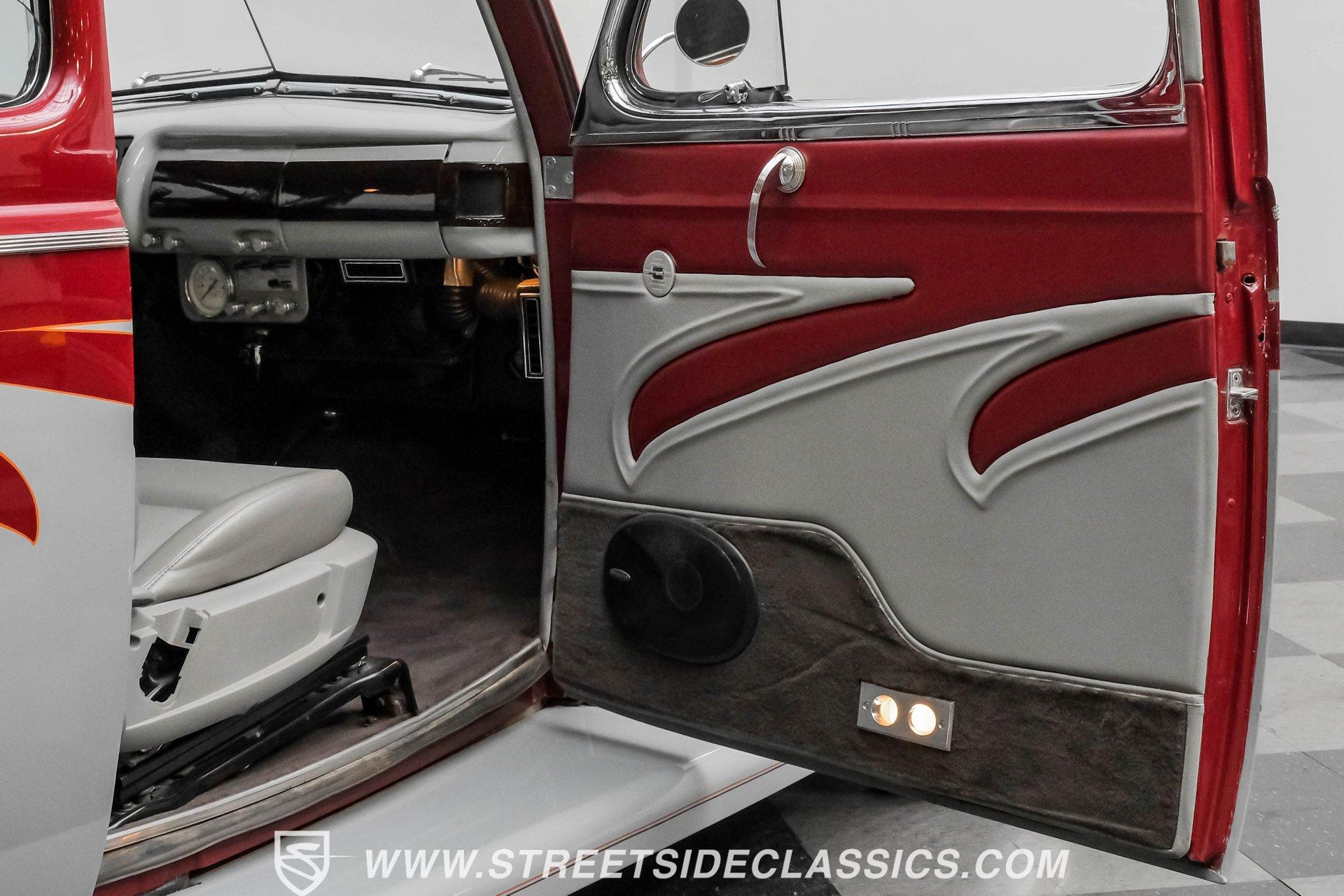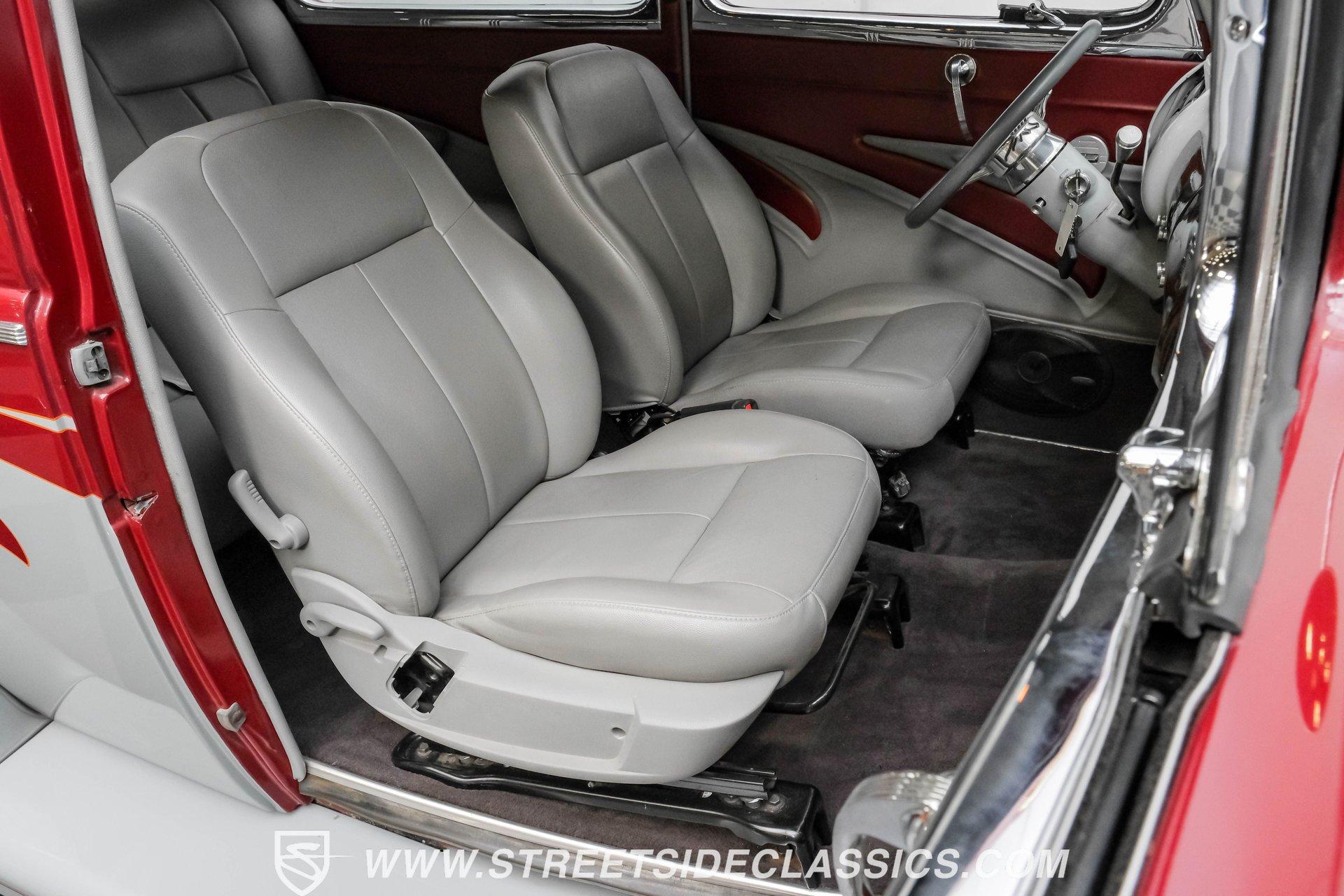 Searching for a high-impact ride that packs a visual punch but also offers a level of drivability that will make you look forward to getting behind the wheel? Then, this 1940 Ford Tudor Sedan Streetrod is definitely worth checking out. With its sharp maroon and gray paint scheme draped over the aesthetics this pre-war model already featured in its natural state, it appears as if it just leaped off the movie screen and into reality. And, when you climb into the driver's seat and fire it up, it continues to impress, anchored by tried-and-true mechanical components that are running in top form, along with some well-planned comfort and convenience upgrades that make this vintage Ford a blast to drive. The interior offers plenty of aftermarket style, with functionality also seamlessly integrated into the mix. As you open the driver's side door, you'll notice right away how the precisely applied paint of the exterior seamlessly transitions inside. There are some outstanding custom touches on display, including a pair of ultra-comfortable front bucket seats that blend perfectly with the door panels and dash area, and an aftermarket tilt column that displays a super-sharp banjo steering wheel. Further forward, a collection of Classic Instruments gauges is recessed into the instrument panel, while just below the Vintage Air climate control system stands by to keep you and your passengers comfortable throughout the seasons. The featured power windows roll up and down without issue, the power driver's seat moves smoothly into just the right position with the push of a button, and there's a Pioneer AM/FM/CD stereo with an auxiliary port on hand to provide plenty of audio options. Lurking under the hood is a 350-cubic-inch V8 outfitted with a 4-barrel carburetor. It's running in fine form, firing right up, idling smoothly, and pulling with vigor as it combines with a 3-speed automatic TH350 transmission that's renowned for both its dependability and durability. Front disc brakes provide the fade-resistant stops that really come in handy if you plan on frequent driving, while added rack and pinion steering makes this great-looking ride easy to handle. HIGHLIGHTS 350 CUBIC-INCH V8 4-BARREL CARBURETOR 3-SPEED AUTOMATIC TH350 TRANSMISSION RACK AND PINION STEERING FRONT DISC BRAKES DUAL EXHAUST MAROON AND GRAY PAINT SCHEME CUSTOM TWO-TONE INTERIOR POWER DRIVER'S SEAT POWER WINDOWS TILT COLUMN CUSTOM BANJO STEERING WHEEL CLASSIC INSTRUMENTS GAUGES AIR CONDITIONING PIONEER AM/FM/CD STEREO WITH AN AUXILIARY PORT Combining the attention-commanding aesthetics its category is known for both inside and out, with a strong running condition and the addition of some welcome comfort and convenience features, this 1940 Ford Tudor Sedan Streetrod checks all the right boxes and would be a fitting centerpiece of any garage. Call today!