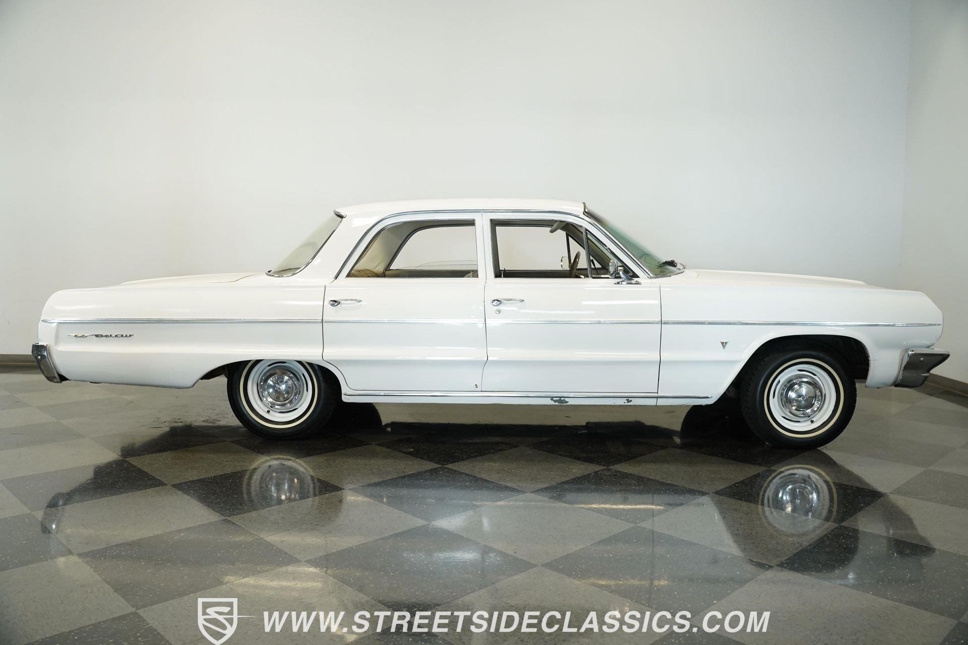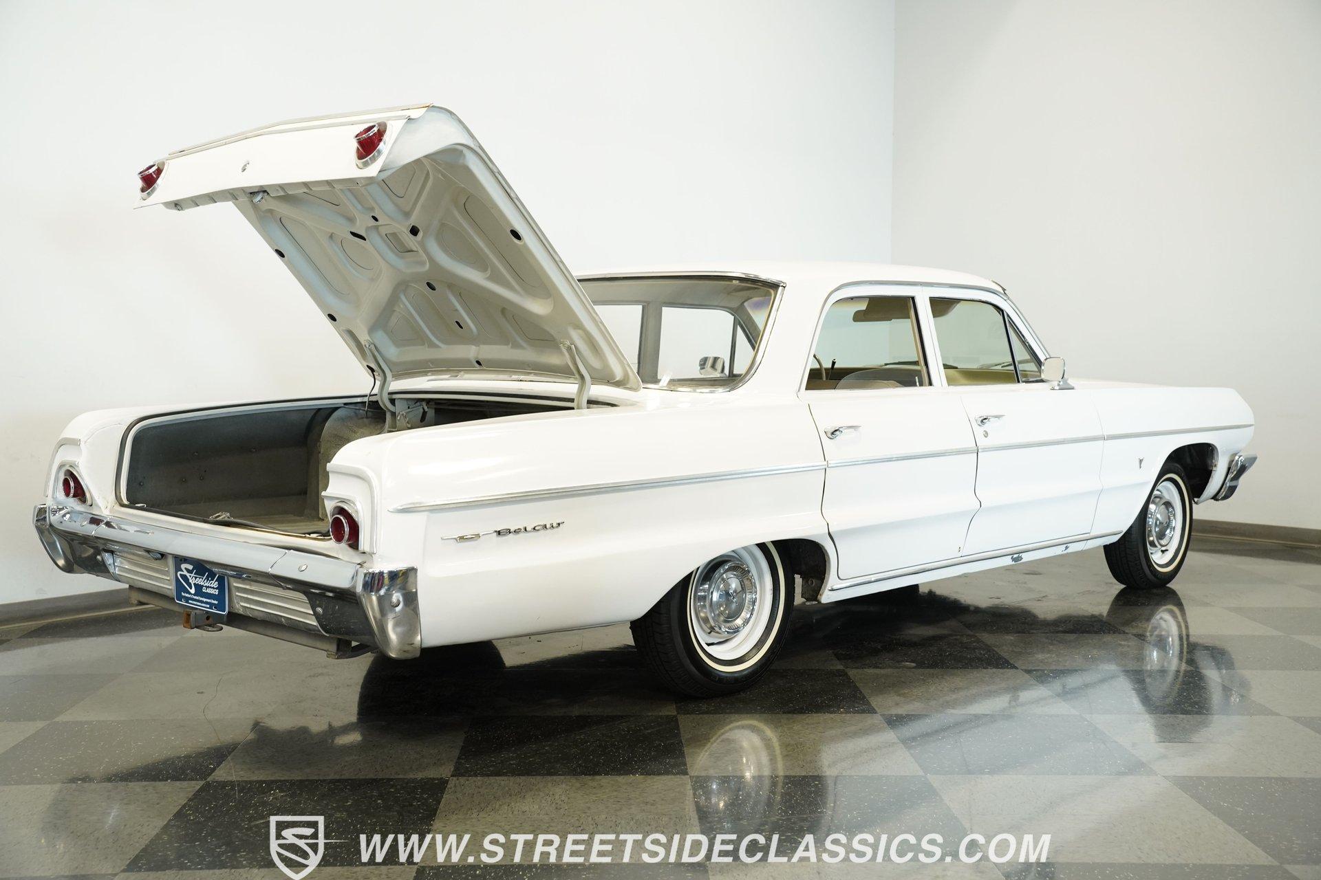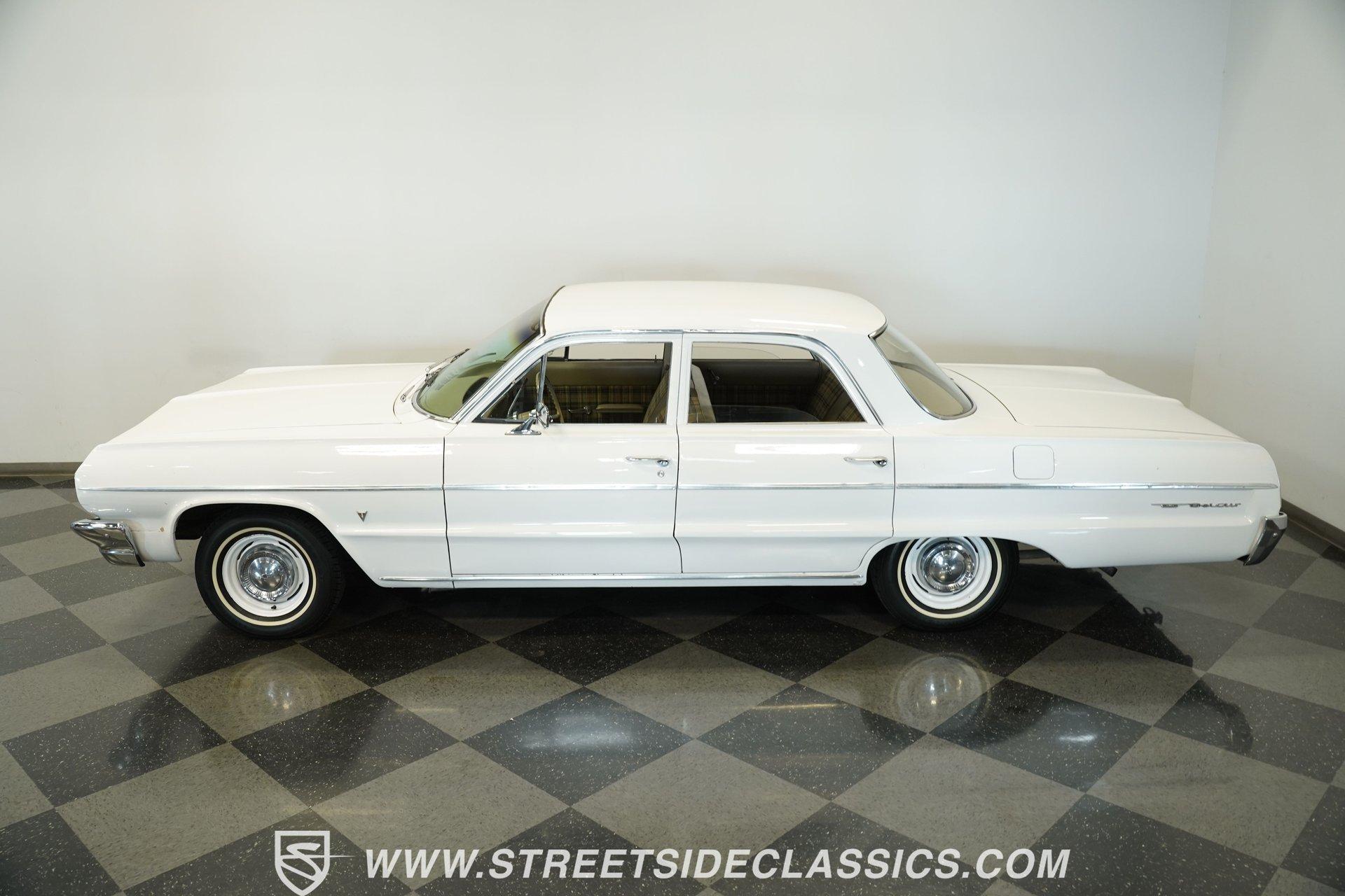 Step back into a time when style and substance met in perfect harmony with this iconic 1964 Chevrolet Bel Air. A symbol of classic American automotive design, this vehicle carries the spirit of the 60s, evoking memories of open roads and endless possibilities. Owning this Bel Air is more than just having a car – it's about embracing a piece of history that makes a statement wherever it goes. Whether you're a seasoned collector or a classic enthusiast, this 1964 Chevrolet Bel Air offers a genuine experience worth exploring. Inside, the cabin invites you with its vintage charm and comfortable bench seats upholstered in upgraded tartan cloth with vinyl edging. The maroon carpet and headliner remain in good condition, complementing the classic dashboard that still holds its original character despite showing some age. Though the driver's side armrest is missing, the interior overall reflects careful preservation and a cozy atmosphere that blends nostalgia with everyday usability. Under the hood, the heart of this Bel Air is its 283 V8 engine paired with a 2-speed Powerglide automatic transmission. Equipped with a Monojet single barrel carburetor on the stock manifold, this setup delivers smooth acceleration and a driving experience true to its era. Power steering aids maneuverability, while the factory drum brakes provide reliable stopping power, ensuring this classic performs with confidence on the road. Highlights: 1964 Chevrolet Bel Air Model 283 V8 Engine With Monojet Carburetor 2-Speed Powerglide Automatic Transmission Power Steering Equipped Factory Drum Brakes Front And Rear Tartan Cloth And Vinyl Interior Upgrade Maroon Carpet And Good Headliner Condition Original Style Dashboard And Controls Milestar Touring SLE Tires 205/75R14 Factory Style 14" Wheels Rear Tow Hitch Installed Some Rust And Paint Wear Consistent With Age Manual Brakes With Hard Left Pull Under Braking No Air Conditioning Equipped Financing Available Vehicle Protection Plans Available Worldwide Shipping This 1964 Chevrolet Bel Air is a fantastic find for anyone looking to own an authentic classic with its original charm intact. It's a solid candidate for restoration or continued enjoyment as a vintage cruiser. Don't miss your chance to make this piece of automotive history yours. Call, email, or come visit our showroom today!