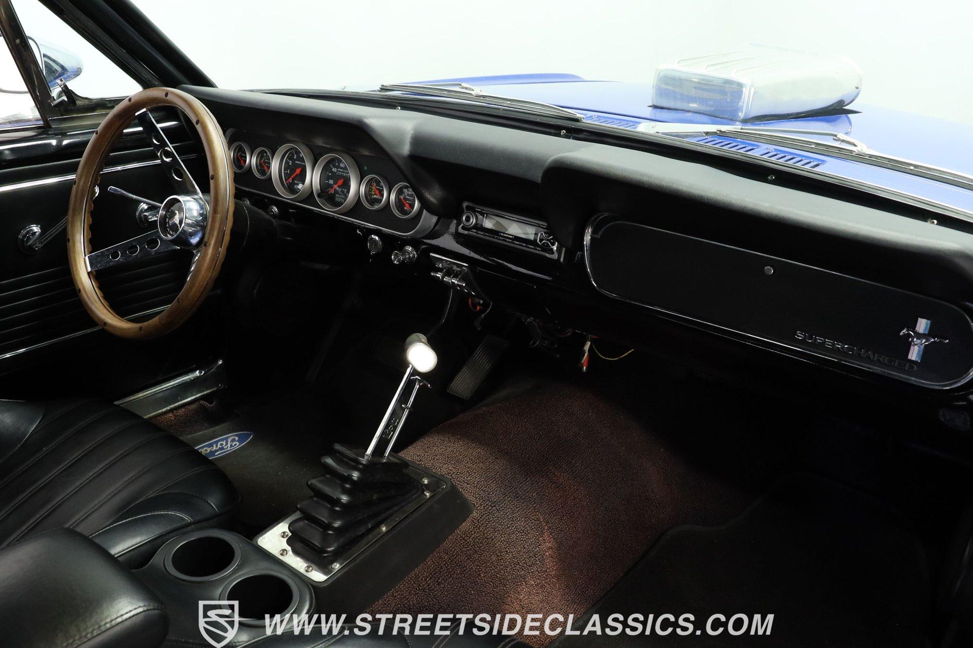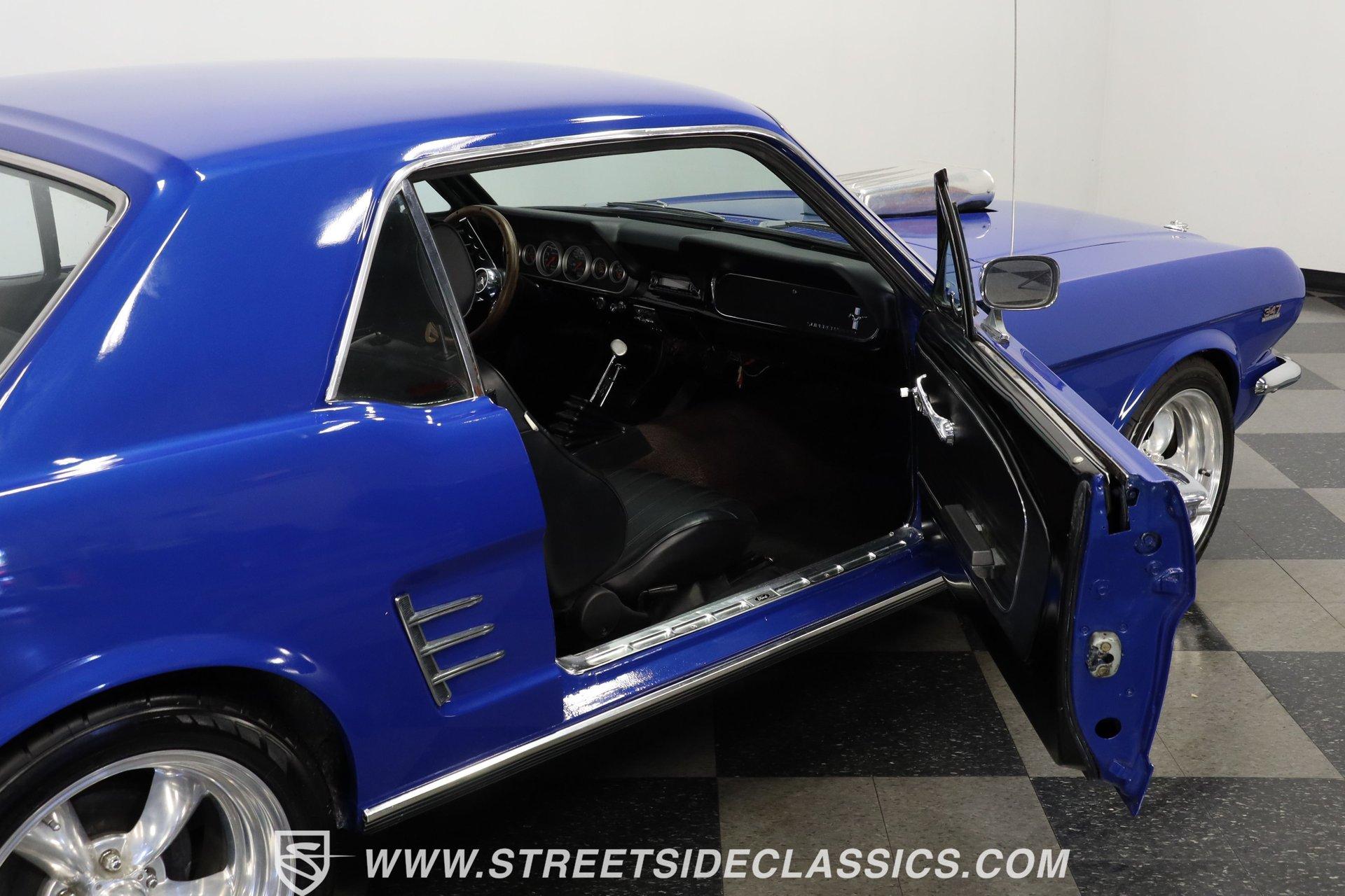 Step back into the golden era of American muscle with this stunning 1966 Ford Mustang Supercharged, a true icon that embodies power, style, and the spirit of the open road. Owning this classic Mustang means more than just driving a car; it's about embracing a legacy of performance and making a bold statement wherever you go. With a striking Night Mist Blue exterior and a roaring supercharged 347 stroker V8 under the hood, this Mustang is ready to turn heads and ignite your passion for driving. Discover why this 1966 Ford Mustang Supercharged deserves a place in your collection. Step inside to find a thoughtfully upgraded interior that balances classic appeal with modern comfort. The original light blue vinyl trim has been redone in sleek black, complemented by aftermarket Procar bucket seats that offer enhanced support and style. The dash features upgraded Autometer gauges, while a custom center console with a B&M shifter, cup holder, and armrest adds convenience. Though the interior shows light wear, it maintains a driver-quality feel that invites you to enjoy every ride in comfort and style. Beneath the hood lies a powerful 347 stroker V8 engine equipped with a 4-barrel Holley carburetor and a Weiand supercharger, delivering impressive performance and exhilarating acceleration. Paired with a smooth-shifting AOD 4-speed automatic transmission, this Mustang offers a thrilling yet manageable driving experience. Mechanical upgrades include power front disc brakes, an upgraded aluminum radiator with dual electric fans, a serpentine belt system, MSD ignition, and a front-mounted transmission cooler with an electric fan. These enhancements ensure reliable cooling and efficient power delivery, making this Mustang a capable and exciting muscle car. Highlights 1966 Ford Mustang Supercharged 347 Stroker V8 Engine 4-Barrel Holley Carburetor Weiand Supercharger Installed AOD 4-Speed Automatic Transmission Power Front Disc Brakes Upgraded Aluminum Radiator Dual Fans Upgraded Serpentine Belt System MSD Ignition System Front Mounted Transmission Cooler Aftermarket Procar Bucket Seats Black Vinyl Interior Redone Night Mist Blue Exterior Paint 17" American Racing Torq Thrust Wheels Financing Available Vehicle Protection Plans Available Worldwide Shipping This 1966 Ford Mustang Supercharged offers an exciting blend of classic style and modern performance upgrades, making it a compelling choice for collectors and enthusiasts alike. Don't miss your chance to own a piece of muscle car history that's ready to impress on every drive. Call, email, or come visit our showroom today! We can assist you with getting an Extended Vehicle Service Plan from Freedom Warranty, which provides comprehensive coverage that can save thousands of dollars on unexpected repairs. Inquire for more details and pricing!