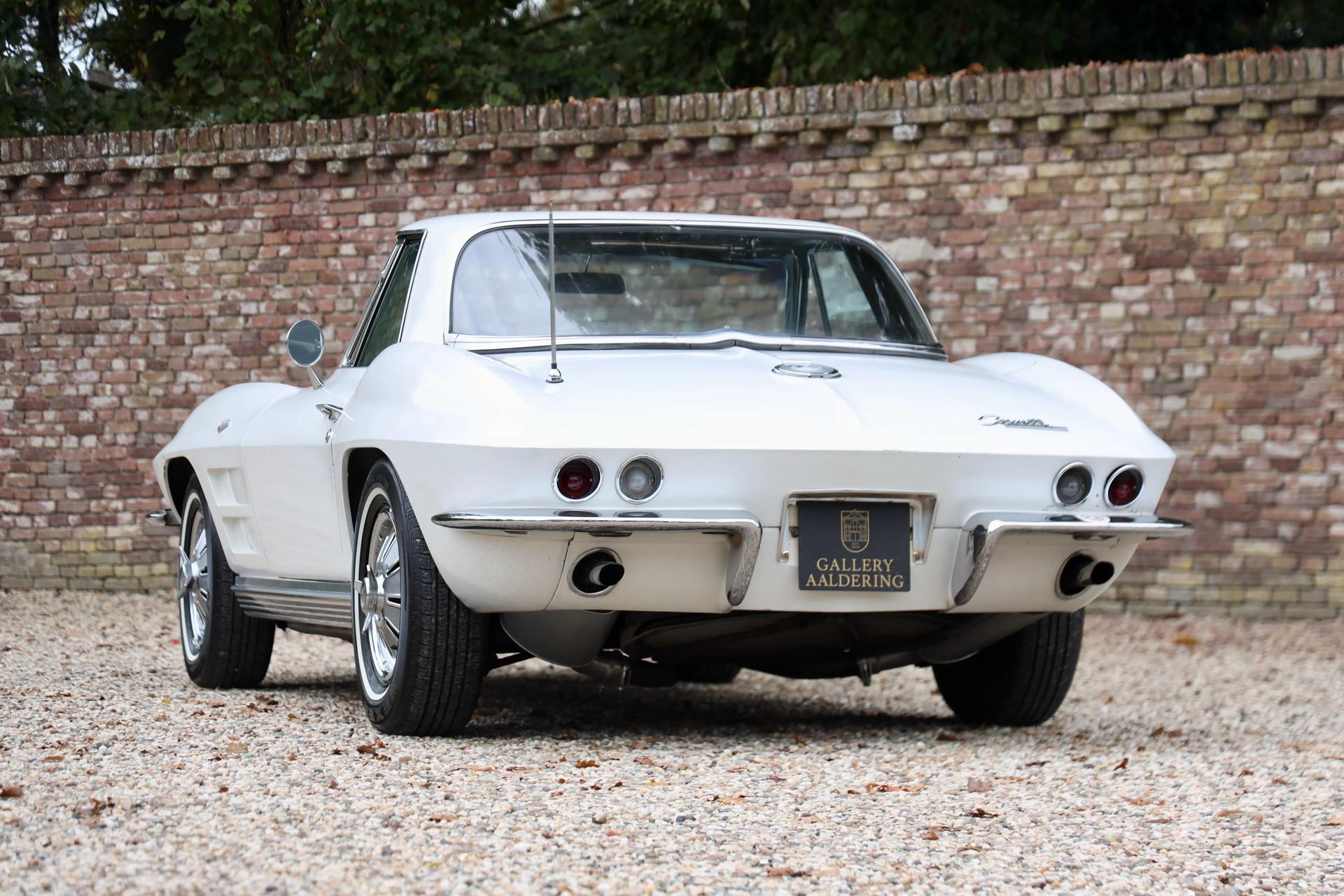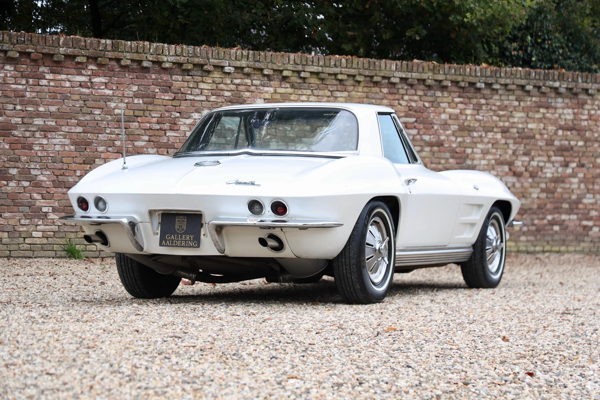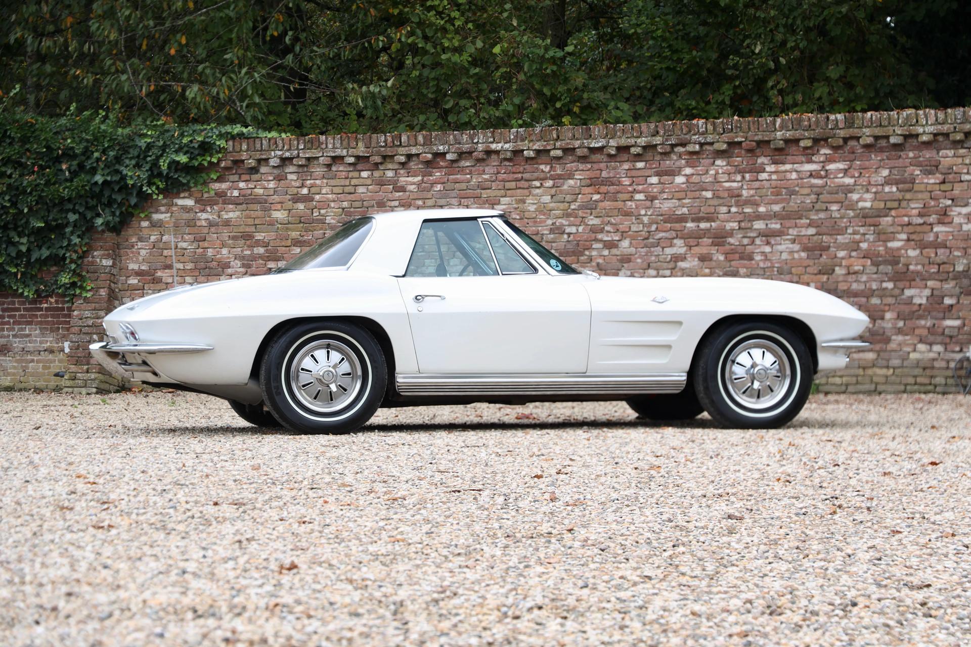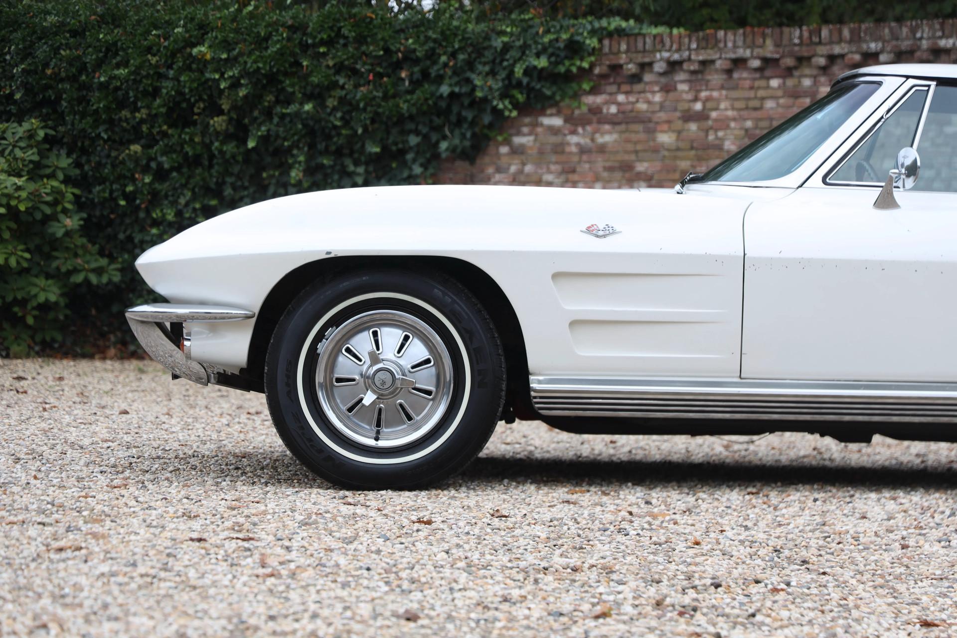 This Corvette spent 61 years in California, an environment known for its dry, gentle climate. The result is a C2 that still retains its original paint, not restored but carefully preserved. This is a car that brings you right back to what a Corvette truly was in 1964: a factory-spec machine in Ermine White with a Black Vinyl interior, exactly as it left the assembly line. For the purist, this is a rare opportunity—completely original C2s are becoming increasingly difficult to find, especially in this condition and with this provenance.