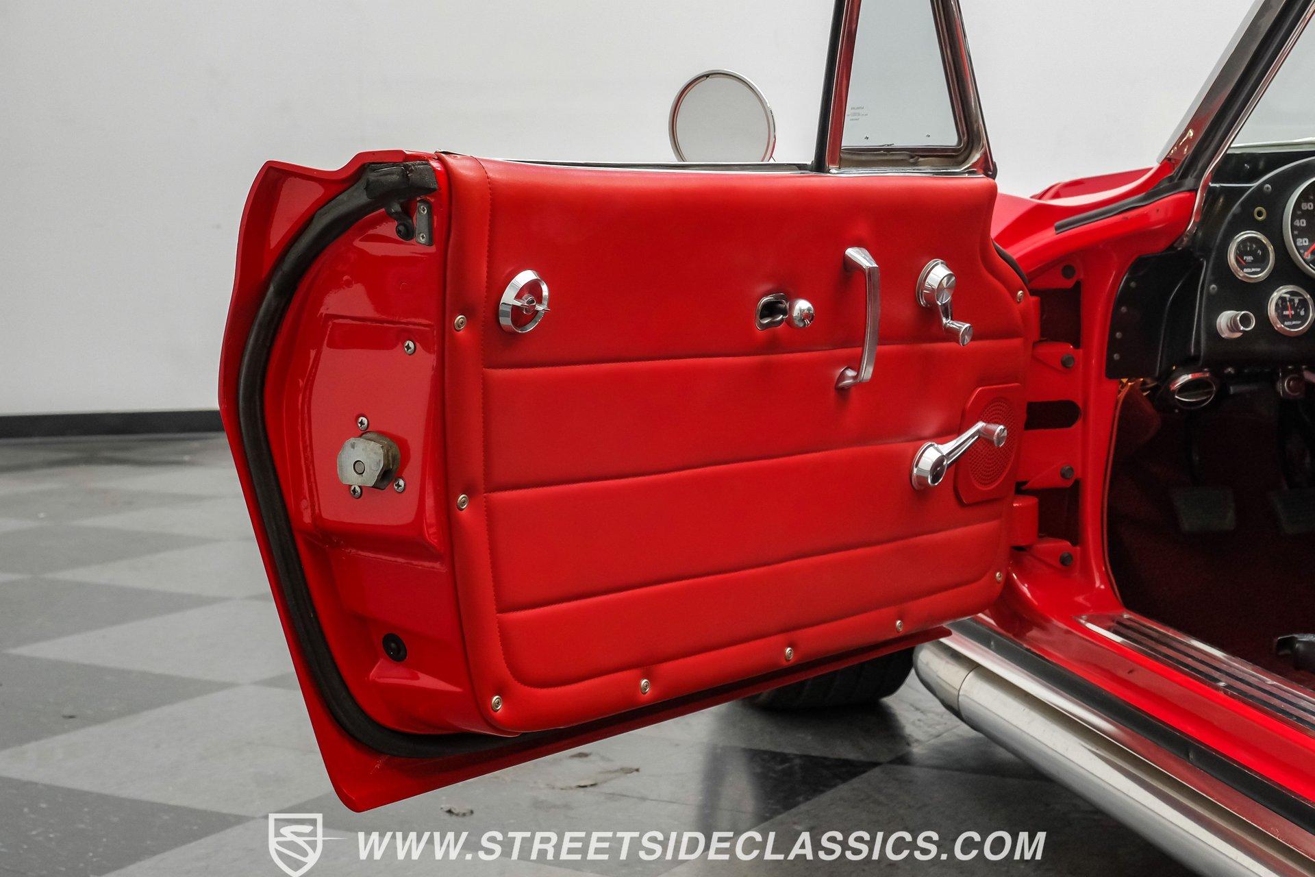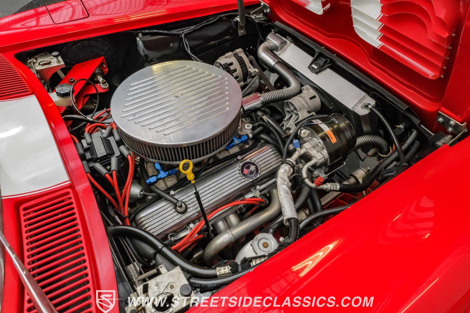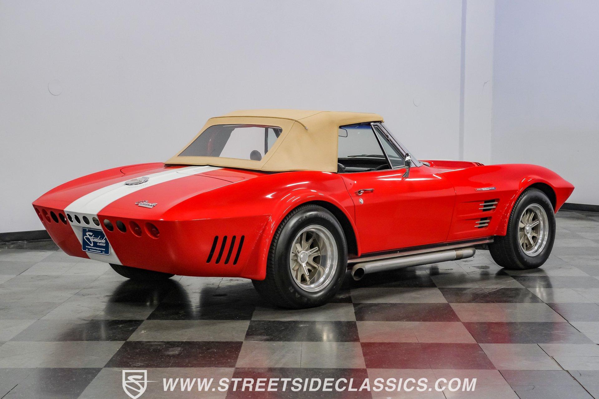 While every generation of GM's halo car has a strong argument for which one is best, the C2 is always in contention. Taking things a step further, arguably the best and most exciting version of the second-generation Corvette was the remarkable Grand Sport. That is why this 1963 Chevrolet Corvette Grand Sport Tribute had many of us stop dead in our tracks to appreciate this unique and rare ride. Sporting a custom Grand Sport nose, headlight, grille, front fenders, hood, and even a custom red powder-coated frame, this head-turning machine has been fully repainted in Riverside Red, complete with a single center white racing stripe, guaranteeing this car will be the center of attention anywhere it goes. Inside, we find a fully restored red leather interior that features even more custom parts. A chrome power-assisted wheel sits atop a custom tilt steering column, while a custom dash trim is home to a custom AutoMeter gauge cluster. A custom air conditioning control panel blow cool air through, you guessed it, custom AC outlets. A dash-mounted Audiovox AM/FM/CD head unit powers a set of concealed speakers, while the custom sound insulation makes it even easier to enjoy. Under that aggressive, louvered, front-hinged hood, we find a highly modified naturally aspirated 350 cubic-inch V-8 engine. Beginning with a Vortec block, this small block gets aluminum heads, a GM aluminum intake manifold, a single four-barrel Demon carburetor, an HEI ignition, an aluminum radiator, an electric fan, and long-tube headers feeding into those glorious-sounding side pipes. That power is routed through a Tremec TKO five-speed manual transmission before being sent out to the rear wheels. HIGHLIGHTS: Custom Red Powder Coated Frame Custom Grand Sport Nose Custom Headlights Custom Grille Custom Tail Lights Custom Rear Fenders Custom Grand Sport Hood Custom Front Fenders Full Riverside Red Repaint White Racing Stripe 350 CID V8 Vortec Block Aluminum Heads Demon Carburetor GM Aluminum Intake HEI Ignition Long Tubes Side Pipes Tremec TKO Five Speed Custom Suspension Custom A Arms Custom Front Sway Bar Adjustable Coilovers Four Wheel Power Discs Vented Rotors Rack and Pinion Power Steering Chrome Steering Wheel Custom Tilt Column Red Leather Custom AC Control Panel Billet HVAC Controls AM/FM/CD Head Unit Concealed Speaker System Custom Sound Insulation A True Head Turner For the first time in Corvette history, the C2 debuted with a fully independent suspension. This 1963 Chevrolet Corvette Grand Sport Tribute takes that sentiment and adds a custom front and rear suspension, A-arms, front sway bar, and adjustable coilovers at all four corners. A custom rack-and-pinion steering setup, along with four-wheel power disc brakes featuring vented front and rear discs, completes the performance package, ensuring this Grand Sport Tribute can live up to its namesake -stopping, going, and turning. If you were not able to get your hands on one of the five original Grand Sports made, then this is your chance to find out why so many believe this iteration of the Corvette may just be the best one yet. Don't wait, call today!