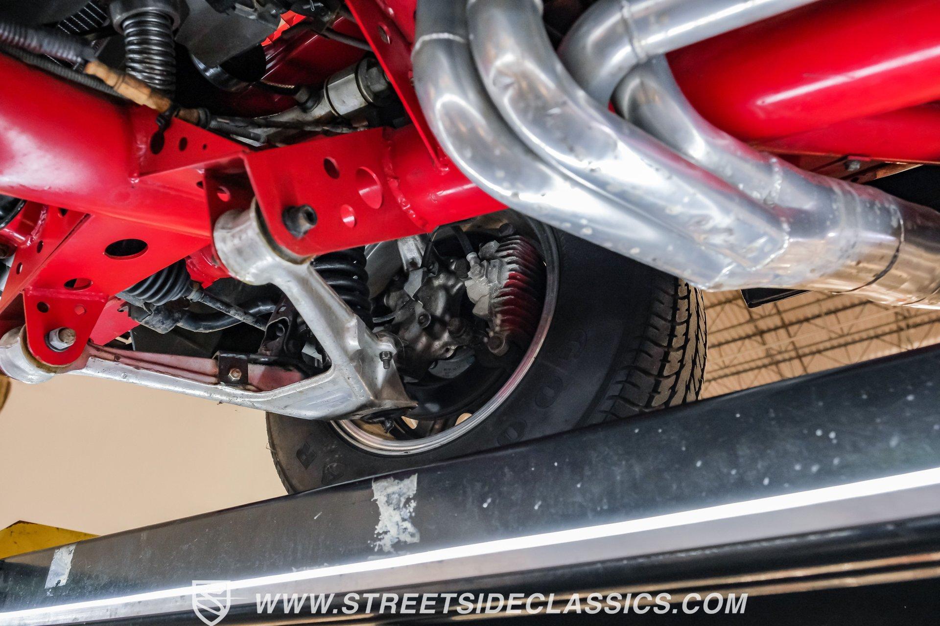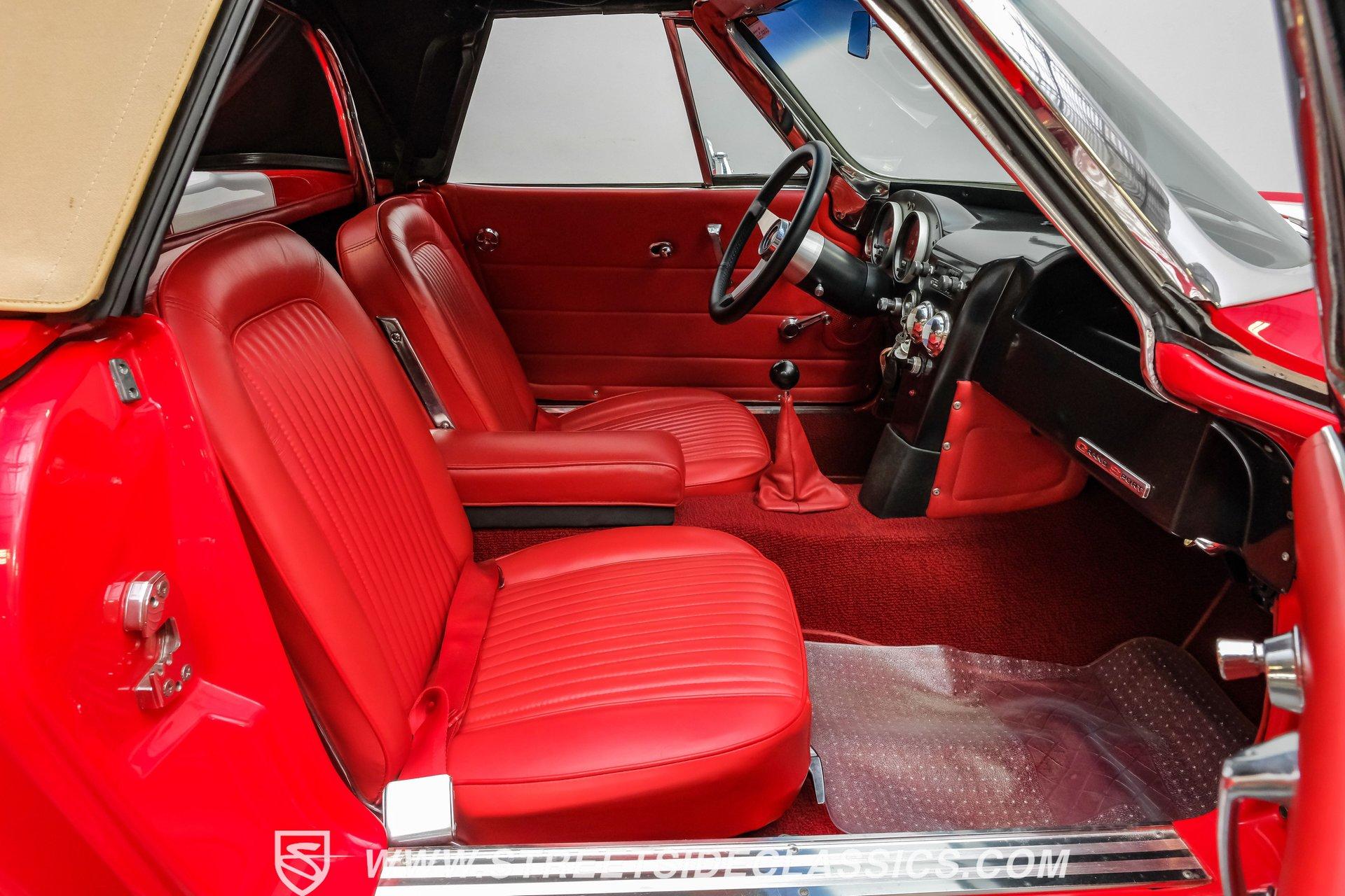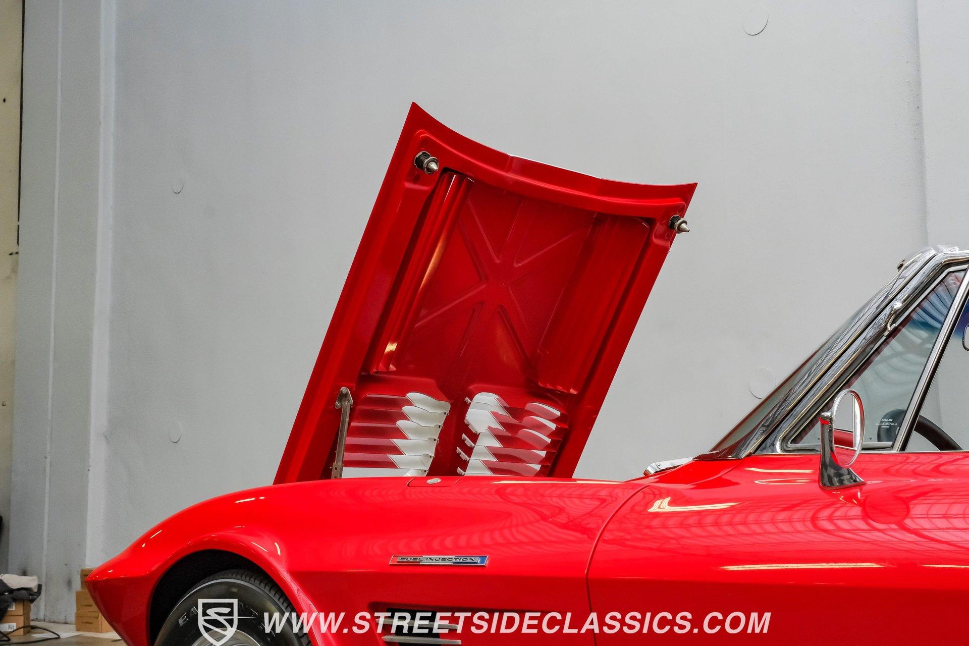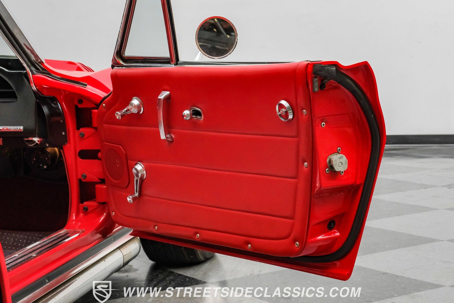 While every generation of GM's halo car has a strong argument for which one is best, the C2 is always in contention. Taking things a step further, arguably the best and most exciting version of the second-generation Corvette was the remarkable Grand Sport. That is why this 1963 Chevrolet Corvette Grand Sport Tribute had many of us stop dead in our tracks to appreciate this unique and rare ride. Sporting a custom Grand Sport nose, headlight, grille, front fenders, hood, and even a custom red powder-coated frame, this head-turning machine has been fully repainted in Riverside Red, complete with a single center white racing stripe, guaranteeing this car will be the center of attention anywhere it goes. Inside, we find a fully restored red leather interior that features even more custom parts. A chrome power-assisted wheel sits atop a custom tilt steering column, while a custom dash trim is home to a custom AutoMeter gauge cluster. A custom air conditioning control panel blow cool air through, you guessed it, custom AC outlets. A dash-mounted Audiovox AM/FM/CD head unit powers a set of concealed speakers, while the custom sound insulation makes it even easier to enjoy. Under that aggressive, louvered, front-hinged hood, we find a highly modified naturally aspirated 350 cubic-inch V-8 engine. Beginning with a Vortec block, this small block gets aluminum heads, a GM aluminum intake manifold, a single four-barrel Demon carburetor, an HEI ignition, an aluminum radiator, an electric fan, and long-tube headers feeding into those glorious-sounding side pipes. That power is routed through a Tremec TKO five-speed manual transmission before being sent out to the rear wheels. HIGHLIGHTS: Custom Red Powder Coated Frame Custom Grand Sport Nose Custom Headlights Custom Grille Custom Tail Lights Custom Rear Fenders Custom Grand Sport Hood Custom Front Fenders Full Riverside Red Repaint White Racing Stripe 350 CID V8 Vortec Block Aluminum Heads Demon Carburetor GM Aluminum Intake HEI Ignition Long Tubes Side Pipes Tremec TKO Five Speed Custom Suspension Custom A Arms Custom Front Sway Bar Adjustable Coilovers Four Wheel Power Discs Vented Rotors Rack and Pinion Power Steering Chrome Steering Wheel Custom Tilt Column Red Leather Custom AC Control Panel Billet HVAC Controls AM/FM/CD Head Unit Concealed Speaker System Custom Sound Insulation A True Head Turner For the first time in Corvette history, the C2 debuted with a fully independent suspension. This 1963 Chevrolet Corvette Grand Sport Tribute takes that sentiment and adds a custom front and rear suspension, A-arms, front sway bar, and adjustable coilovers at all four corners. A custom rack-and-pinion steering setup, along with four-wheel power disc brakes featuring vented front and rear discs, completes the performance package, ensuring this Grand Sport Tribute can live up to its namesake -stopping, going, and turning. If you were not able to get your hands on one of the five original Grand Sports made, then this is your chance to find out why so many believe this iteration of the Corvette may just be the best one yet. Don't wait, call today!