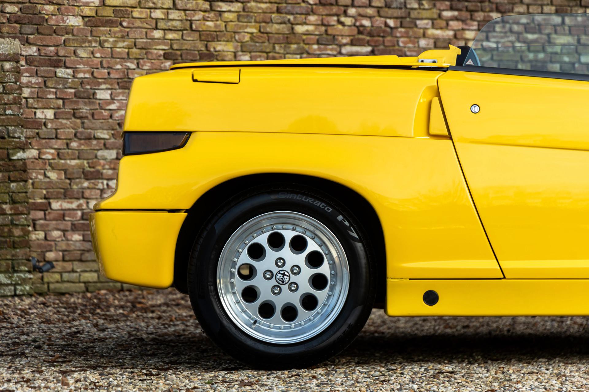Finished in the exceptionally rare and striking Giallo Ginestra over Pelle Nera, this RZ has exactly the presence that made the model legendary. A color combination that doesn't just complement the bodywork—it seems to make it pulse in the light. And that is fitting, because the RZ was created from pure emotion: a roadster that places the driver directly in line with the brand's beating heart, without filters, without compromise. In short, a true Alfa Romeo.