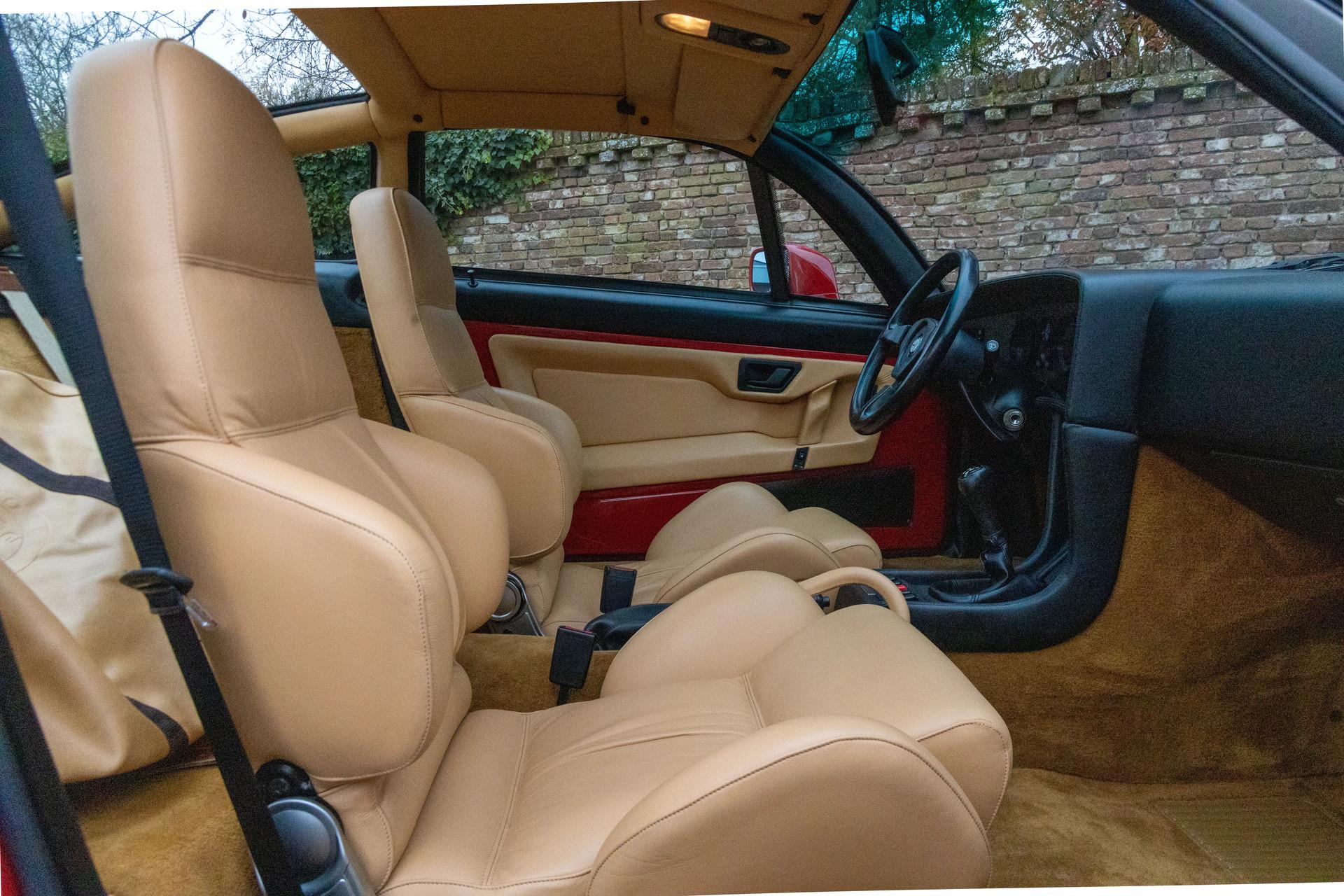 What makes this example especially compelling is its complete originality. Finished in Rosso Alfa with a Grigio roof and paired with a beige interior, this SZ wears the exact specification intended by its creators. Nothing has been altered, nothing has been worn down; it presents as a car that has remained absolutely faithful to its roots, both mechanically and visually. It comes from the collection of a true enthusiast — someone who knew precisely what he owned — and that care and respect can be felt in every single detail.
