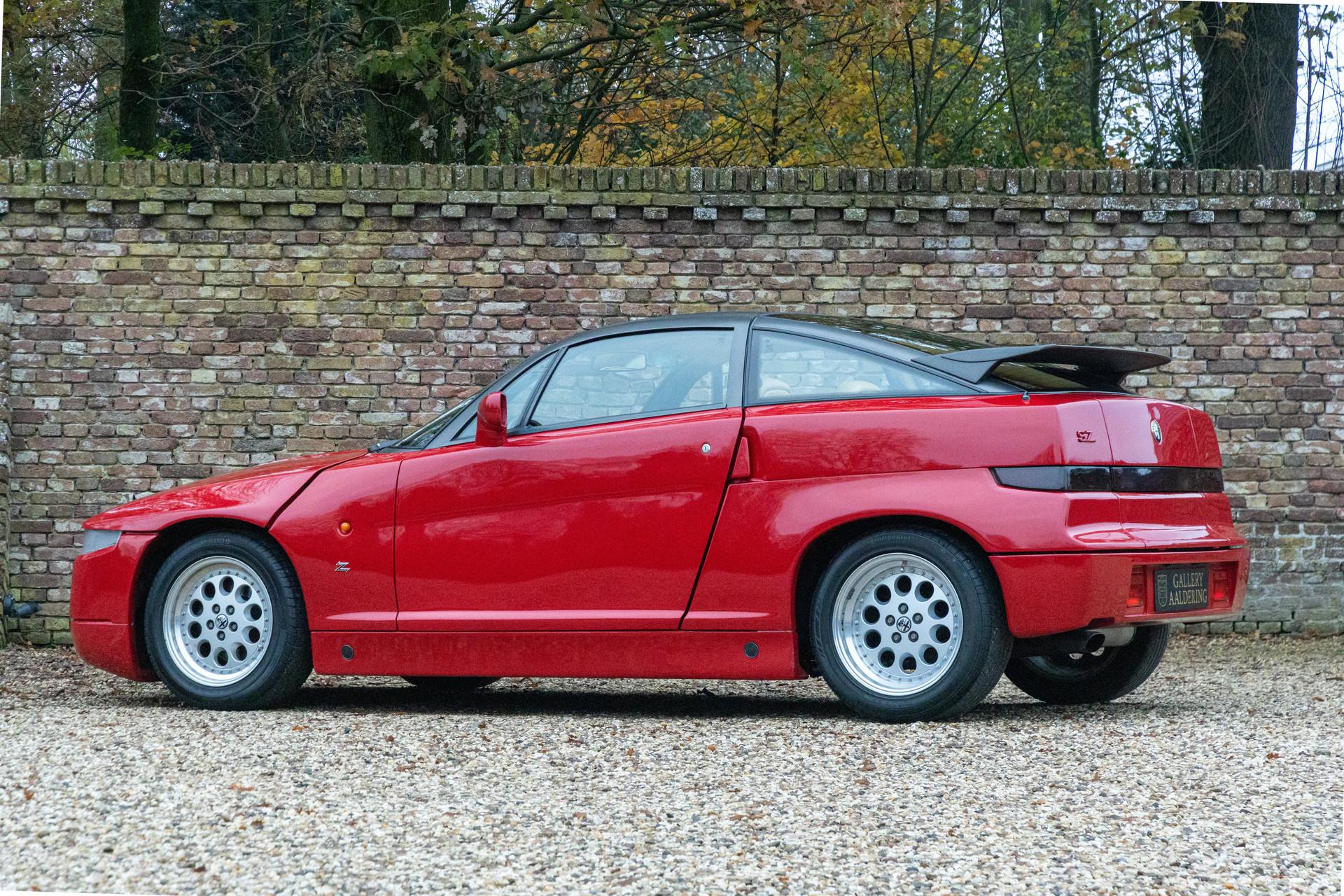 The Alfa Romeo SZ, internally designated ES-30, was the product of a remarkable collaboration between Centro Stile Alfa Romeo, Centro Stile Fiat, and the craftsmen at Zagato. Revealed at the 1989 Geneva Motor Show, it immediately drew attention for its unconventional lines and uncompromising stance. Robert Opron, who laid down the initial design sketches, created a shape that remains one of the most distinctive and instantly recognizable silhouettes in the sports-car world. Early CAD development, thermoplastic body panels, and a bold, geometric design made the SZ unlike anything else of its era — or any other.