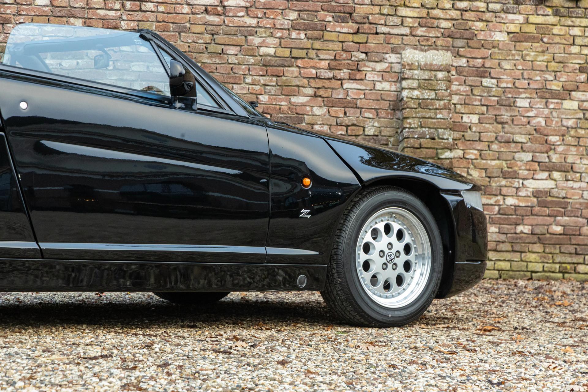 What has always made the RZ so compelling is its origin within the ES-30 project: a bold collaboration between Centro Stile Alfa Romeo, Centro Stile Fiat, and the craftsmen at Zagato. The sharp lines, the distinctive profile, and the unique composite body panels emerged from a period in which Alfa Romeo dared to experiment. Robert Opron sketched the original design, Antonio Castellana refined the interior, and final assembly was carried out by hand at Zagato's facility in Terrazzano di Rho. As a result, no two RZs are truly identical—each carries its own character.