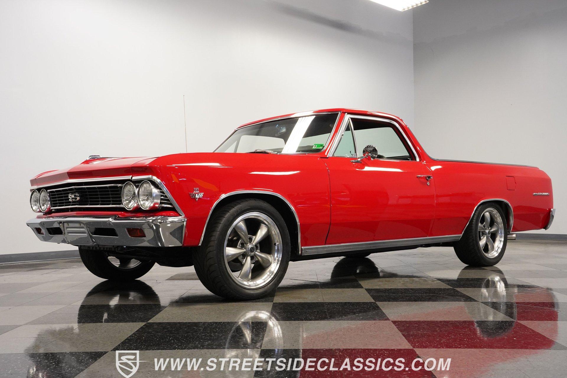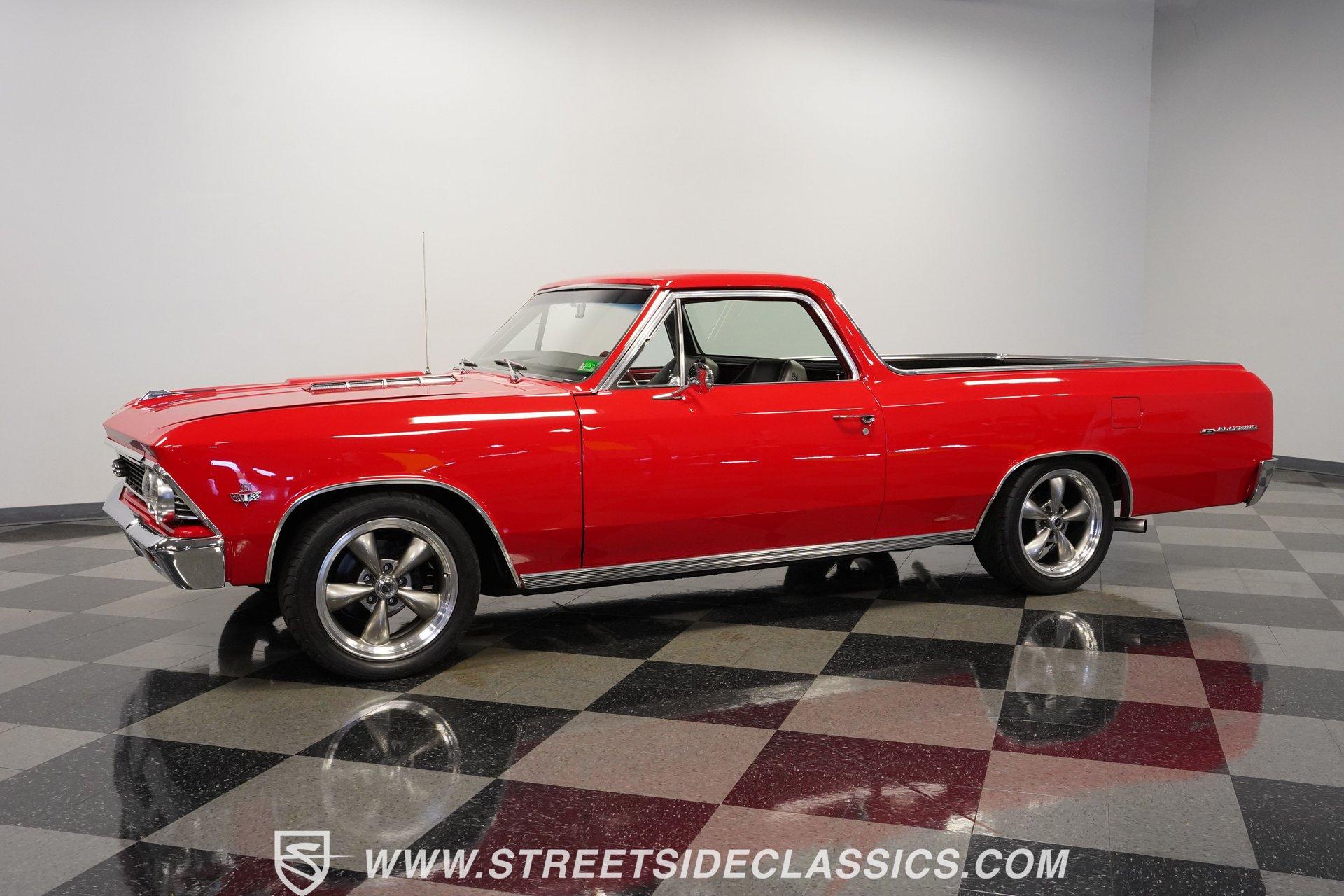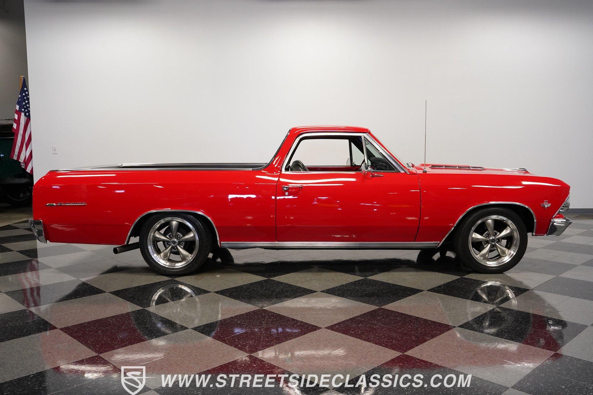 Step back in time with this stunning 1966 Chevrolet El Camino SS Tribute, a vehicle that embodies the spirit of American muscle and utility in one iconic package. This classic ride is more than just a car; it's a statement, a memory maker, and a symbol of bold style and performance. With its striking red paint and polished chrome, it captures the essence of the 60s while offering modern upgrades that make it ready for today's roads. If you've ever dreamed of owning a piece of automotive history that combines power and presence, this El Camino is calling your name. Inside, the interior has been completely refreshed with custom touches to enhance comfort and style. Featuring comfortable TMI seats with minimal wear, a factory-style dash that maintains the classic look, and well-kept carpet and mats, the cabin invites you to enjoy every drive. The vinyl interior is complemented by modern conveniences such as air conditioning, heat, cruise control, tilt wheel, and a functional AM/FM radio with a cassette player, blending vintage charm with practical features. Under the hood, this El Camino boasts a built blueprint 383 crate V8 engine paired with a rebuilt 3-speed automatic transmission equipped with a shift kit for smooth, confident gear changes. The engine features an Edelbrock intake and 4-barrel carburetor, long tube Patriot headers, and Flowmaster mufflers, delivering a powerful and exhilarating driving experience. Power front disc brakes, and power steering ensure responsive handling and safety, while the suspension and bushings have been updated for improved ride quality. Highlights: 1966 Chevrolet El Camino SS Tribute Built Blueprint 383 Crate V8 Engine Rebuilt 3-Speed Automatic Transmission With Shift Kit Edelbrock Intake And 4-Barrel Carburetor Long Tube Patriot Headers And Flowmaster Mufflers Power Front Disc Brakes Power Steering Fully Restored Custom Interior Air Conditioning And Heat Cruise Control And Tilt Wheel Slick Red Paint American Racing 17" Wheels With 245/45R17 Tires Dual Exhaust System Rubber Bed Mat Documentation Includes Dyno Sheet And Maintenance Records Financing Available Vehicle Protection Plans Available Worldwide Shipping This 1966 Chevrolet El Camino SS Tribute offers a fantastic blend of classic style and modern performance upgrades, making it a smart choice for enthusiasts and collectors alike. Don't miss your chance to own a vehicle that turns heads and delivers a smooth, powerful ride. Call, email, or come visit our showroom today!