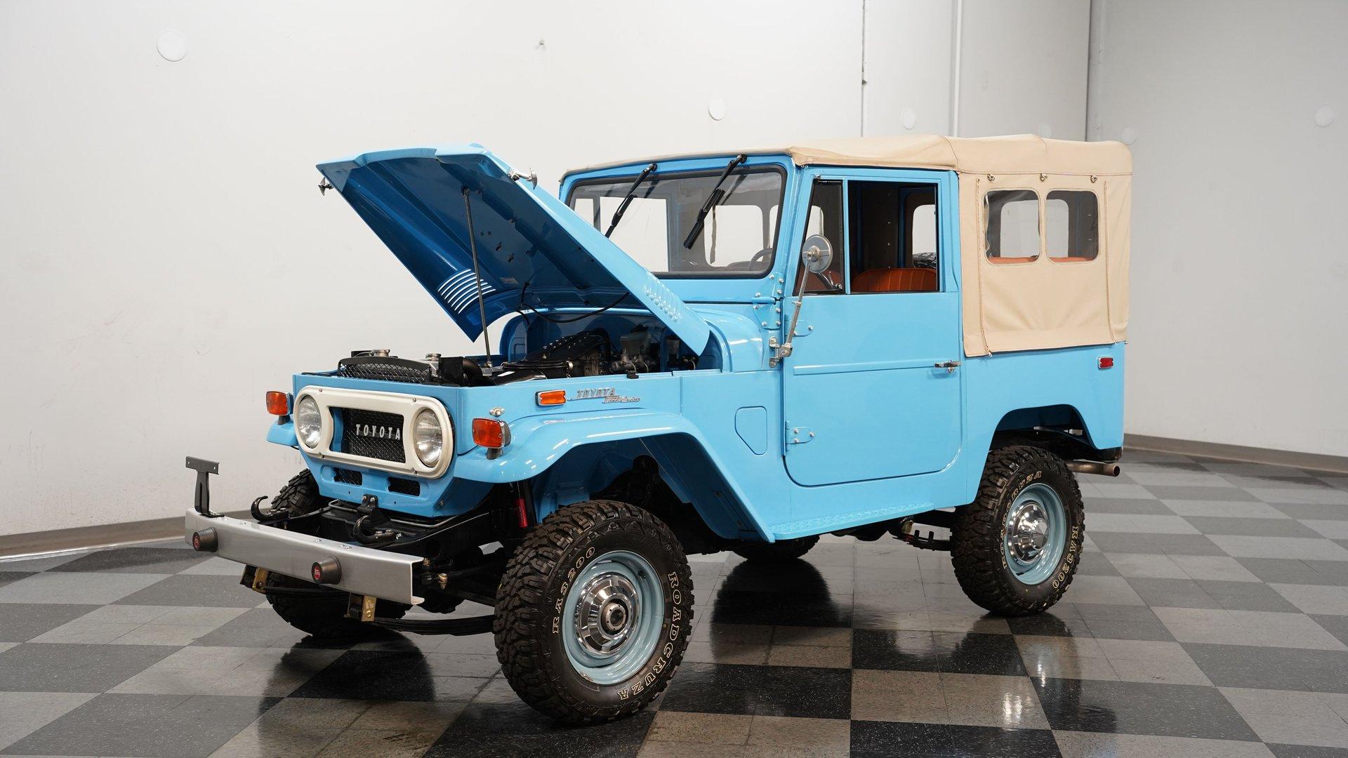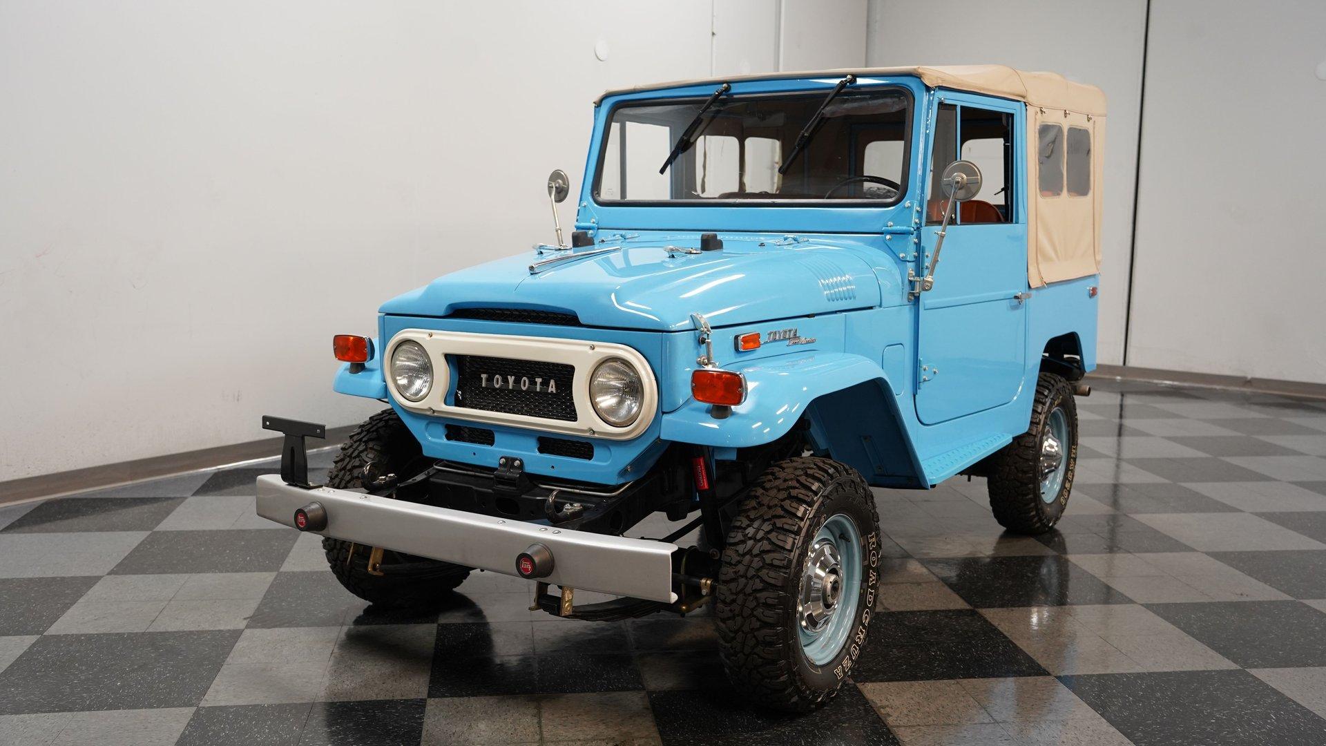 Step into a world where rugged adventure meets timeless style with this beautifully restored 1970 Toyota Land Cruiser FJ40. This iconic vehicle is more than just a classic truck; it's a statement of durability and freedom, embodying the spirit of exploration and the joy of discovery. Whether cruising city streets or tackling off-road trails, the FJ40 offers an experience that combines nostalgia with capability. With its striking presence and storied history, this Land Cruiser invites you to create new memories while honoring a legacy of reliability and adventure. Inside, the cabin is a testament to meticulous restoration, boasting an interior that feels like new. The vinyl seating and surfaces have been restored to maximum standards, complete with sun visors still wrapped in their original protective plastic, ensuring every detail reflects quality and care. The interior is designed for comfort and practicality, maintaining the authentic look while offering a fresh, inviting atmosphere for every journey. Under the hood, you'll find a robust 4.2L 2F Inline 6 engine paired with a smooth-shifting 4-speed manual transmission. The engine bay is impressively clean, reflecting the careful restoration work done to maintain its rugged reliability. Equipped with a single 2-barrel carburetor, this Land Cruiser delivers a classic driving experience with a firm gas pedal feel that emphasizes control and connection. The drivetrain includes factory front and rear axles with a lifted suspension, power front disc brakes, and rear drum brakes, all contributing to a vehicle that is both capable and responsive. Highlights 569 Miles Since Built 4.2L 2F Inline 6 Engine Single 2 Barrel Carburetor 4 Speed Manual Transmission Factory Front Axle Carrier Factory Rear End Factory Style Lifted Suspension 15" Wheels Front and Rear Power Disc Front Brakes Power Drum Rear Brakes Removable Soft Top Air Conditioning Operational With R-134A Power Steering Vinyl Interior Financing Available Vehicle Protection Plans Available Worldwide Shipping This 1970 Toyota Land Cruiser FJ40 is a fantastic opportunity to own a classic vehicle that blends rugged capability with a pristine restoration. It's ready to drive and enjoy, offering a unique blend of vintage charm and dependable performance. Don't miss your chance to add this legendary truck to your collection. Call, email, or come visit our showroom today!