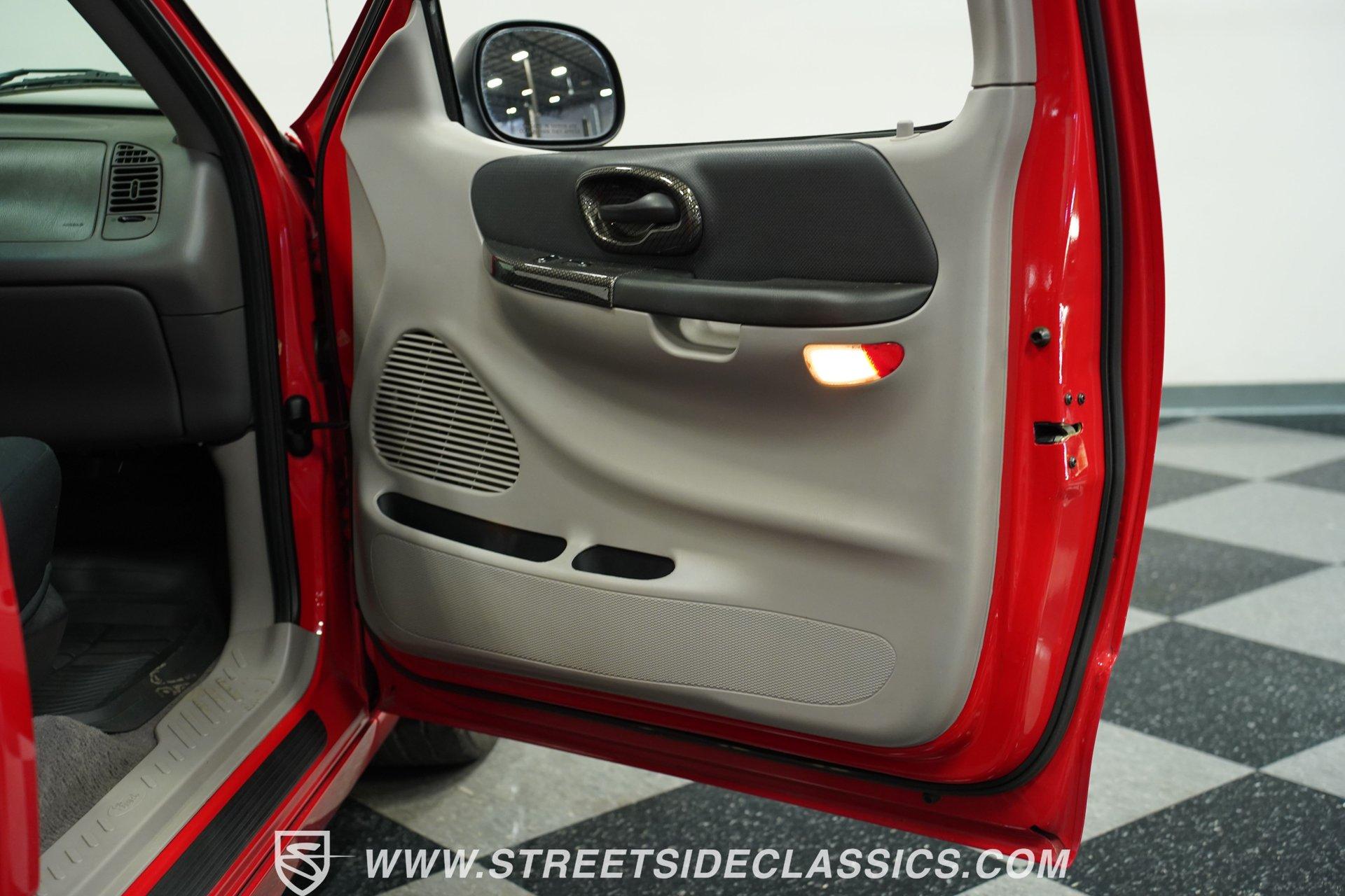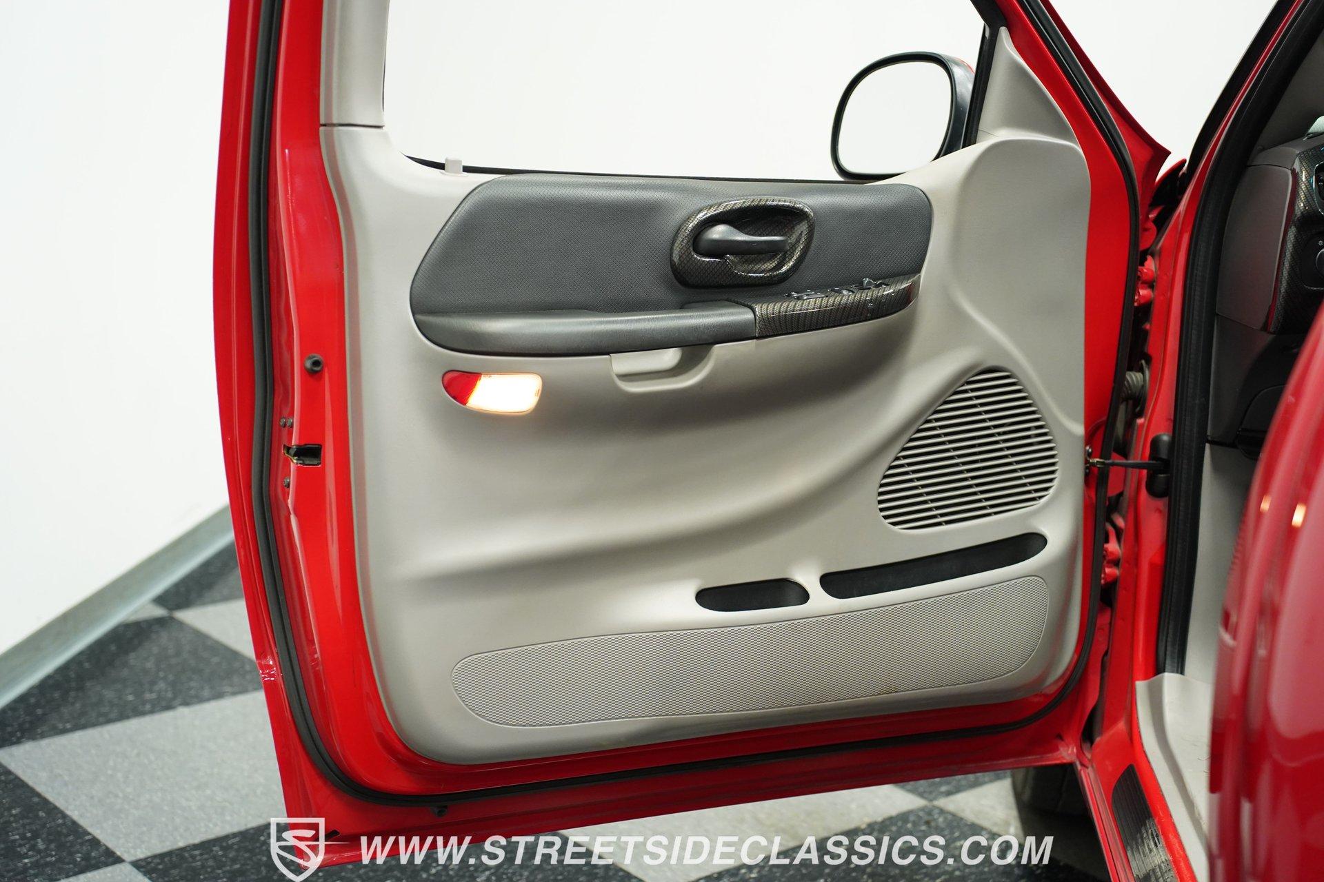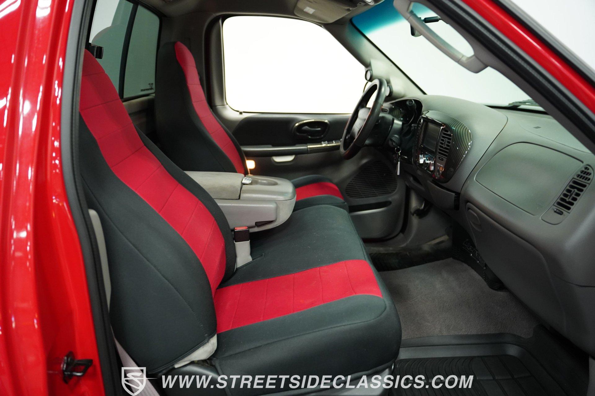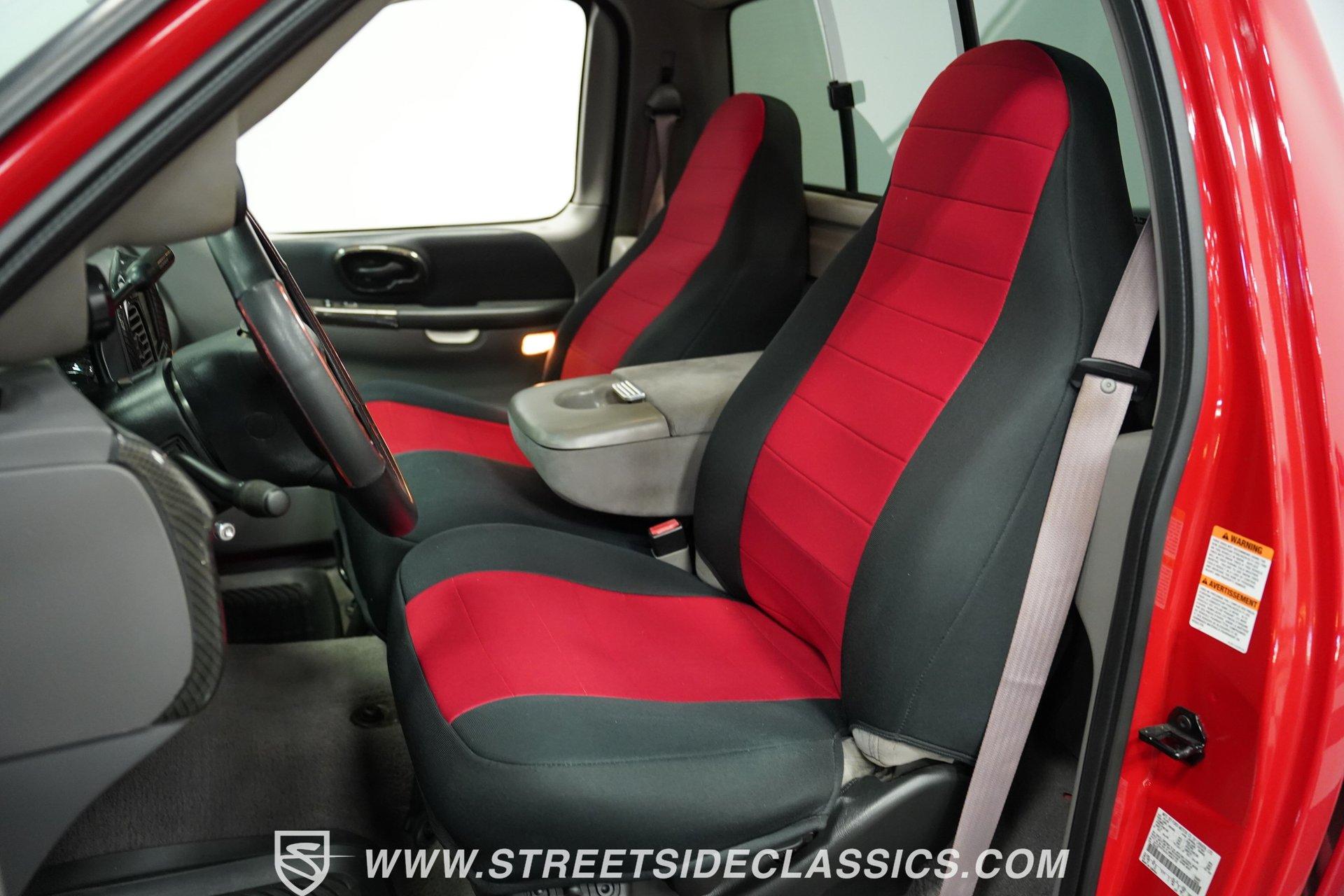 Step into a world where power meets precision with the 2002 Ford F-150 SVT Lightning, a remarkable blend of muscle and style that has captured the hearts of enthusiasts since its debut. This iconic truck is more than just a vehicle; it's a statement of performance and heritage, recalling the thrill of the open road and the pride of owning a machine that turns heads. Whether you're cruising the streets or making a bold entrance at your next gathering, this well-preserved classic embodies a legacy of speed and strength that few trucks can match. Inside, the cabin welcomes you with two-tone black and red sport bucket seats that offer both comfort and a sporty flair. The fold-down center console adds convenience, while the upgraded Pioneer touchscreen head unit brings modern entertainment to your fingertips. Carbon fiber accents on the dash cluster and driver pillar house boost and air-fuel mixture gauges, enhancing the driving experience with a touch of race-inspired sophistication. Standard features such as power windows, power locks, cruise control, and a tilt steering wheel complete the package, making every drive enjoyable and stylish. Beneath the hood, this Lightning boasts a 5.4-liter supercharged V8 engine, delivering a thrilling surge of horsepower paired with an upgraded cold air intake and billet chrome components that shine with every rev. The power is harnessed through a smooth-shifting four-speed automatic transmission, ensuring responsive acceleration and seamless gear changes. Equipped with power steering, four-wheel power disc brakes, and a 3.73 limited-slip rear axle, this truck offers both control and confidence. The factory-style suspension and 20-inch chrome Lightning wheels with 275/40ZR tires provide a balanced ride that's as capable as it is eye-catching. Highlights: 5.4 Liter Supercharged V8 Engine Four-Speed Automatic Transmission 53,547 Actual Miles Original Factory Ford Red Paint Factory Style Suspension Front and Rear 3.73 Limited Slip Rear Axle 20-Inch Chrome Lightning Wheels 275/40ZR20 Radial Tires Front and Rear Four-Wheel Power Disc Brakes Power Steering and Power Brakes Air Conditioning with R-134A Refrigerant Two-Tone Black and Red Sport Bucket Seats Upgraded Pioneer Touchscreen Head Unit Carbon Fiber Interior Accents Financing Available Vehicle Protection Plans Available Worldwide Shipping This 2002 Ford F-150 SVT Lightning is a unique opportunity to own a powerful and stylish classic that blends raw muscle with refined features. Its well-maintained condition and thoughtful upgrades make it an excellent choice for enthusiasts and collectors alike. Don't miss your chance to experience this thrilling truck firsthand. Call, email, or come visit our showroom today!