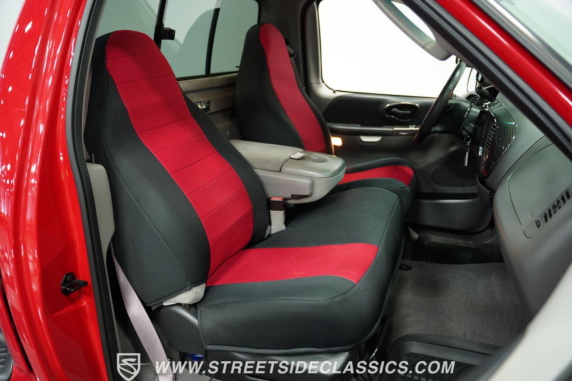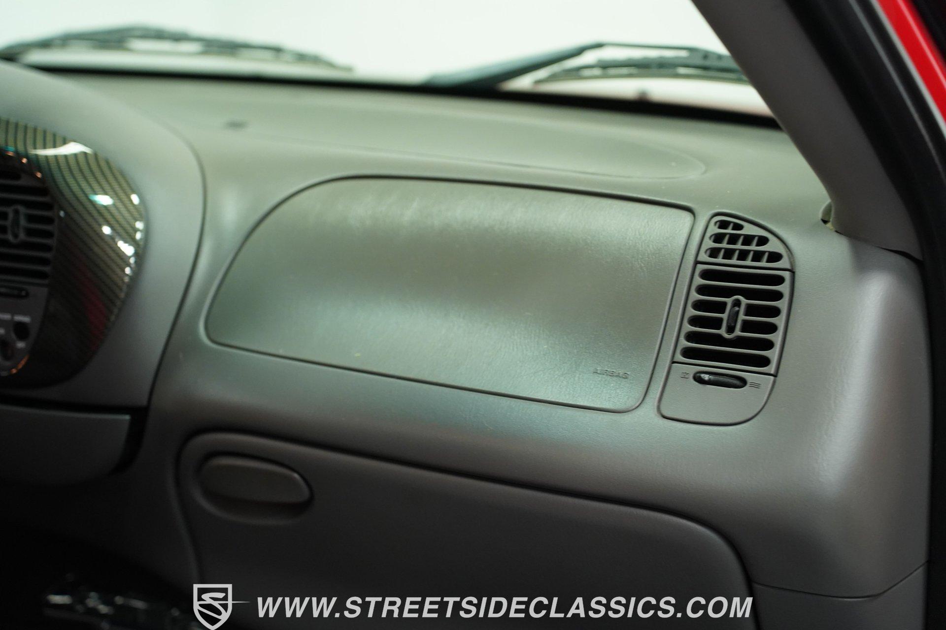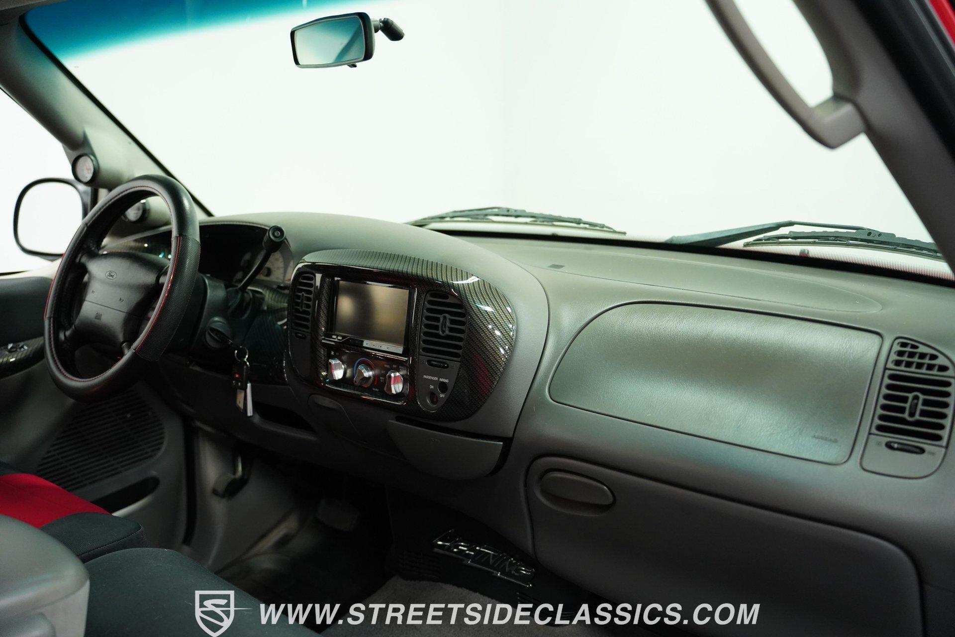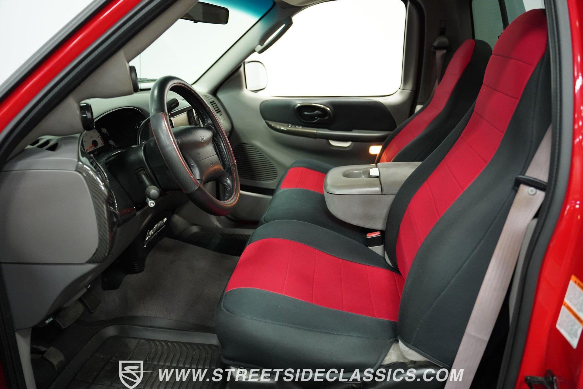 Step into a world where power meets precision with the 2002 Ford F-150 SVT Lightning, a remarkable blend of muscle and style that has captured the hearts of enthusiasts since its debut. This iconic truck is more than just a vehicle; it's a statement of performance and heritage, recalling the thrill of the open road and the pride of owning a machine that turns heads. Whether you're cruising the streets or making a bold entrance at your next gathering, this well-preserved classic embodies a legacy of speed and strength that few trucks can match. Inside, the cabin welcomes you with two-tone black and red sport bucket seats that offer both comfort and a sporty flair. The fold-down center console adds convenience, while the upgraded Pioneer touchscreen head unit brings modern entertainment to your fingertips. Carbon fiber accents on the dash cluster and driver pillar house boost and air-fuel mixture gauges, enhancing the driving experience with a touch of race-inspired sophistication. Standard features such as power windows, power locks, cruise control, and a tilt steering wheel complete the package, making every drive enjoyable and stylish. Beneath the hood, this Lightning boasts a 5.4-liter supercharged V8 engine, delivering a thrilling surge of horsepower paired with an upgraded cold air intake and billet chrome components that shine with every rev. The power is harnessed through a smooth-shifting four-speed automatic transmission, ensuring responsive acceleration and seamless gear changes. Equipped with power steering, four-wheel power disc brakes, and a 3.73 limited-slip rear axle, this truck offers both control and confidence. The factory-style suspension and 20-inch chrome Lightning wheels with 275/40ZR tires provide a balanced ride that's as capable as it is eye-catching. Highlights: 5.4 Liter Supercharged V8 Engine Four-Speed Automatic Transmission 53,547 Actual Miles Original Factory Ford Red Paint Factory Style Suspension Front and Rear 3.73 Limited Slip Rear Axle 20-Inch Chrome Lightning Wheels 275/40ZR20 Radial Tires Front and Rear Four-Wheel Power Disc Brakes Power Steering and Power Brakes Air Conditioning with R-134A Refrigerant Two-Tone Black and Red Sport Bucket Seats Upgraded Pioneer Touchscreen Head Unit Carbon Fiber Interior Accents Financing Available Vehicle Protection Plans Available Worldwide Shipping This 2002 Ford F-150 SVT Lightning is a unique opportunity to own a powerful and stylish classic that blends raw muscle with refined features. Its well-maintained condition and thoughtful upgrades make it an excellent choice for enthusiasts and collectors alike. Don't miss your chance to experience this thrilling truck firsthand. Call, email, or come visit our showroom today!