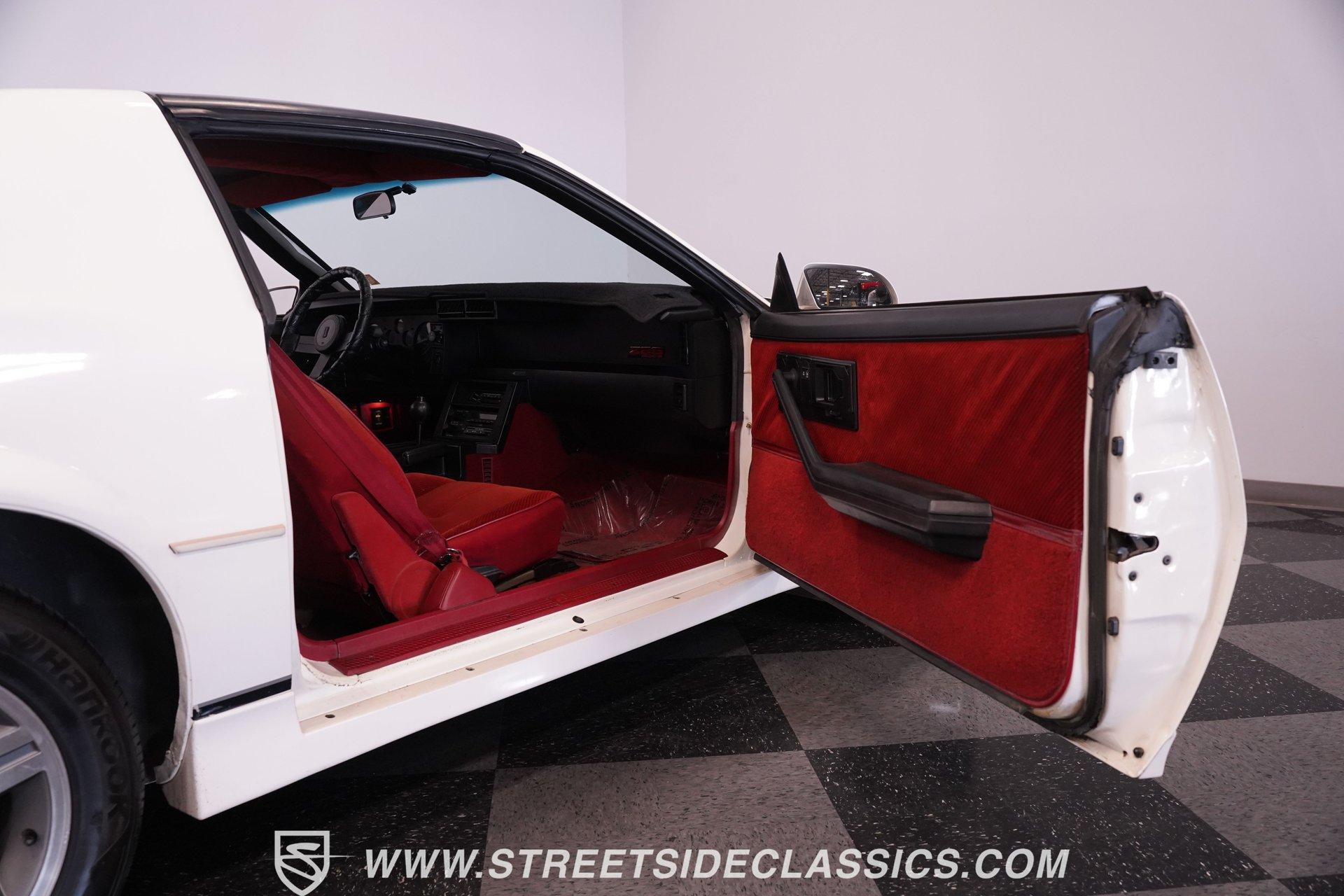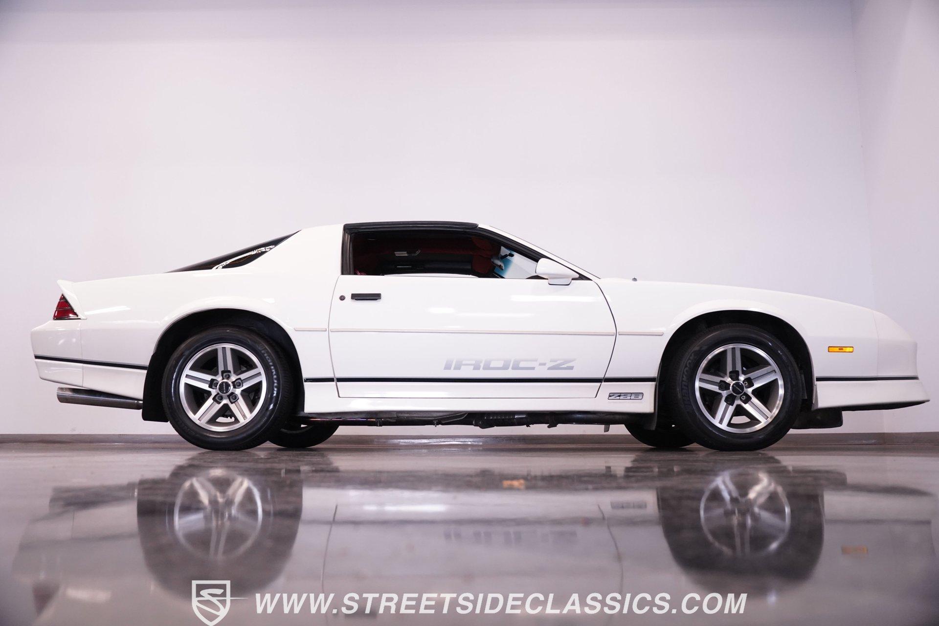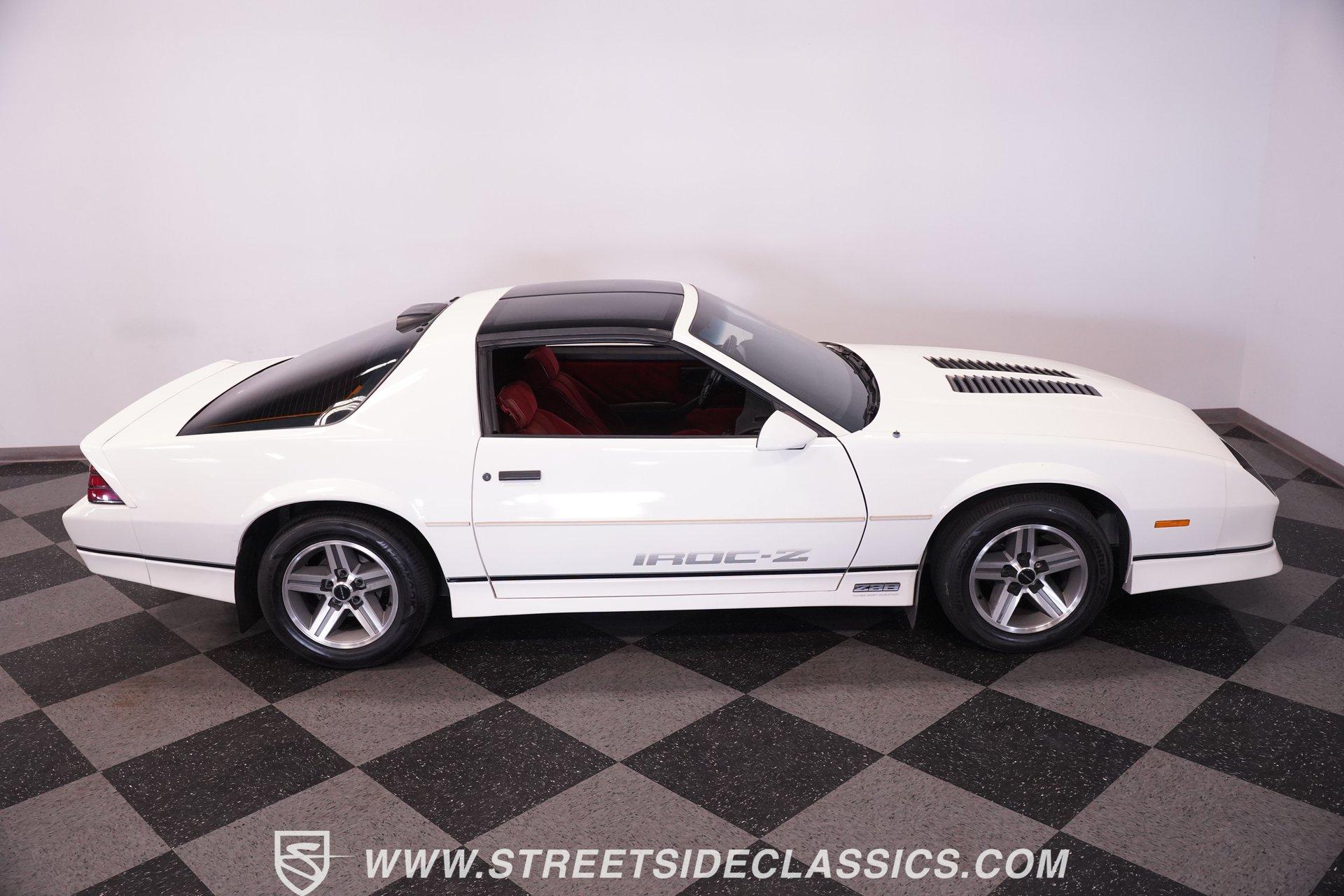 Owning a classic muscle car is about more than just transportation-it's an experience, a statement, and a journey back to an iconic era of American automotive history. The 1986 Chevrolet Camaro IROC-Z embodies that spirit with its timeless design and spirited performance. This model represents a blend of aggressive styling and modern upgrades that keep it relevant and thrilling to drive today. Whether it's the roar of the V8 engine or the sleek white exterior that catches your eye, this Camaro IROC-Z invites you to relive the excitement of the '80s muscle car scene. Don't miss your chance to own this legendary 1986 Chevrolet Camaro IROC-Z. Step inside to a clean red cloth interior that balances comfort and classic style. The front bucket seats and lower door panels show only minor wear, preserving that authentic feel. The interior is well-maintained with all features functioning smoothly, including power locks, power windows, tilt wheel, cruise control, and a working air conditioning system that blows cold. The headliner has some creasing near the rearview mirror, adding character to this well-loved cabin. Under the hood, you'll find a rebuilt 305 V8 5.0-liter engine equipped with a stock cam and head, complemented by electronic fuel injection for reliable performance. This powertrain is paired with a smooth-shifting 4-speed automatic transmission, delivering a driving experience that feels both strong and refined. The suspension and braking systems have been overhauled with receipts exceeding $15,000, including upgrades to the exhaust, water pump, ECM, steering, and brake system, ensuring this Camaro drives just as impressively as it looks. Highlights Believed Actual Mileage 75,723 Numbers-Matching 305 V8 Engine Electronic Fuel Injection System 4-Speed Automatic Transmission Stock Cam and Cylinder Heads Power Steering Front Power Disc Brakes, Rear Power Drum Original High Gloss White Paint Clean Red Cloth Interior Functional Air Conditioning T-Tops With Storage Bags Included Over $15K in Recent Receipts Original Owner's Manual and Warranty Card Driver Quality Underside, No Rust Financing Available Vehicle Protection Plans Available Worldwide Shipping This 1986 Chevrolet Camaro IROC-Z offers a fantastic opportunity to own a classic muscle car that combines authentic style with thoughtful mechanical upgrades. Its strong performance, clean interior, and iconic appearance make it a standout choice for collectors and enthusiasts alike. Call, email, or come visit our showroom today!