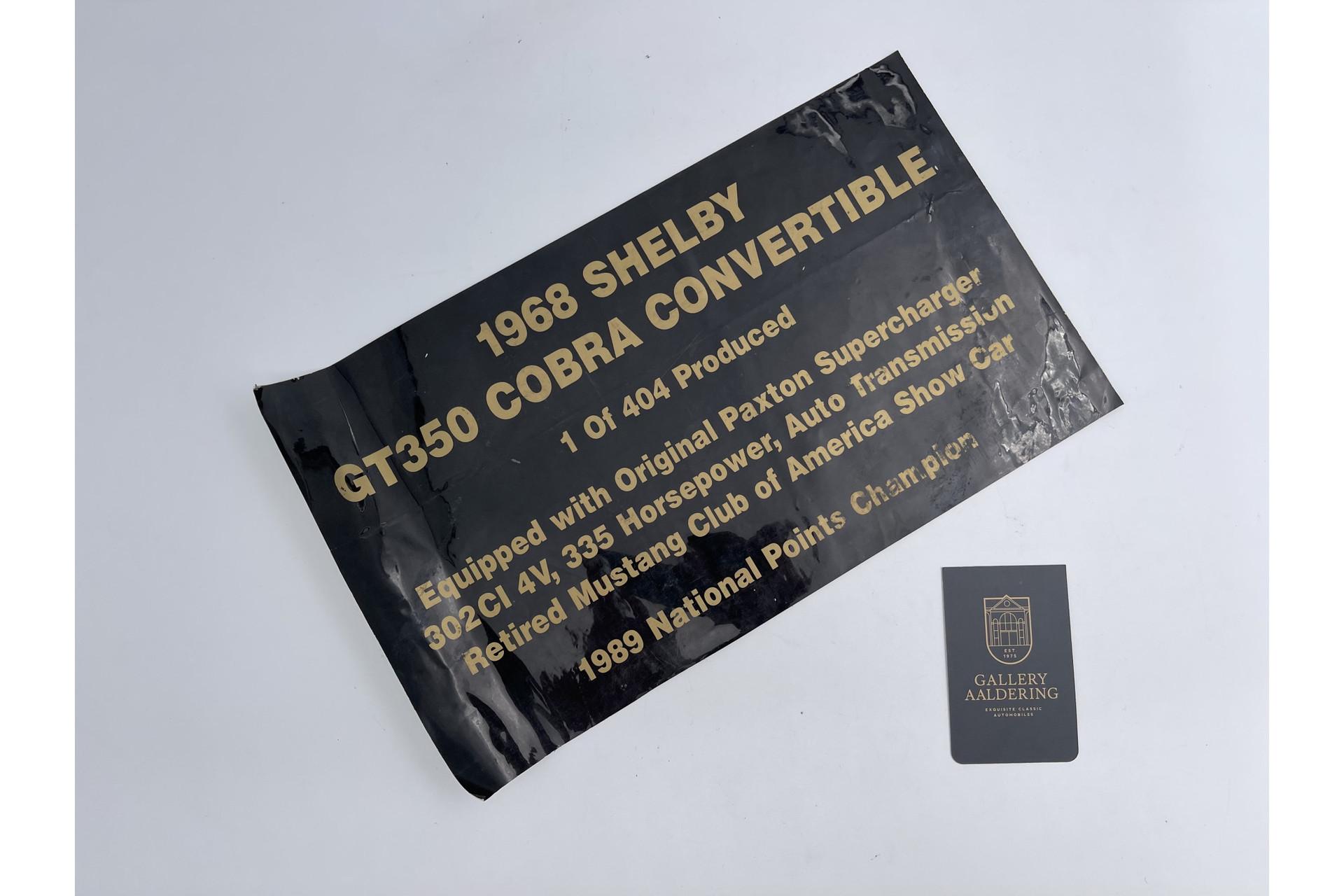 Are you searching for a Shelby that represents a truly higher tier? Then this 1968 Shelby GT350 Convertible with factory Paxton supercharger is an opportunity that will be nearly impossible to repeat. Contact Gallery Aaldering today. We export our vehicles worldwide—ask us about the possibilities.